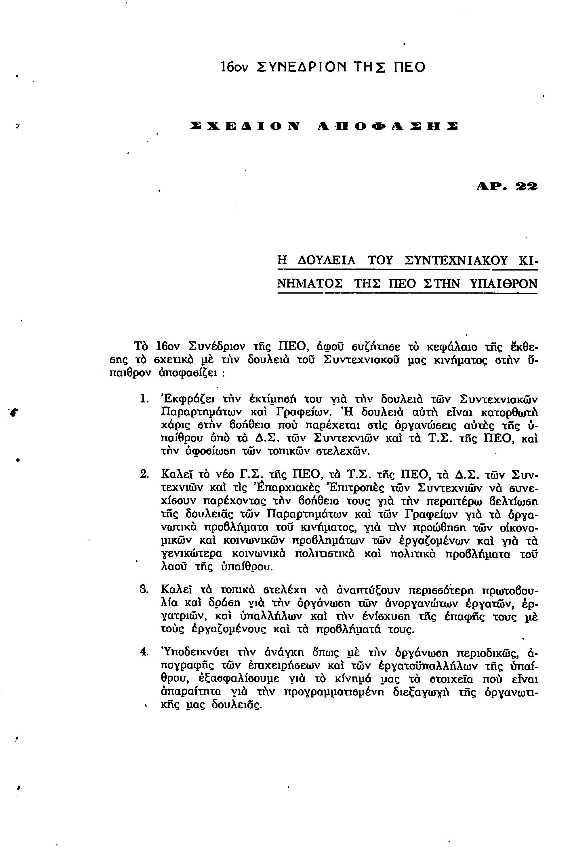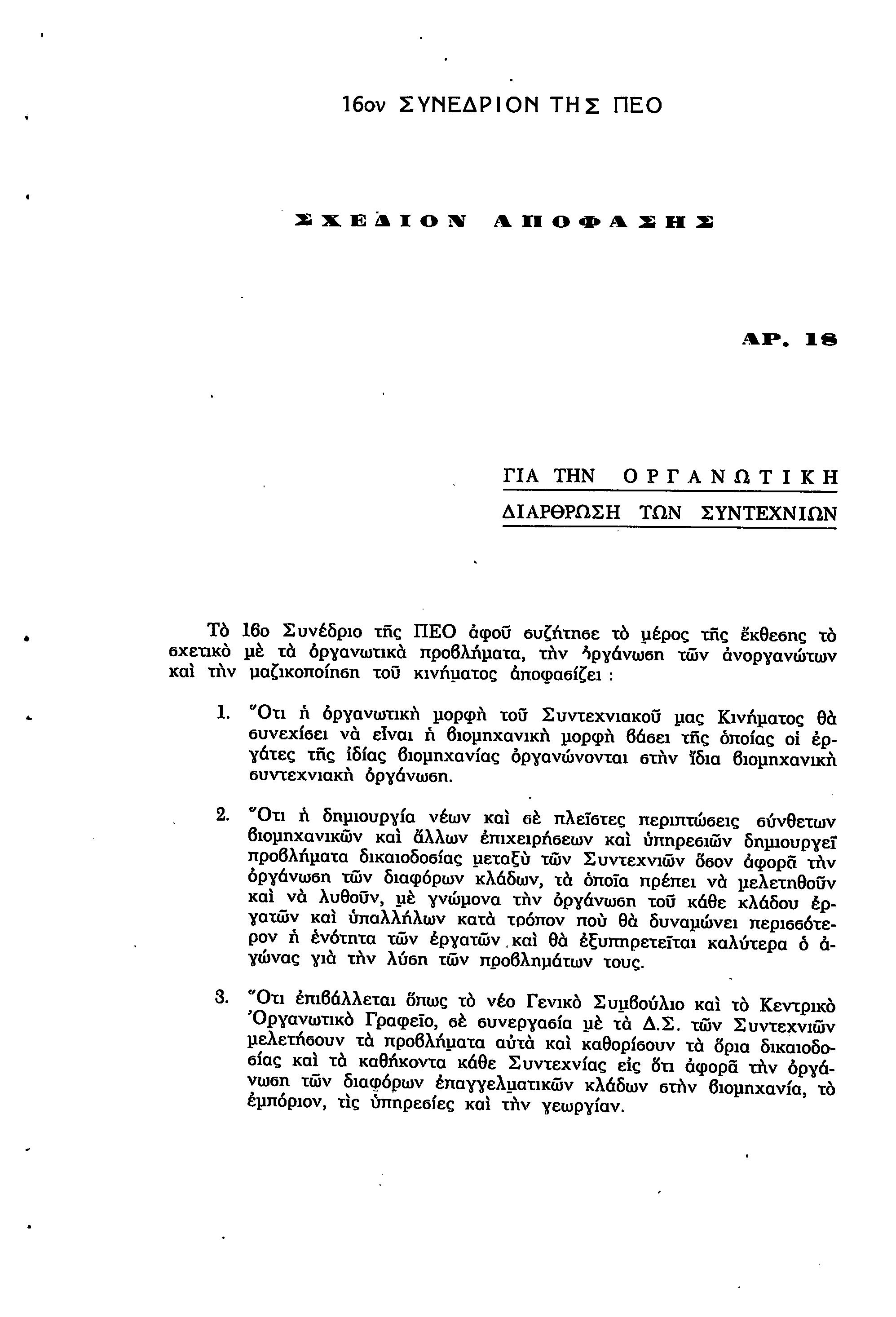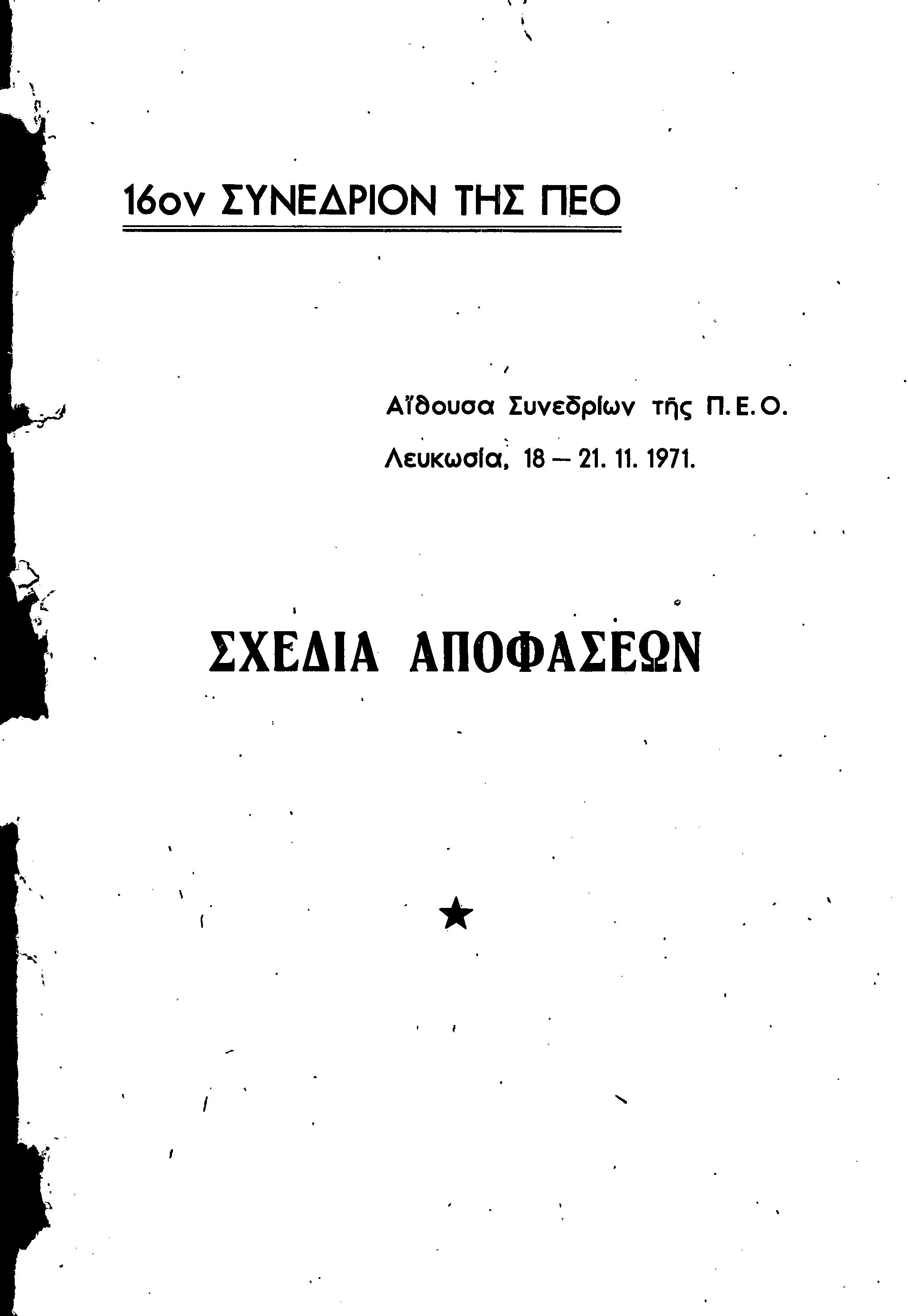 16ο ΠΑΓΚΥΠΡΙΟ ΣΥΝΕΔΡΙΟ ΠΕΟ 1971 ( ΣΧΕΔΙΑ ΑΠΟΦΑΣΕΩΝ)