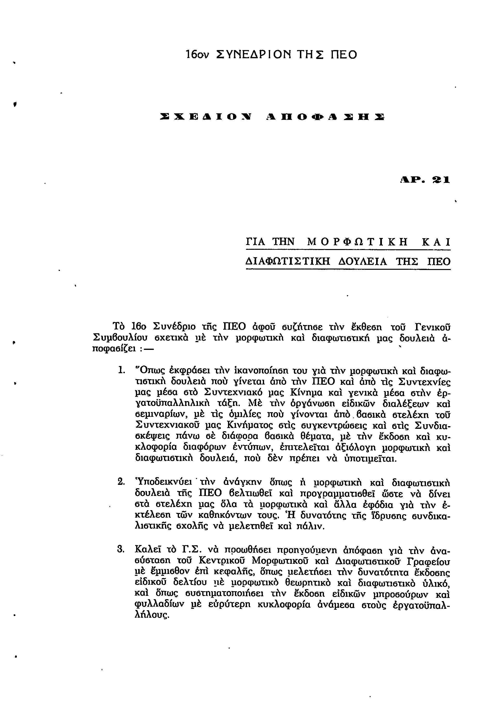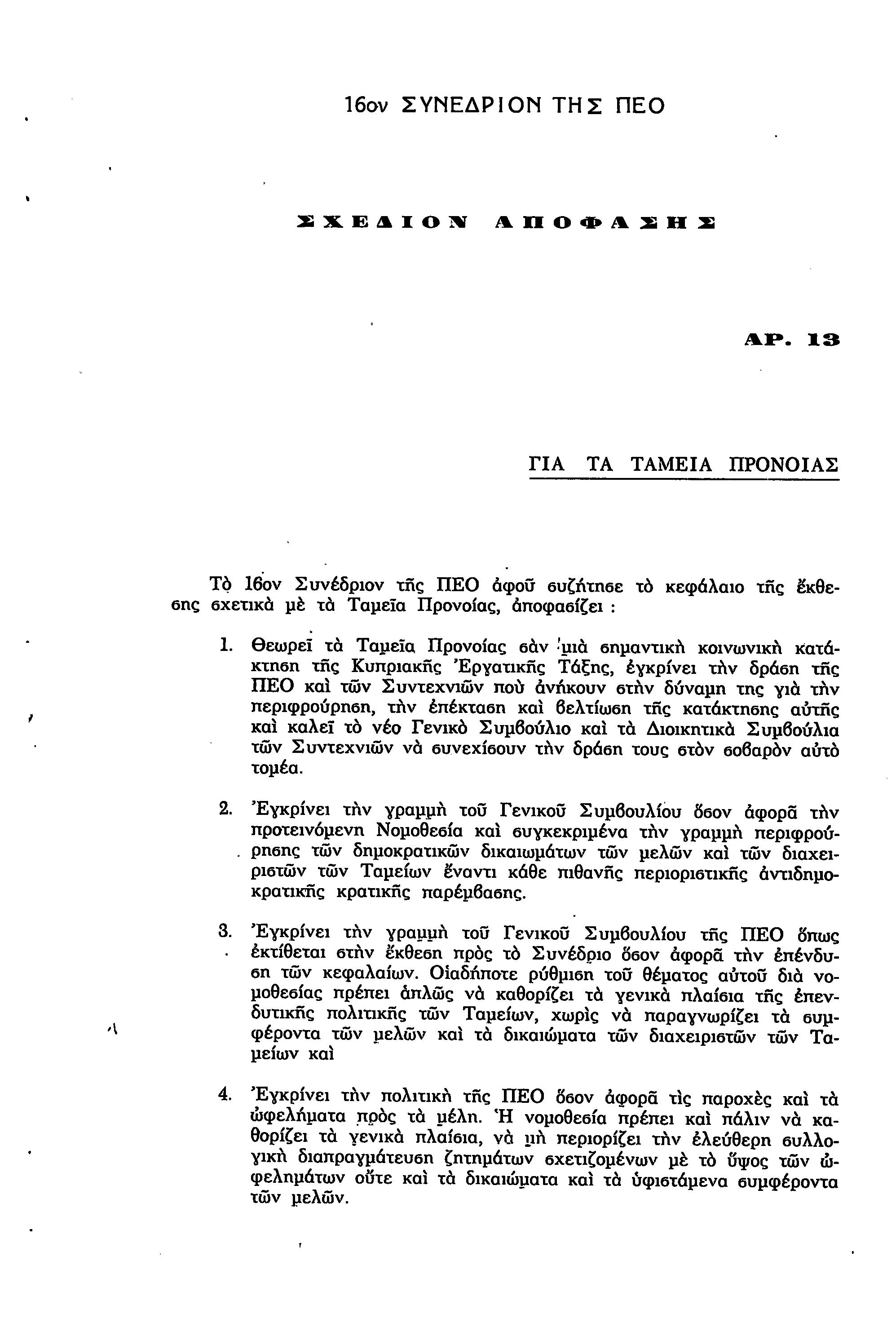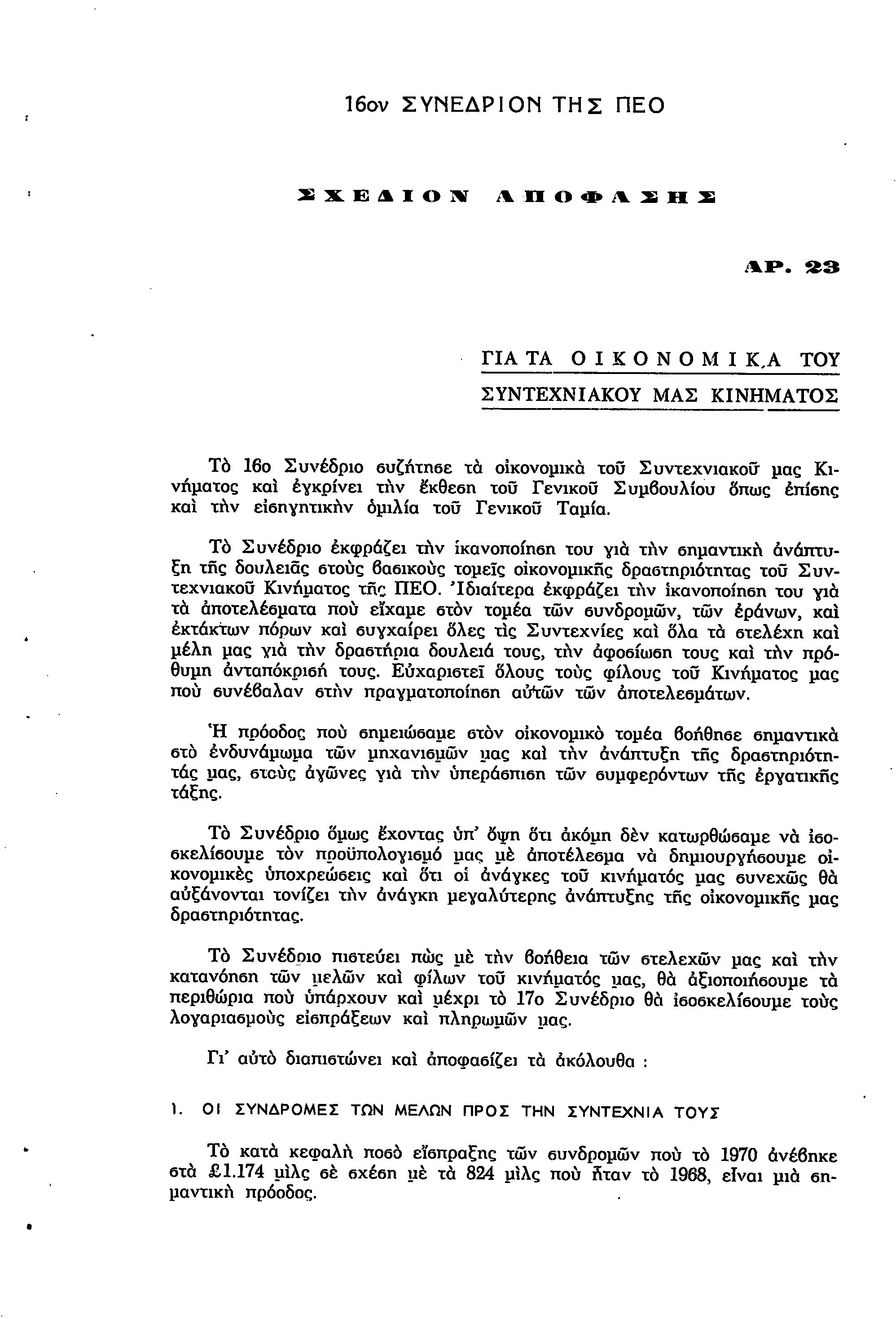 16ο ΠΑΓΚΥΠΡΙΟ ΣΥΝΕΔΡΙΟ ΠΕΟ 1971 ( ΣΧΕΔΙΑ ΑΠΟΦΑΣΕΩΝ)