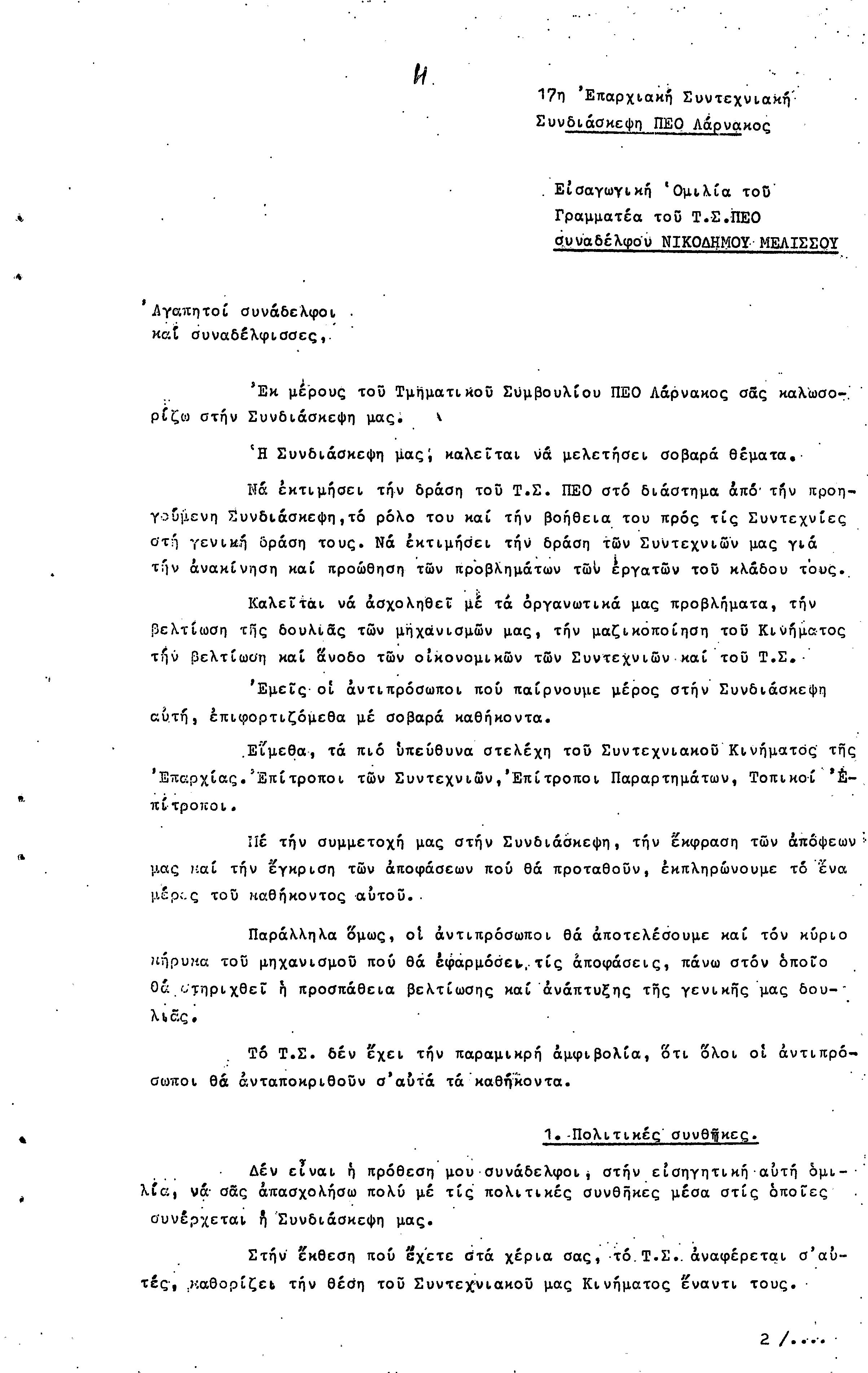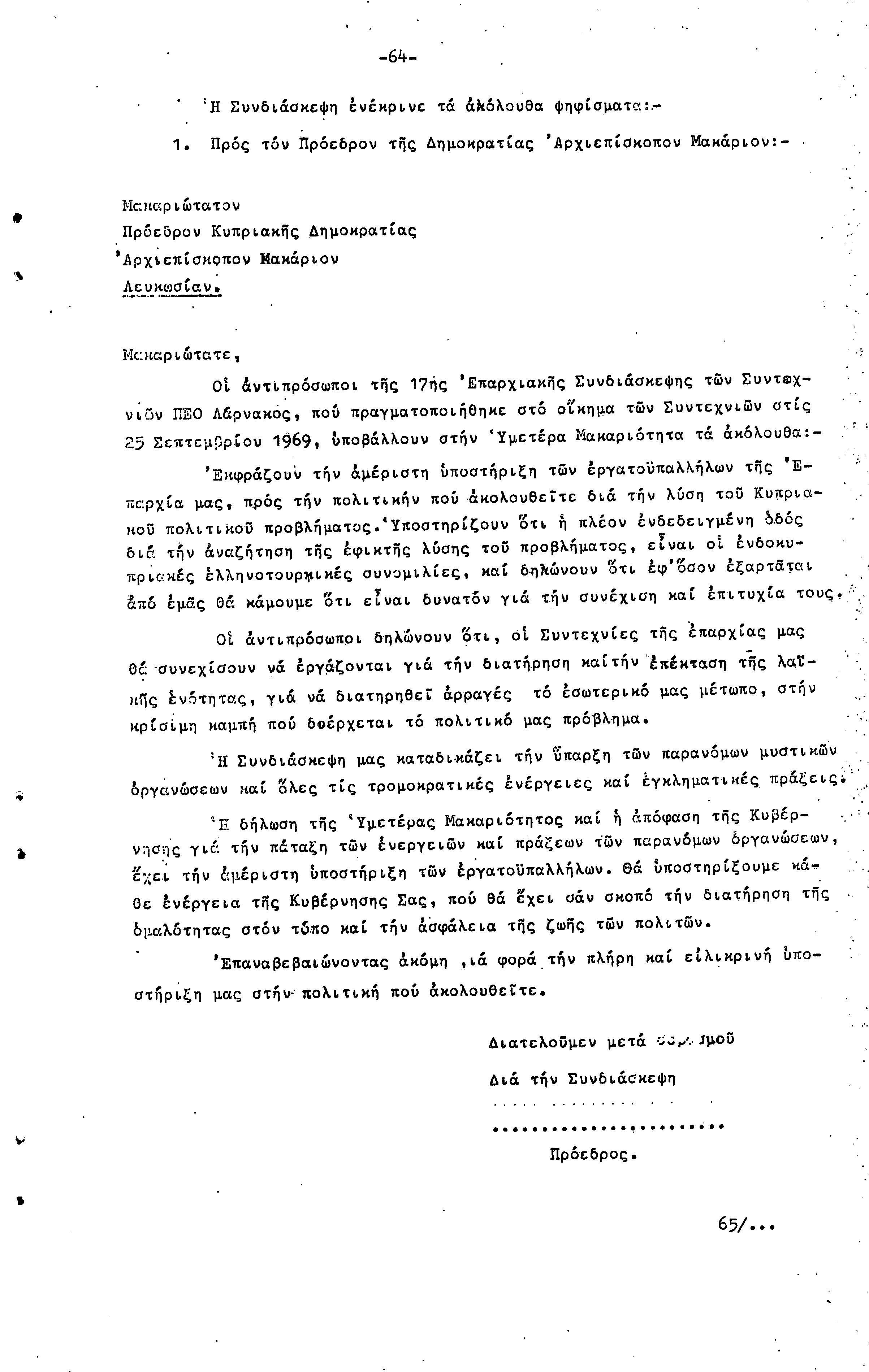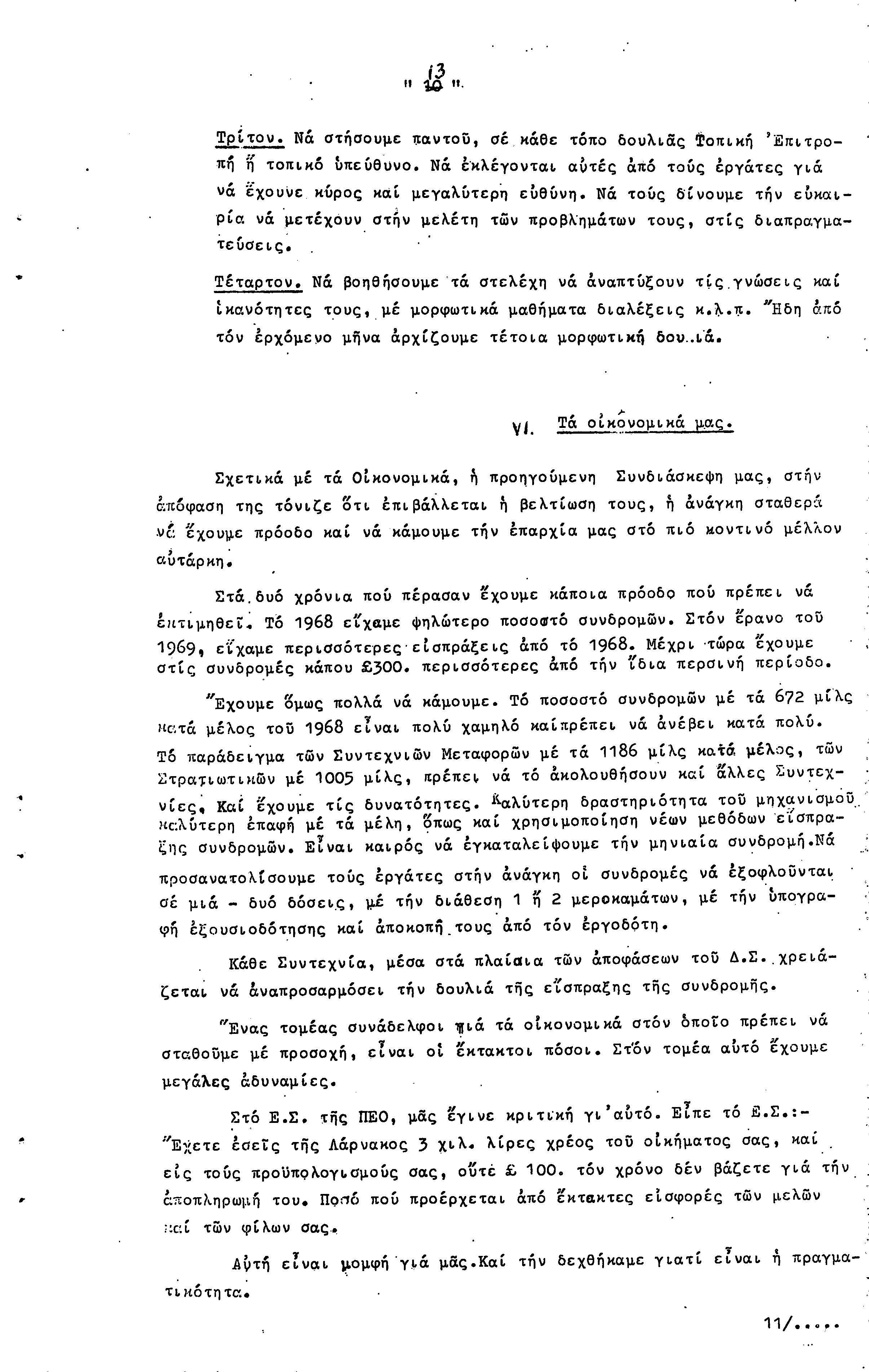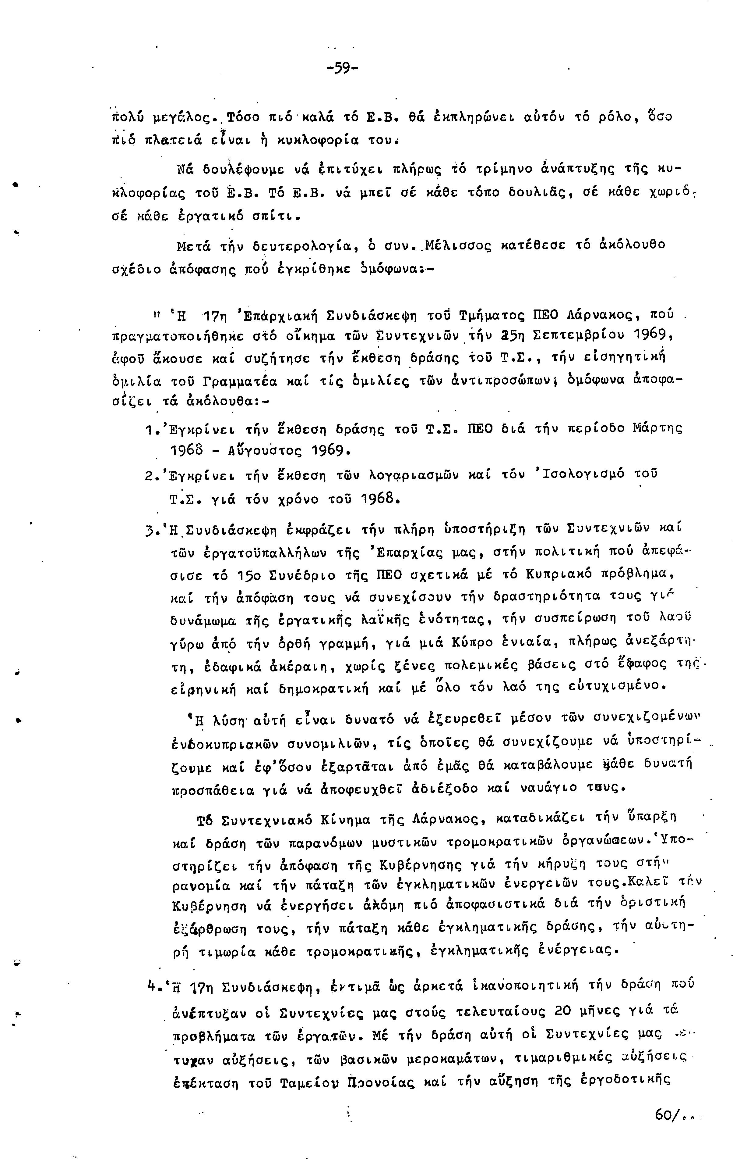 17η ΕΠΑΡΧΙΑΚΗ ΣΥΝΔΙΑΣΚΕΨΗ Τ.Σ. ΠΕΟ ΛΑΡΝΑΚΑΣ, 25.09.1969 ( ΠΡΑΚΤΙΚΑ)