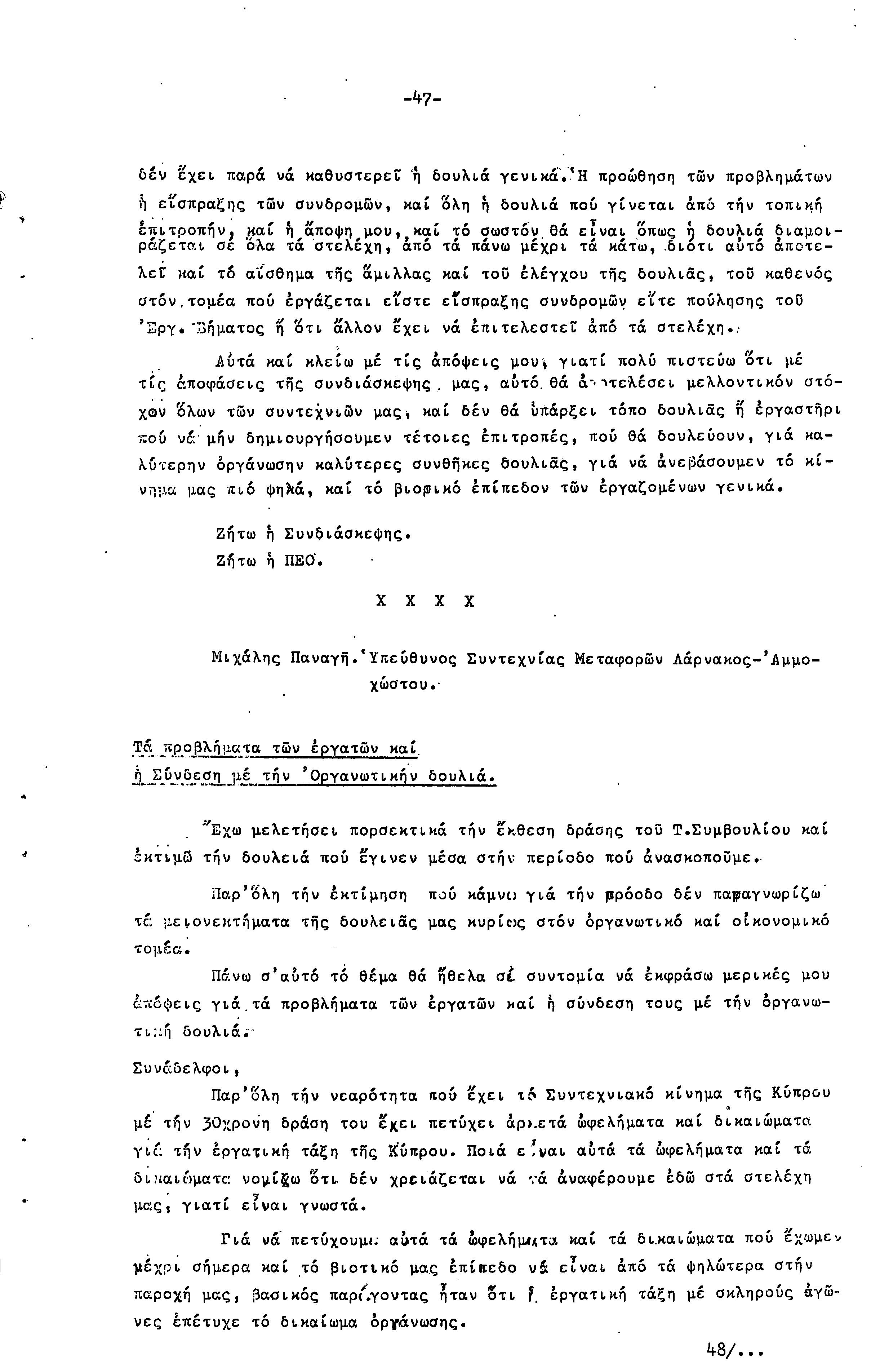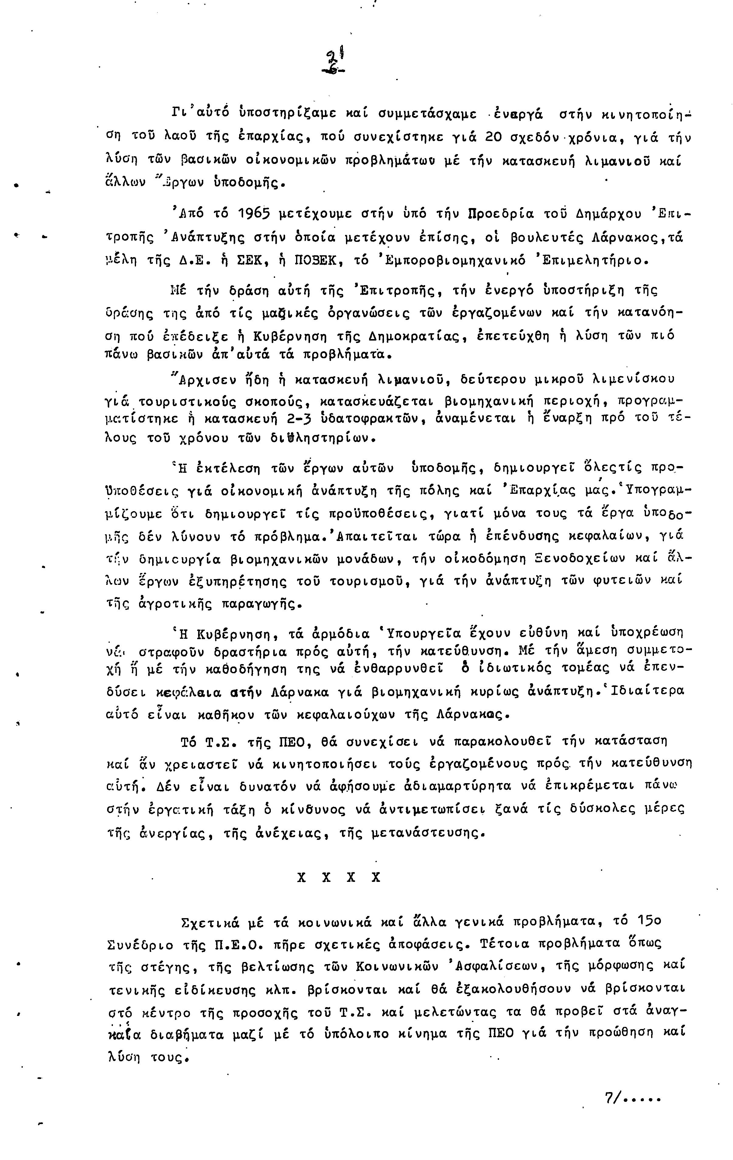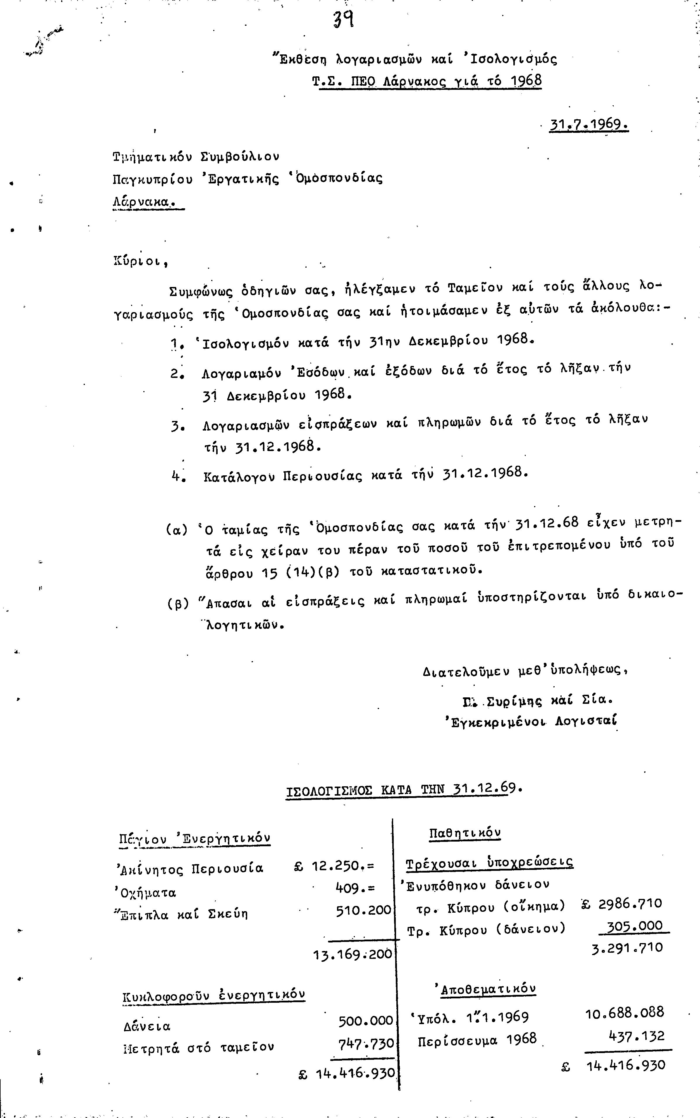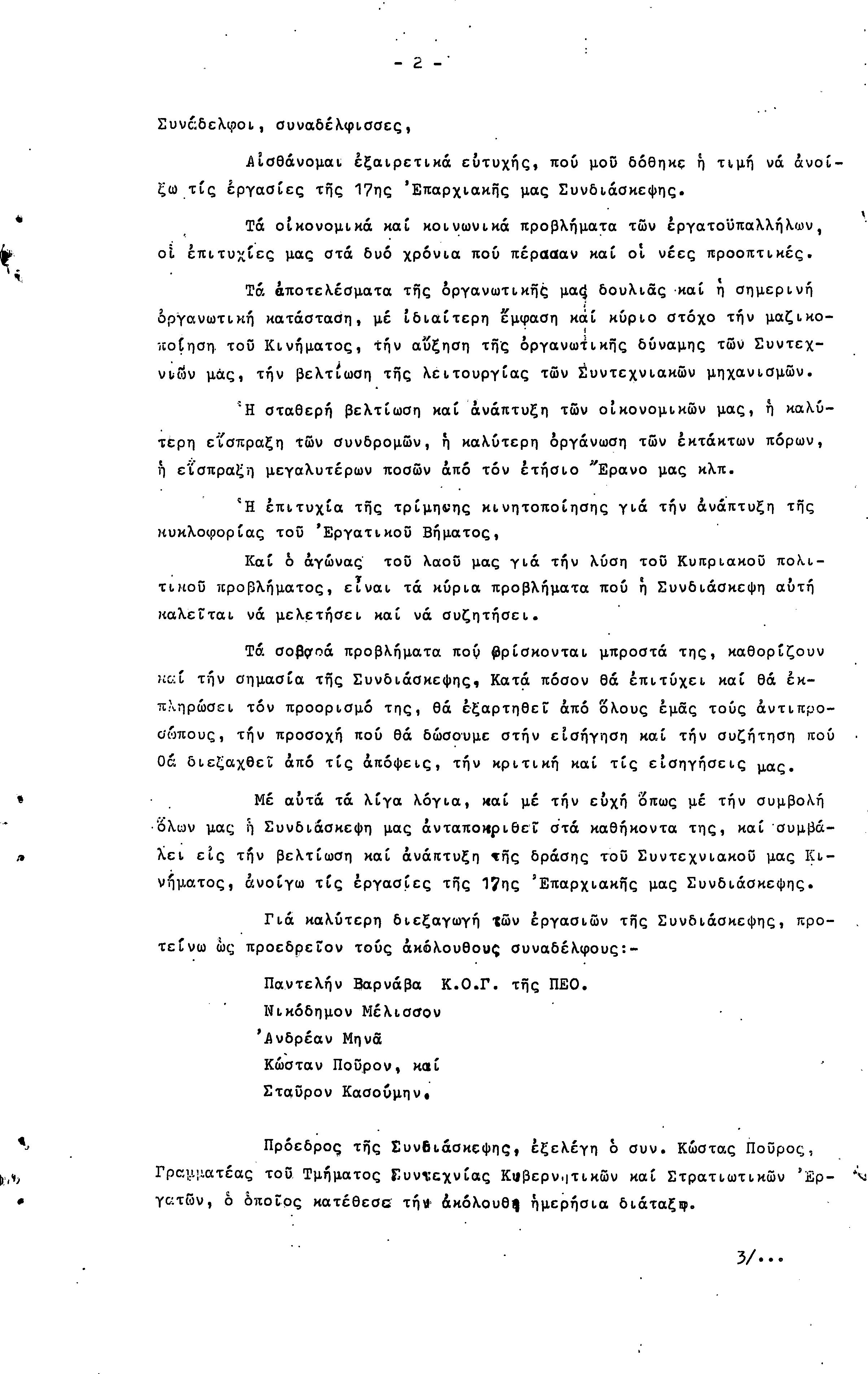 17η ΕΠΑΡΧΙΑΚΗ ΣΥΝΔΙΑΣΚΕΨΗ Τ.Σ. ΠΕΟ ΛΑΡΝΑΚΑΣ, 25.09.1969 ( ΠΡΑΚΤΙΚΑ)