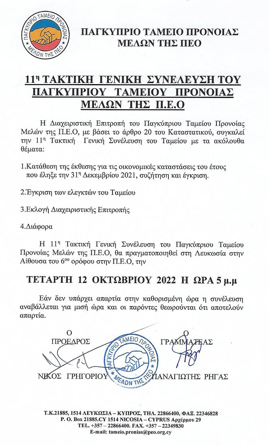 Πιτσιλλίδης και άλλοι ΣΥΝΕΧΕΙΑ ΣΤΗ ΣΕΛ. 3 Συλλογή υπογραφών για κατάργηση του πέναλτι 12% στις συντάξεις Αναπτύσσει δυναμική η υποψηφιότητα του Ανδρέα Μαυρογιάννη CYTA Επίσκεψη Γ Γ ΠΕΟ στους εργαζόμενους της Αρχής Τηλεπικοινωνιών Σελ 6 Εκστρατεία ΠΕΟ Φωτορεπορτάζ από τις Γενικές Συνελεύσεις σε χώρους εργασίας σε όλη την Κύπρο Σελ 8 9 ΕΚΥΣΥ Δυναμικές κινητοποιήσεις συνταξιούχων Σελ 12 Συμμετέχουμε μαζικά Το Σάββατο 15 Οκτωβρίου η ΠΕΟ θα πραγματοποιήσει, όπως είναι γνωστό, τη μεγάλη πορεία διαμαρτυρίας και διεκδίκησης στις 10:00 το πρωί με συ γκέντρωση στο Υπουργείο Οικονομι κών και πορεία προς το Προεδρικό και καλεί όλους τους εργαζόμενους και τους συνταξιούχους να συμμετέχουν Ολοκληρώνεται αυτές τις μέρες η παγκύπρια εκστρατεία με την πραγ ματοποίηση Γενικών Συνελεύσεων για την ενημέρωση των εργαζομέ νων σχετικά με τις θέσεις και διεκδι κήσεις της ΠΕΟ για αξιοπρεπείς κα τώτατους μισθούς με δικαιώματα, για λήψη θεσμικών μέτρων ενίσχυσης των Συλλογικών Συμβάσεων, για μέ τρα καταπολέμησης της ακρίβειας και πλήρη επαναφορά της ΑΤΑ για όλους. Υπενθυμίζουμε ότι η απόφαση για την πραγματοποίηση μεγάλης παγκύ πριας κινητοποίησης λήφθηκε από το Έκτακτο Παγκύπριο Συνέδριο της ΠΕΟ, που πραγματοποιήθηκε στις 7 Σεπτεμβρίου 2022 ΓΓ ΠΕΟ: Η κυβέρνηση στηρίζει τους κακούς εργοδότες και όχι τους εργαζόμενους Σε δηλώσεις της σχετικές με τα αι τήματα της κινητοποίησης, η Γ.Γ. της ΠΕΟ, Σωτηρούλα Χαραλάμπους, ανέ φερε πως με το διάταγμα για κατώτατο μισθό η κυβέρνηση στην ουσία έχει αποφασίσει μόνο έναν αριθμό, ενώ παρακάμπτει την ουσία «Η κυβέρνη ση με τις αποφάσεις της έχει στηρίξει τους κακούς εργοδότες και όχι τους εργαζόμενους», είπε και υπέδειξε ότι αυτοί που έπαιρναν ήδη τον κατώτα το θα δουν αύξηση μόλις 16 ευρώ στο μισθό τους Υπενθύμισε ότι σύμφωνα και με την Ε.Ε., για να λειτουργήσει ο κατώτατος μισθός, με τα δεδομένα της Κύπρου, πρέπει να είναι γύρω στα 1 000 ευρώ Η Σ. Χαραλάμπους τόνισε ότι η ΠΕΟ και οι άλλες Συνδικαλιστικές Οργα νώσεις ζητούσαν να τεθεί ένα πλαίσιο εργασιακών δικαιωμάτων, στο οποίο να περιλαμβάνεται και το ωράριο ερ γασίας, κάτι ωστόσο που δεν διευκρι νίζεται με βάση το διάταγμα Όσον αφορά την ΑΤΑ και το επιχεί ρημα ότι είναι λίγοι οι εργαζόμενοι που την επωφελούνται και αυτό οφεί λεται στην απορρύθμιση των εργασι ακών σχέσεων, θα μπορούσε, τονίζει η Γ Γ της ΠΕΟ, να αναφέρεται στο διά ταγμα ότι ο κατώτατος θα αναπροσαρ μόζεται με βάση την ΑΤΑ, κάτι που θα είχε ως αποτέλεσμα να επωφεληθούν και άλλοι εργαζόμενοι Εκτενέστερο φωτορεπορτάζ από τις Γενικές Συνελεύσεις σελ 8 9 Η προεκλογική συγκέντρωση της 4ης Οκτωβρίου έδειξε την πολυσυλλεκτικότητα της υποψηφιότητάς του Οργανωμένα συνεχίζουμε για: n Αξιοπρεπή κατώτατο μισθό με δικαιώματα n Θεσμικά μέτρα ενίσχυσης των Συλλογικών Συμβάσεων n Μέτρα καταπολέμησης της ακρίβειας n Πλήρη επαναφορά της ΑΤΑ για όλους