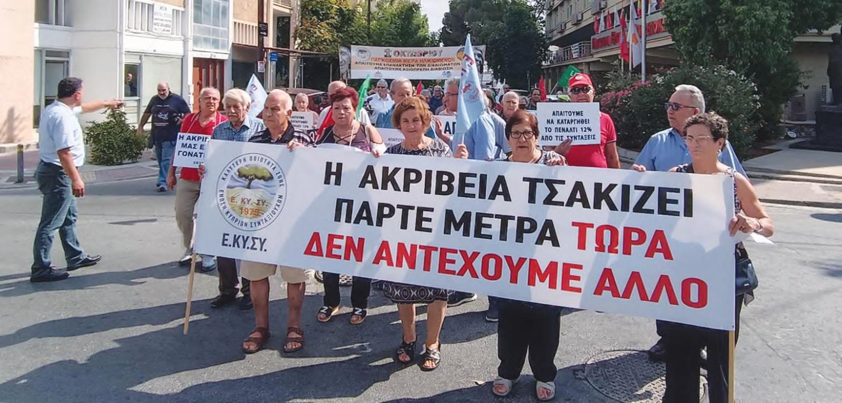 οι άνθρωποι της τρίτης ηλικίας. Οι συνταξιούχοι της ΕΚΥΣΥ Πάφου πραγματοποίησαν πορεία διαμαρτυρίας στους δρόμους της πόλης φτάνοντας έξω από τα γραφεία της Επαρχιακής Διοίκη σης και ένωσαν τις φωνές διαμαρτυρί ας τους με τους συνταξιούχους των άλ λων επαρχιών που πραγματοποίησαν τα Επαρχιακά τους Συνέδρια και τις εκδη λώσεις διαμαρτυρίας ενάντια στην αναλ γησία και απραξία της κυβέρνησης, η οποία αρνείται να επιλύσει τα πάρα πολ λά και σοβαρά προβλήματα που αντιμε τωπίζουν εδώ και πάρα πολλά χρόνια Παρά τα έντονα διαβήματα της ΕΚΥΣΥ, η κυβέρνηση έχει κλείσει τα αυτιά της και δεν ακούει τις φωνές διαμαρτυρίας ούτε της οργάνωσης ούτε των συνταξι ούχων, με αποτέλεσμα χιλιάδες άνθρω ποι της τρίτης ηλικίας να υποφέρουν, να ταλαιπωρούνται και να βασανίζονται. Την ίδια στιγμή, χιλιάδες αιτήσεις ατό μων της τρίτης ηλικίας παραμένουν για εξαιρετικά μεγάλο χρονικό διάστημα στα συρτάρια τόσο του Υπουργείου Εργασίας, όσο και της Υπηρεσίας Διαχείρισης Επι δομάτων Πρόνοιας χωρίς να εξετάζονται στην ώρα τους Στο Έκτακτο Συνέδριο της ΕΚΥΣΥ Πά φου που πραγματοποιήθηκε την Τετάρ τη 5 Οκτωβρίου ήταν επίσης ιδιαίτερα έντονη η αντίδραση των συνταξιούχων στις δηλώσεις του Υπουργού Εργασίας, κ Κούσιου, αναφορικά με το πώς εννοεί η κυβέρνηση την επίλυση της αδικίας και της στρέβλωσης που παρουσιάζεται με το πέναλτι 12% που επιβάλλεται στις συ ντάξεις για άτομα 63 ετών που πληρούν τις προϋποθέσεις να δικαιούνται σύντα ξη Συγκεκριμένα, όπως είπε ο Υπουργός Εργασίας, για να μην αδικούνται όσοι συ νταξιοδοτούνται στα 65, συγκρίνοντας με τα άτομα που συνταξιοδοτούνται στα 63 (τα οποία θα πληρωθούν 26 μηνιαί ες συντάξεις περισσότερες από όσους θα συνταξιοδοτηθούν στα 65), θα μπορεί να επανέλθει το δικαίωμα σε πλήρη σύντα ξη όταν εξοφλήσουν σε μηνιαίες δόσεις το ποσό που πήραν και αυτό θα συμβεί μετά από 18 χρόνια, δηλαδή αφού συ μπληρώσουν τα 81 τους χρόνια Σημειώ νουμε πως το προσδόκιμο ζωής των αν δρών στην Κύπρο είναι τα 80,5 χρόνια, άρα ο υπουργός και η κυβέρνηση Ανα στασιάδη κοροϊδεύουν ξεκάθαρα τους συνταξιούχους, λέγοντάς τους ότι το πρόβλημά για τους πιο πολλούς θα επι λυθεί μετά το θάνατό τους! Το Συνέδριο ασχολήθηκε επίσης με όλα τα προβλήματα που αντιμετωπίζουν σήμερα οι συνταξιούχοι και ιδιαιτέρα με την ακρίβεια, η οποία έχει γονατίσει τα νοικοκυριά των συνταξιούχων Κύριος ομιλητής σε αυτό ήταν ο Γ Γ της ΕΚΥΣΥ, Κώστας Σκαρπάρης, ενώ των εργασιών προήδρευσε ο Ανδρέας Χριστοδούλου εκ μέρους της ΕΚΥΣΥ Πάφου Έκθεση για τα οργανωτικά αποτελέσματα κατέθεσε η Ελένη Χατζιάντωνα, Επαρχιακή Υπεύ θυνη της ΕΚΥΣΥ Πάφου και χαιρετισμό απηύθυνε ο Ε Γ της ΠΕΟ Πάφου, Νεόφυ τος Άσσος Πολιτιστική παρέμβαση στο Συνέδριο έγινε από τον Γιώργο Νικολά ου. Στο τέλος το συνέδριο ενέκρινε το Σχέδιο Απόφασης στο οποίο περιλαμβά νονται τα κυριότερα προβλήματα που αντιμετωπίζουν σήμερα οι συνταξιούχοι και θα αποτελέσουν οδηγό για τα επόμε να βήματα της οργάνωσης Οι συνταξιούχοι στη Λευκωσία βγήκαν στους δρόμους Οι συνταξιούχοι της Πάφου καταγγέλλουν τον Υπ. Εργασίας για εμπαιγμό σχετικά με το πέναλτι 12% στις συντάξεις