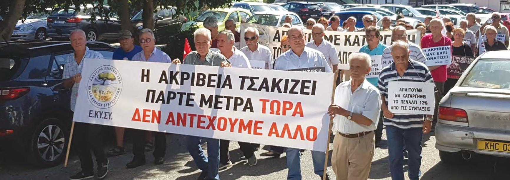 12 ΕΡΓΑΤΙΚΟ ΒΗΜΑ | ΤΕΤΑΡΤΗ 26 ΟΚΤΩΒΡΙΟΥ 2022 ΣΥΝΤΑΞΙΟΥΧΟΙ Ολοκληρώθηκαν με μεγάλη επιτυχία τα πέντε Επαρχιακά Συνέδρια που πραγ ματοποίησε η ΕΚΥΣΥ, με την ευκαιρία της 1ης Οκτωβρίου, Παγκόσμιας Ημέρας Ατό μων της Τρίτης Ηλικίας, τα οποία έλαβαν αποφάσεις που αφορούν τα σημαντικότε ρα προβλήματα που αντιμετωπίζουν οι συνταξιούχοι και για τα οποία η ΕΚΥΣΥ θα κάνει ό,τι είναι δυνατό για την επίλυ σή τους Συγκεκριμένα, τα Συνέδρια αποφάσι σαν όπως η ΕΚΥΣΥ συνεχίσει τον αγώνα με όλα τα νόμιμα μέσα που έχει στη δι άθεσή της για την επίλυση των σοβαρών προβλημάτων που αντιμετωπίζουν οι συνταξιούχοι: 1 Επίλυση των προβλημάτων των συνταξιούχων, ιδιαίτερα των χαμηλο συνταξιούχων, λήψη μέτρων και παρα χώρηση αντισταθμιστικών παροχών για αντιμετώπιση της ακρίβειας 2. Κατάργηση του πέναλτι 12% για όσους συνταξιοδοτήθηκαν ή θα συνταξι οδοτηθούν στο 63ο έτος της ηλικίας τους, εφόσον έχουν συμπληρώσει τις απαιτού μενες εισφορές όπως προβλέπονται από τις υφιστάμενες προϋποθέσεις που θέτει ο νόμος 3 Σύνταξη χηρείας σε όλους τους άντρες χήρους. 4 Δικαίωμα για δωρεάν μεταφορά όλων των συνταξιούχων 5 Επαναφορά του πασχαλινού επιδό ματος και επιδόματος μάνας 6 Αντιμετώπιση των προβλημάτων που δημιουργούνται με την εφαρμογή του ΓεΣΥ και ιδιαίτερα από το κόστος στα φάρμακα 7. Επίσπευση της διαδικασίας εξέτα σης των αιτήσεων από την Υπηρεσία Δι αχείρισης Επιδομάτων Πρόνοιας και του Τ Κ Ασφαλίσεων και η επίλυση του προ βλήματος επικοινωνίας με τις πιο πάνω υπηρεσίες κ α 8 Άμεση εξέταση των αιτήσεων των ηλικιωμένων που ζητούν φροντίδα, οι οποίες παραμένουν στα συρτάρια για μή νες ή και χρόνια 9 Άμεσος προγραμματισμός σταδια κής αποπληρωμής του μεγάλου χρέους του κράτους προς το Ταμείο Κοινωνικών Ασφαλίσεων και η δημιουργία πραγ ματικού αποθεματικού του Ταμείου Η ΕΚΥΣΥ θεωρεί εξαιρετικής σημασίας τη διευθέτηση αυτού του ζητήματος για τη διασφάλιση της βιωσιμότητας του Τ Κ Α και της δυνατότητας να ανταποκρίνεται στο ρόλο του όπως και τη βελτίωση της επενδυτικής πολιτικής του και την πα ραχώρηση έστω και ενός χαμηλού επι τοκίου 10 Άμεση λήψη πρόσθετων μέτρων για αντιμετώπιση του προβλήματος που παρουσιάζεται από την υπερβολικά πολύ μεγάλη καθυστέρηση που παρα τηρείται στην εξέταση αιτήσεων ατόμων που εργάστηκαν και στο εξωτερικό και η οποία φθάνει μέχρι και 5 χρόνια. 11 Μέριμνα για τη φροντίδα των ηλι κιωμένων σε στέγες Συγκεκριμένα: (α) Κατά διαστήματα παρουσιάζονται κρούσματα εξευτελιστικής συμπεριφο ράς και βίας σε στέγες ηλικιωμένων που πλήττουν ηλικιωμένους, οι οποίοι φο βούνται να διαμαρτυρηθούν Η ΕΚΥΣΥ τονίζει την ανάγκη αυστη ρότερου και πιο συχνού ελέγχου των στεγών ηλικιωμένων για να τηρείται η σχετική νομοθεσία, η οποία χρειάζεται βελτιώσεις Χρειάζεται επίσης αύξηση της χορηγίας για άτομα που χρειάζονται φροντίδα και που διαμένουν στις στέγες ηλικιωμένων (β) Ύστερα και από το κλείσιμο κρα τικών στεγών ηλικιωμένων εκτιμού με ότι χρειάζεται περαιτέρω οικονομι κή στήριξη η Τοπική Αυτοδιοίκηση για ενίσχυση των προγραμμάτων που λει τουργεί Χρειάζεται ακόμη η λειτουργία προγραμμάτων μακροχρόνιας φροντίδας ηλικιωμένων και Κέντρων Αποκατάστα σης 12 Προώθηση των ενεργειών για την άμεση εγκατάσταση ανελκυστήρων με δυνατότητα εξυπηρέτησης ατόμων σε αναπηρικά καροτσάκια σε όλα τα κυβερ νητικά και δημόσια κτίρια και σε όλους τους κοινόχρηστους χώρ