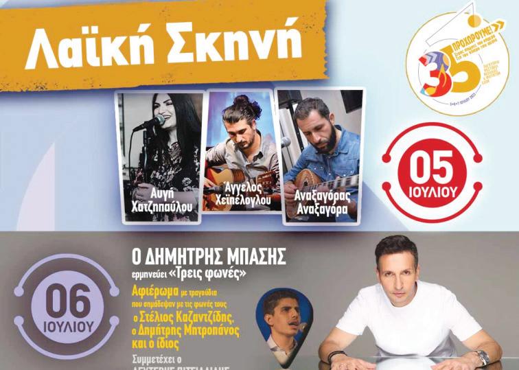 Στις 5 Ιουλίου, στη σκηνή θα εμφανιστούν οι Αυγή Χατζηπαύλου, Άγγελος Χεϊπέλογλου και Αναξαγόρας Αναξαγόρου.
