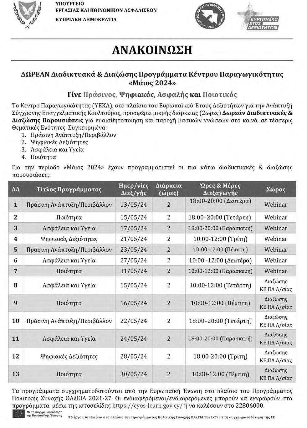 ΟΔΗΓΟΙ ΛΕΩΦΟΡΕΙΩΝ Ζητούνται οδηγοί με επαγγελματική άδεια οδήγησης λεωφορείου Οι ενδιαφερόμενοι/ες μπορούν να επικοινωνήσουν με τη Συντεχνία ΣΕΓΔΑΜΕΛΙΝ - ΠΕΟ στο τηλέφωνο 22 866500 Μεγάλη προσφορά από τα Συντεχνιακά Φαρμακεία «pharmaΣΥΝ» στους εργαζομένους Τα Συντεχνιακά Φαρμακεία «pharmaΣΥΝ» ξεκινούν μια πολύ μεγάλη προσφορά για τους εργαζομένους εισάγοντας την κάρτα βαθμών. Οι πελάτες των φαρμακείων μπορούν να εγκαταστήσουν την BonusΣΥΝ στα κινητά τους και να απολαμβάνουν σημαντικά οφέλη και εκπτώσεις