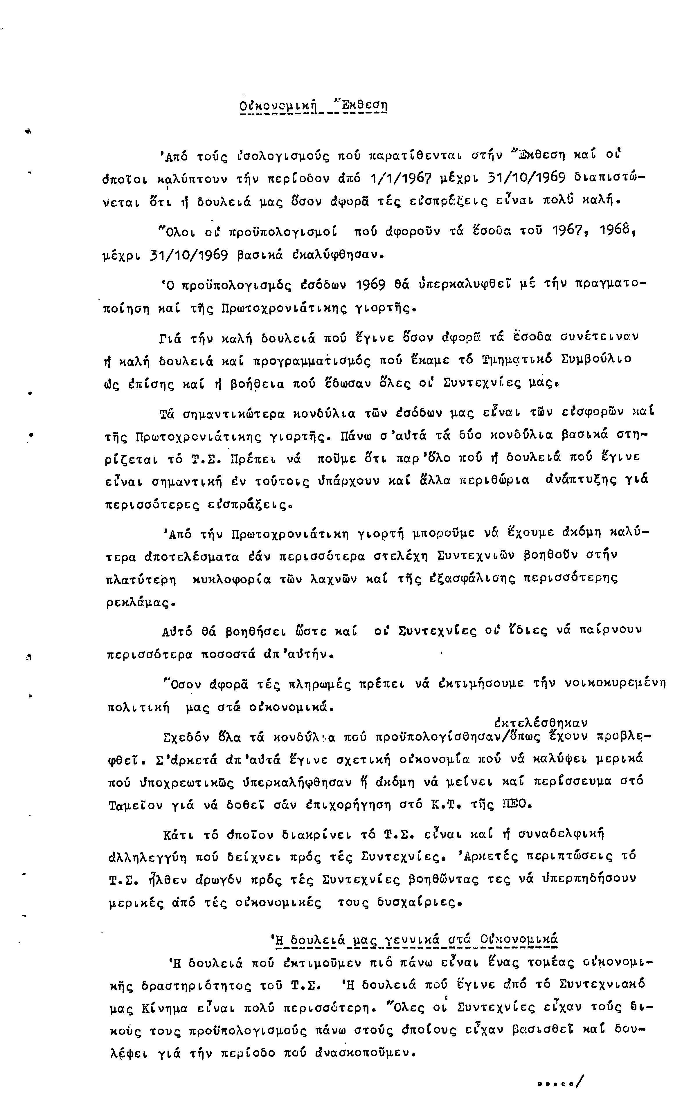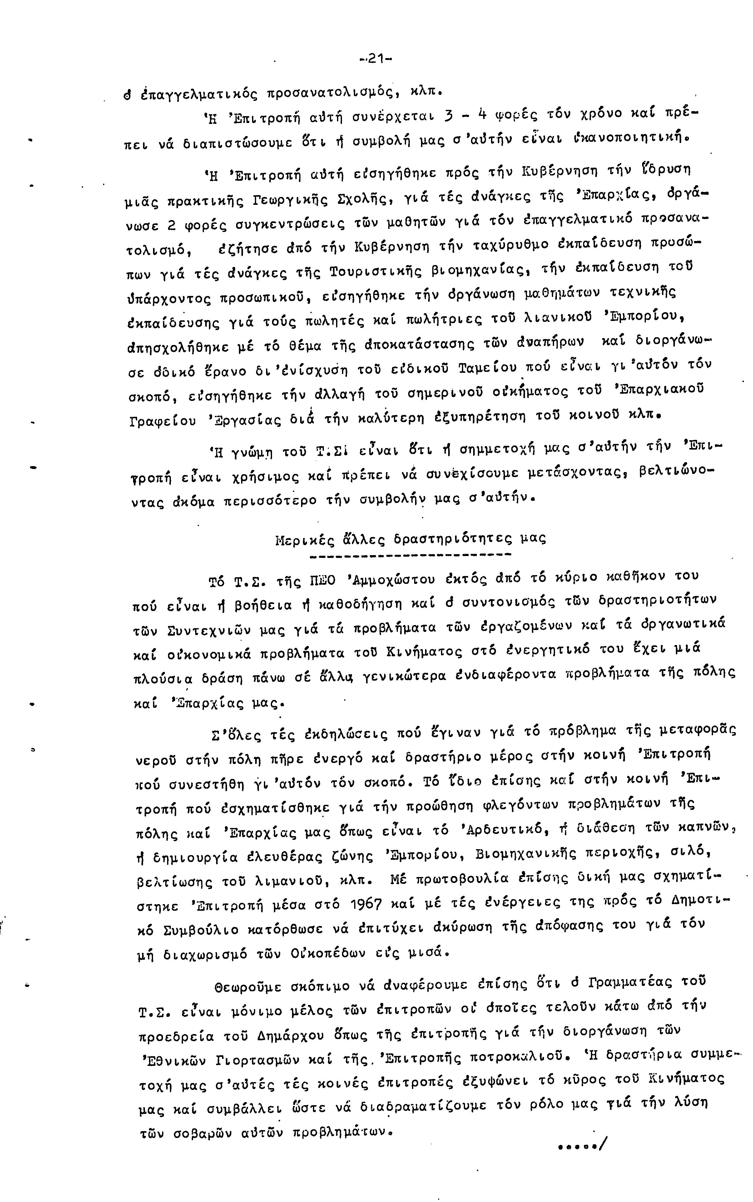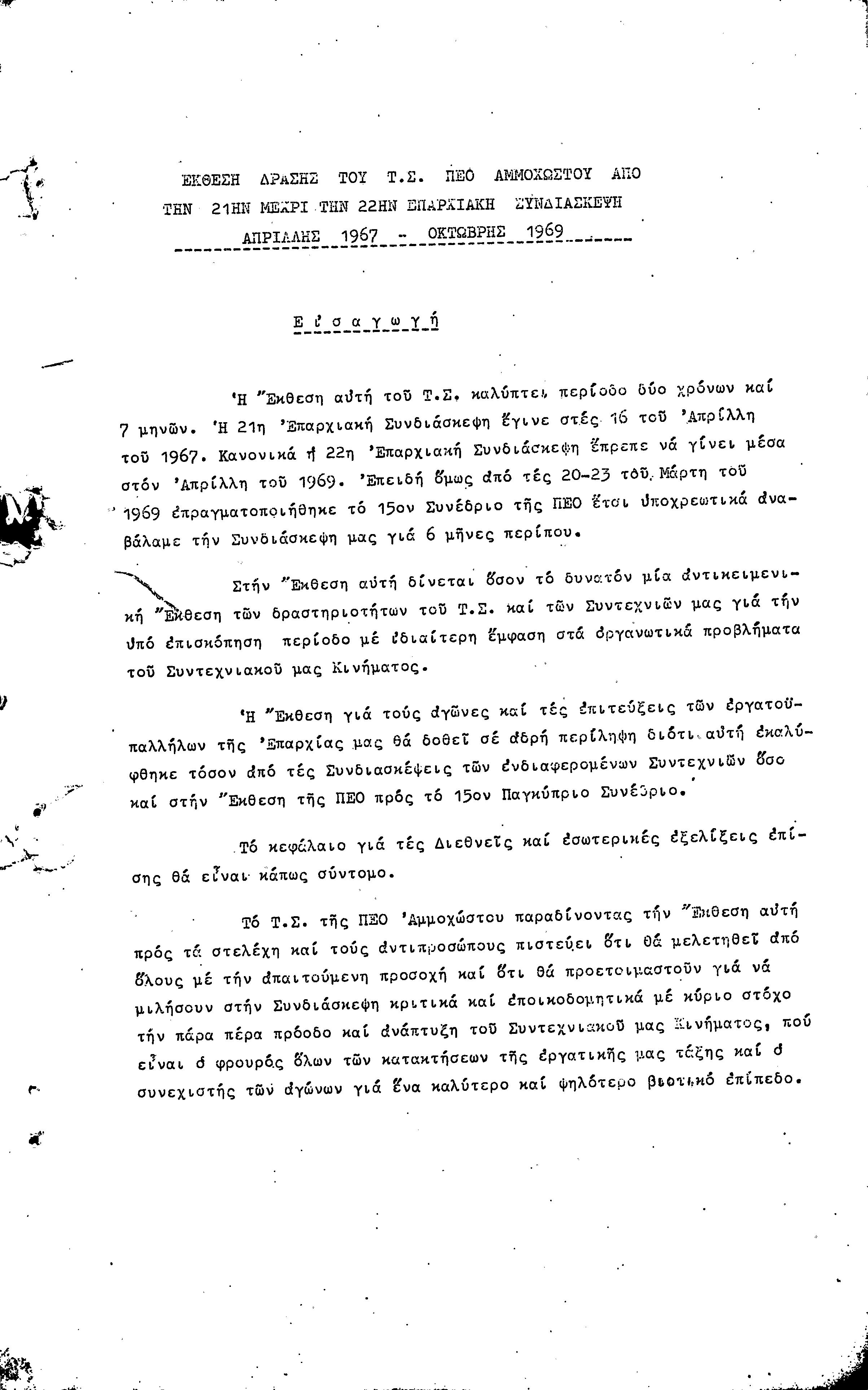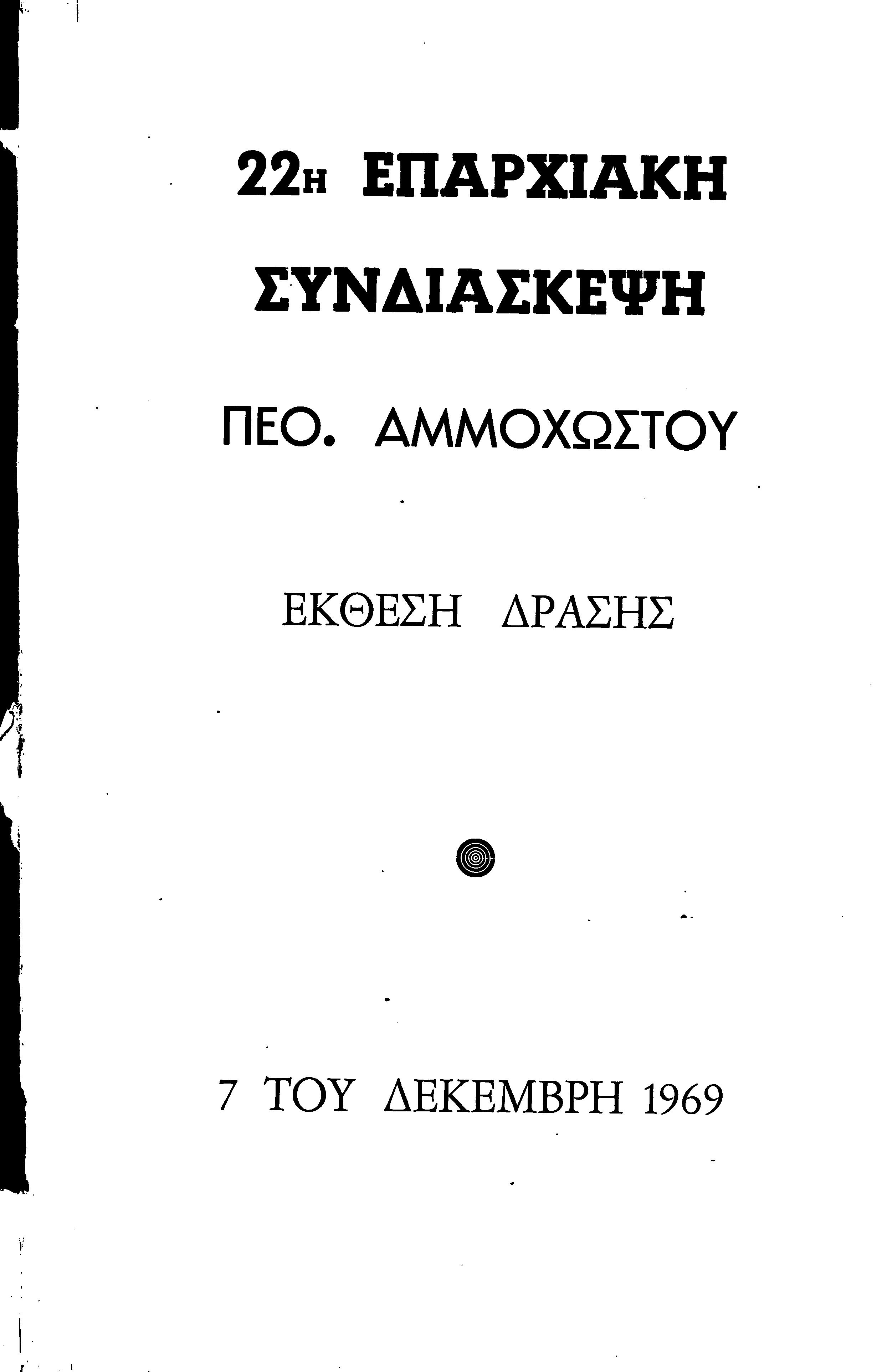 22η ΕΠΑΡΧΙΑΚΗ ΣΥΝΔΙΑΣΚΕΨΗ ΠΕΟ ΑΜΜΟΧΩΣΤΟΥ , 7.11. 1969 (ΕΚΘΕΣΗ ΔΡΑΣΗΣ)