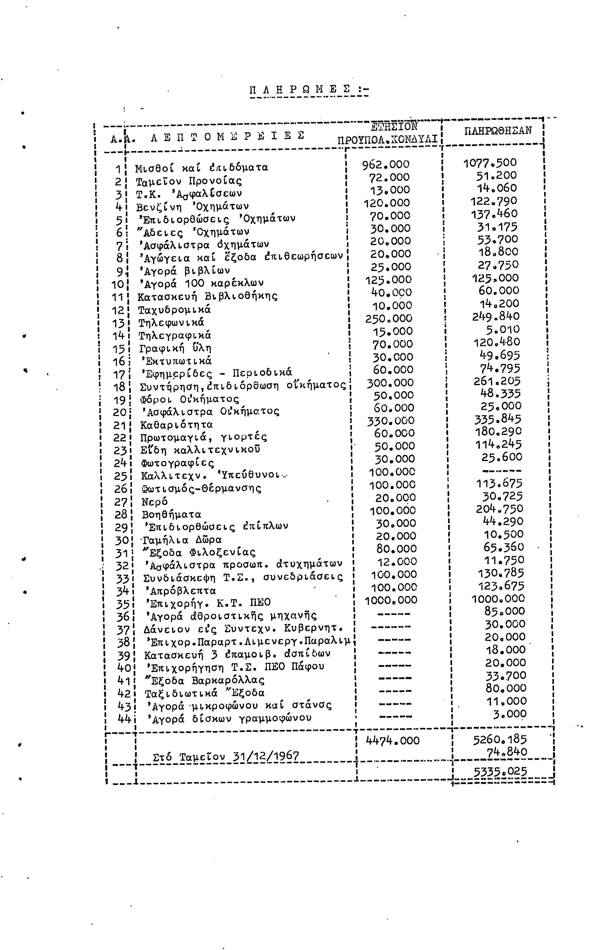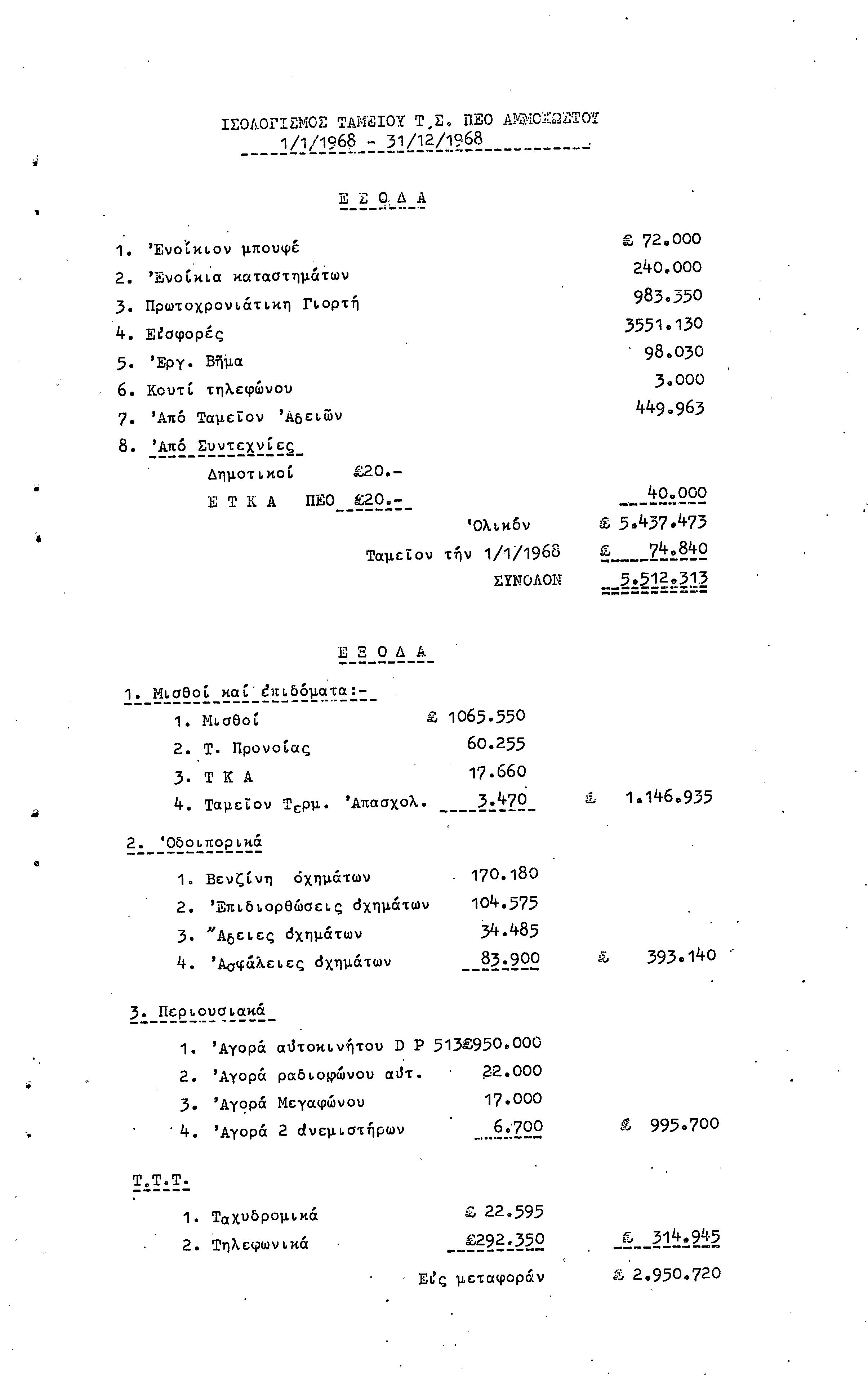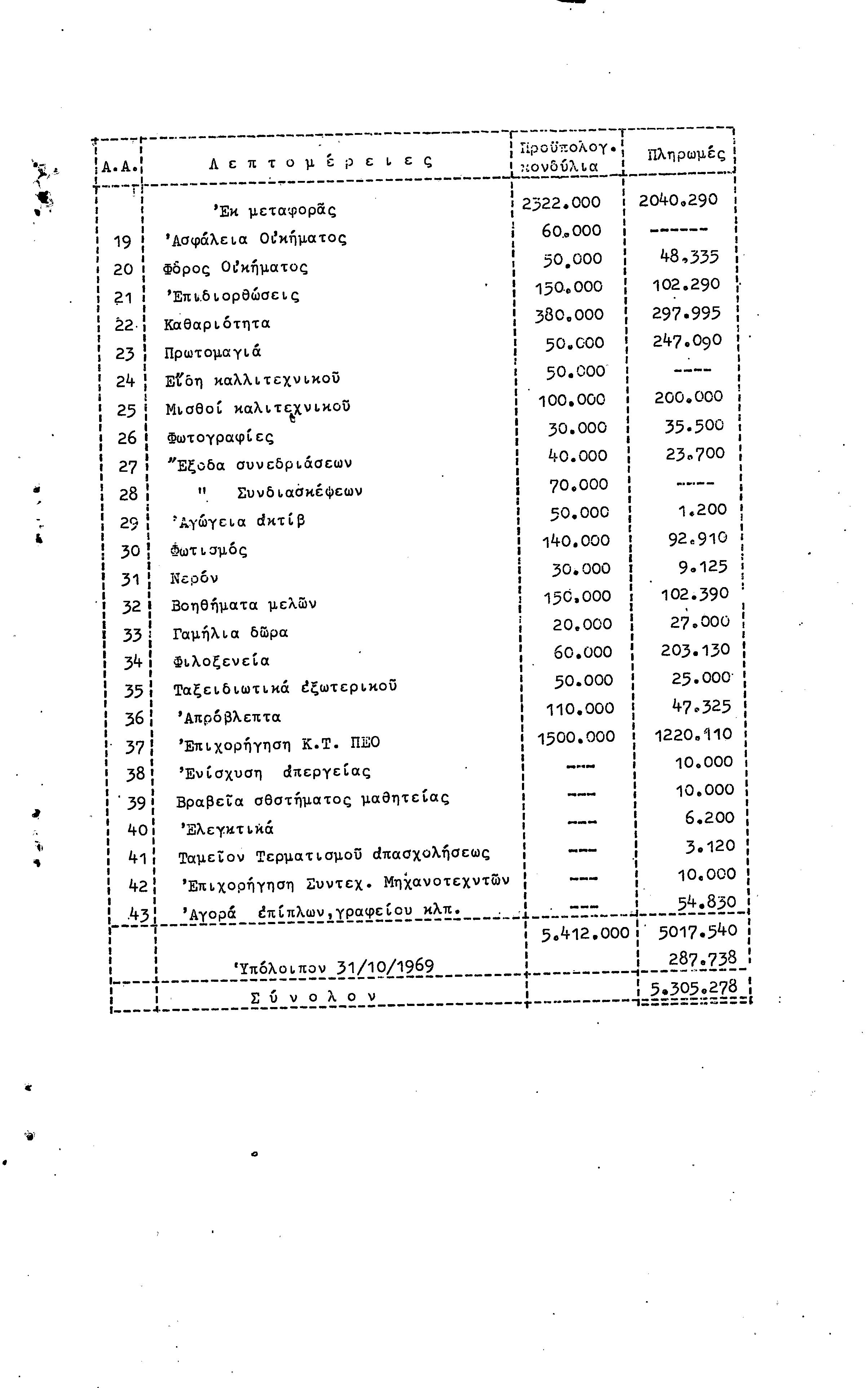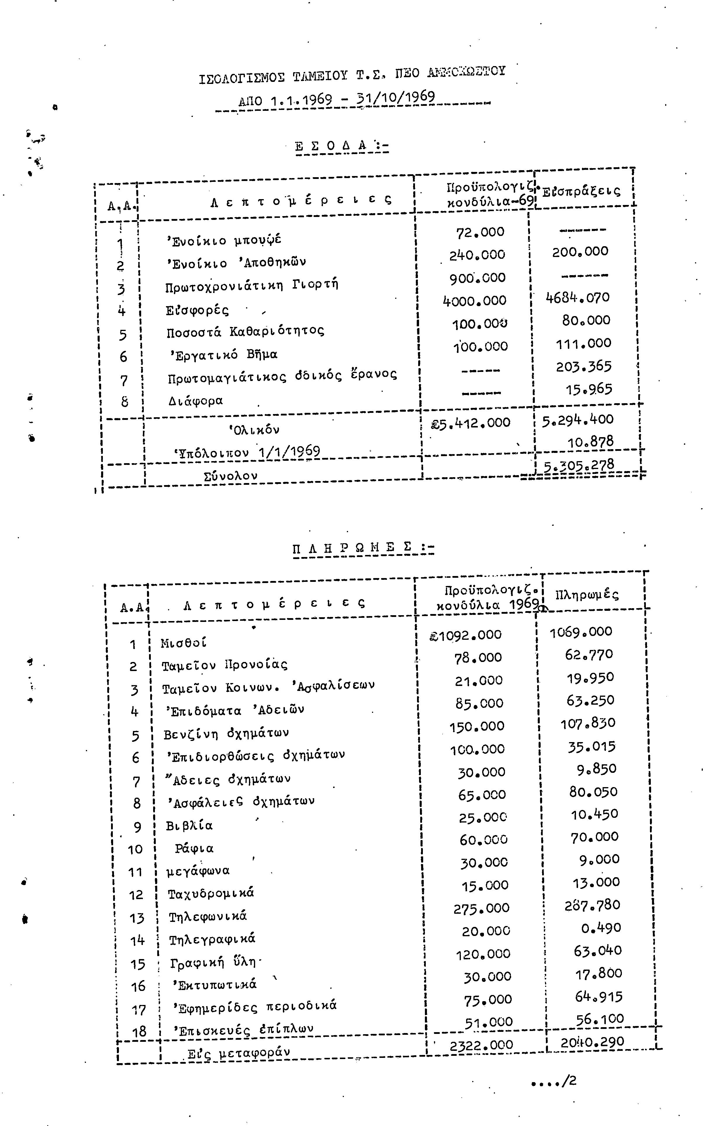 22η ΕΠΑΡΧΙΑΚΗ ΣΥΝΔΙΑΣΚΕΨΗ ΠΕΟ ΑΜΜΟΧΩΣΤΟΥ , 7.11. 1969 (ΕΚΘΕΣΗ ΔΡΑΣΗΣ)