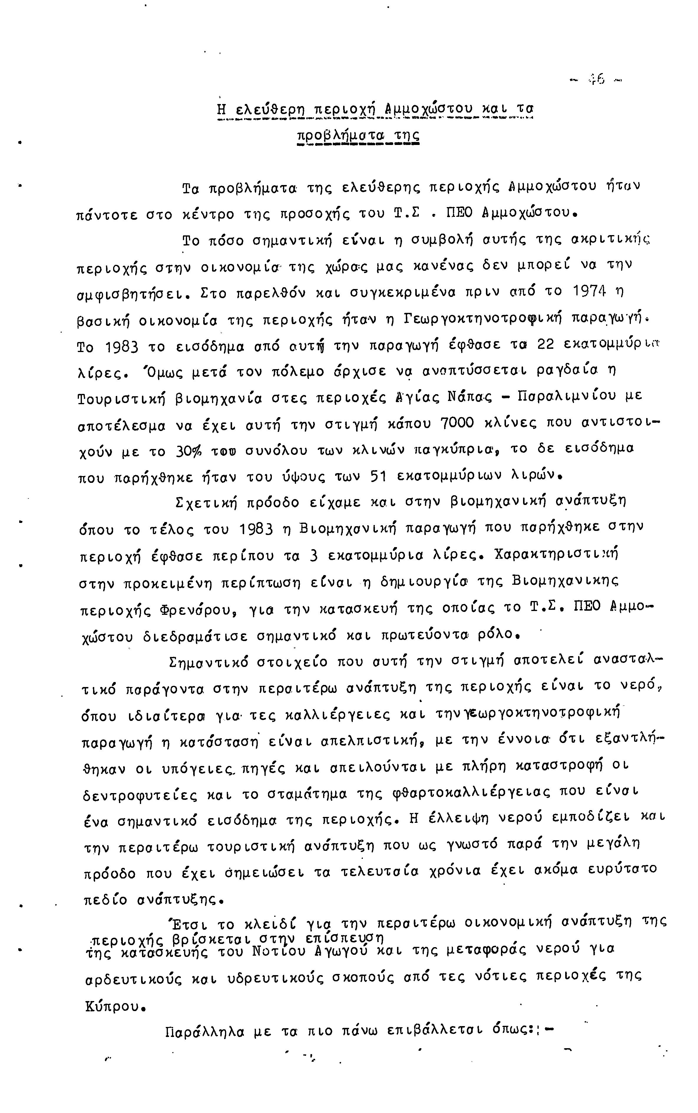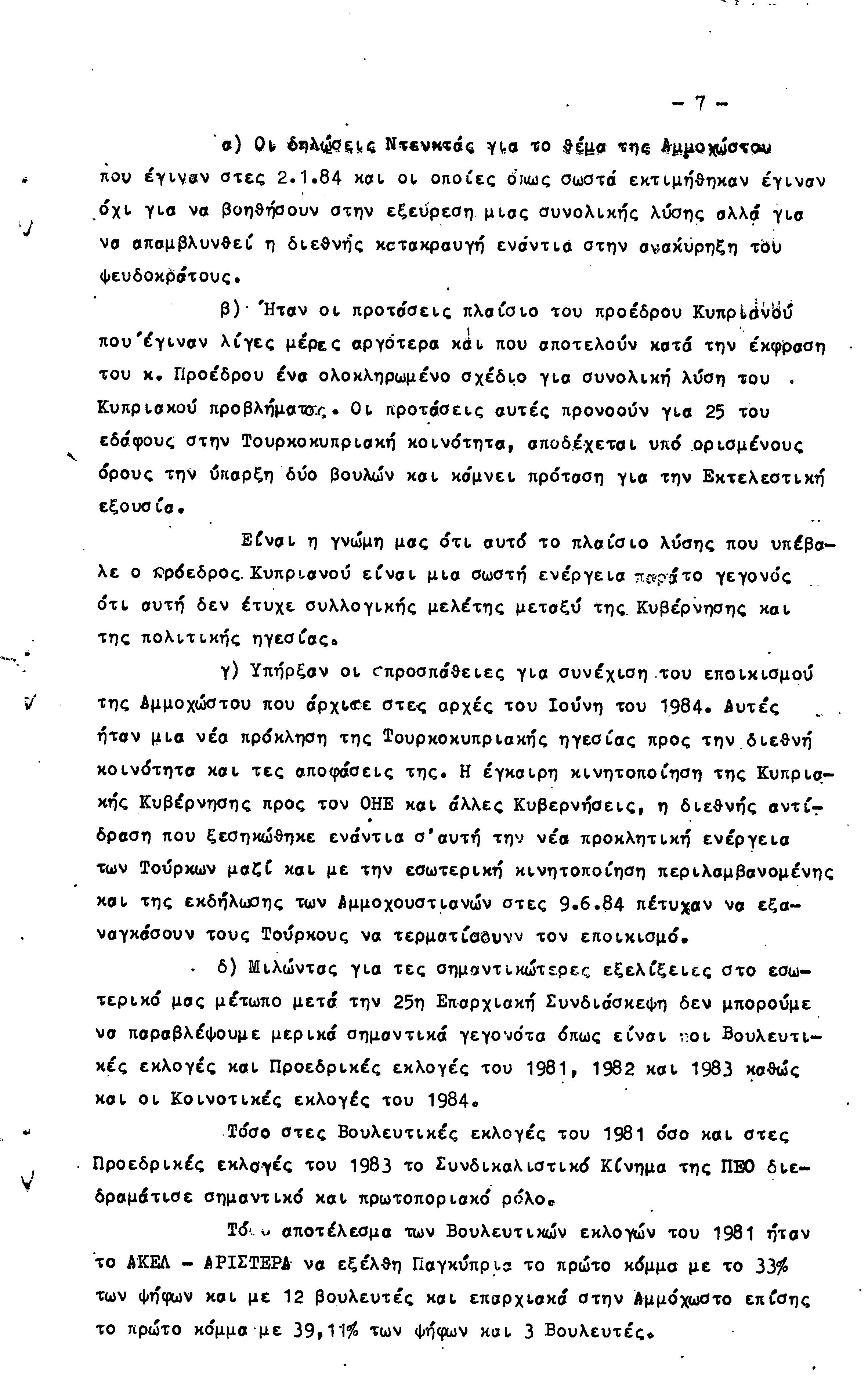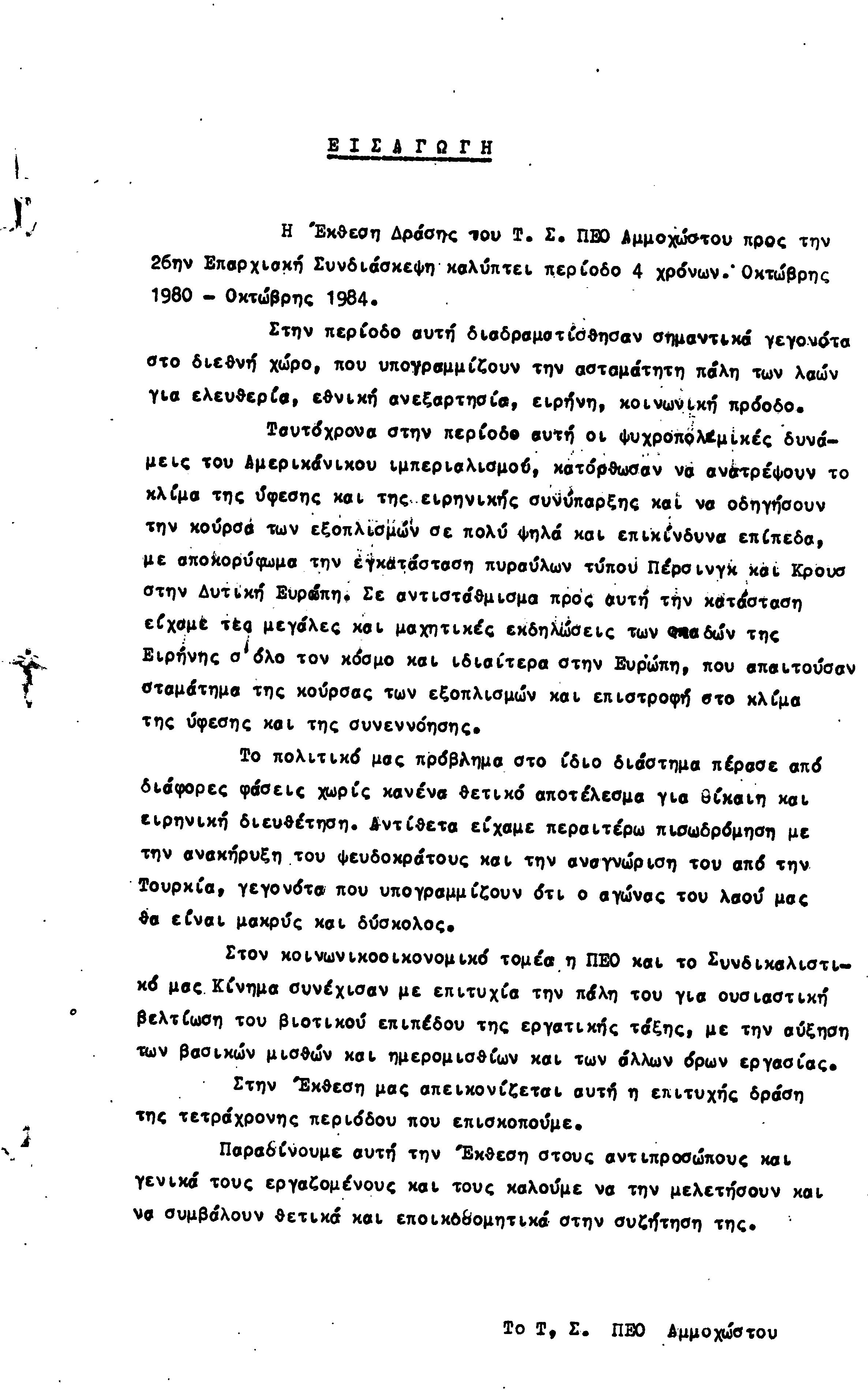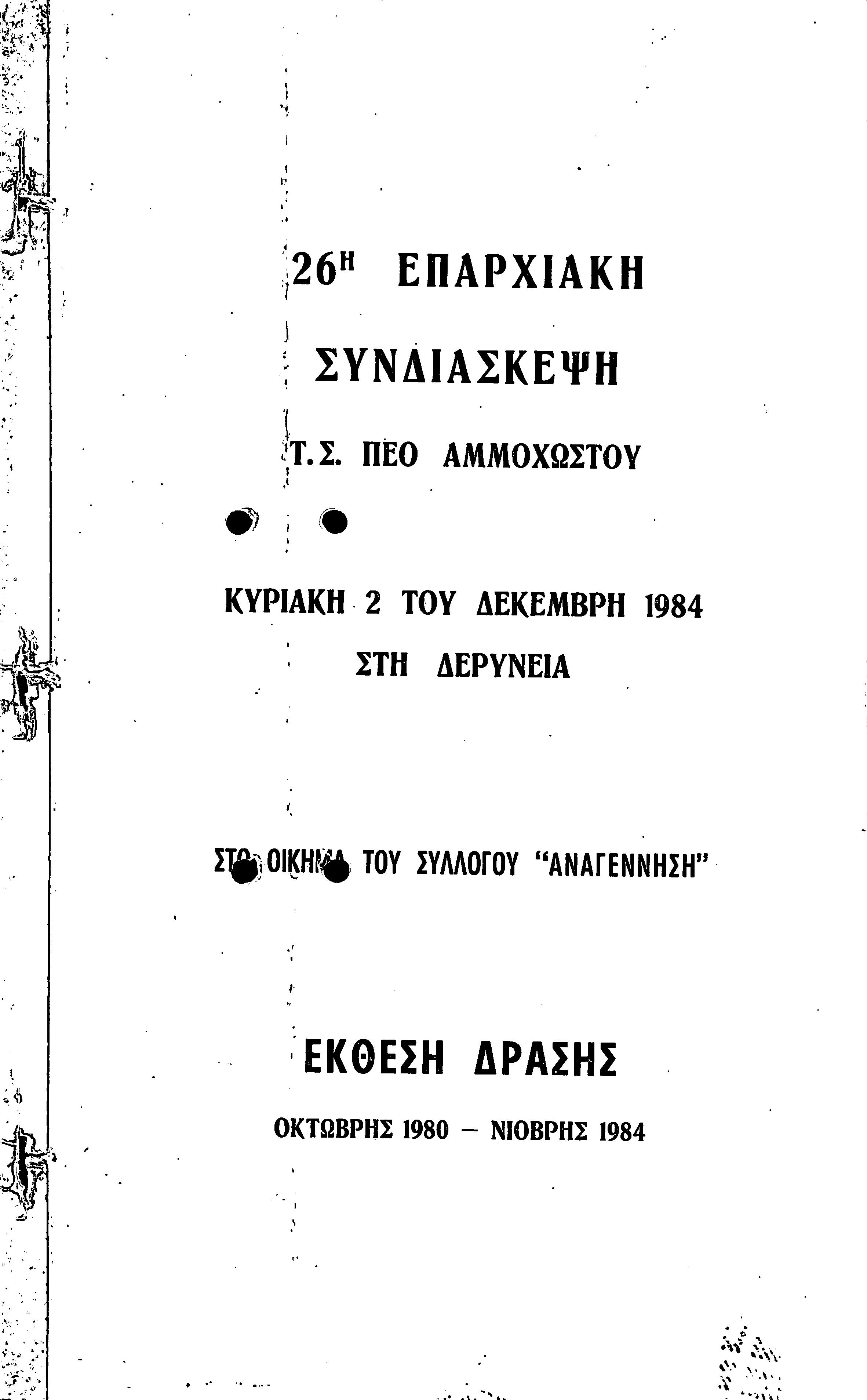 26η ΕΠΑΡΧΙΑΚΗ ΣΥΝΔΙΑΣΚΕΨΗ Τ.Σ. ΠΕΟ ΑΜΜΟΧΩΣΤΟΥ, 2.12.1984 (ΕΚΘΕΣΗ ΔΡΑΣΗΣ)
