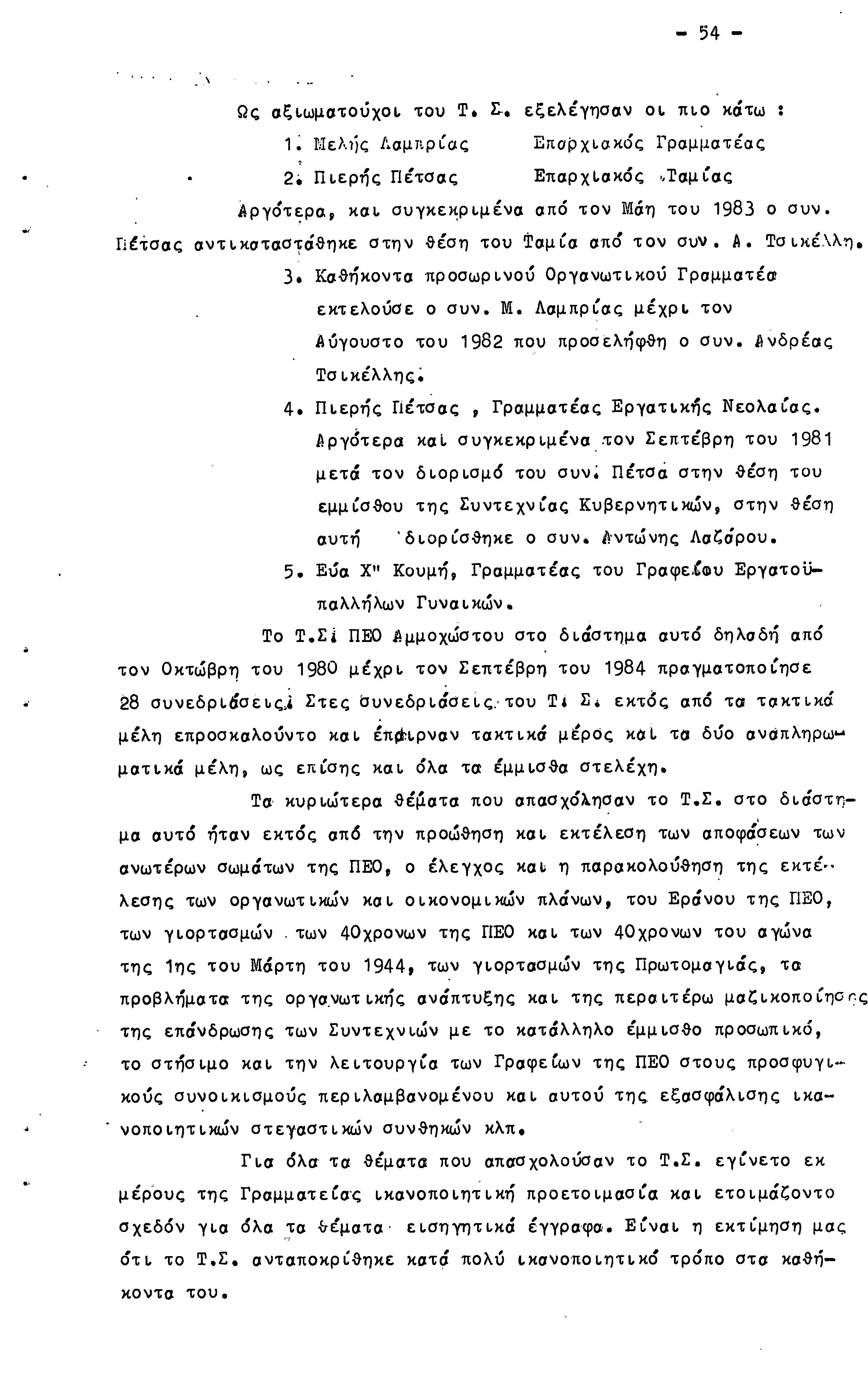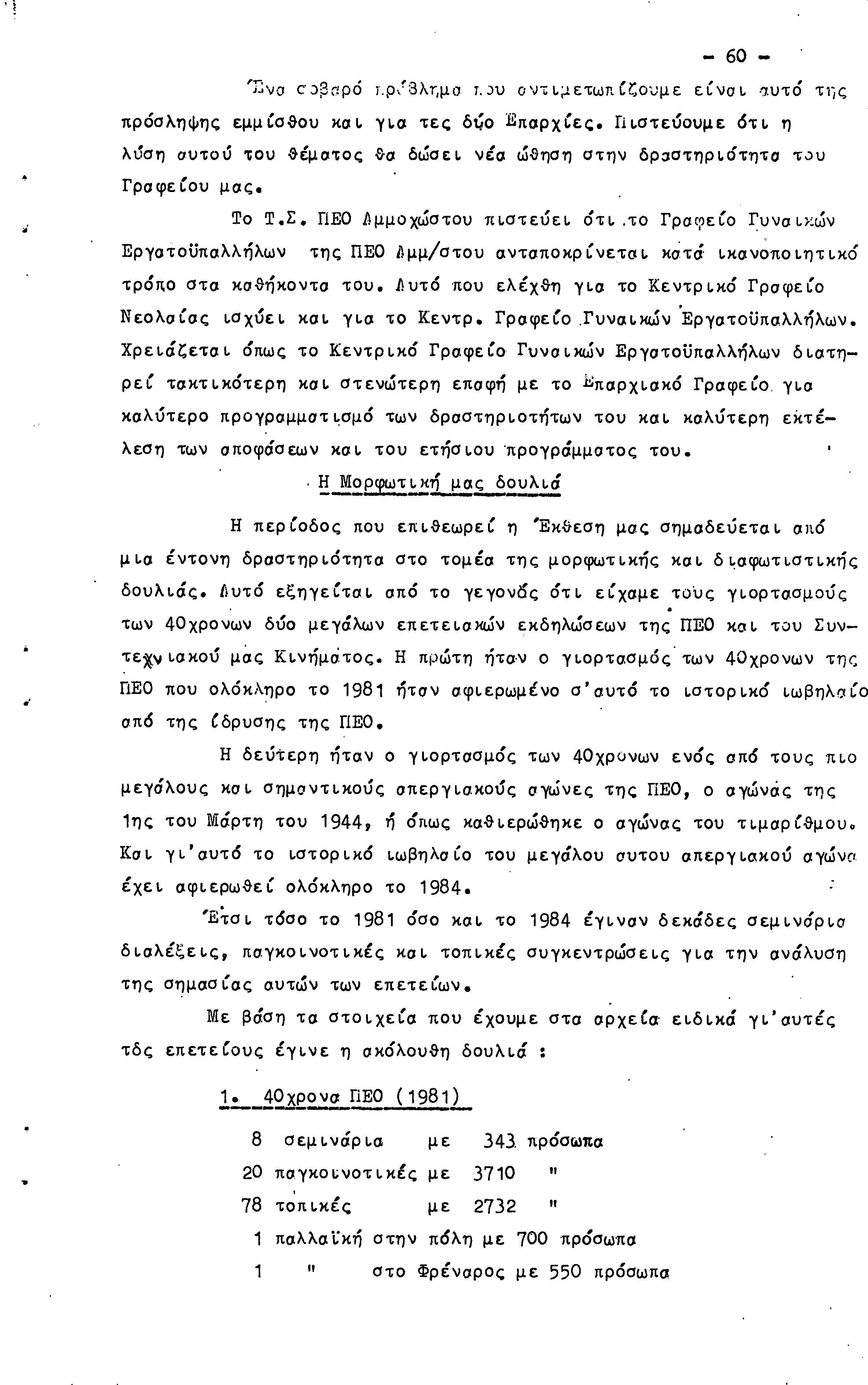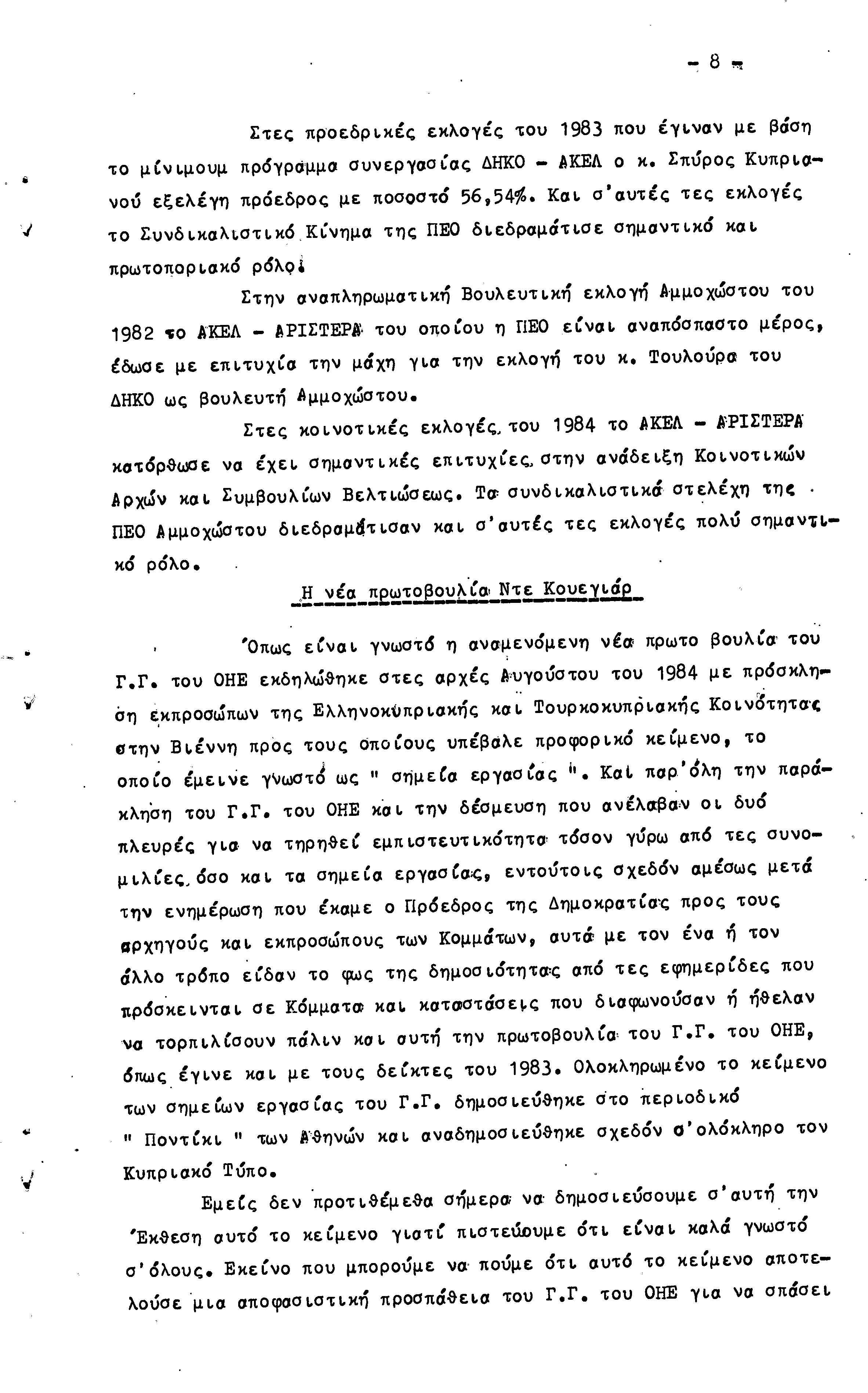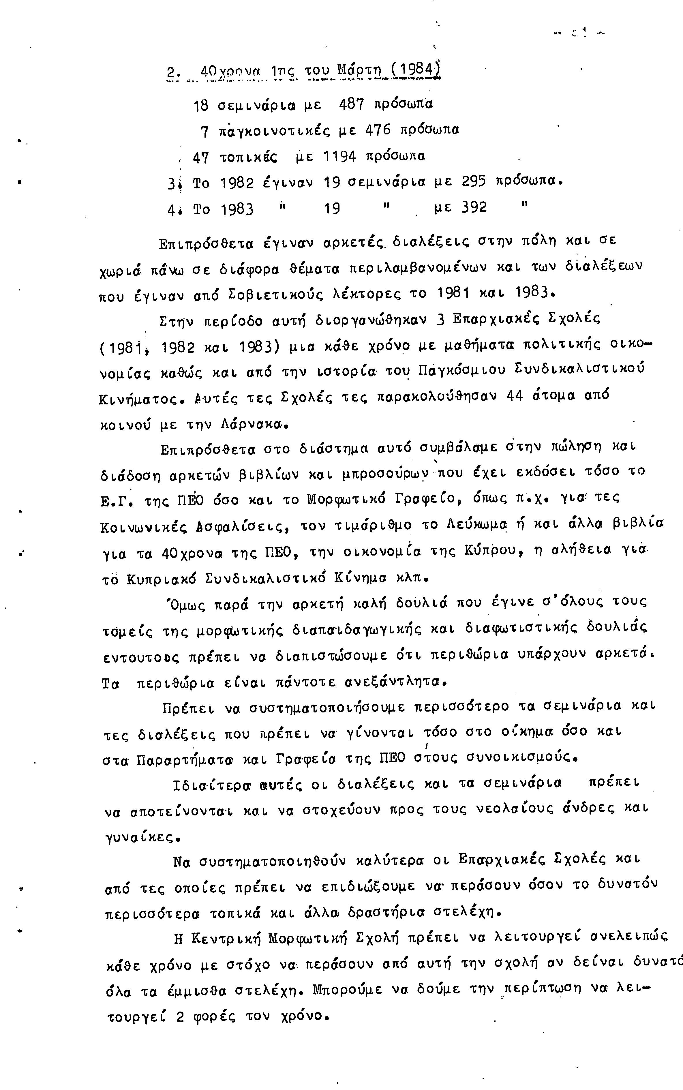 26η ΕΠΑΡΧΙΑΚΗ ΣΥΝΔΙΑΣΚΕΨΗ Τ.Σ. ΠΕΟ ΑΜΜΟΧΩΣΤΟΥ, 2.12.1984 (ΕΚΘΕΣΗ ΔΡΑΣΗΣ)