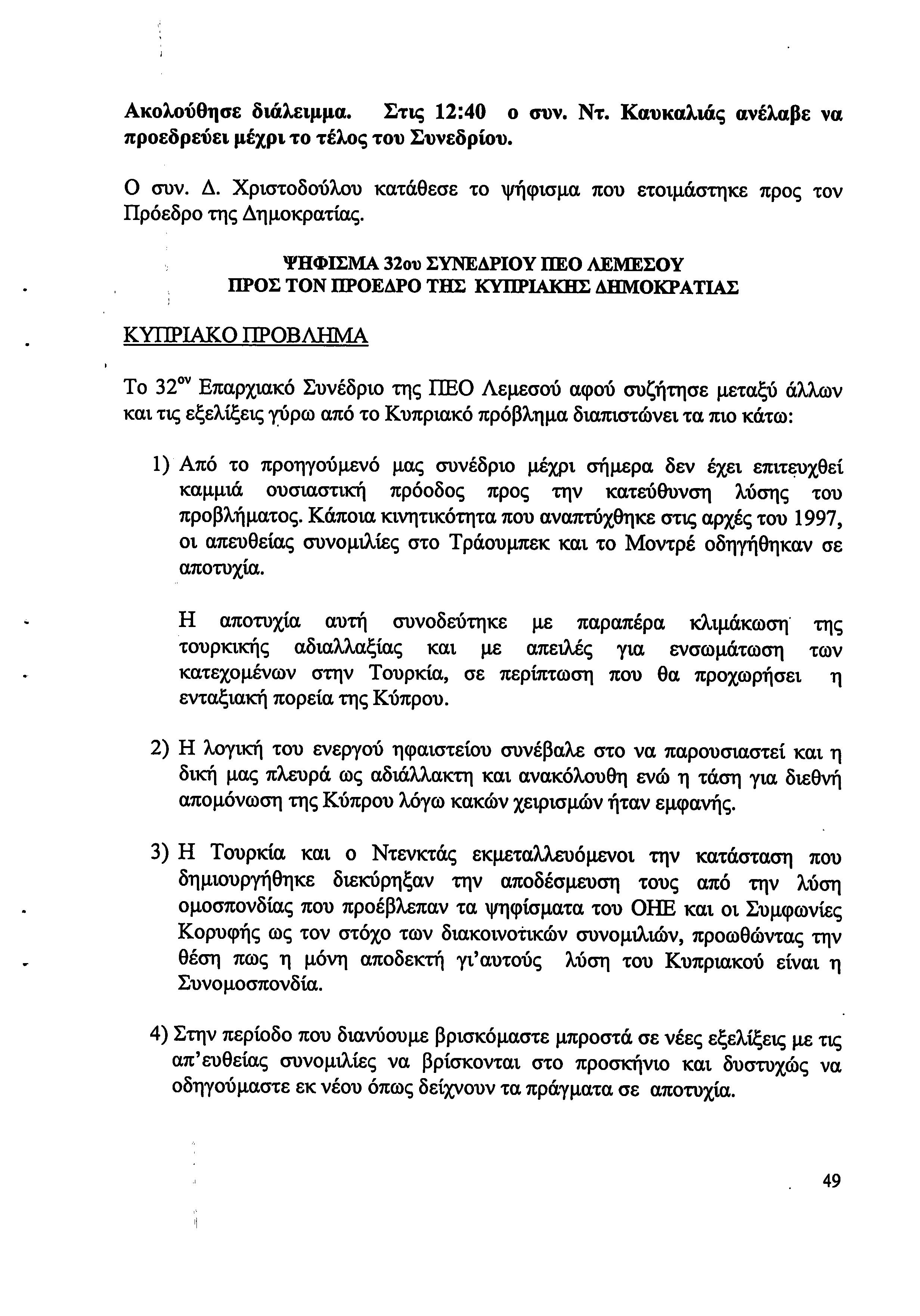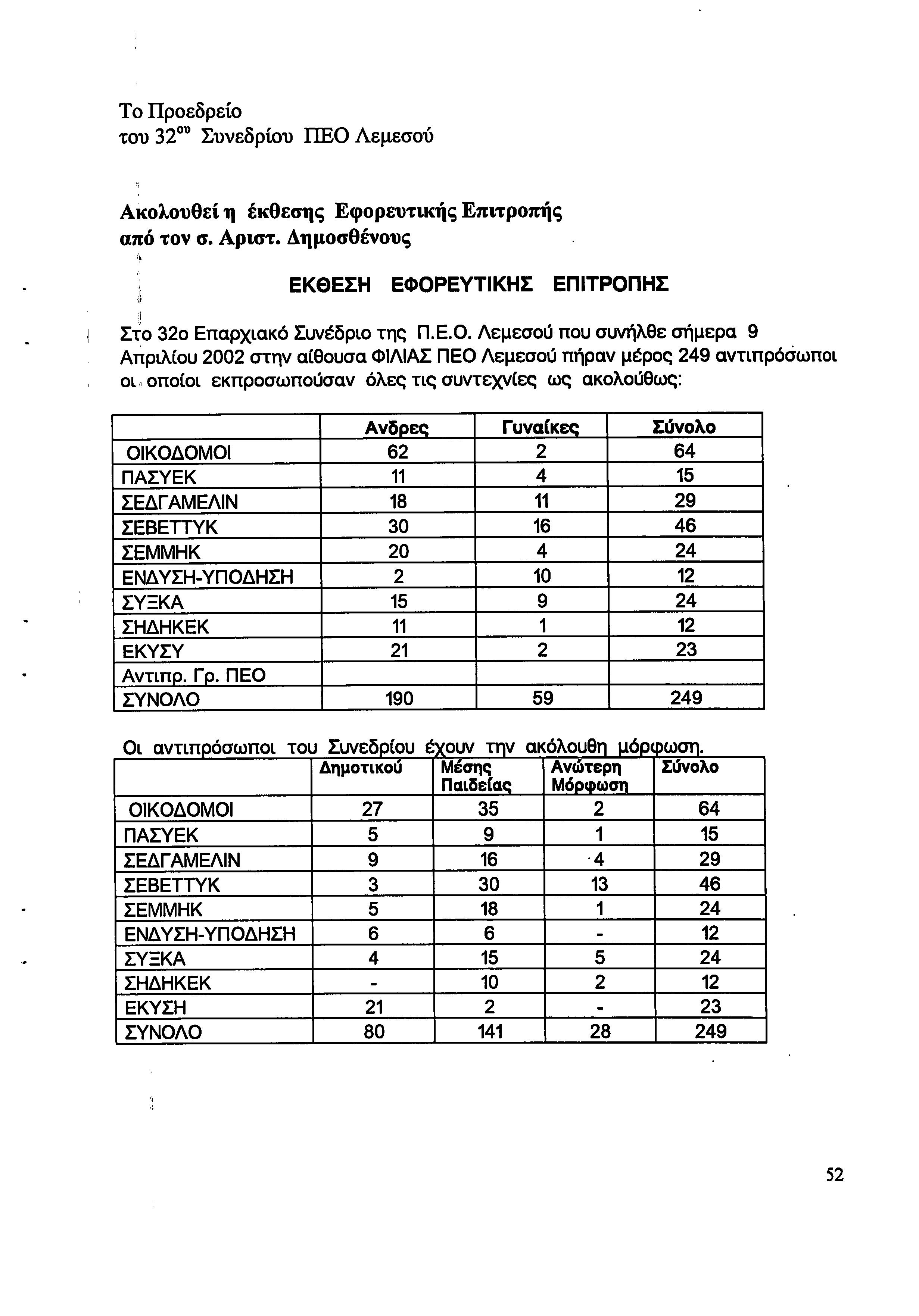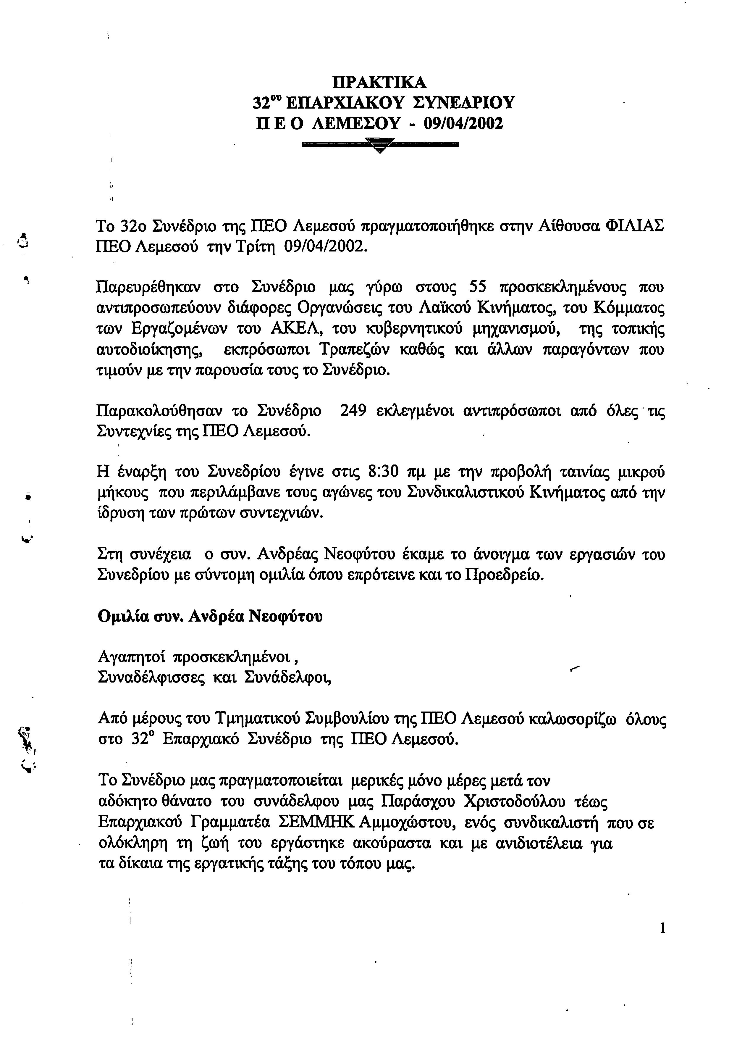 32ο ΕΠΑΡΧΙΑΚΟ ΣΥΝΕΔΡΙΟ Τ.Σ. ΠΕΟ ΛΕΜΕΣΟΥ, 9.04.2002 ( ΠΡΑΚΤΙΚΑ)
