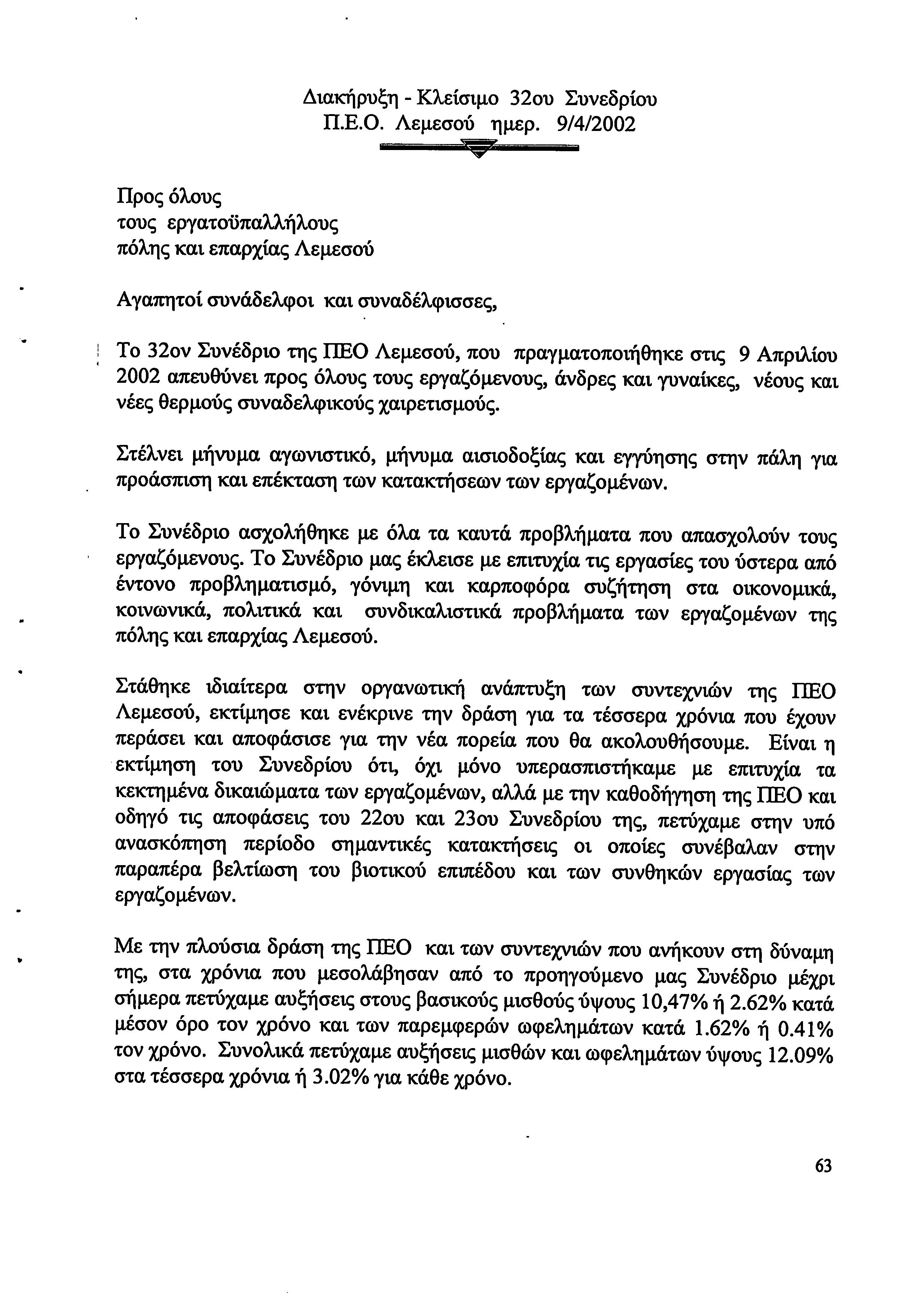 32ο ΕΠΑΡΧΙΑΚΟ ΣΥΝΕΔΡΙΟ Τ.Σ. ΠΕΟ ΛΕΜΕΣΟΥ, 9.04.2002 ( ΠΡΑΚΤΙΚΑ) by Παγκύπρια Εργατική Ομοσπονδία - Issuu