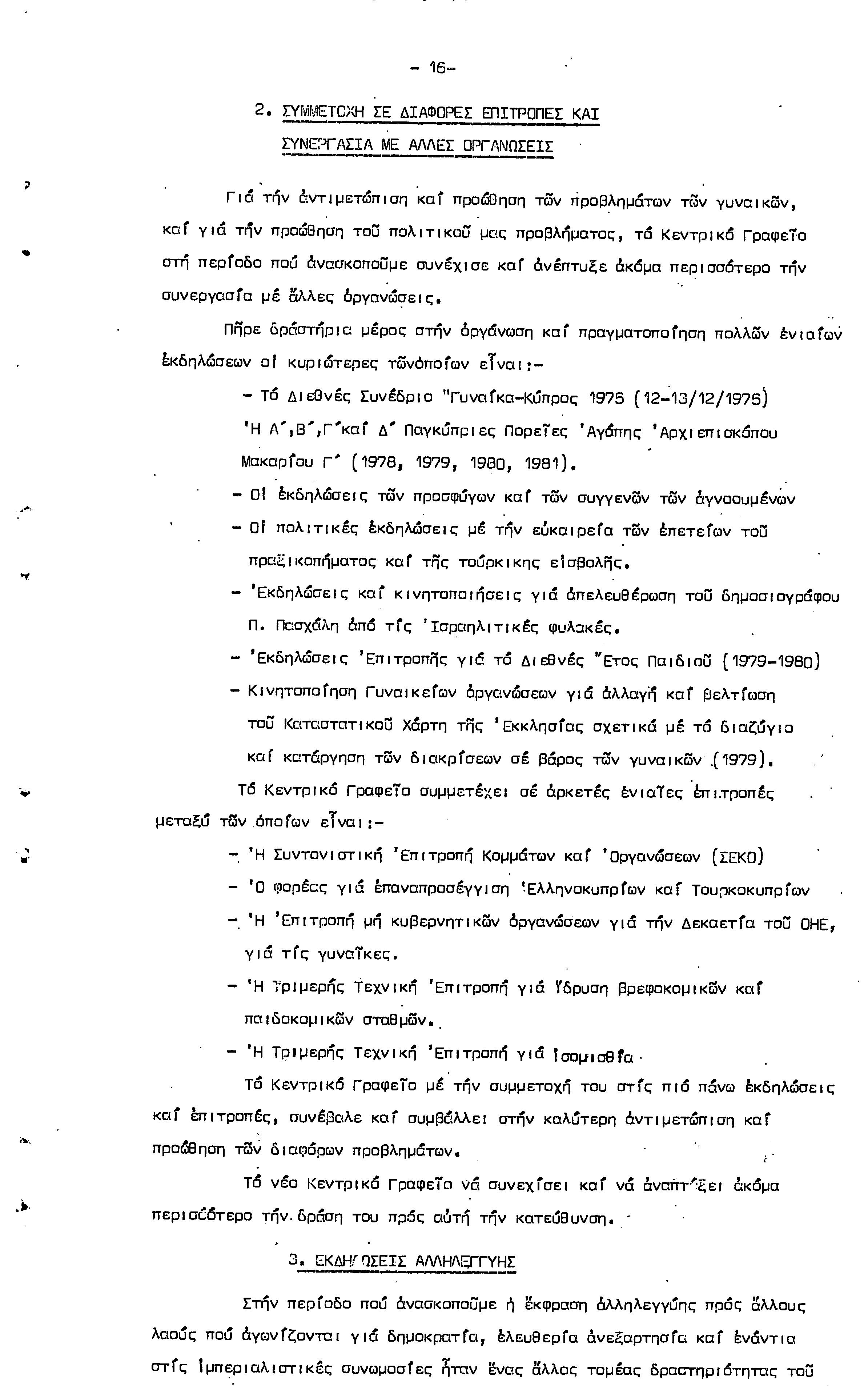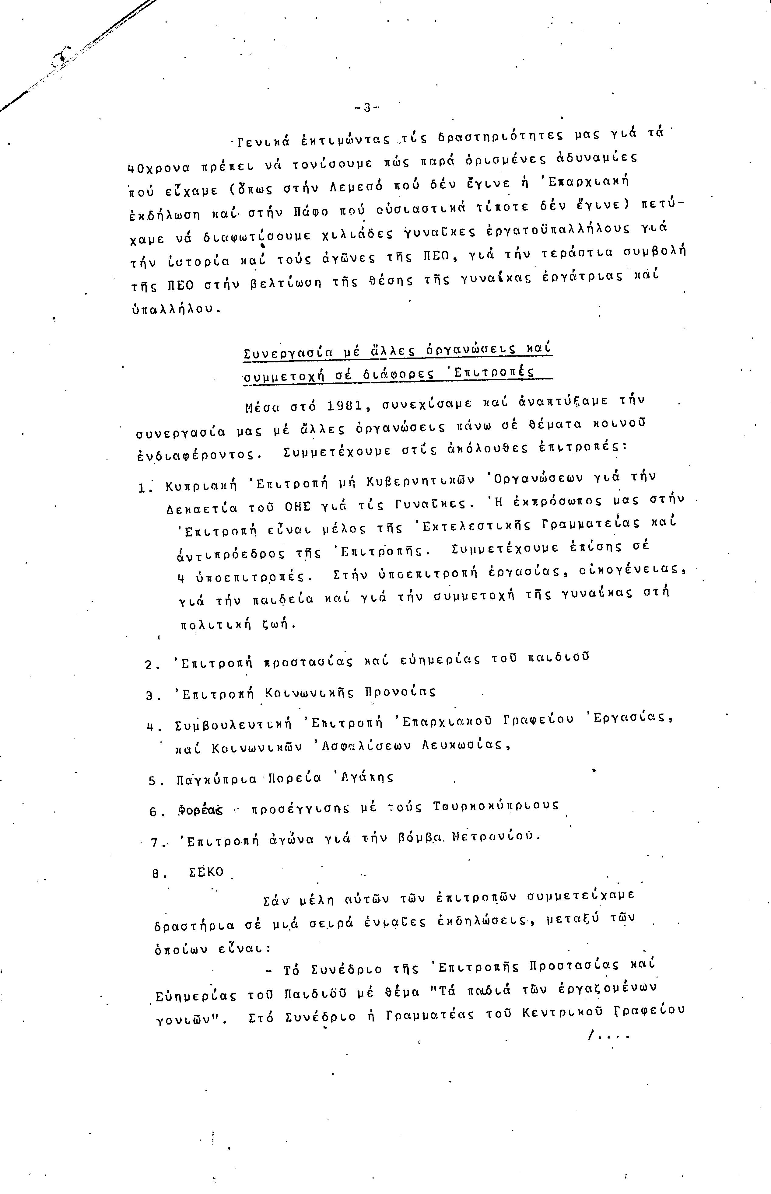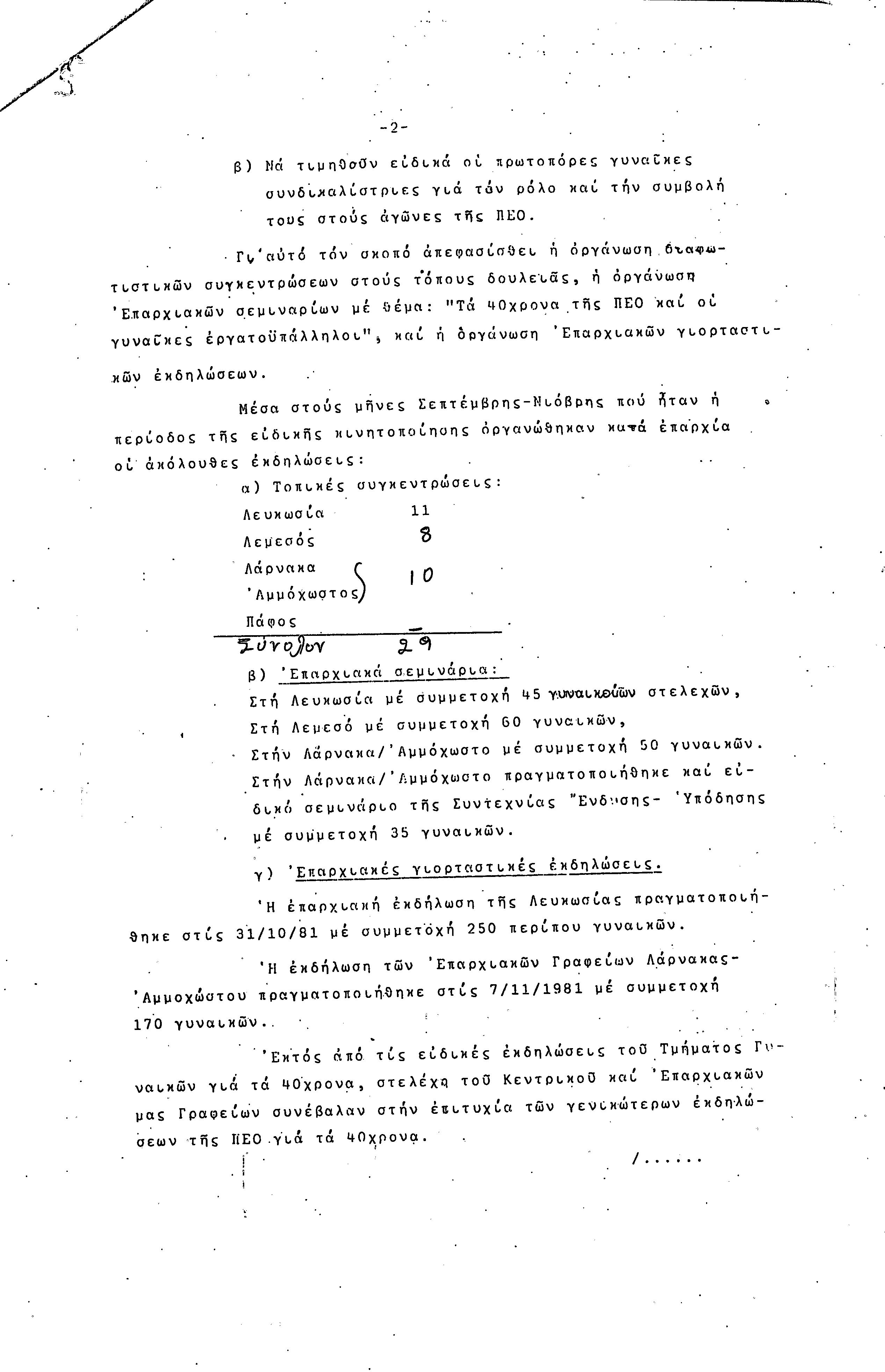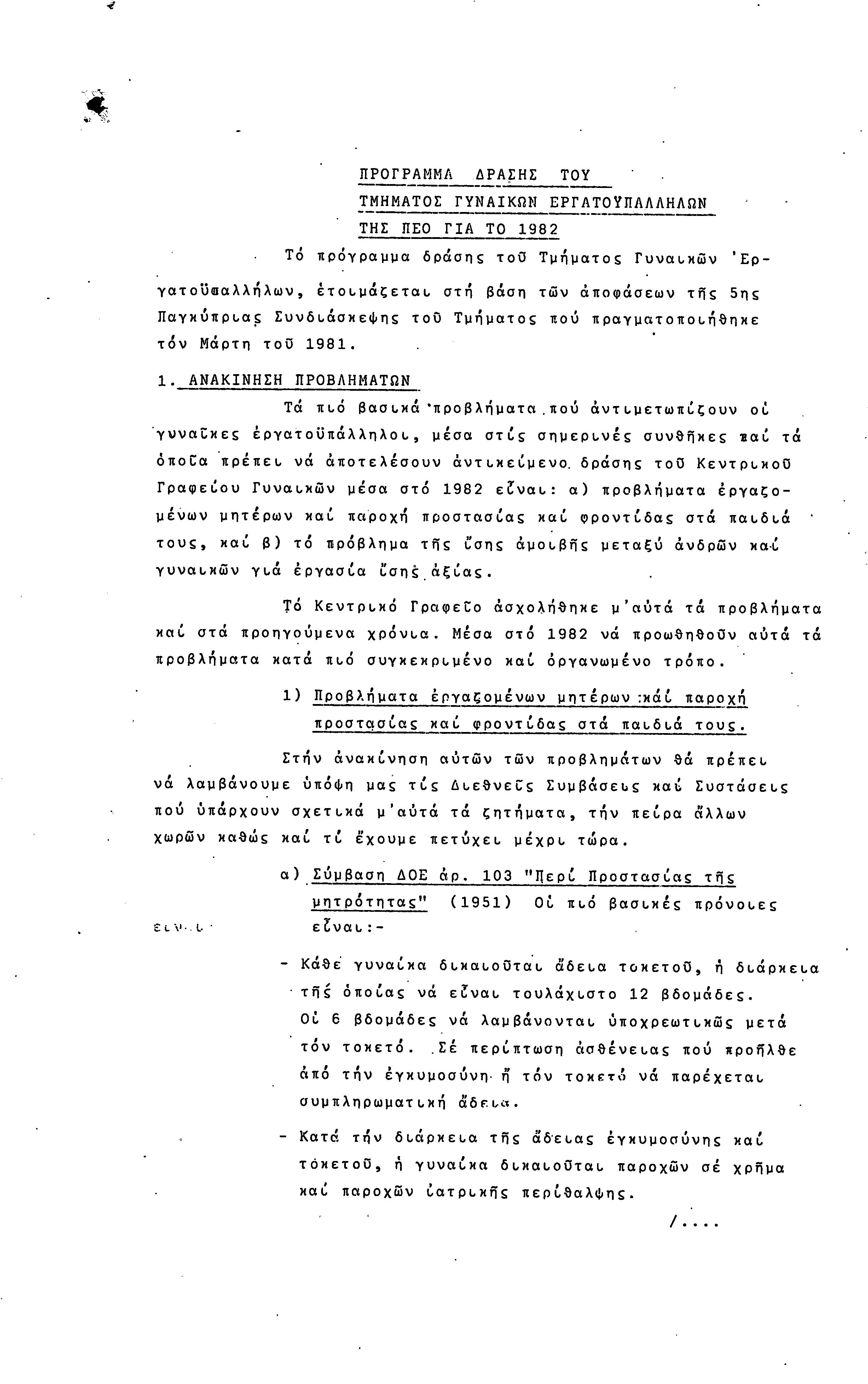 5η ΠΑΓΚΥΠΡΙΑ ΣΥΝΔΙΑΣΚΕΨΗ ΤΜΗΜΑΤΟΣ ΓΥΝΑΙΚΩΝ ΕΡΓΑΤΟΥΠΑΛΛΗΛΩΝ ΠΕΟ, 15.03.1981 ( ΕΚΘΕΣΗ ΔΡΑΣΗΣ ΟΚΤΩΒΡΗΣ