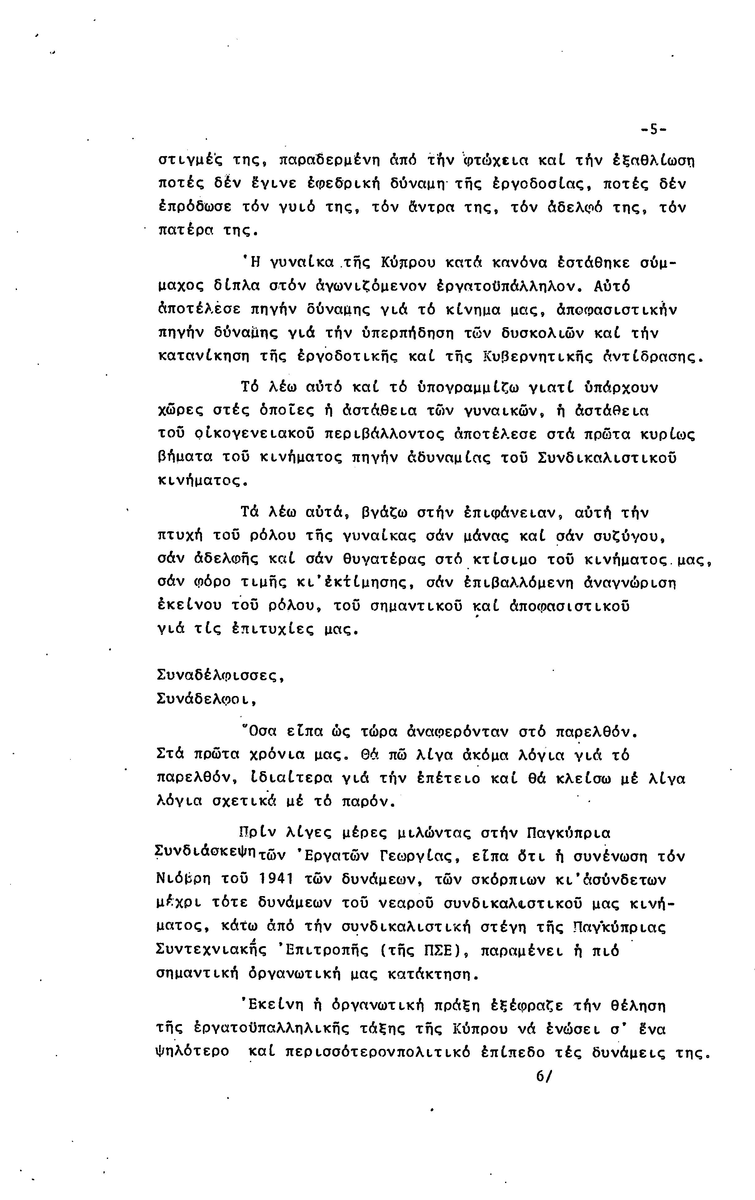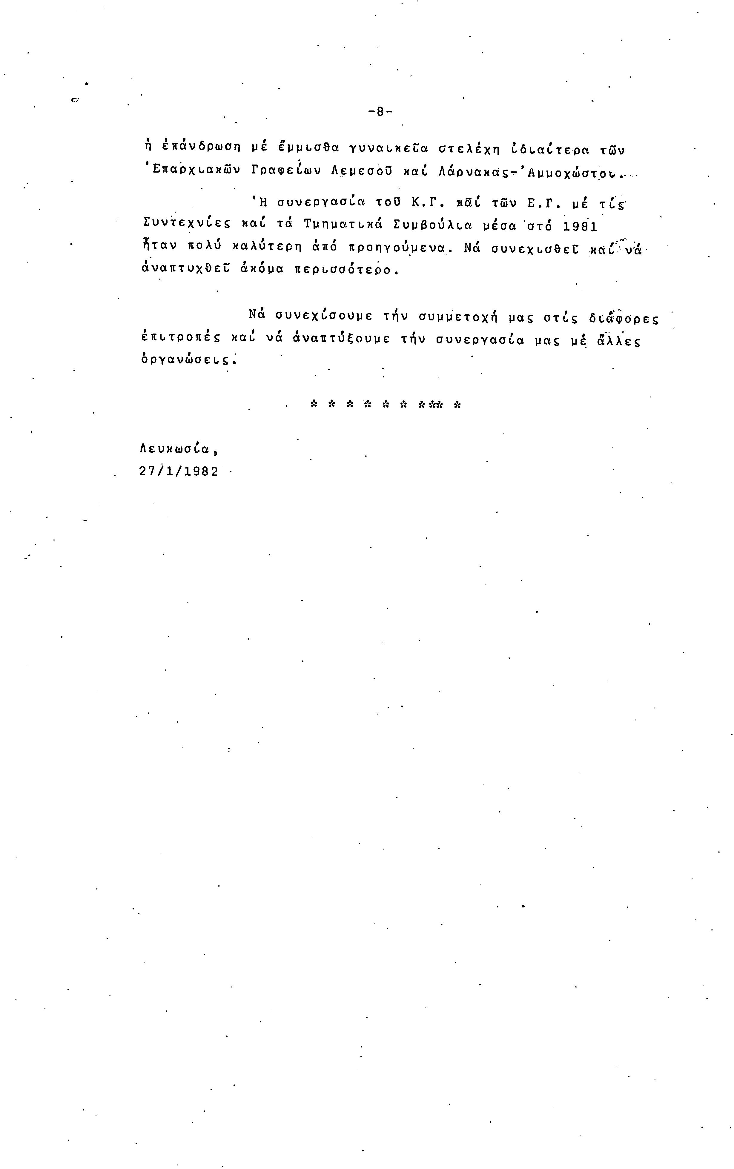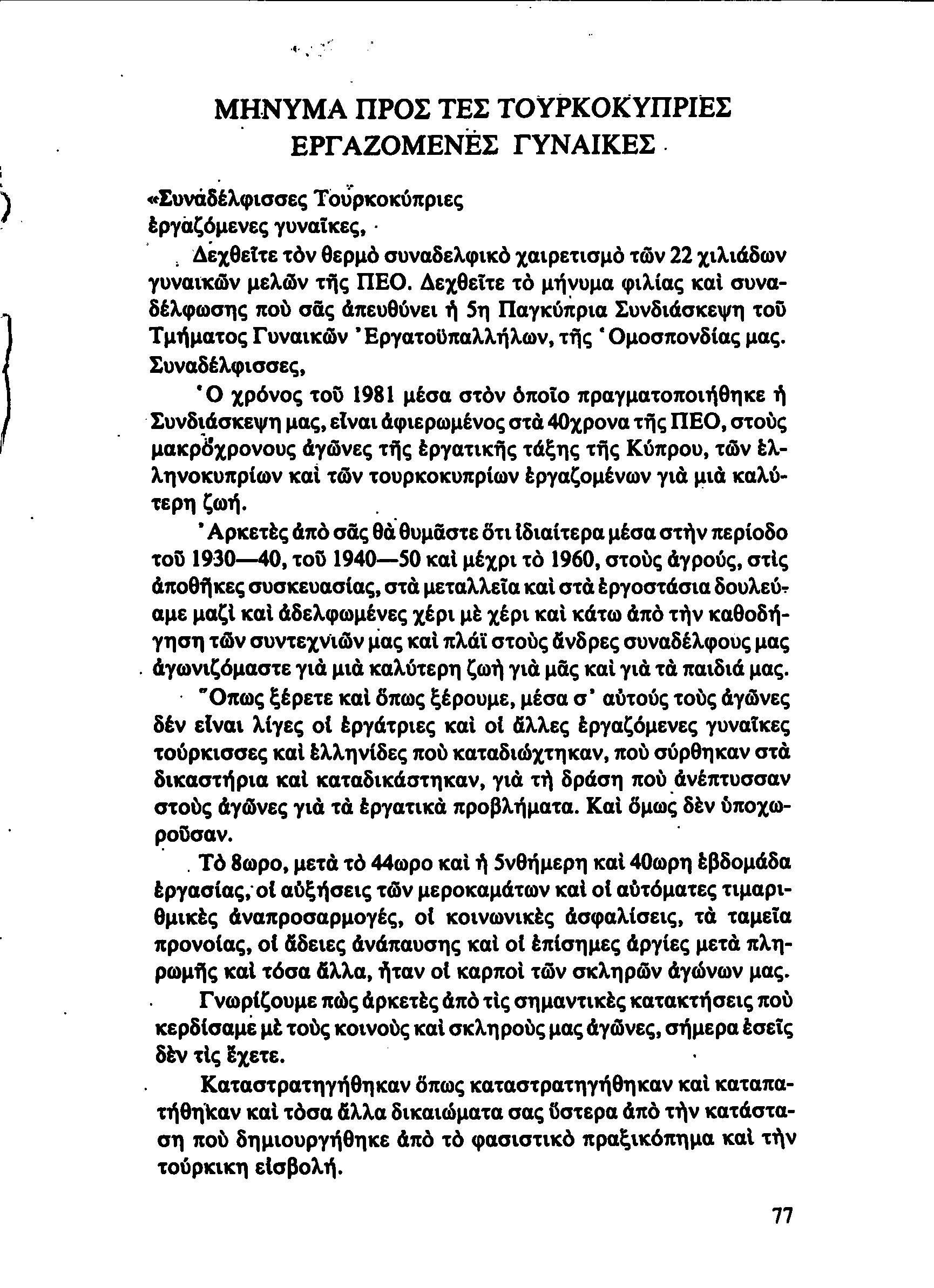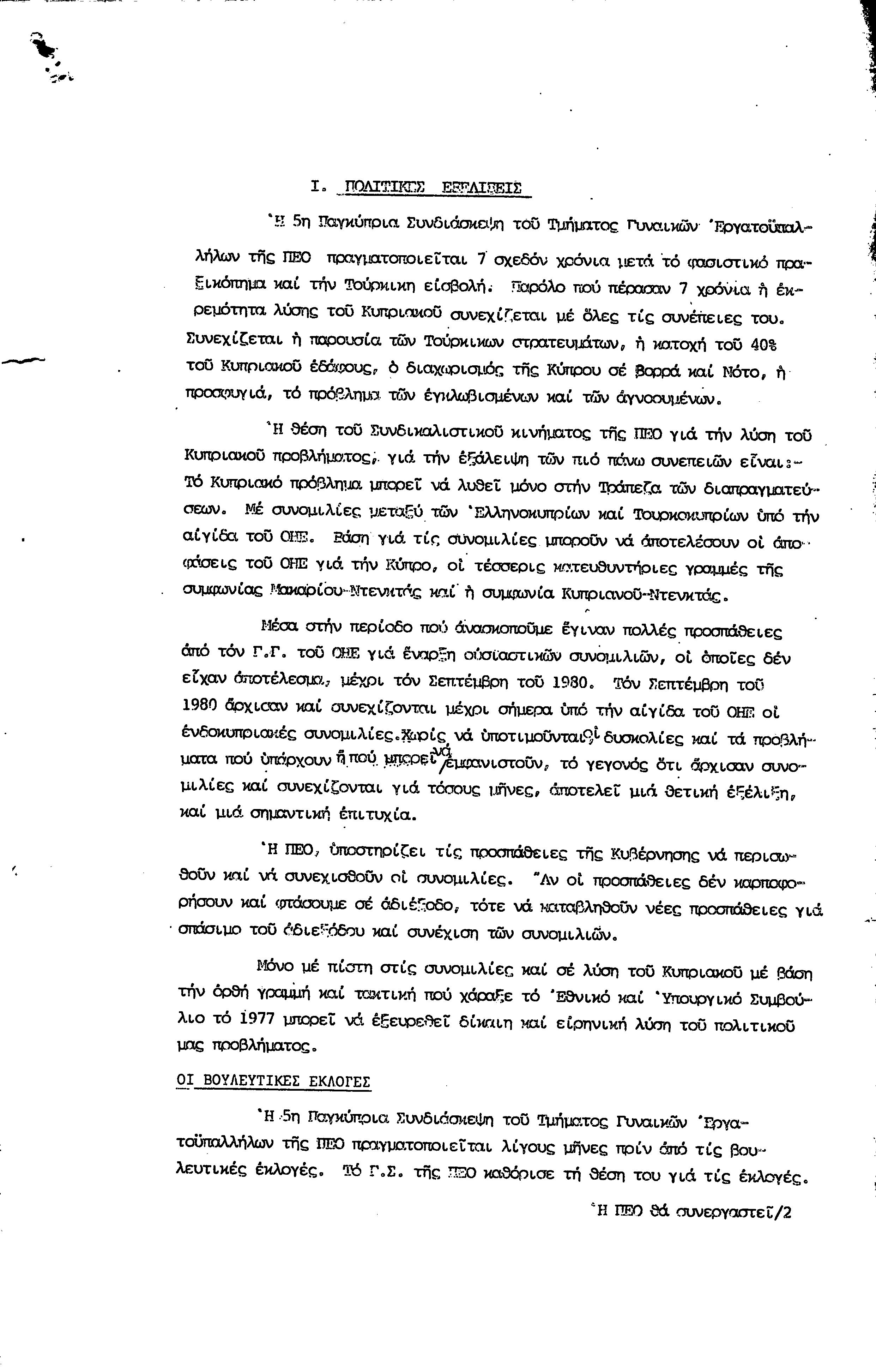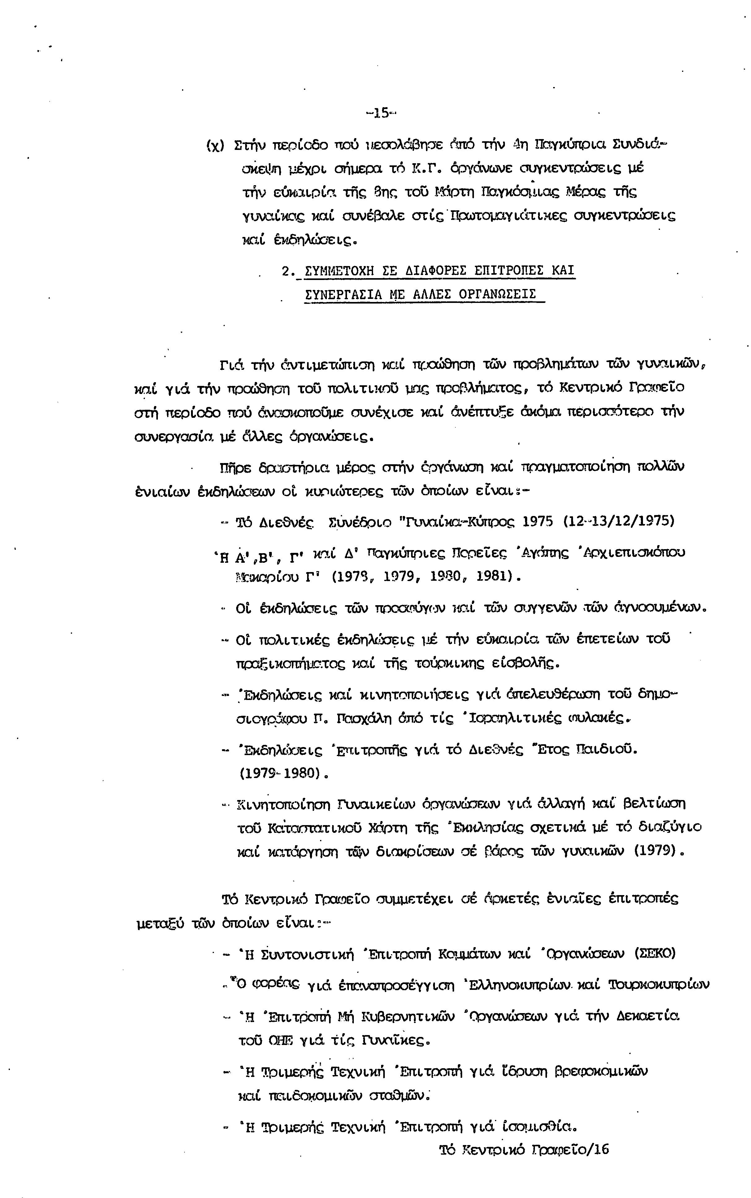5η ΠΑΓΚΥΠΡΙΑ ΣΥΝΔΙΑΣΚΕΨΗ ΤΜΗΜΑΤΟΣ ΓΥΝΑΙΚΩΝ ΕΡΓΑΤΟΥΠΑΛΛΗΛΩΝ ΠΕΟ, 15.03.1981 ( ΕΚΘΕΣΗ ΔΡΑΣΗΣ ΟΚΤΩΒΡΗΣ