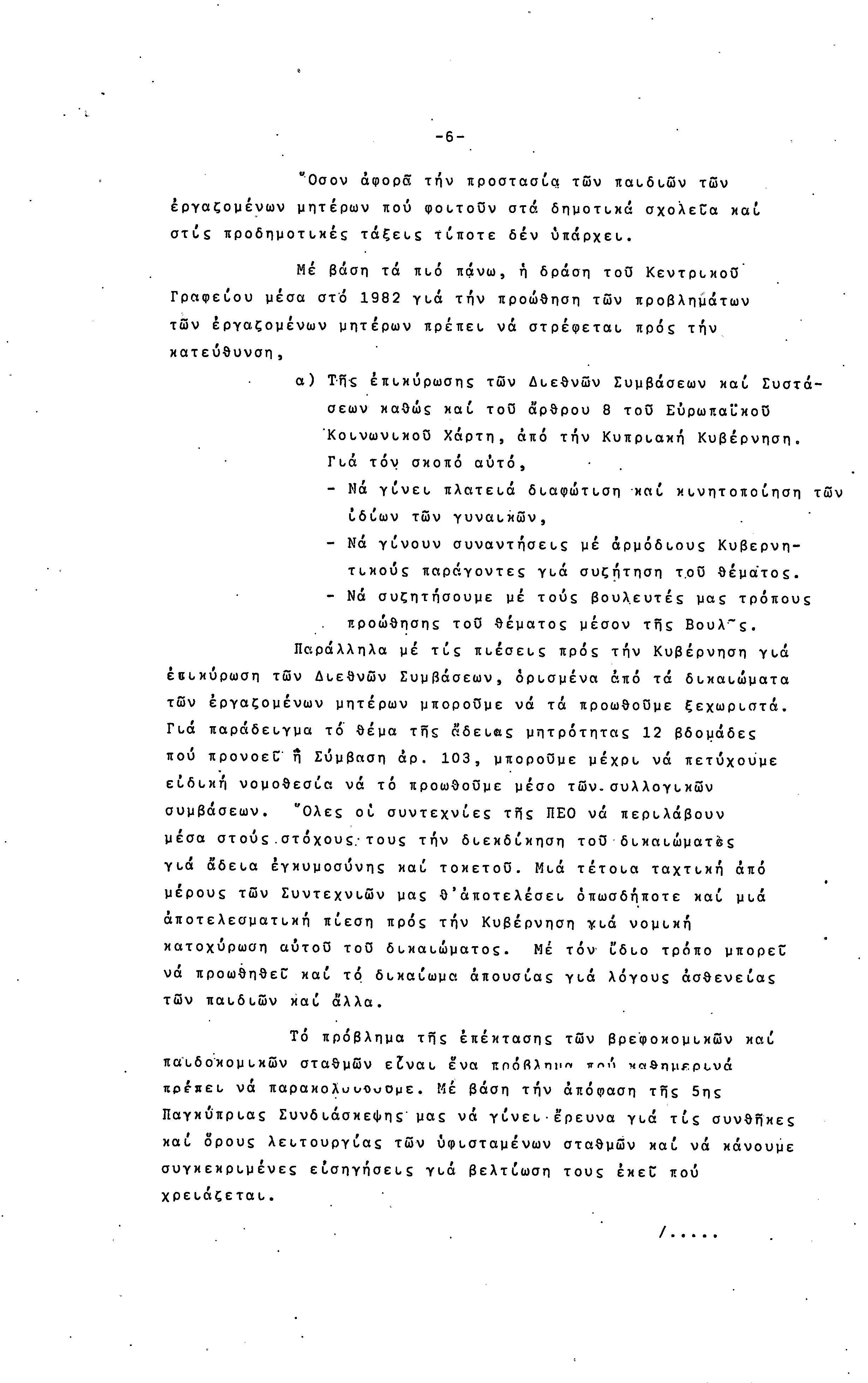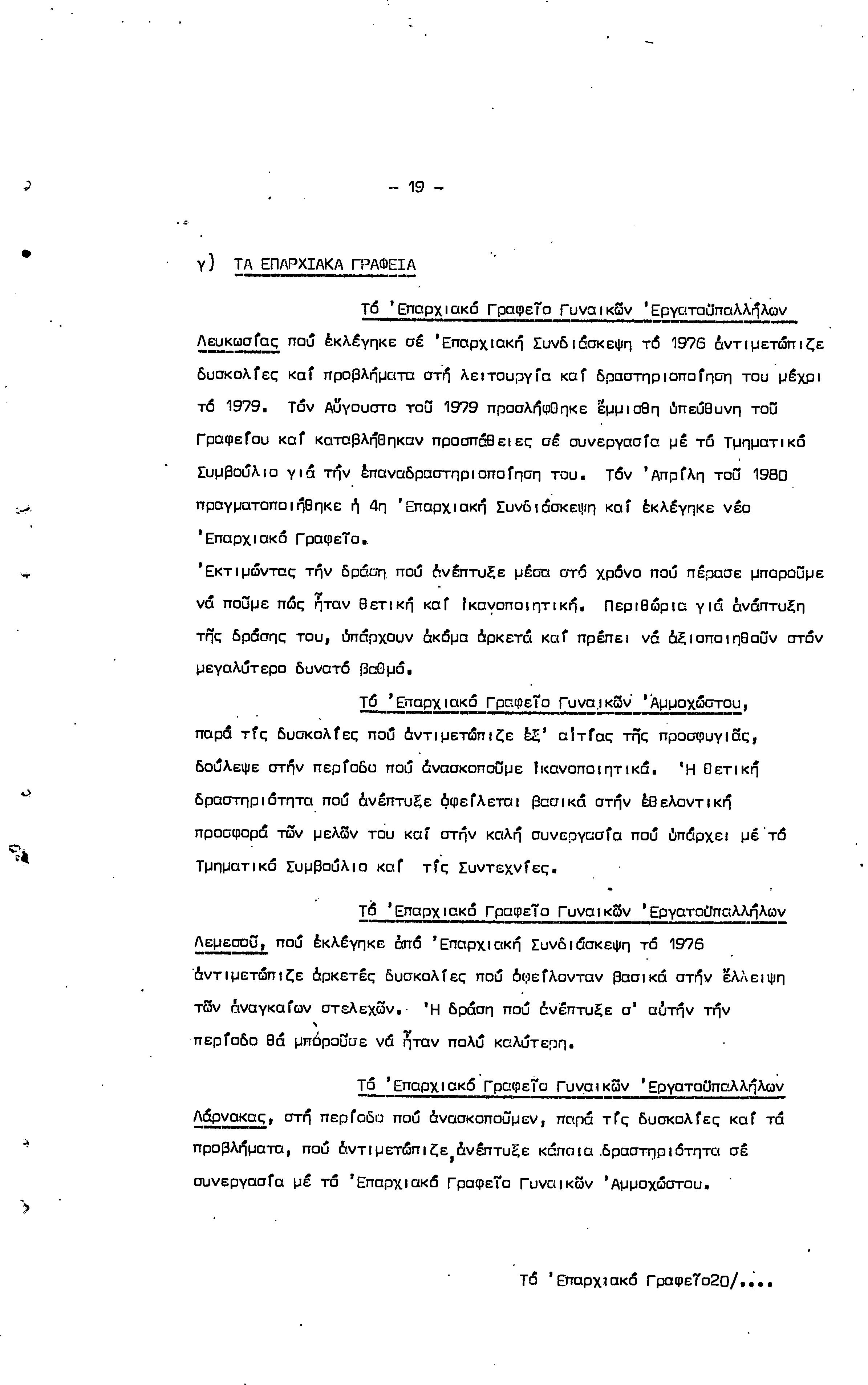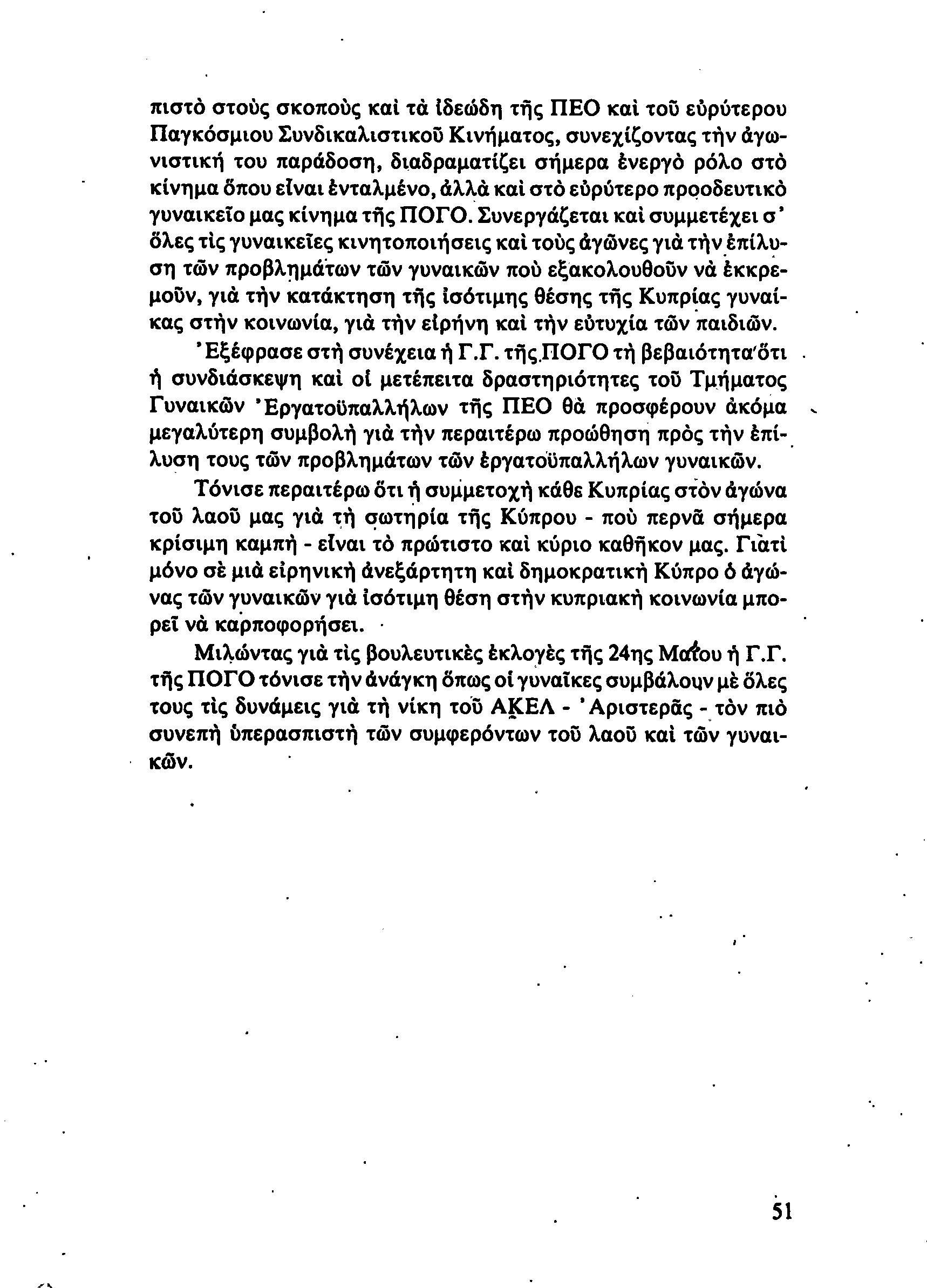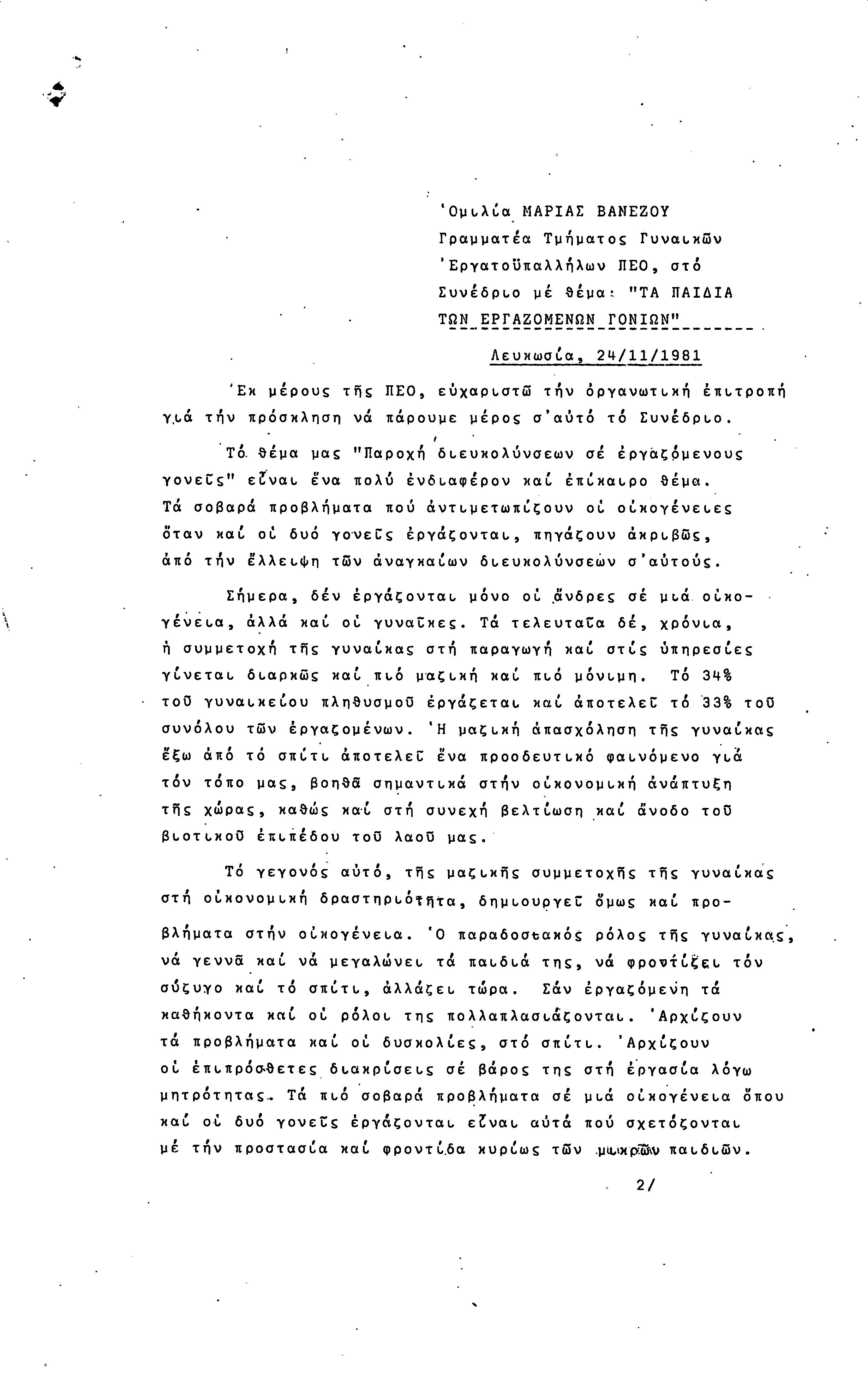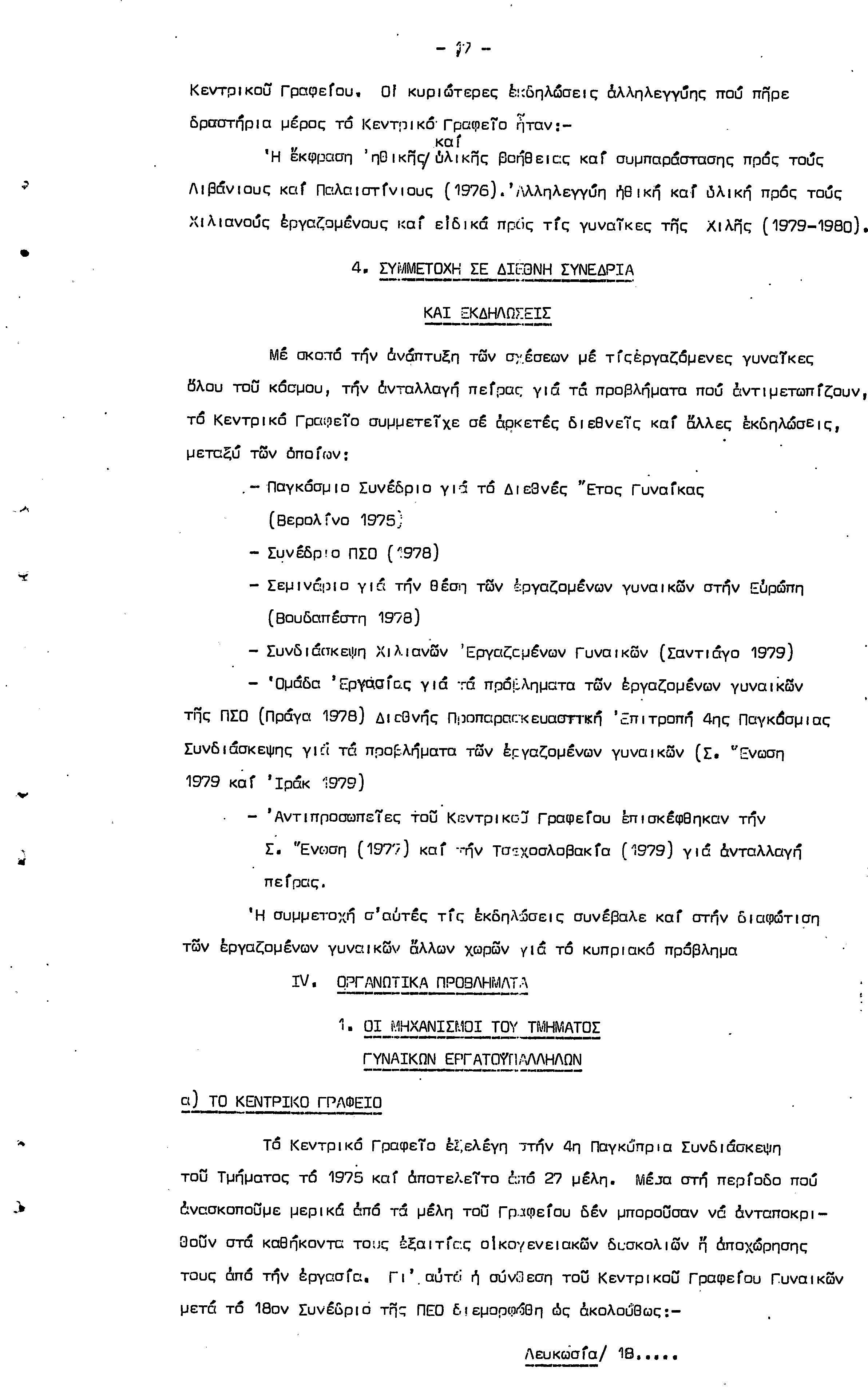 5η ΠΑΓΚΥΠΡΙΑ ΣΥΝΔΙΑΣΚΕΨΗ ΤΜΗΜΑΤΟΣ ΓΥΝΑΙΚΩΝ ΕΡΓΑΤΟΥΠΑΛΛΗΛΩΝ ΠΕΟ, 15.03.1981 ( ΕΚΘΕΣΗ ΔΡΑΣΗΣ ΟΚΤΩΒΡΗΣ