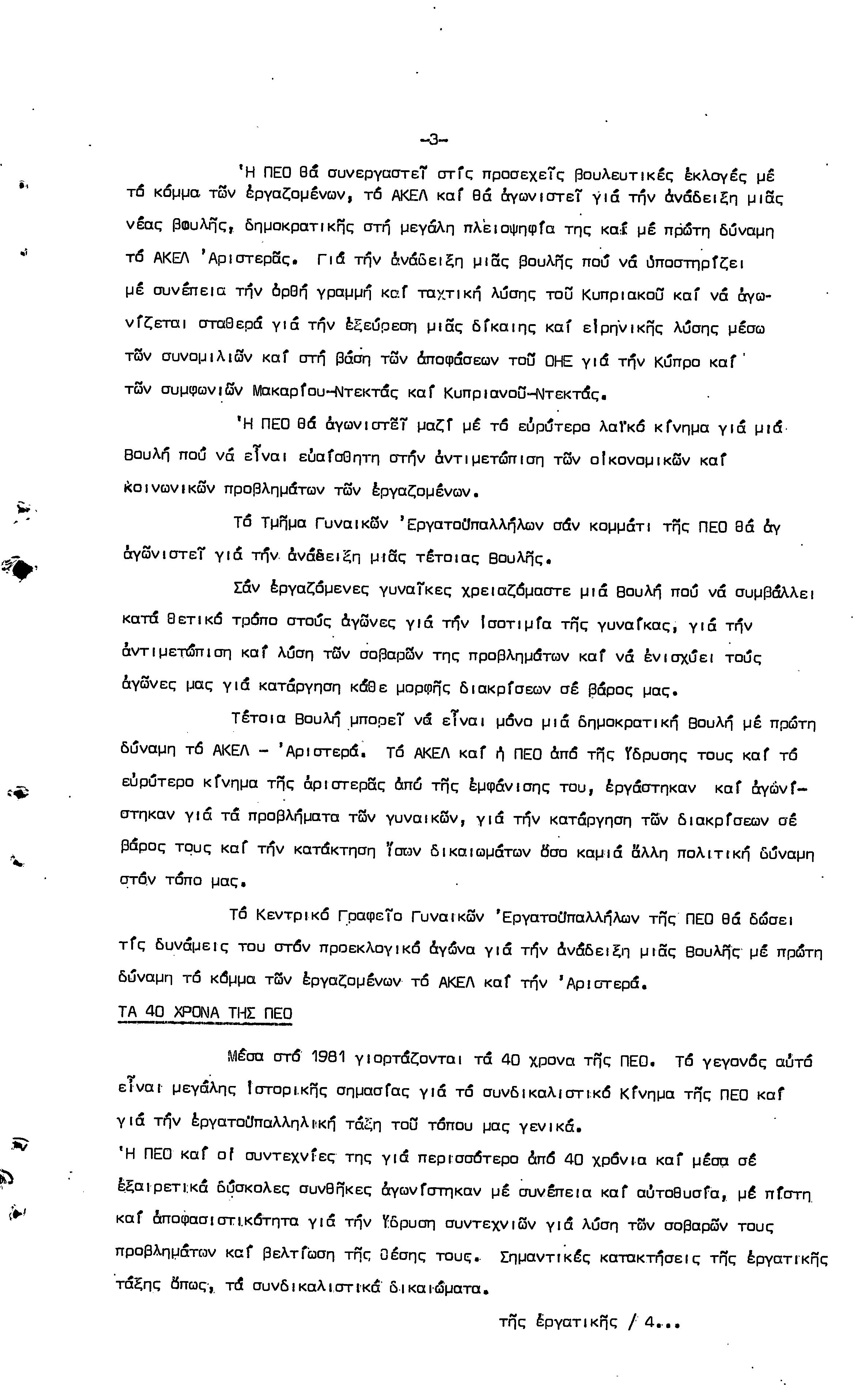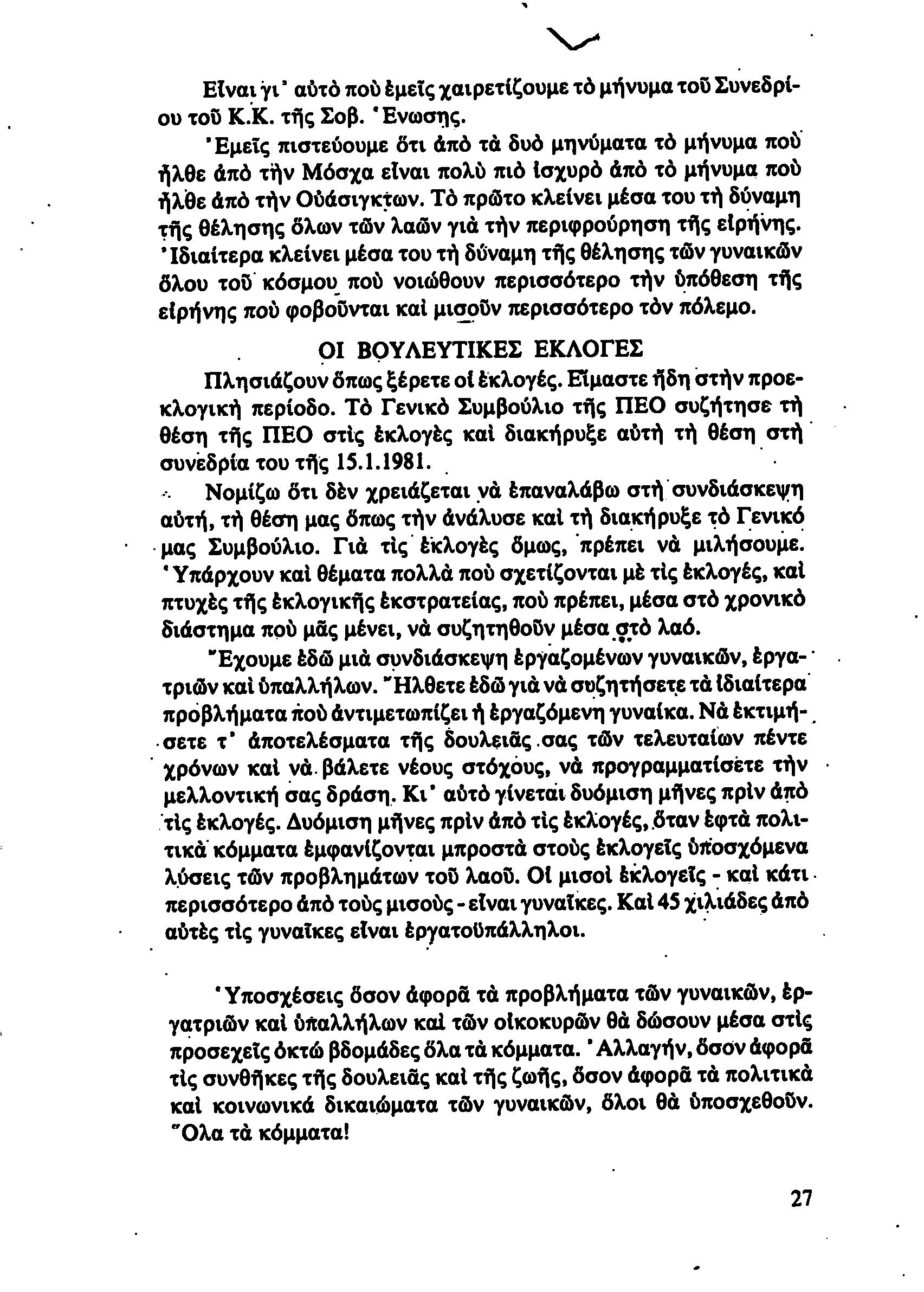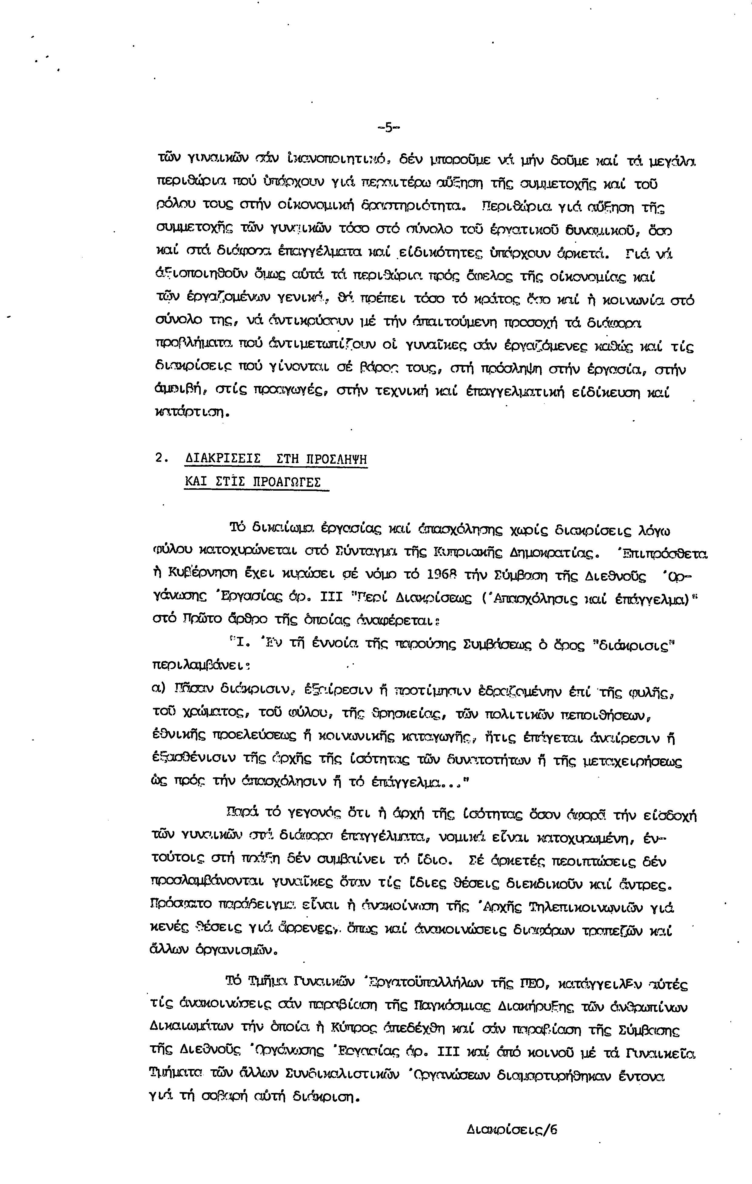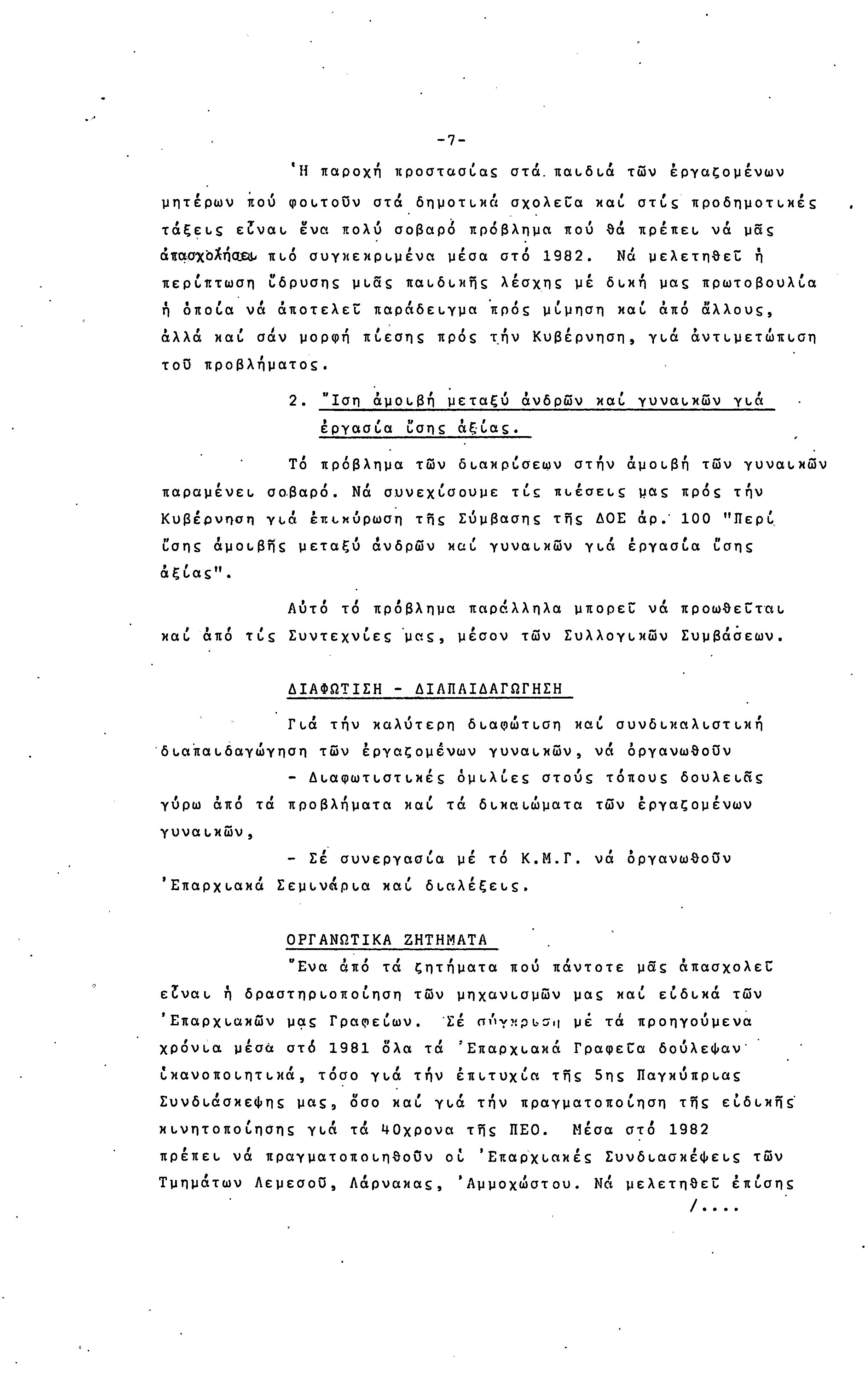 5η ΠΑΓΚΥΠΡΙΑ ΣΥΝΔΙΑΣΚΕΨΗ ΤΜΗΜΑΤΟΣ ΓΥΝΑΙΚΩΝ ΕΡΓΑΤΟΥΠΑΛΛΗΛΩΝ ΠΕΟ, 15.03.1981 ( ΕΚΘΕΣΗ ΔΡΑΣΗΣ ΟΚΤΩΒΡΗΣ