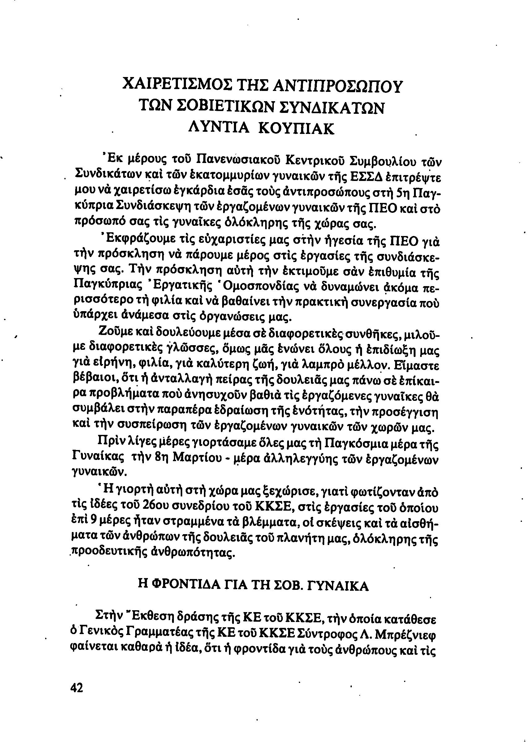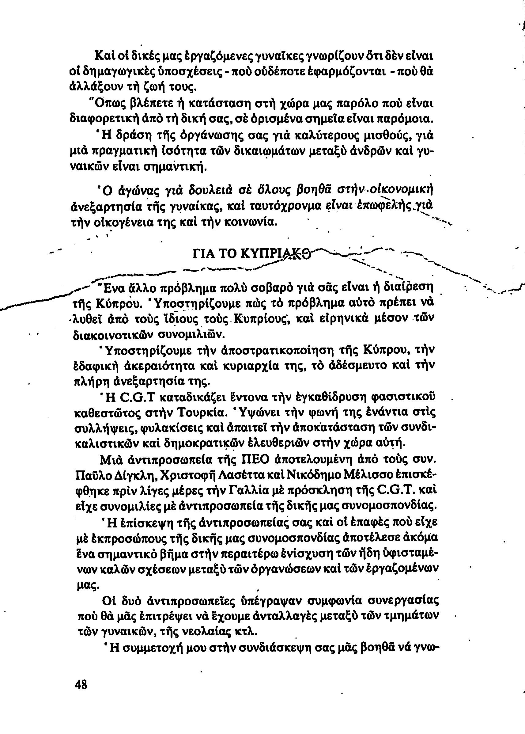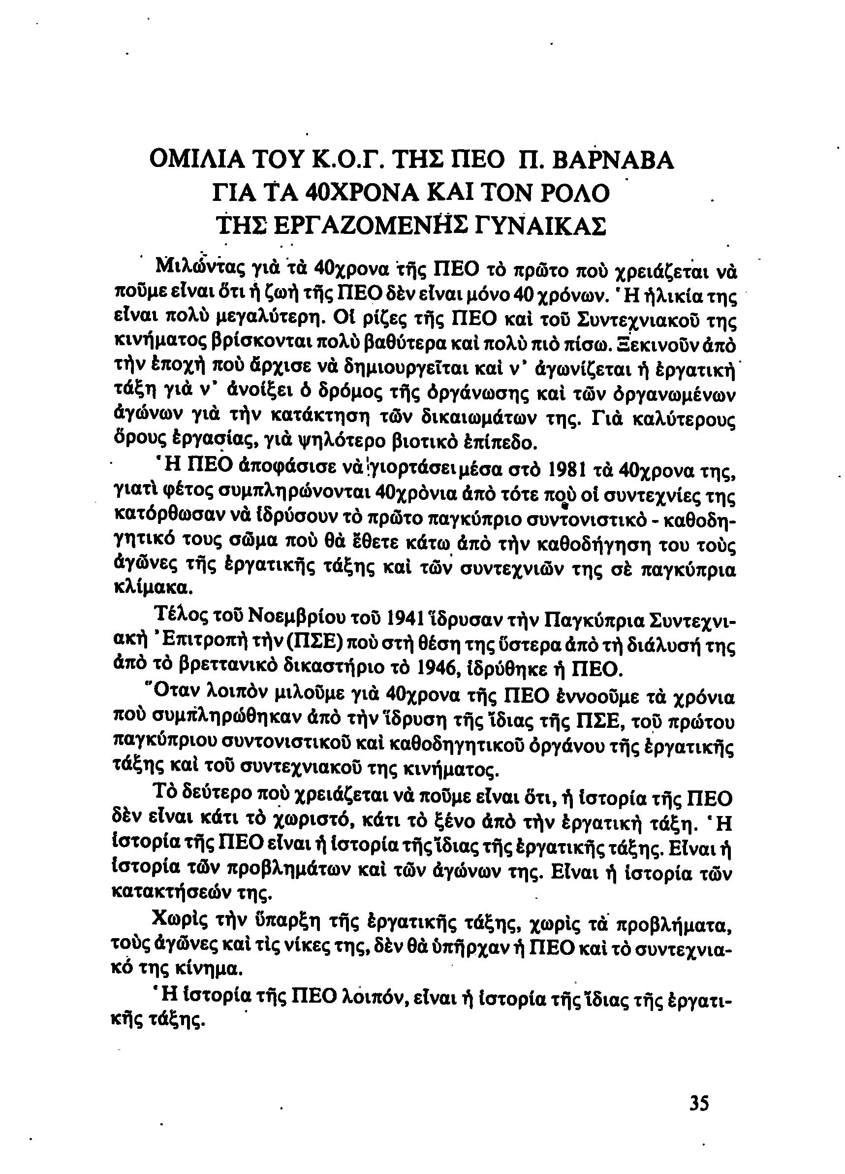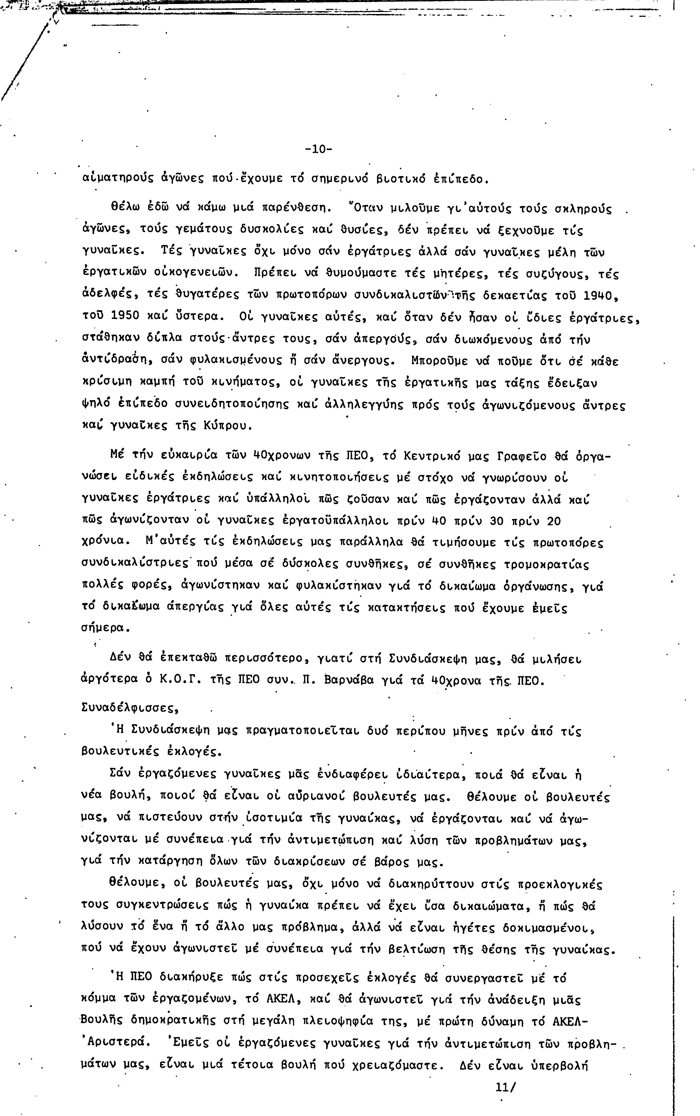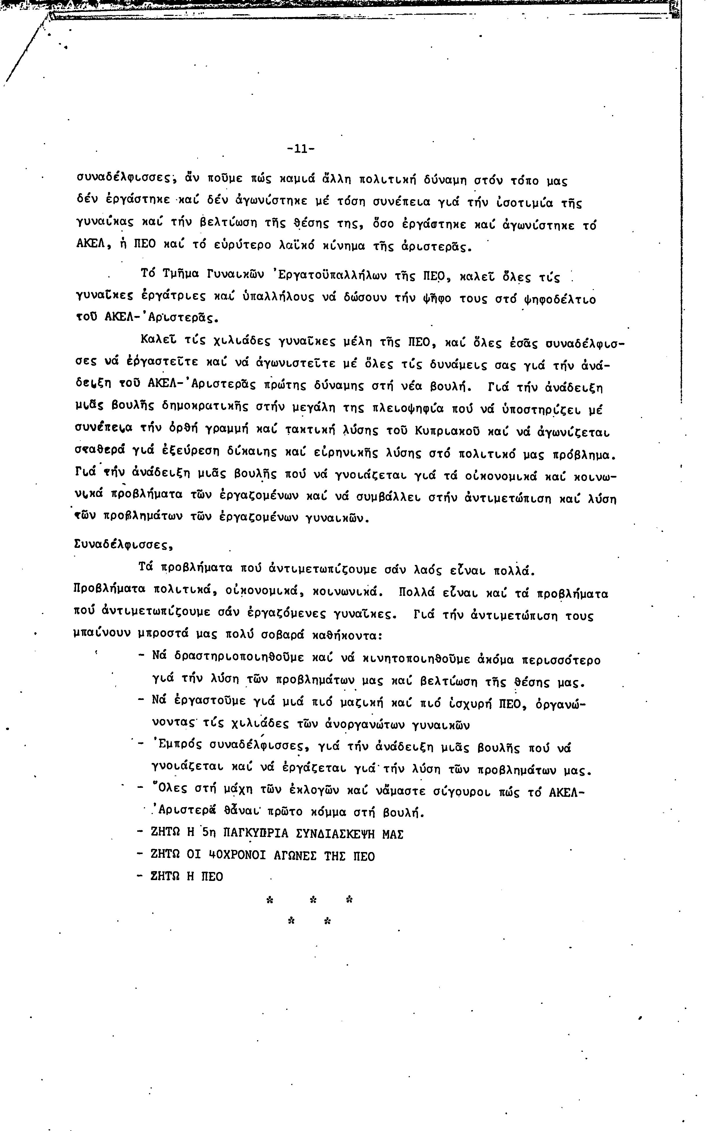 5η ΠΑΓΚΥΠΡΙΑ ΣΥΝΔΙΑΣΚΕΨΗ ΤΜΗΜΑΤΟΣ ΓΥΝΑΙΚΩΝ ΕΡΓΑΤΟΥΠΑΛΛΗΛΩΝ ΠΕΟ, 15.03.1981 ( ΕΚΘΕΣΗ ΔΡΑΣΗΣ ΟΚΤΩΒΡΗΣ