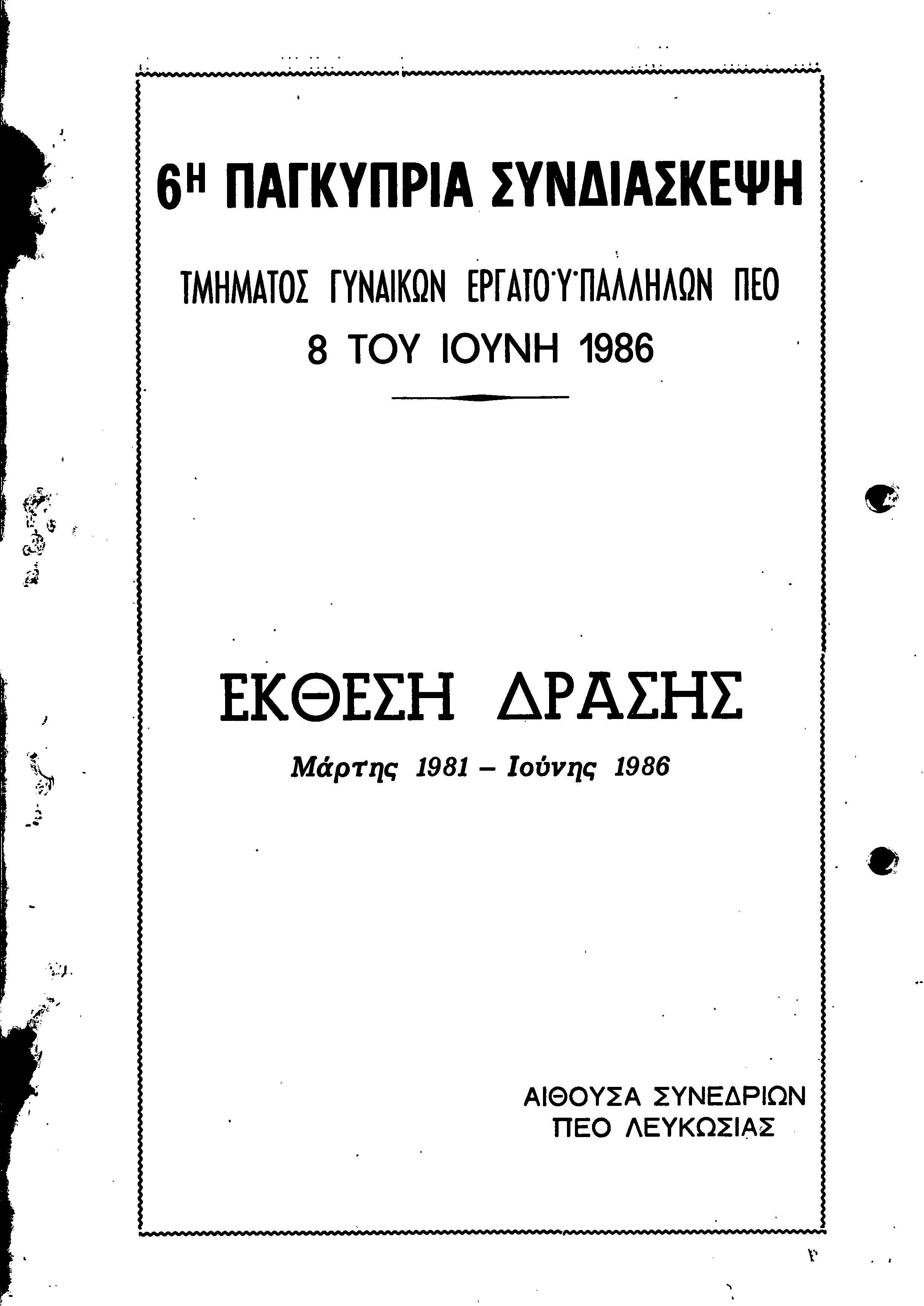 6Η ΠΑΓΚΥΠΡΙΑ ΣΥΝΔΙΑΣΚΕΨΗ ΓΡΑΦΕΙΟΥ ΓΥΝΑΙΚΩΝ ΕΡΓΑΤΟΫΠΑΛΛΗΛΩΝ ΠΕΟ-8.06.1986