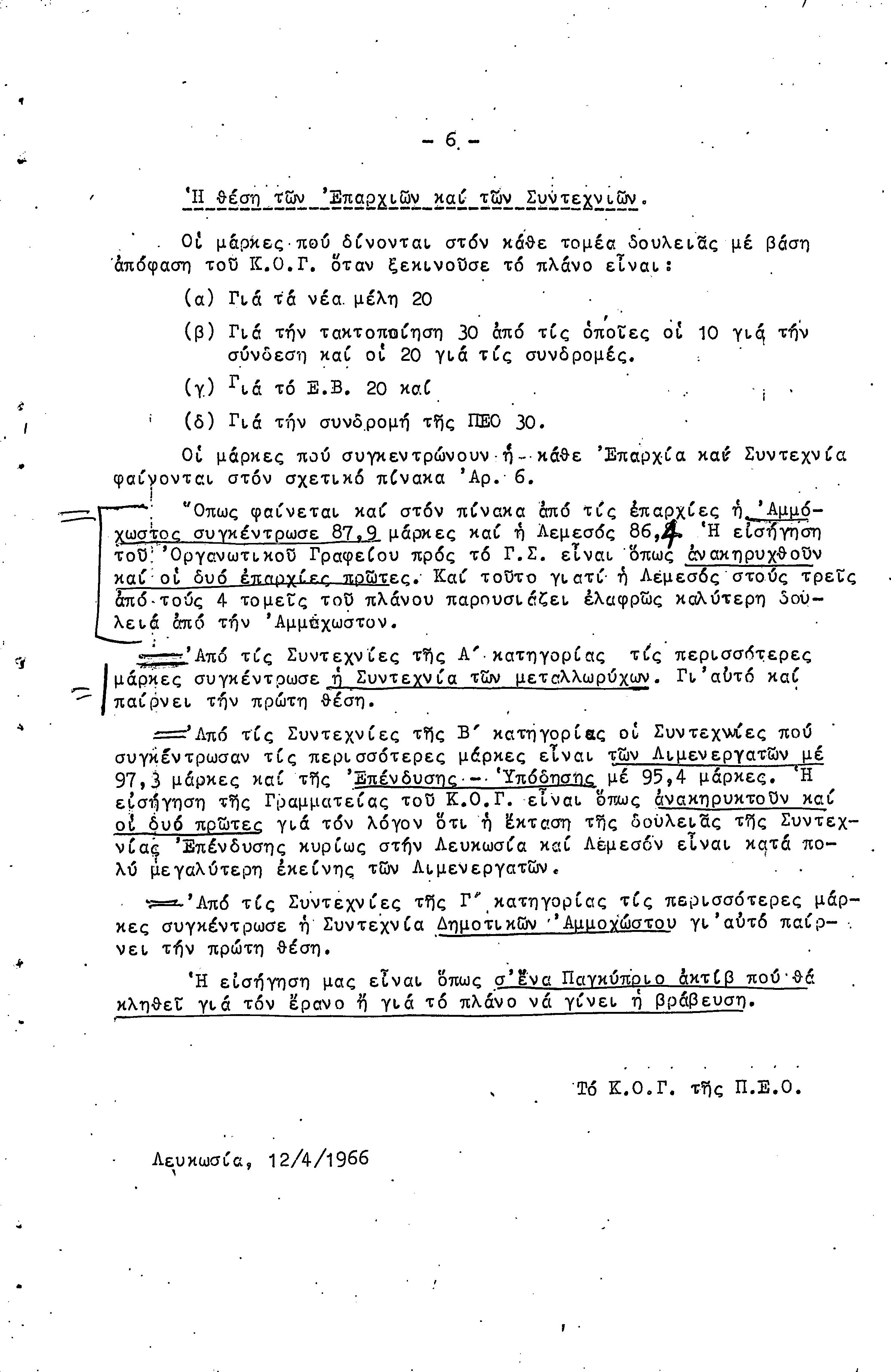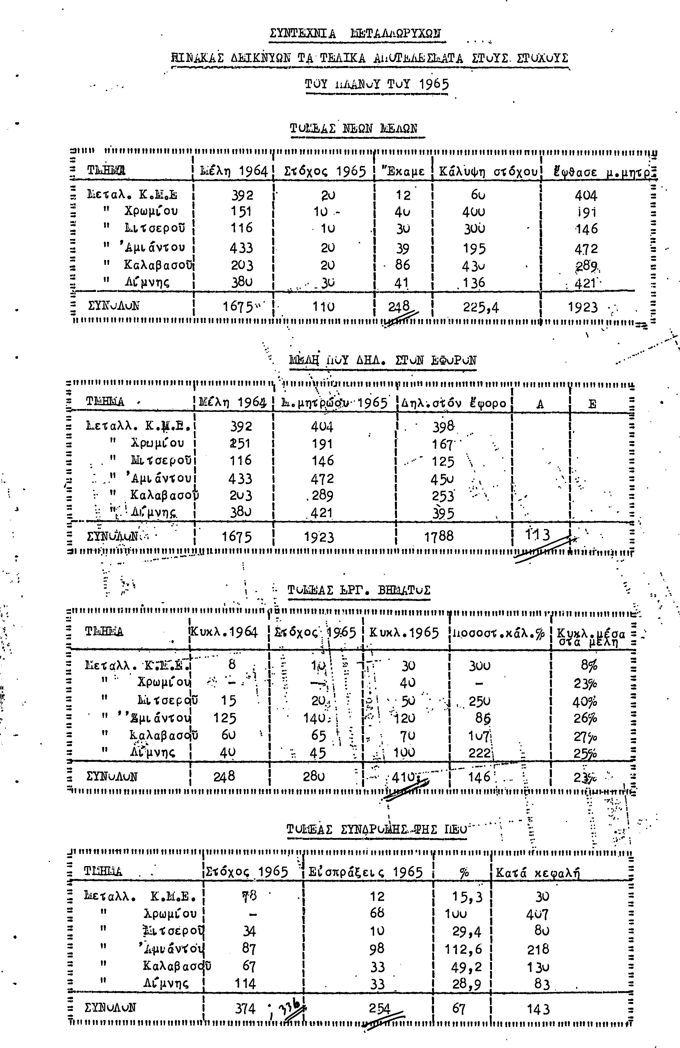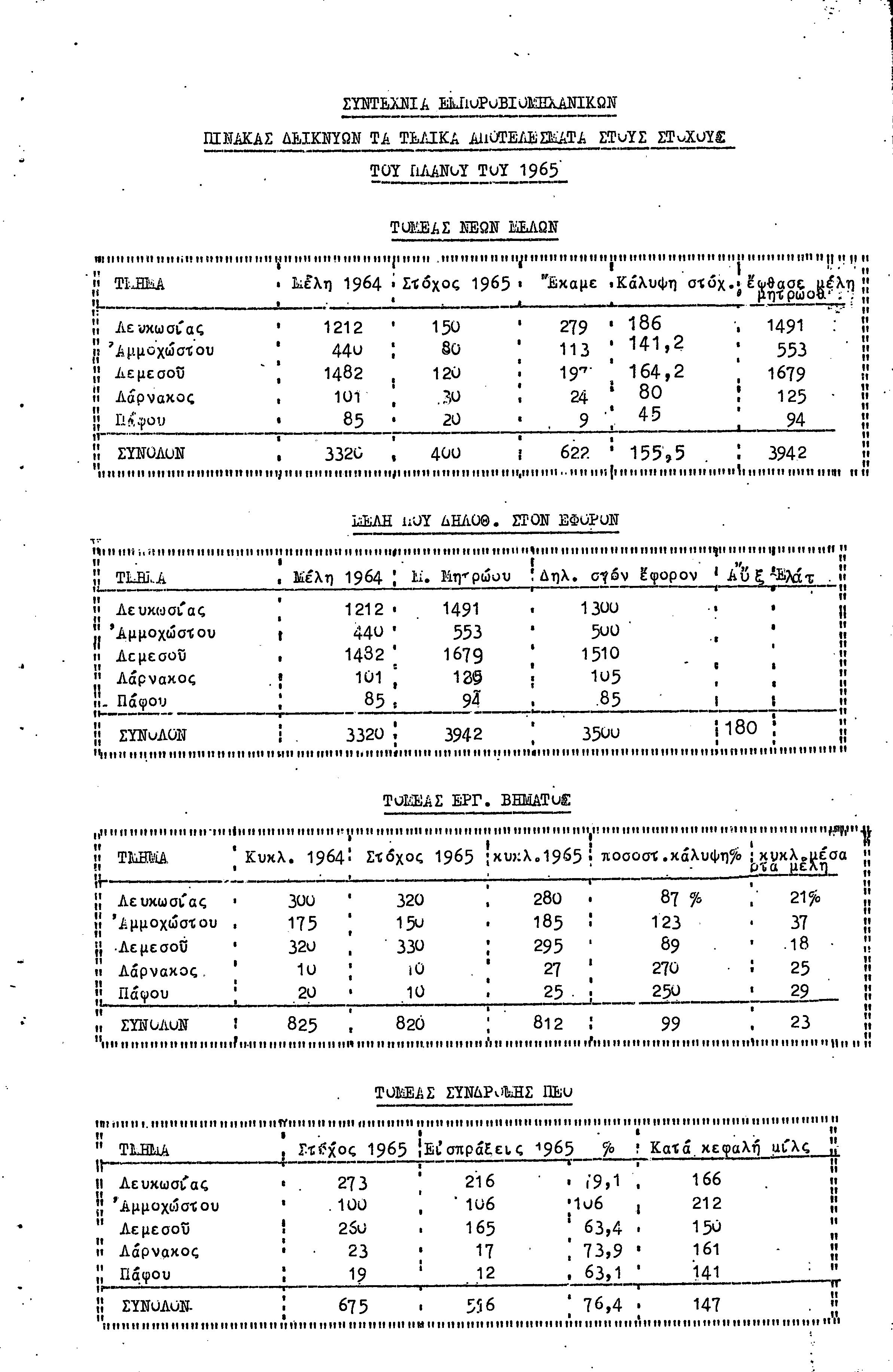 ΕΚΘΕΣΗ ΔΡΑΣΗΣ ΓΙΑ ΤΑ ΟΡΓΑΝΩΤΙΚΑ ΑΠΟΤΕΛΕΣΜΑΤΑ-1965