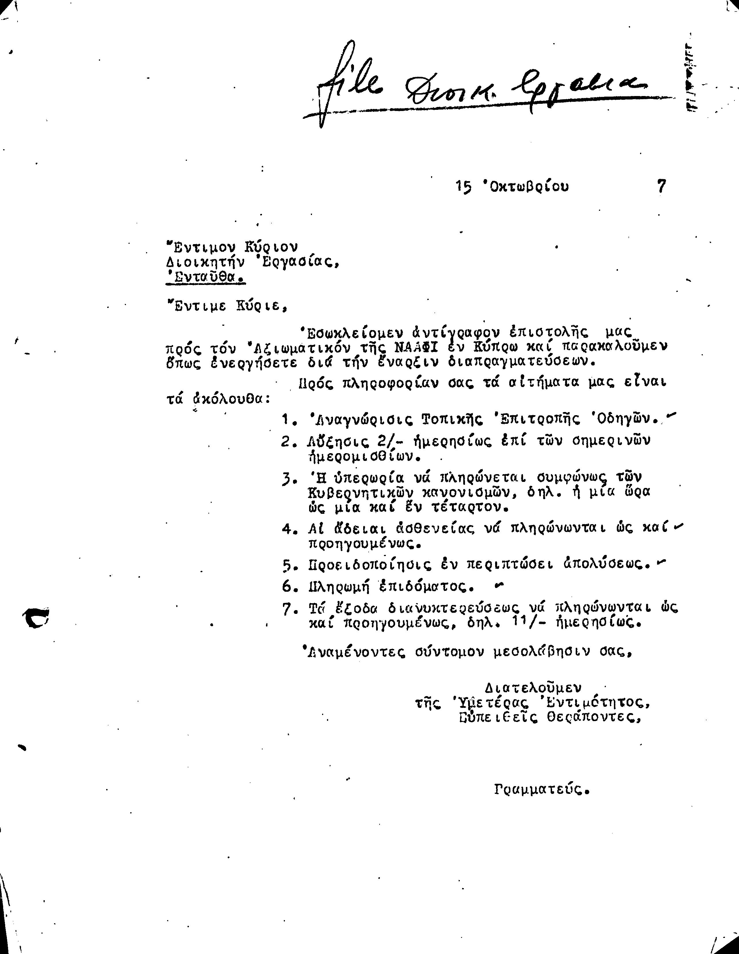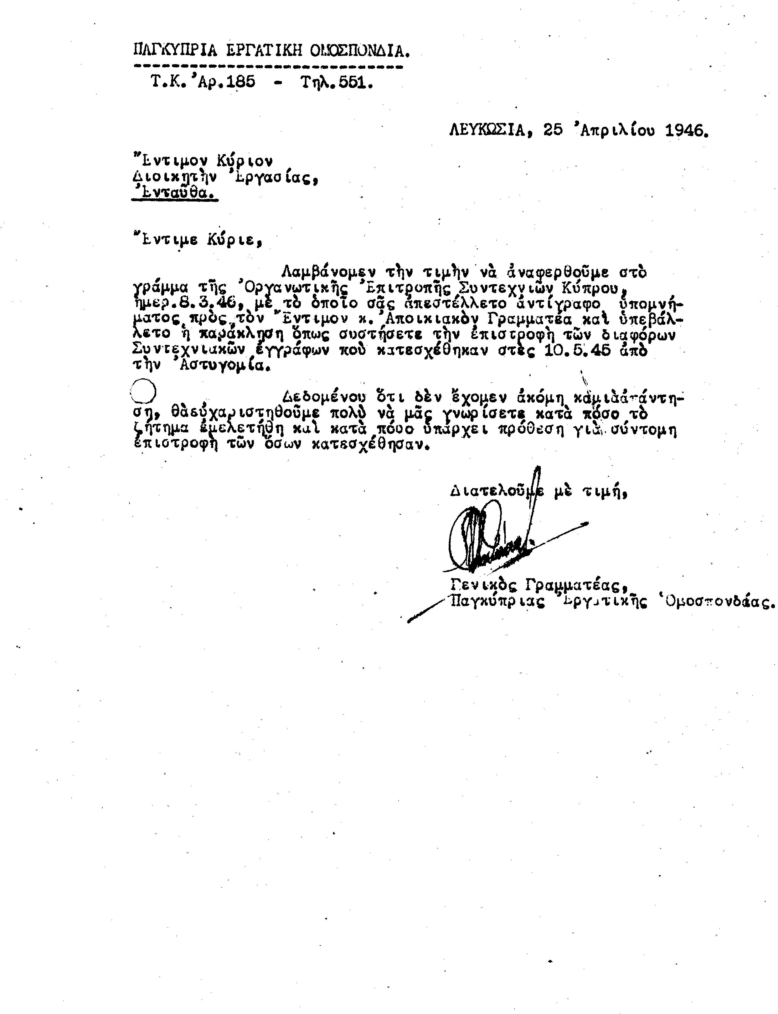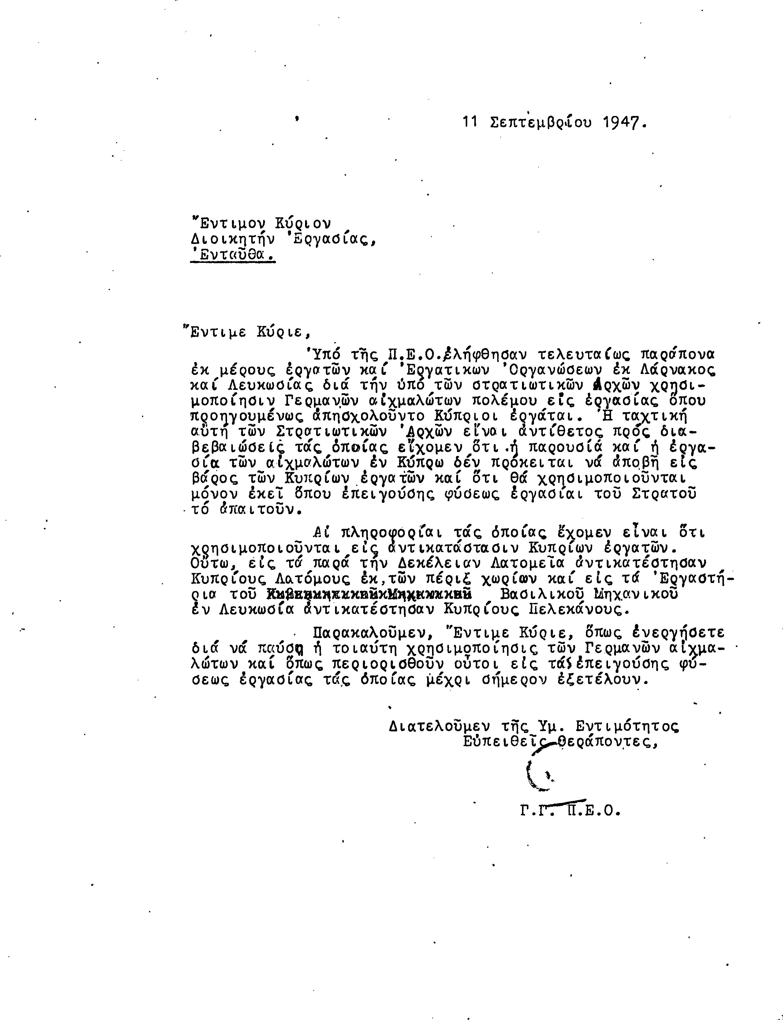 ΑΛΛΗΛΟΓΡΑΦΙΑ ΠΣΕ-ΠΕΟ ΜΕ ΔΙΟΙΚ.ΕΡΓΑΣΙΑΣ, ΑΠΟΙΚΙΑΚΟ ΓΡΑΜΜΑΤΕΑ 1941-1958 by Παγκύπρια Εργατική Ομοσπονδία - Issuu