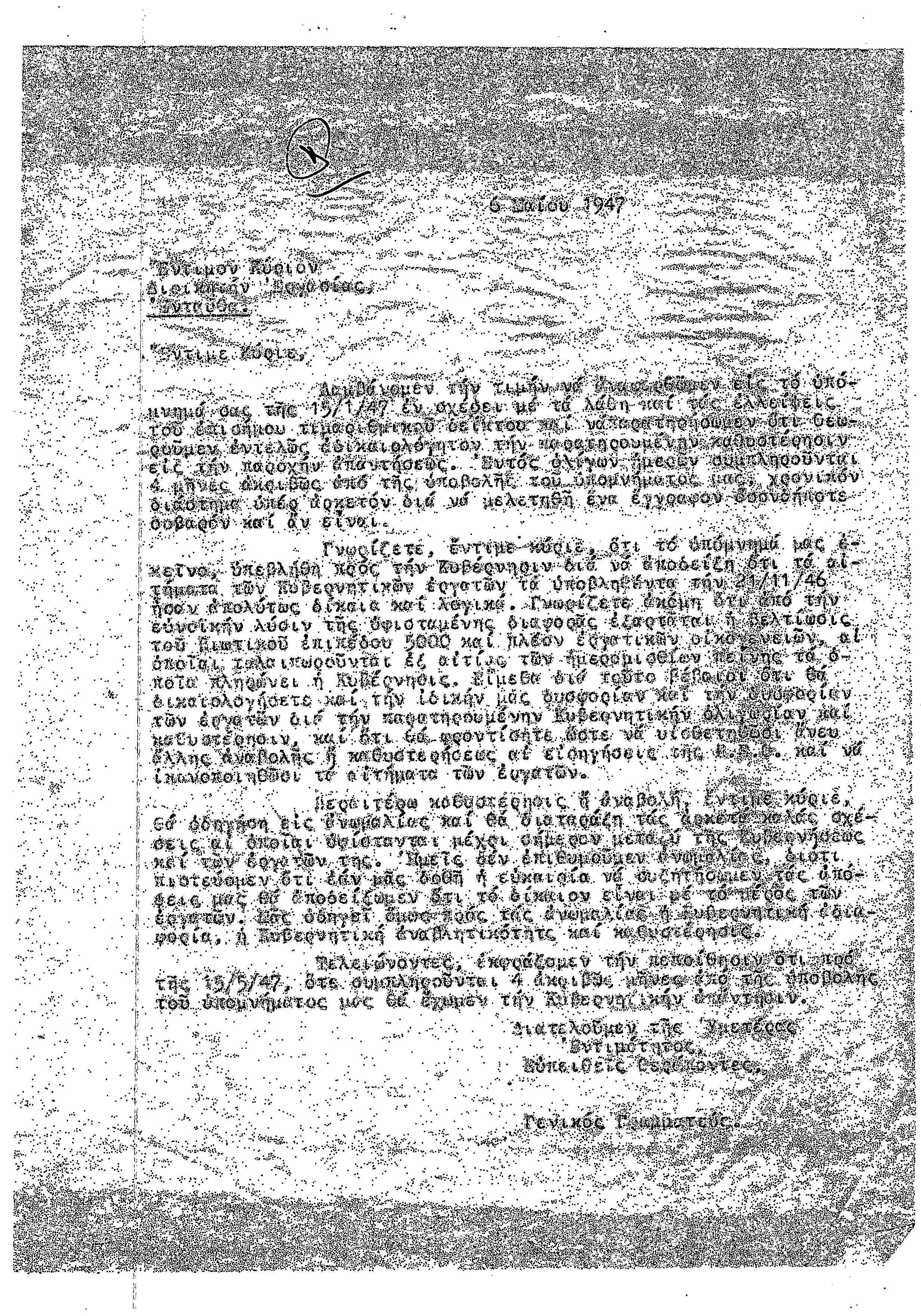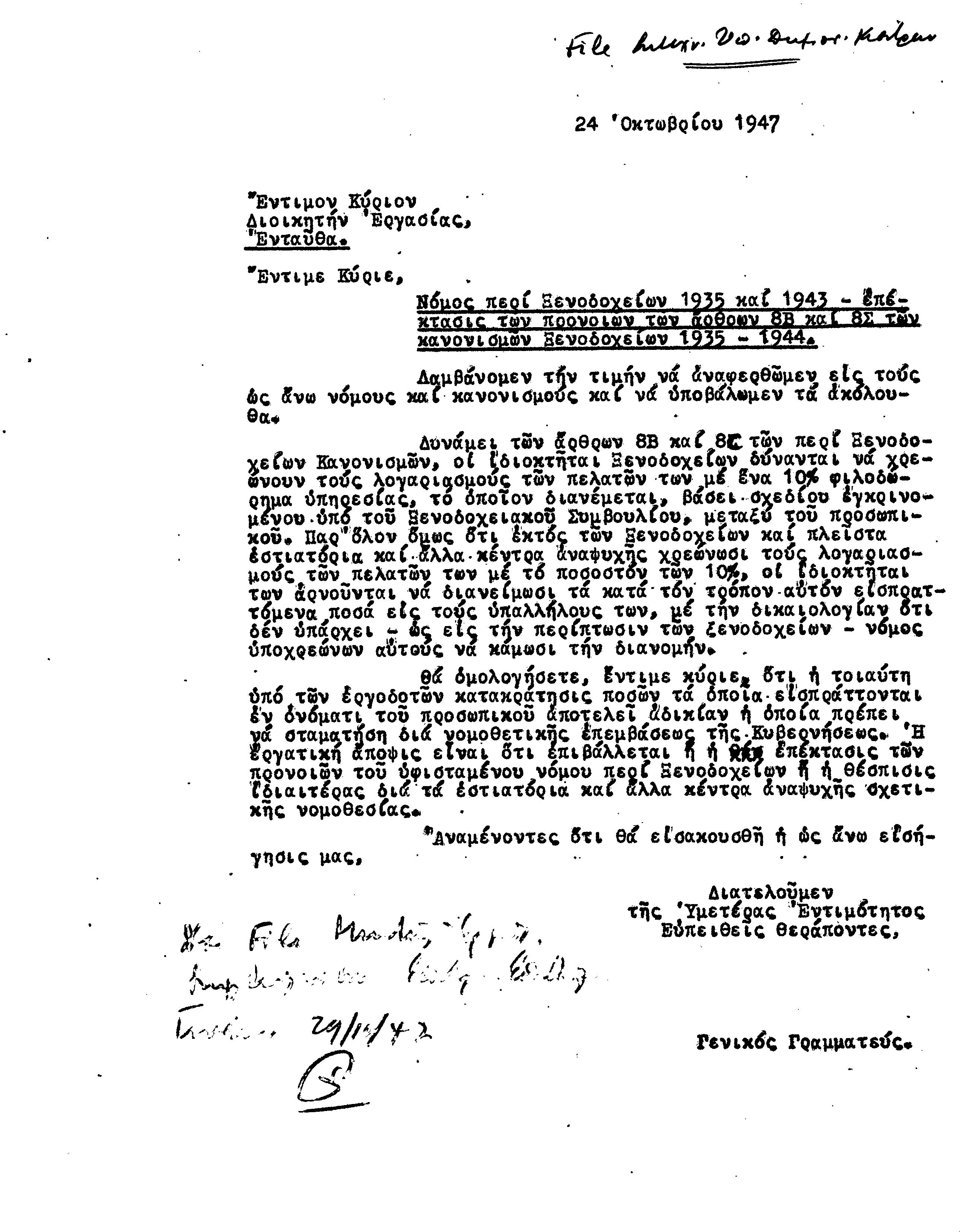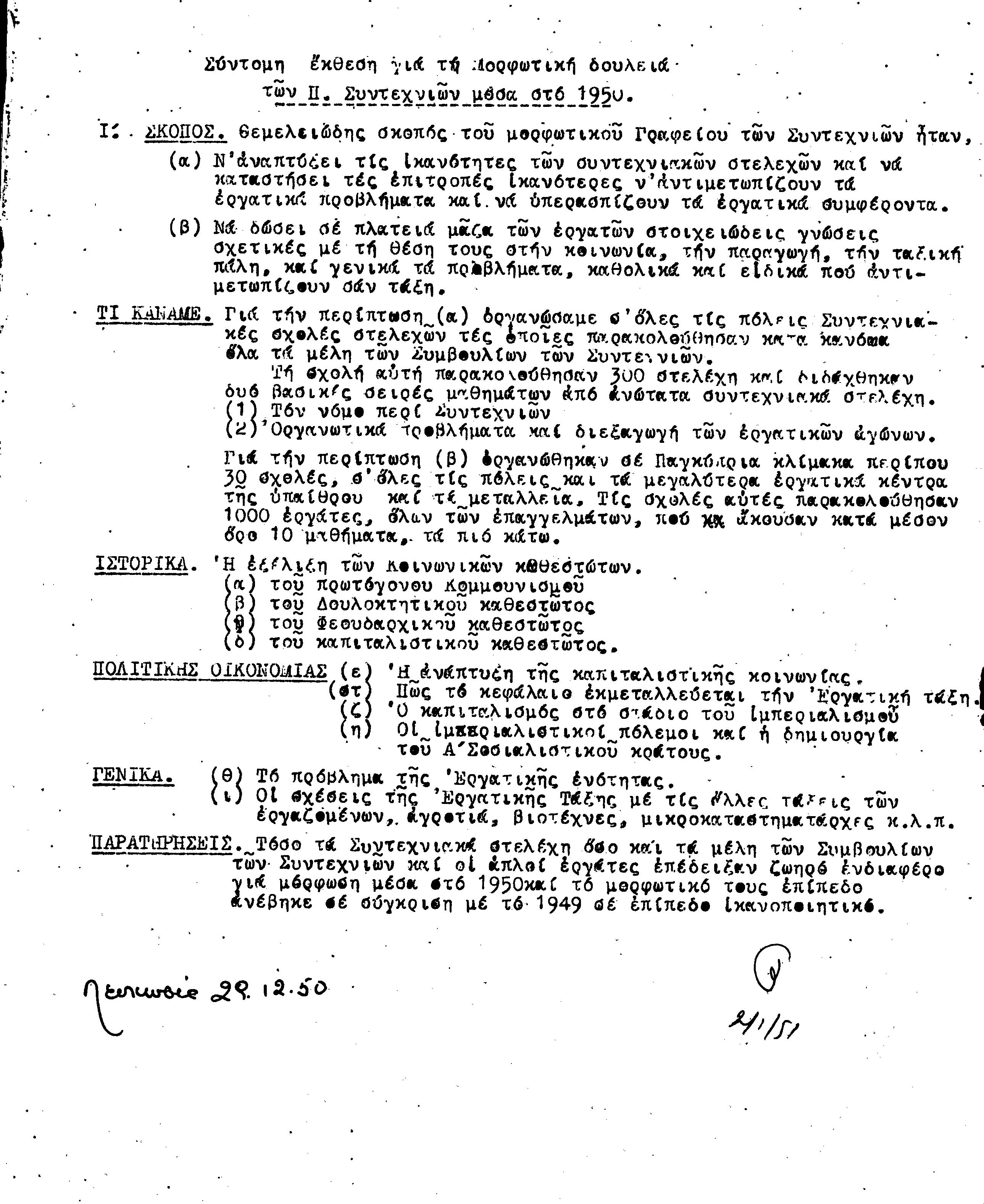 ΑΛΛΗΛΟΓΡΑΦΙΑ ΠΣΕ-ΠΕΟ ΜΕ ΔΙΟΙΚ.ΕΡΓΑΣΙΑΣ, ΑΠΟΙΚΙΑΚΟ ΓΡΑΜΜΑΤΕΑ 1941-1958