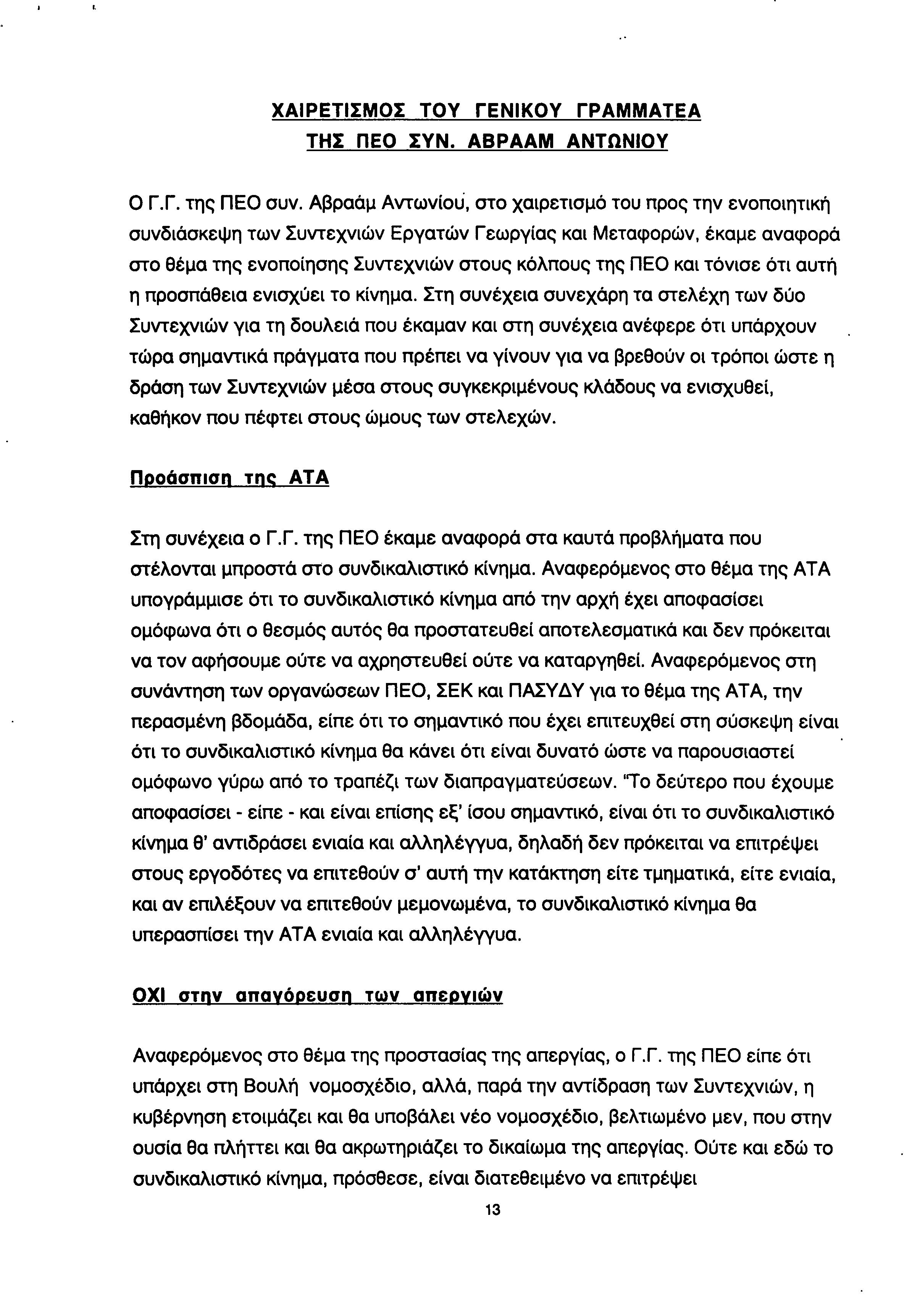ΕΚΤΑΚΤΕΣ ΣΥΝΔΙΑΣΚΕΨΕΙΣ ΜΕΤΑΦΟΡΩΝ-ΓΕΩΡΓΙΑΣ ΕΝΟΠΟΙΗΤΙΚΗ ΣΥΝΔΙΑΣΚΕΨΗ 29.09.1996