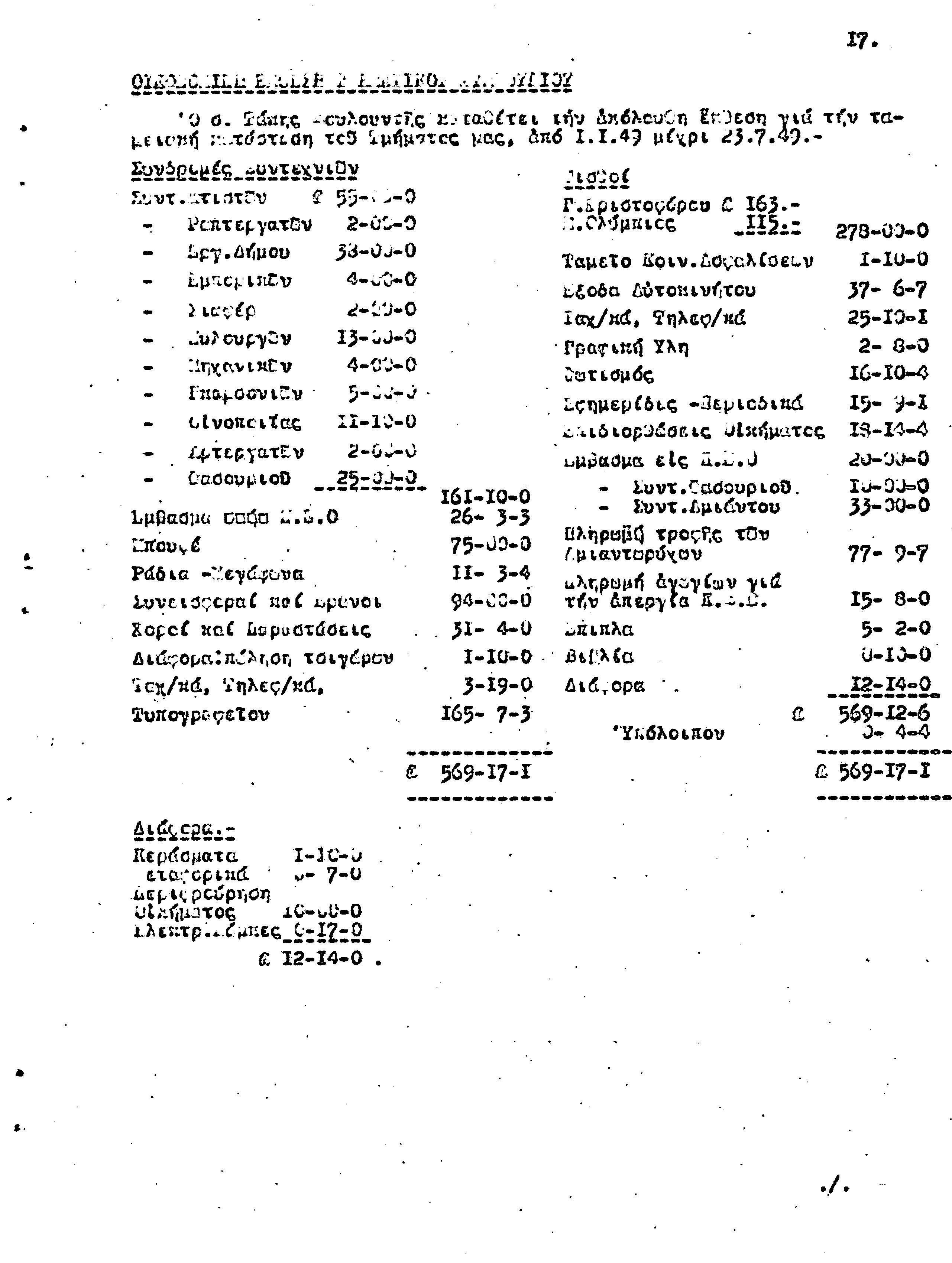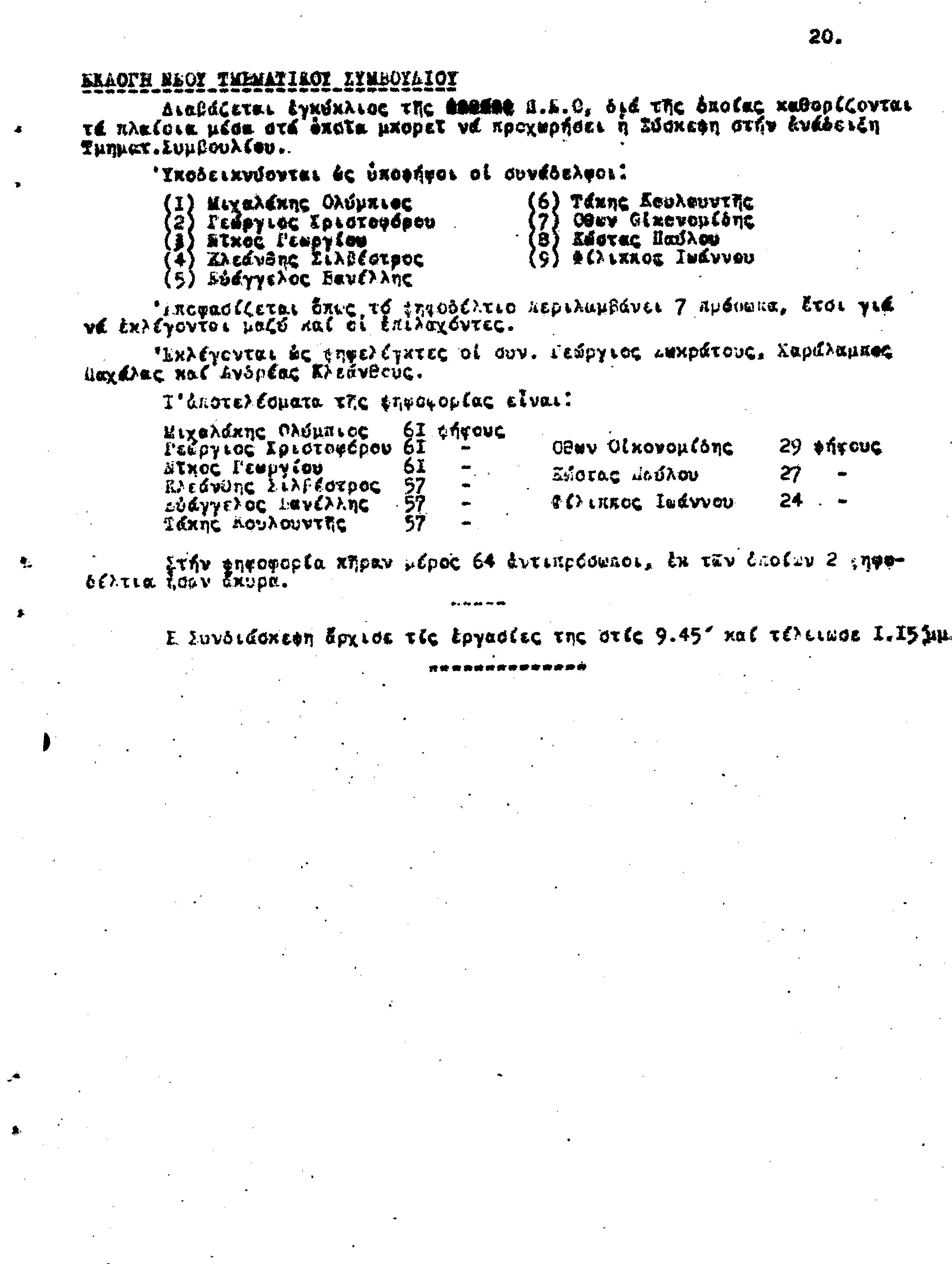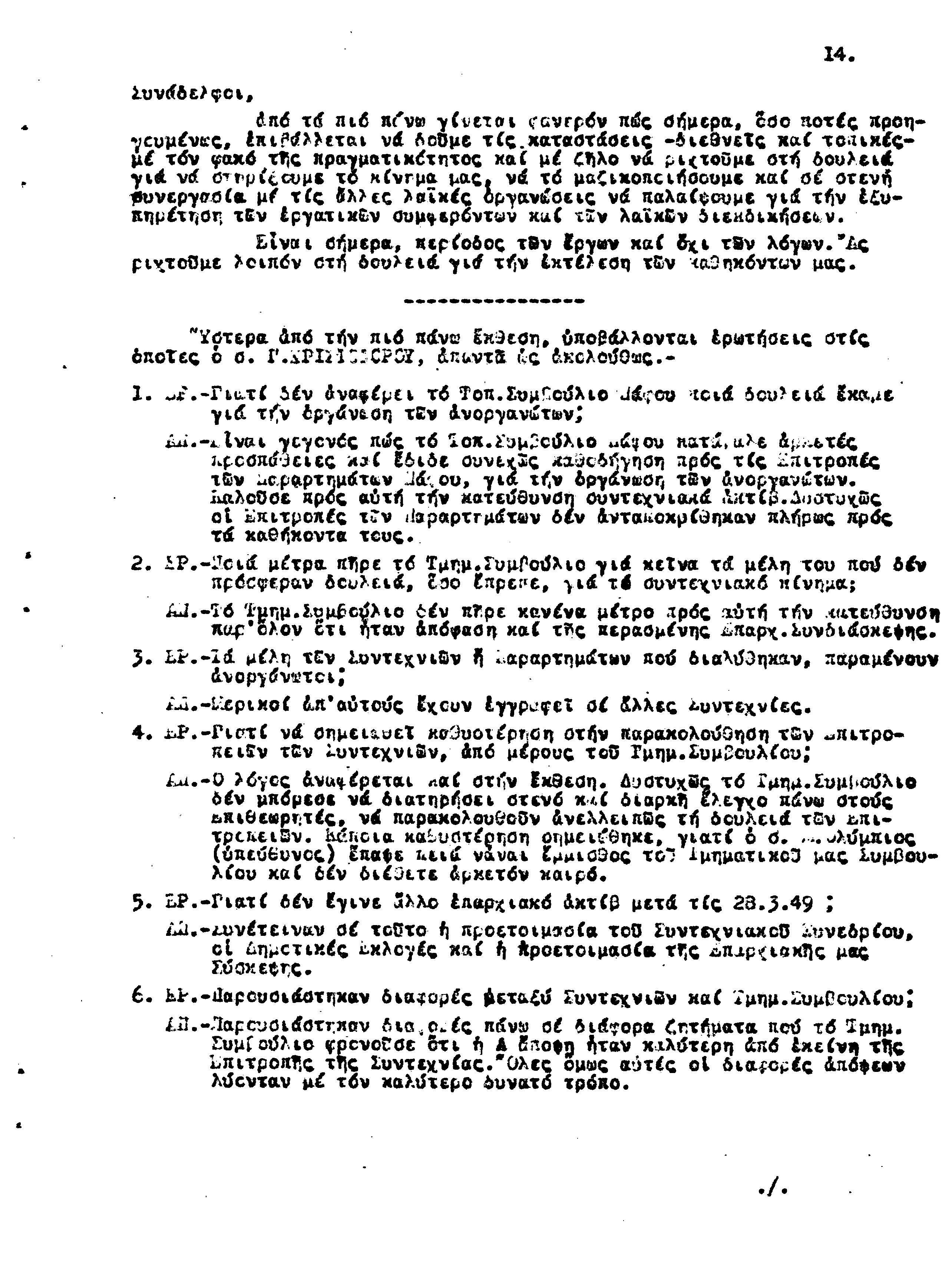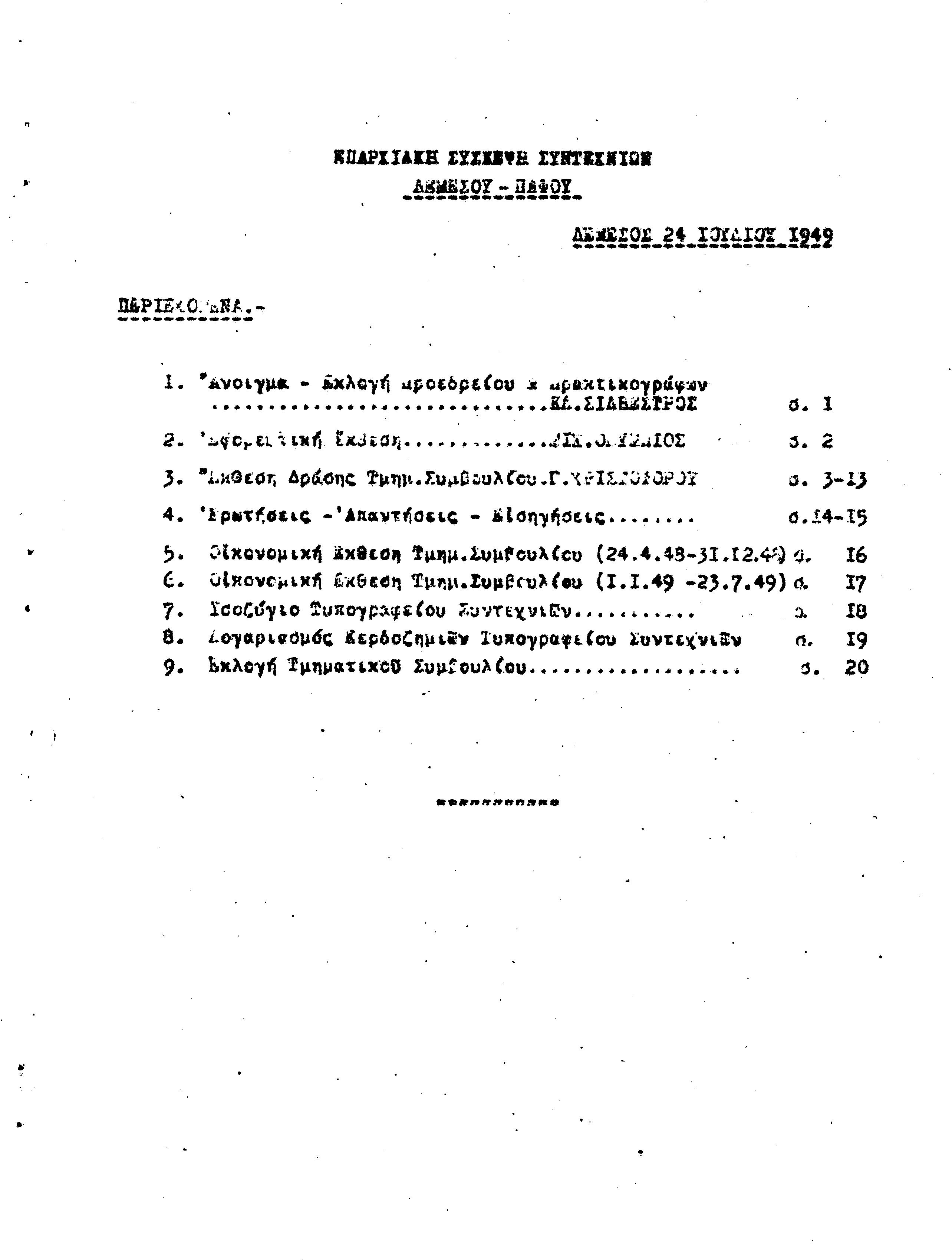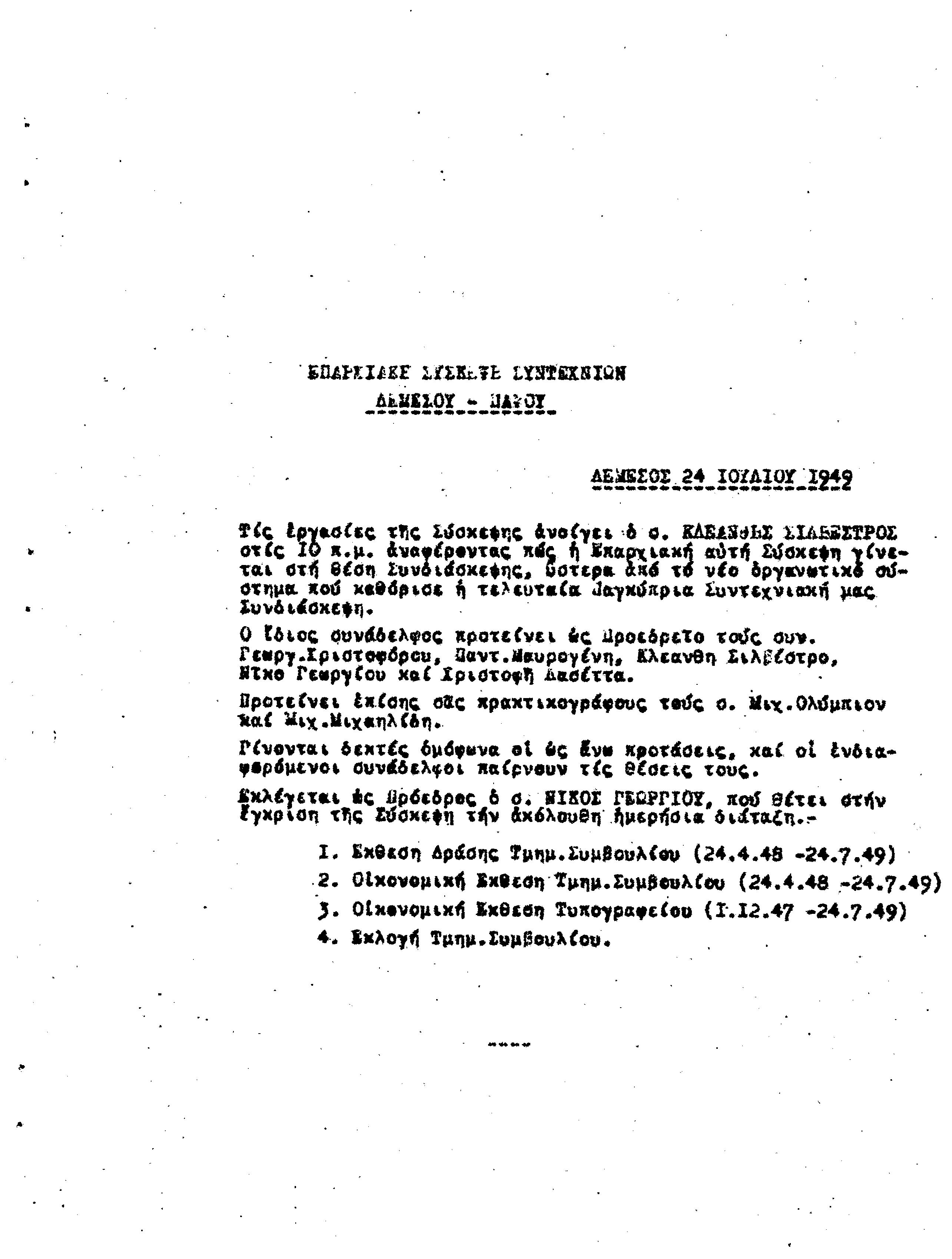 ΕΠΑΡΧΙΑΚΗΣ ΣΥΣΚΕΨΗ ΣΥΝΤΕΧΝΙΩΝ Τ.Σ. ΠΕΟ ΛΕΜΕΣΟΥ- ΠΑΦΟΥ, 24.07.1949 ( ΠΡΑΚΤΙΚΑ)