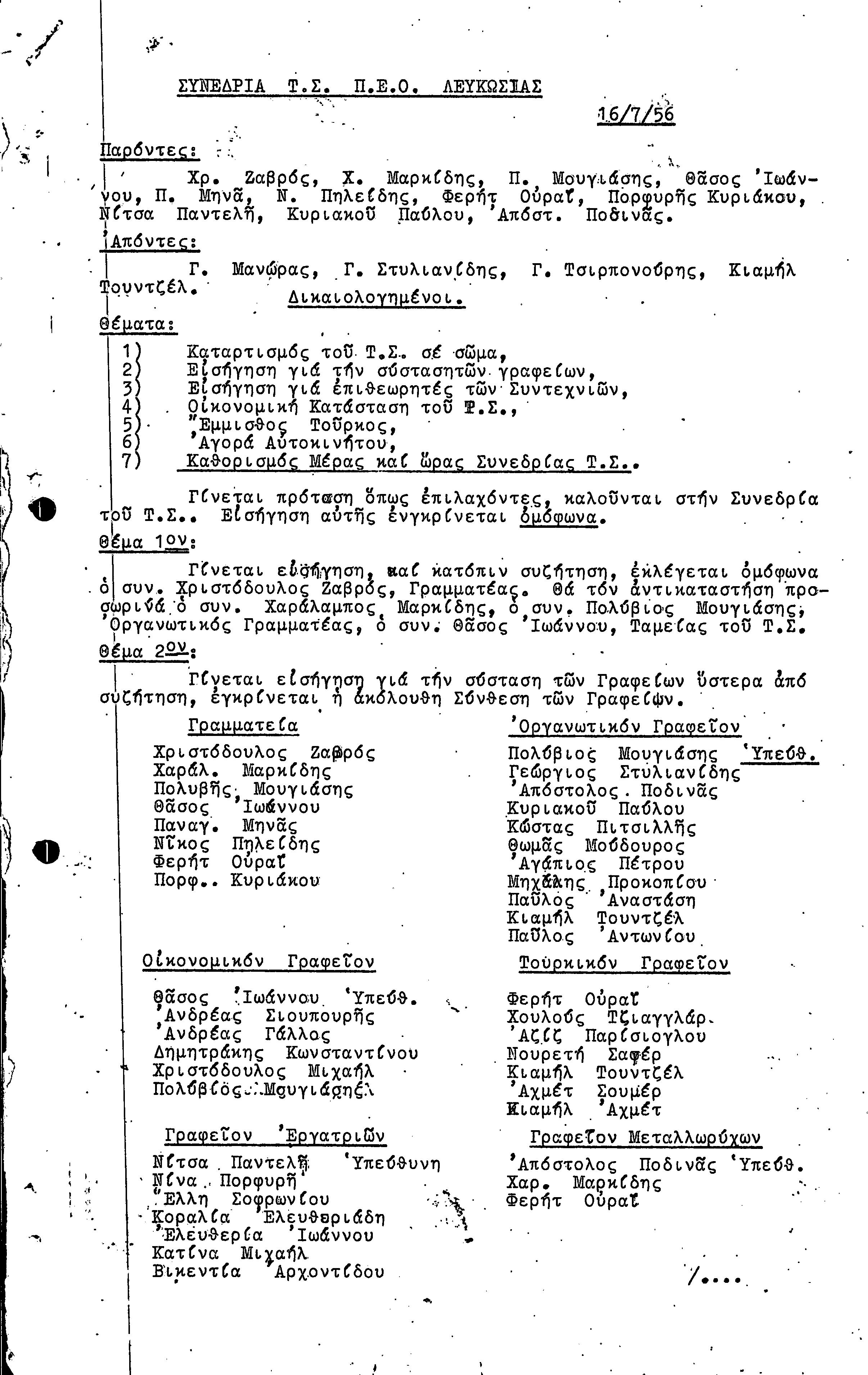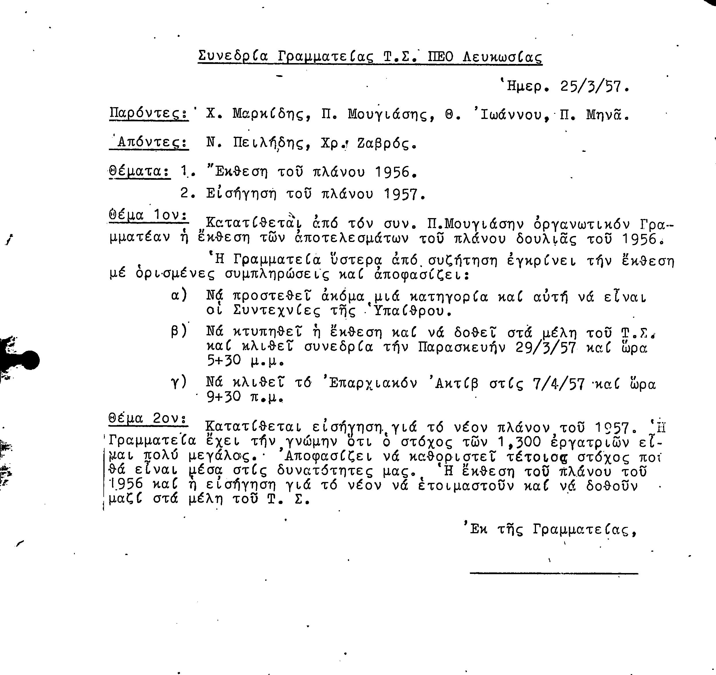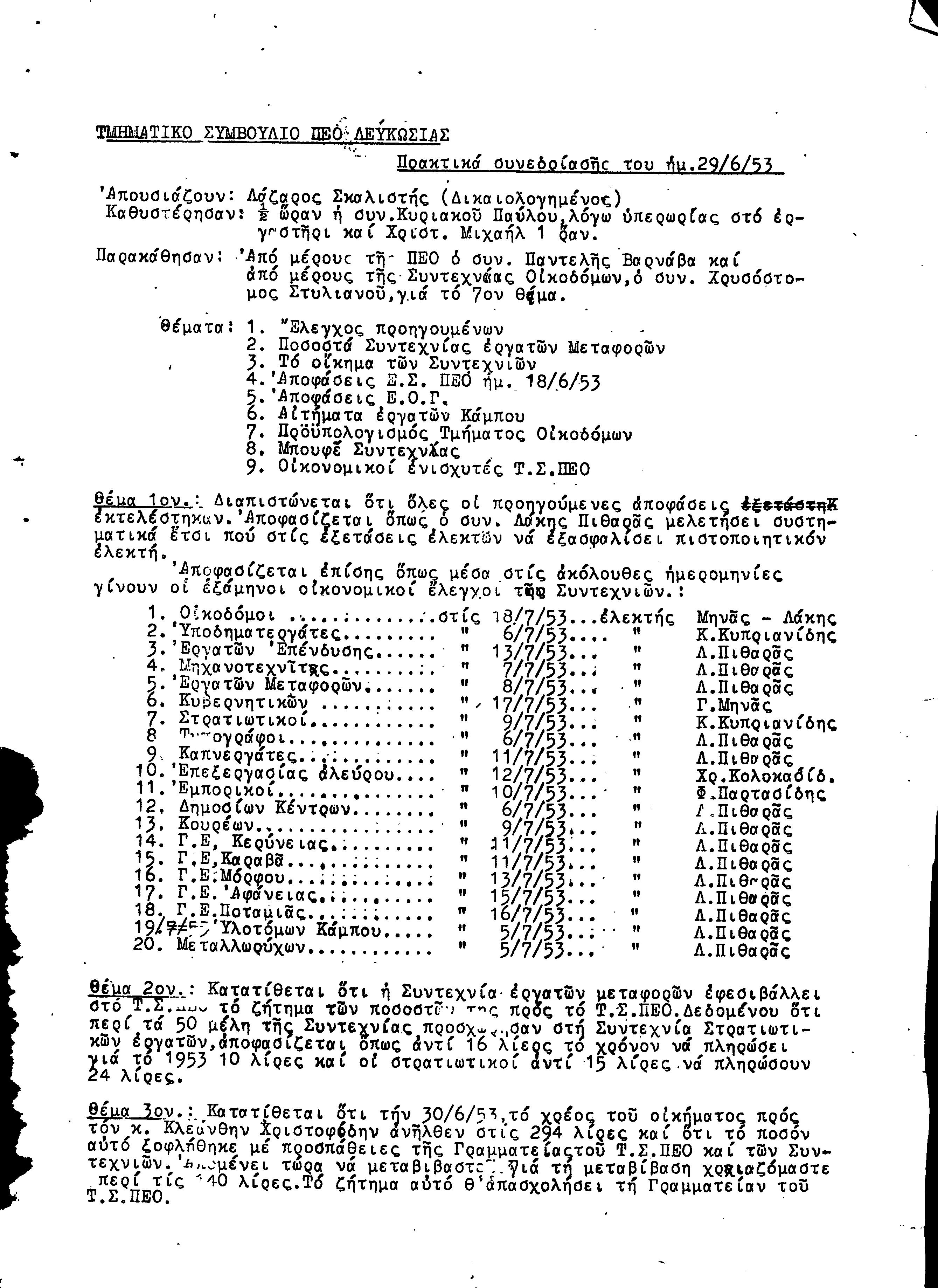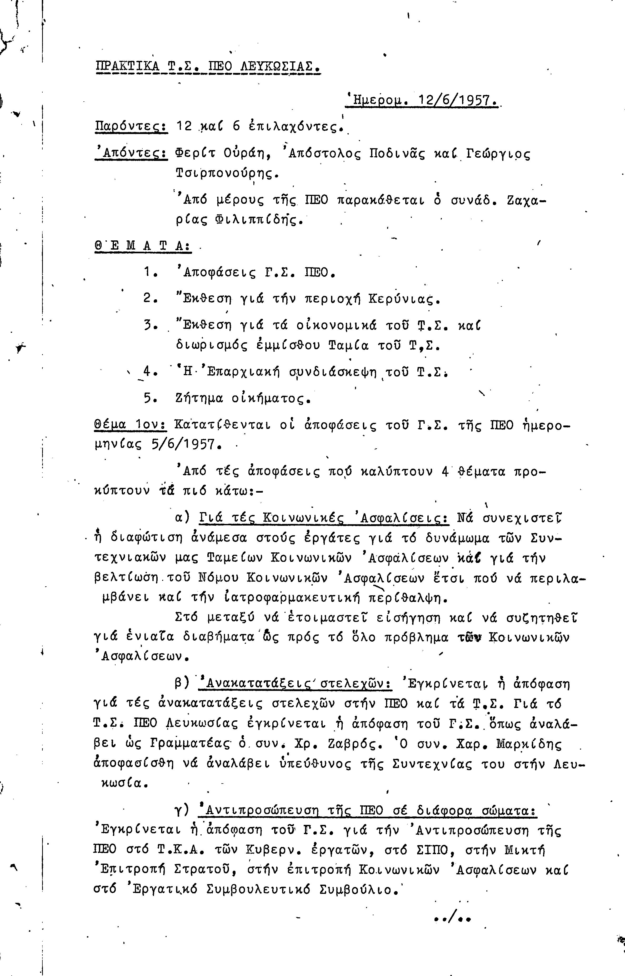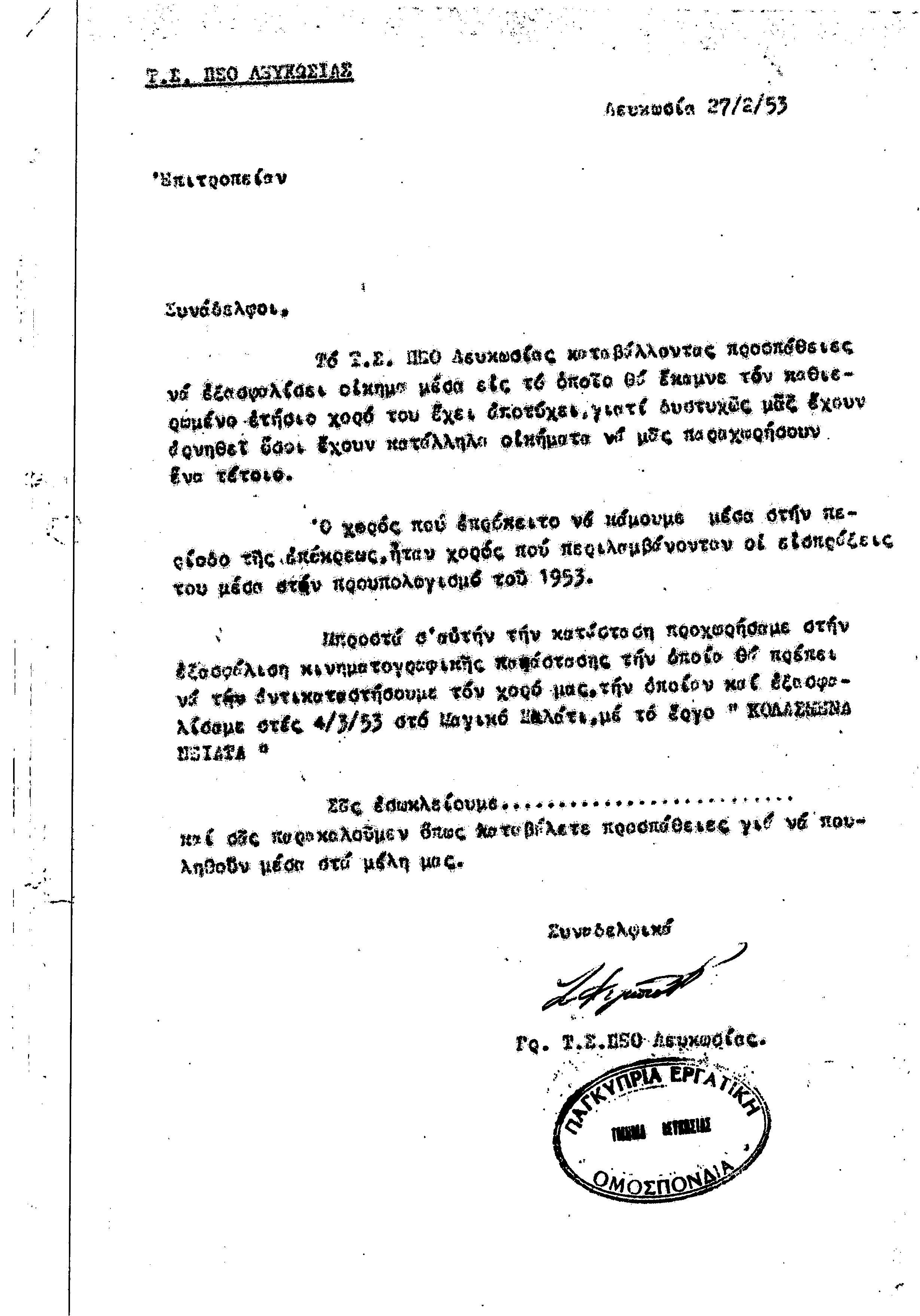 ΕΓΓΡΑΦΑ Τ.Σ. ΠΕΟ ΛΕΥΚΩΣΙΑΣ-ΚΕΡΥΝΕΙΑΣ 1953-1958