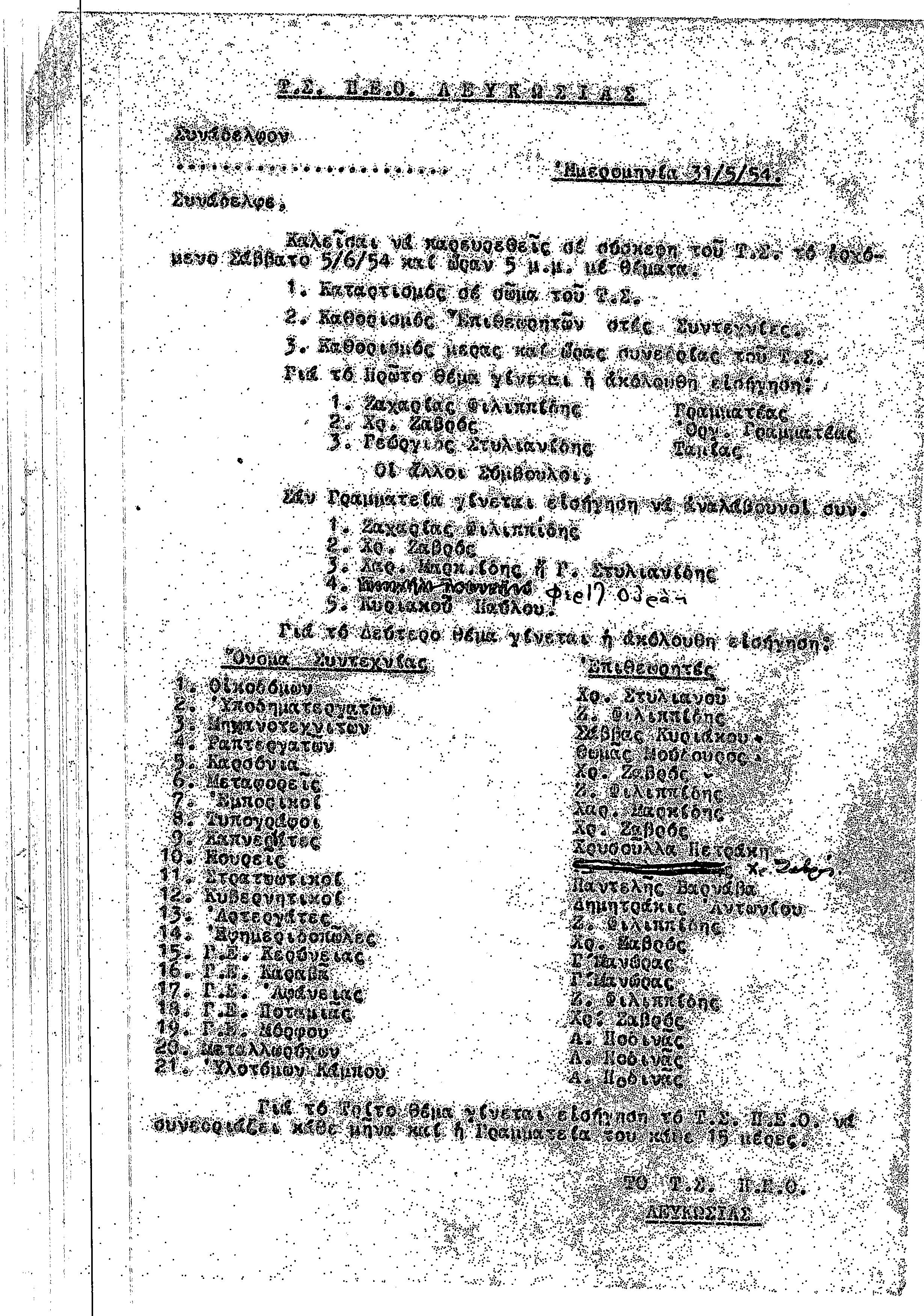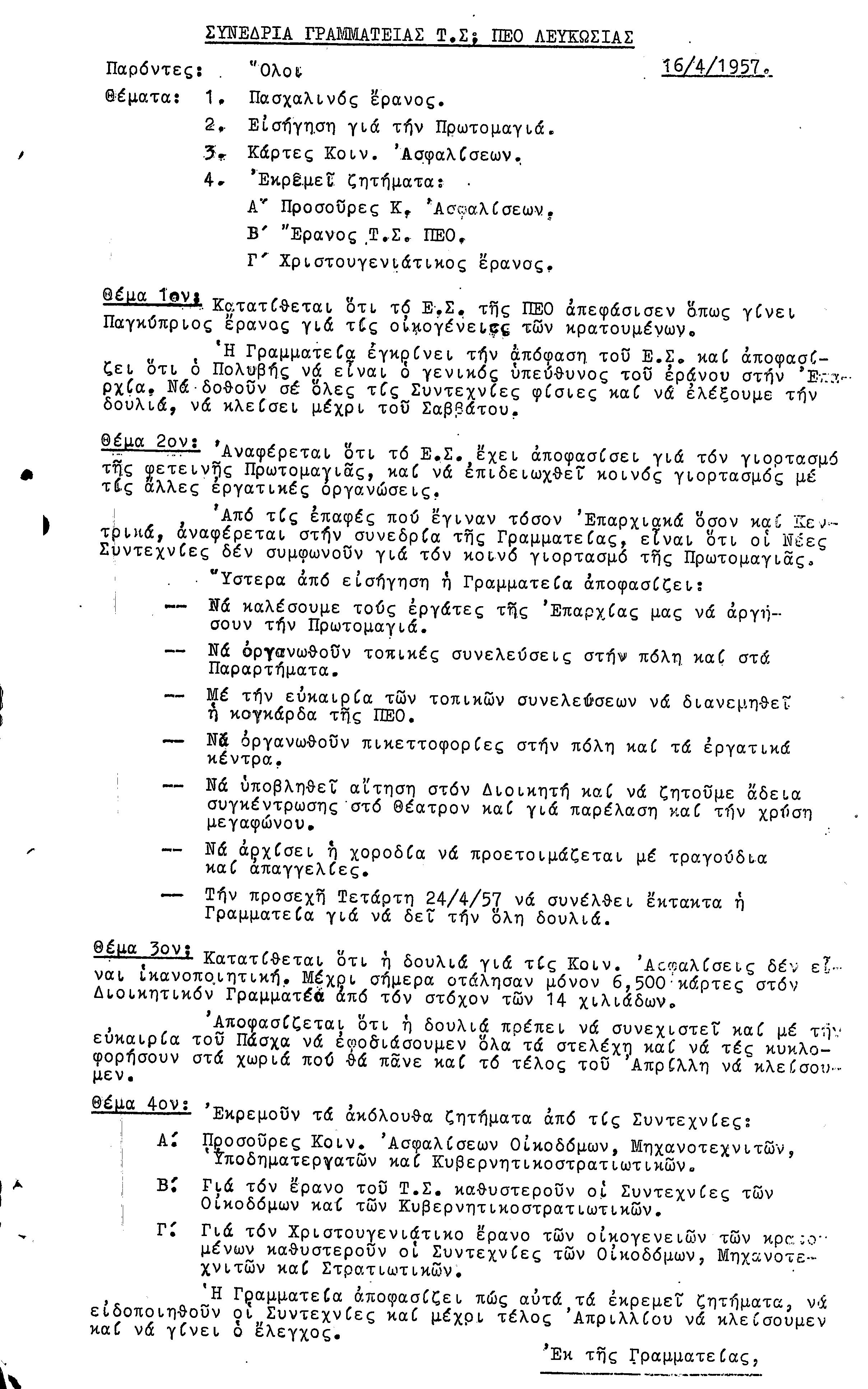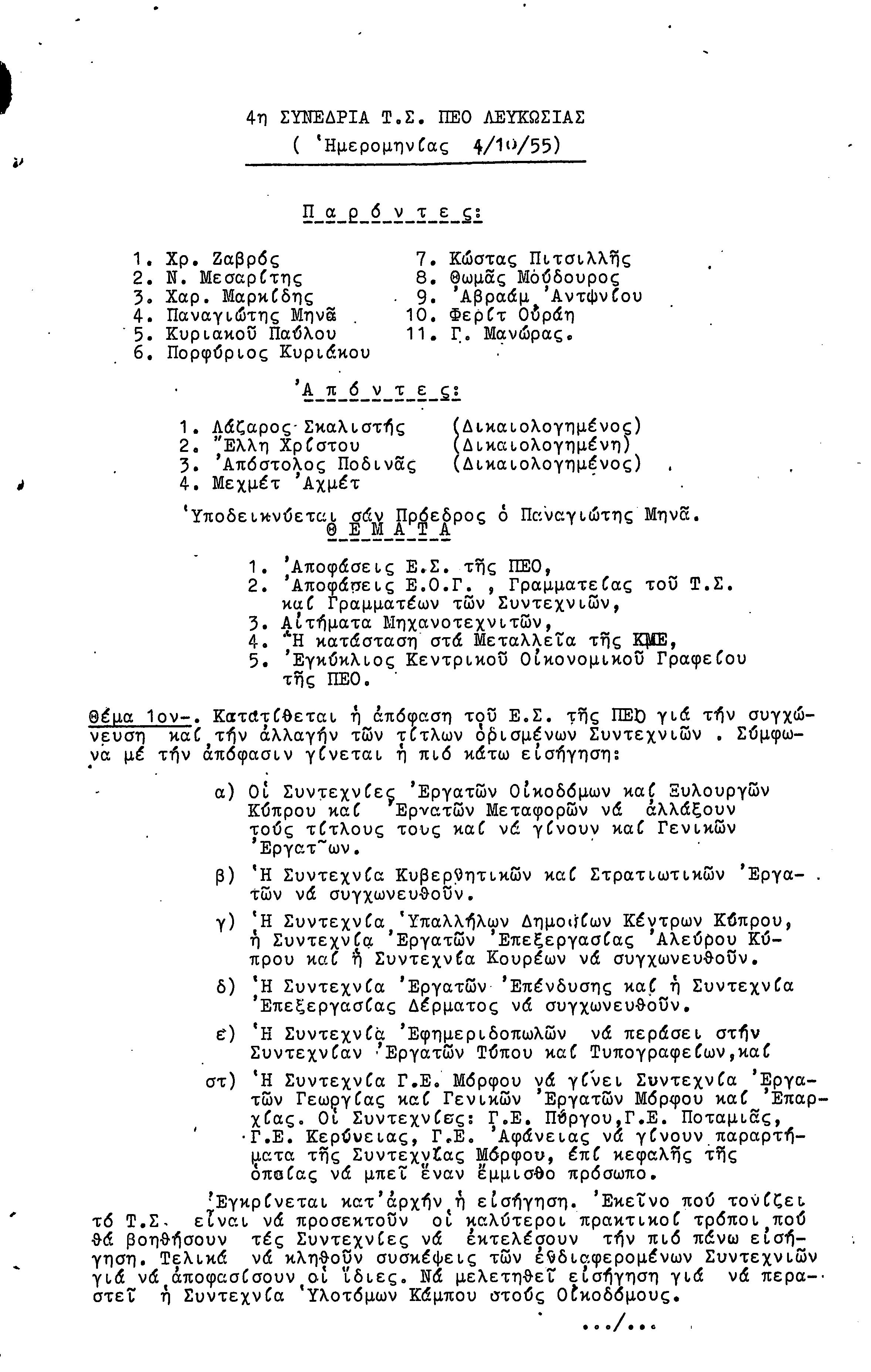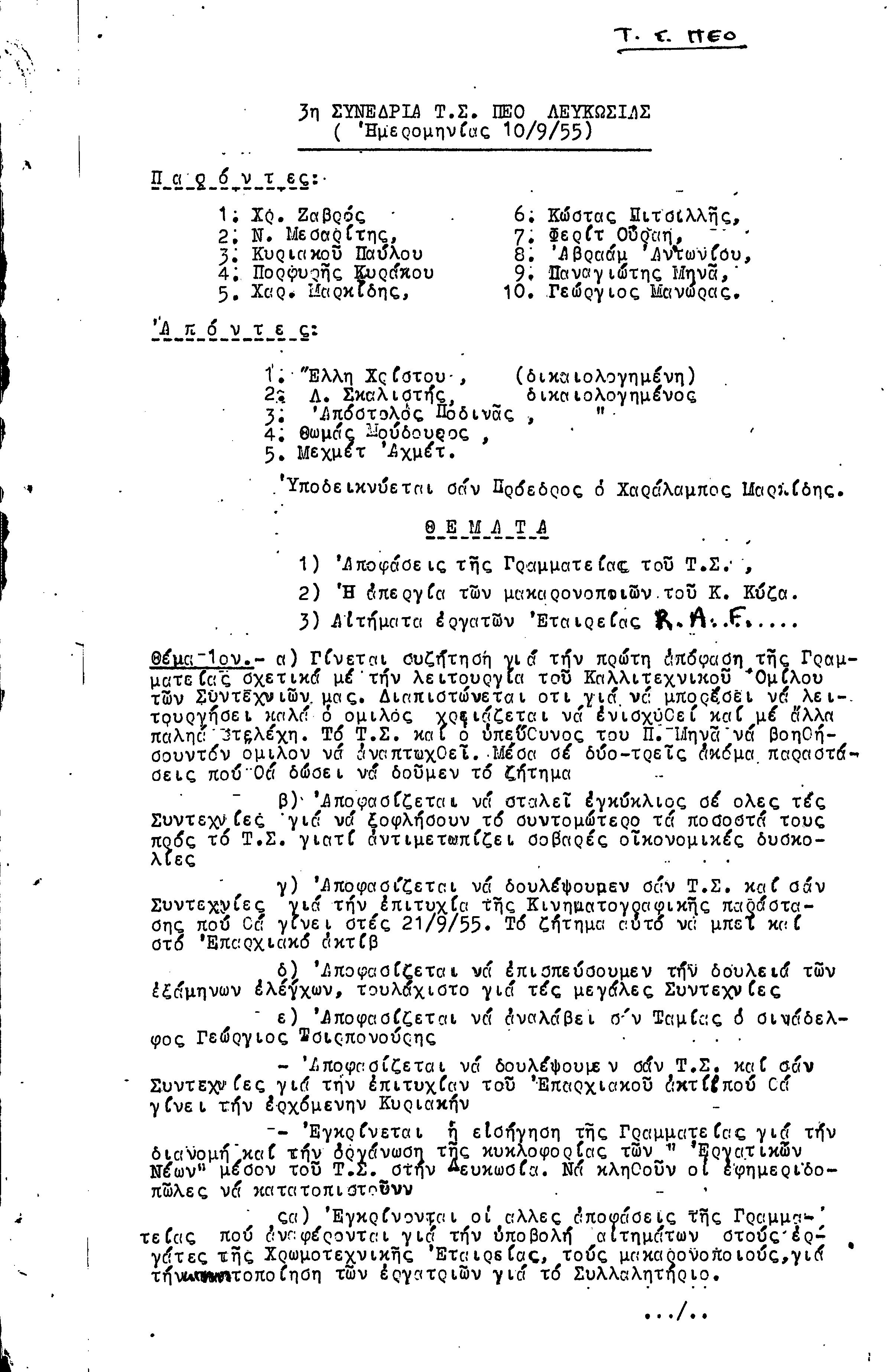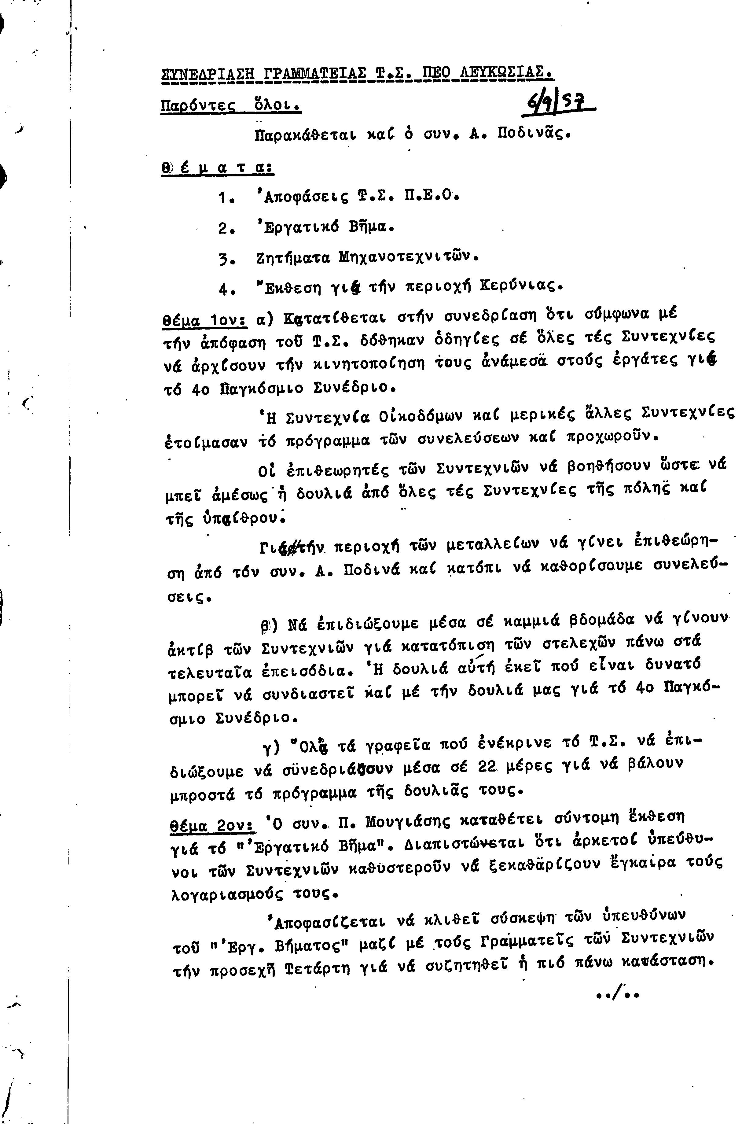 ΕΓΓΡΑΦΑ Τ.Σ. ΠΕΟ ΛΕΥΚΩΣΙΑΣ-ΚΕΡΥΝΕΙΑΣ 1953-1958