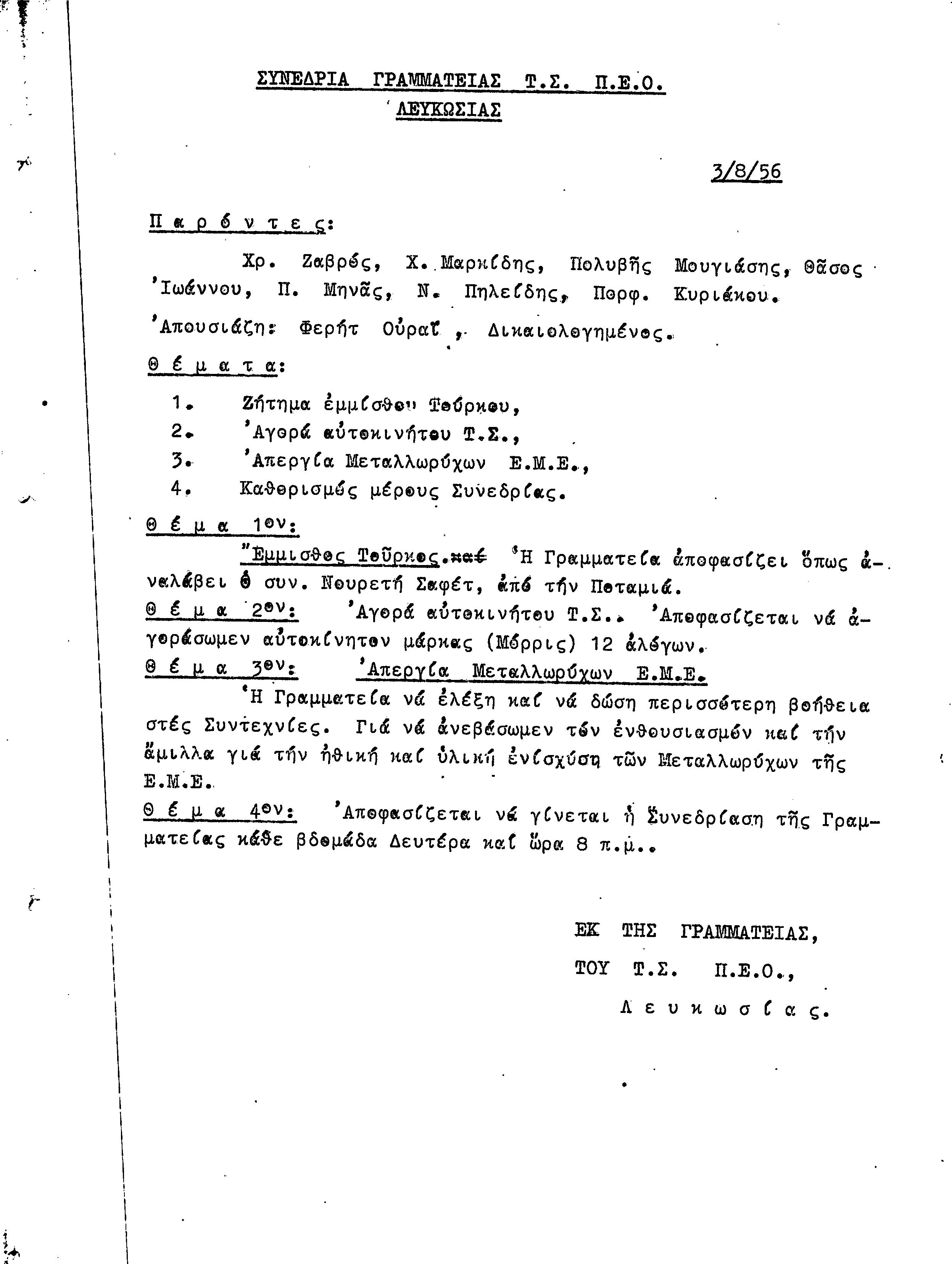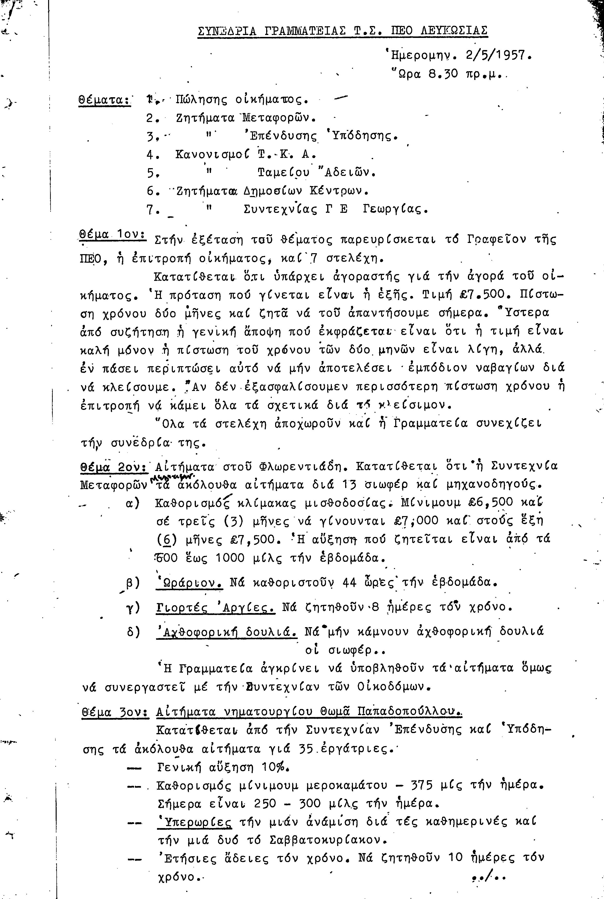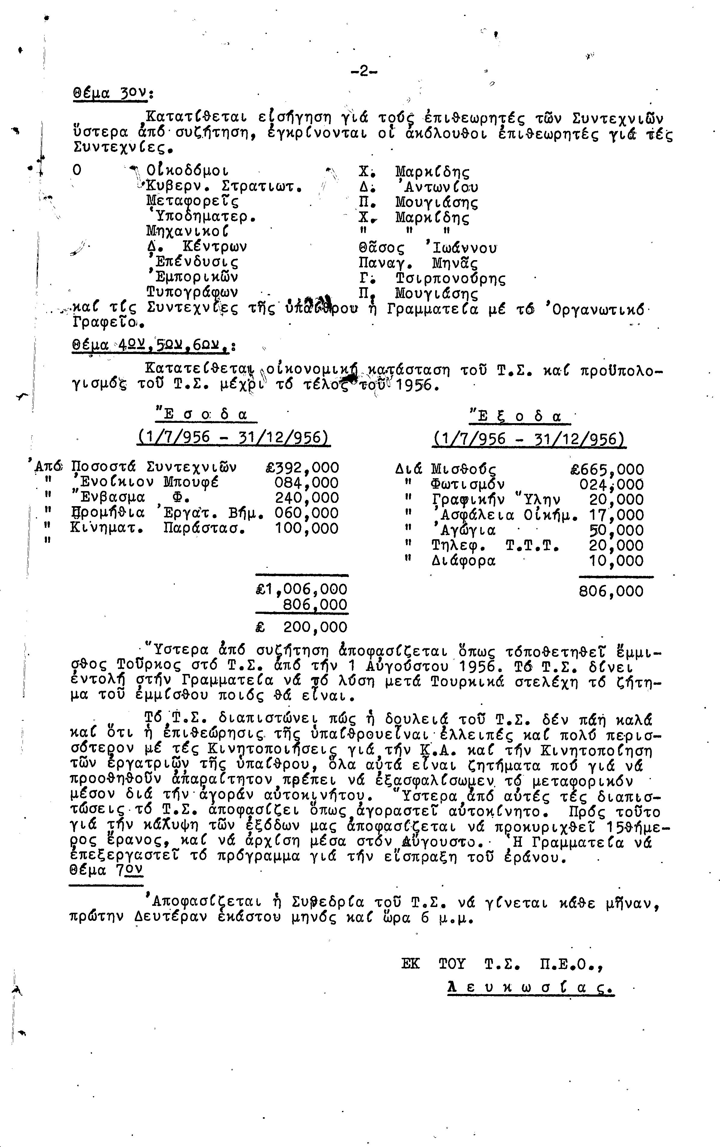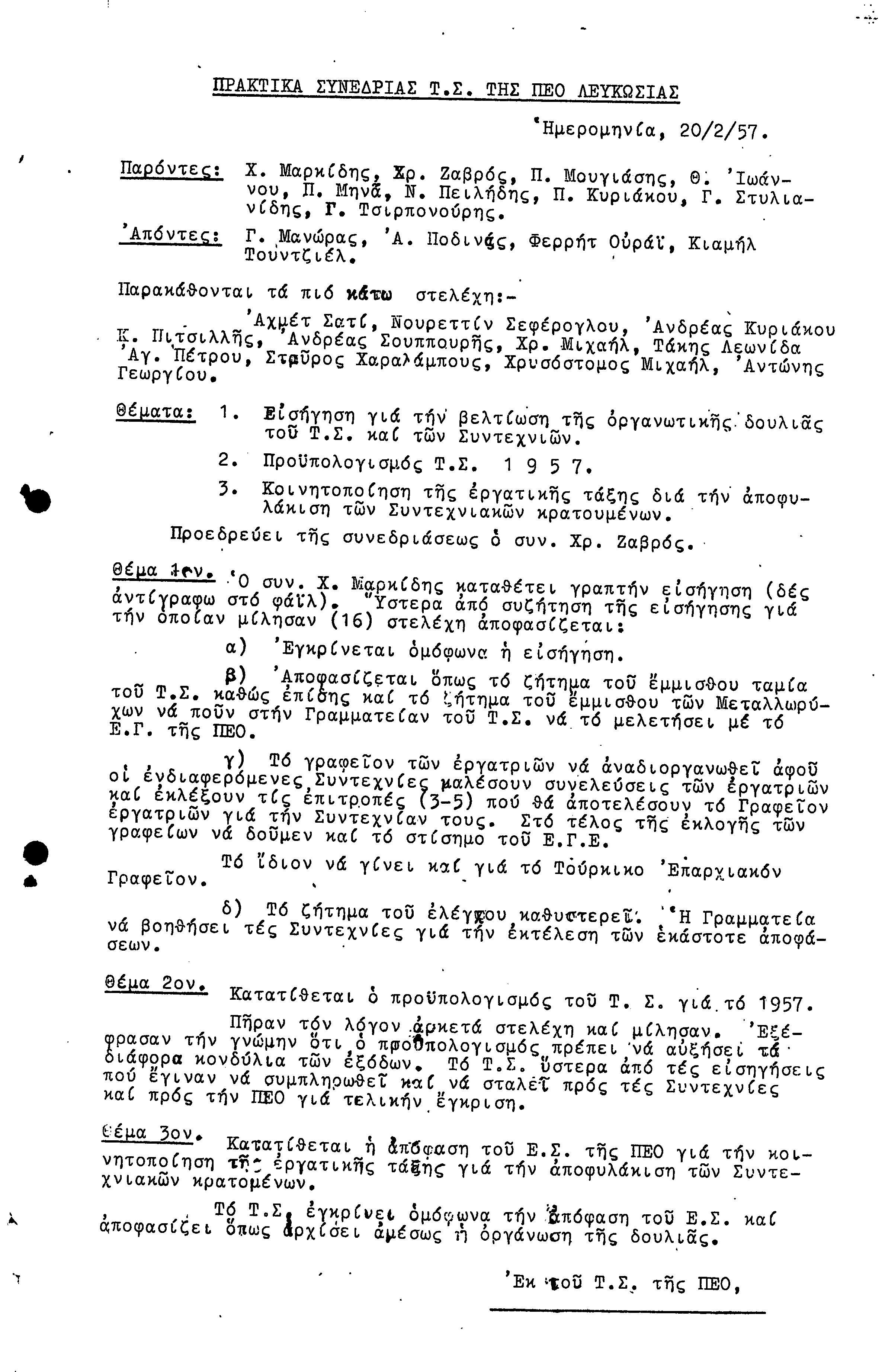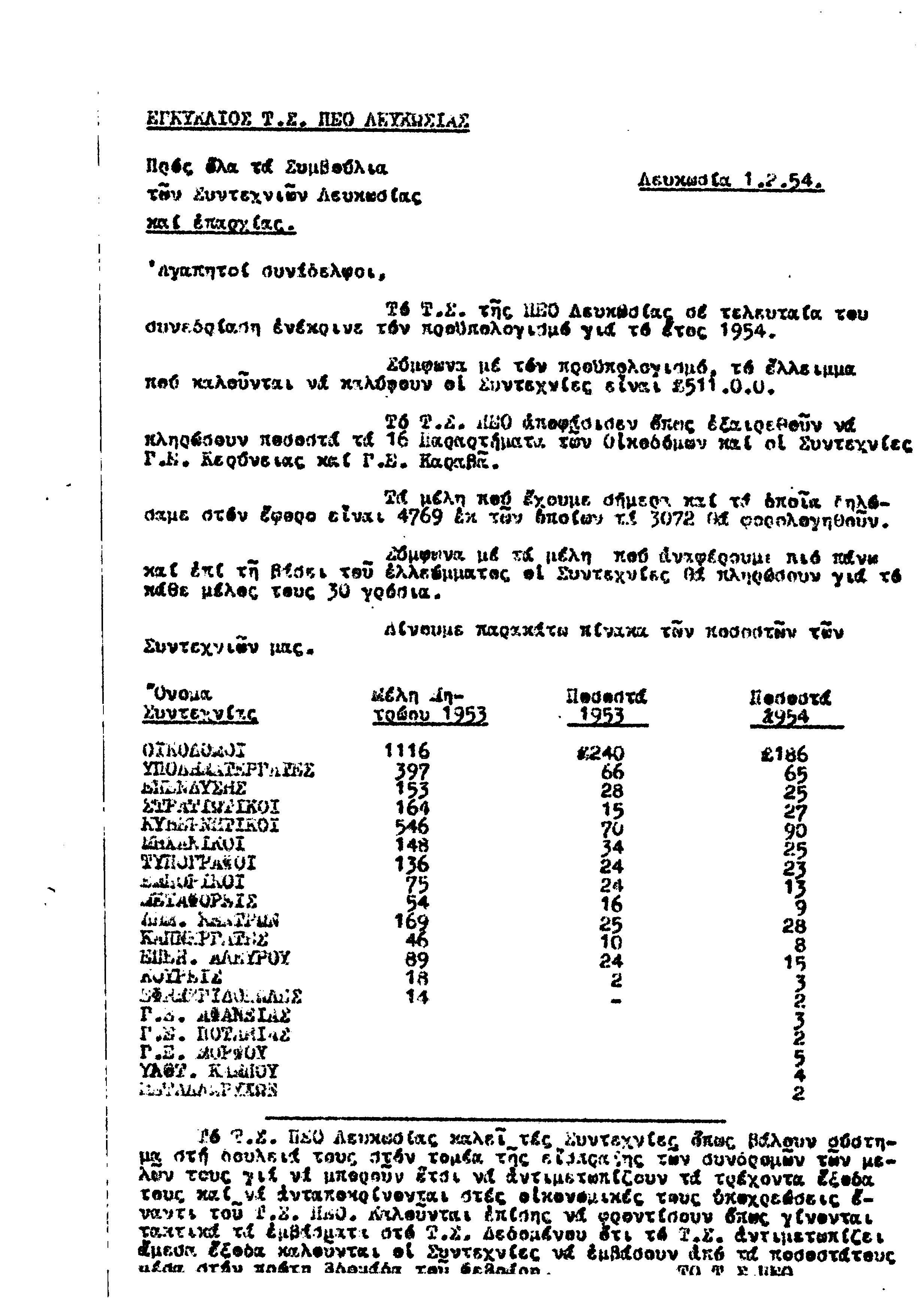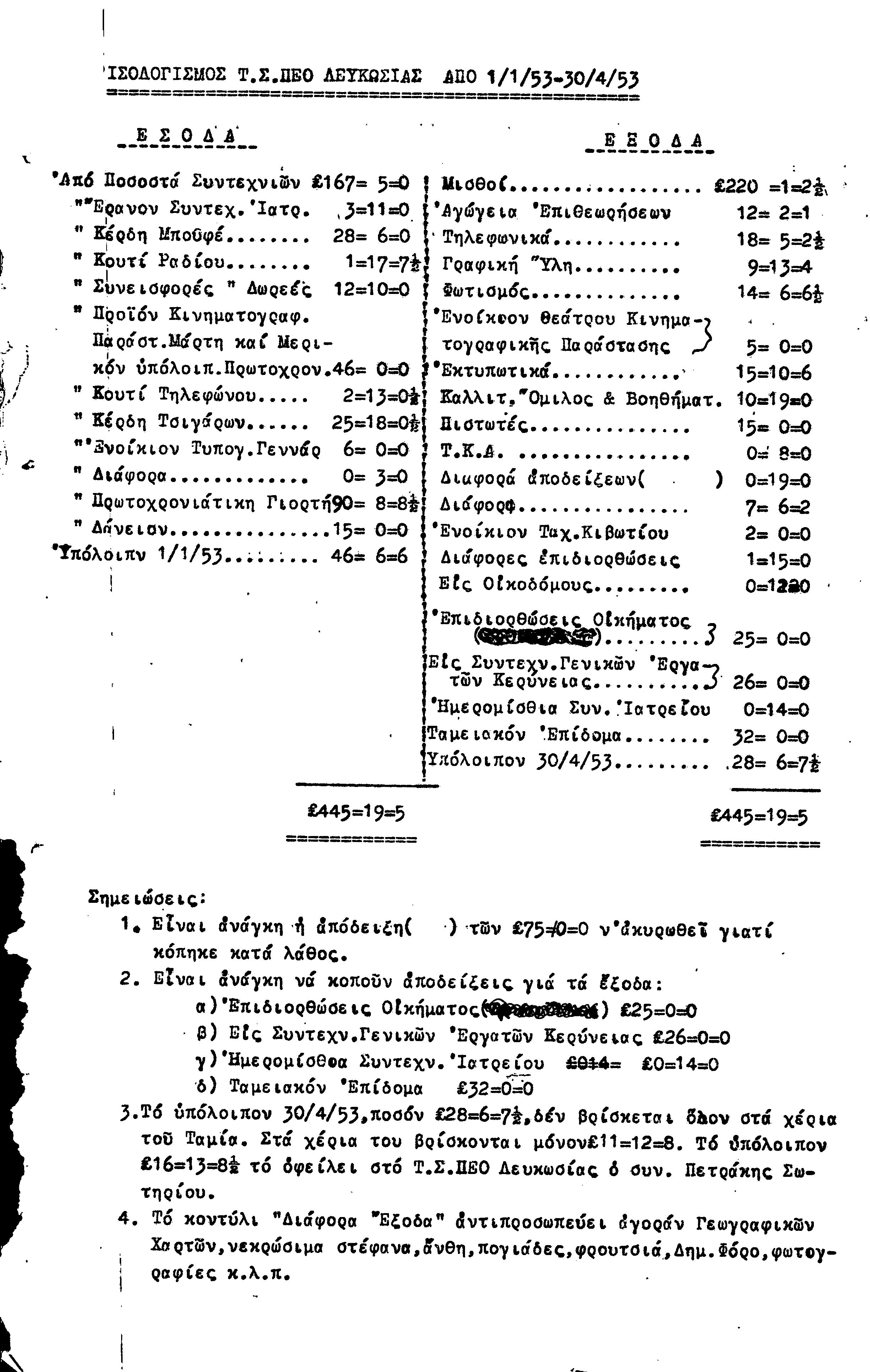 ΕΓΓΡΑΦΑ Τ.Σ. ΠΕΟ ΛΕΥΚΩΣΙΑΣ-ΚΕΡΥΝΕΙΑΣ 1953-1958