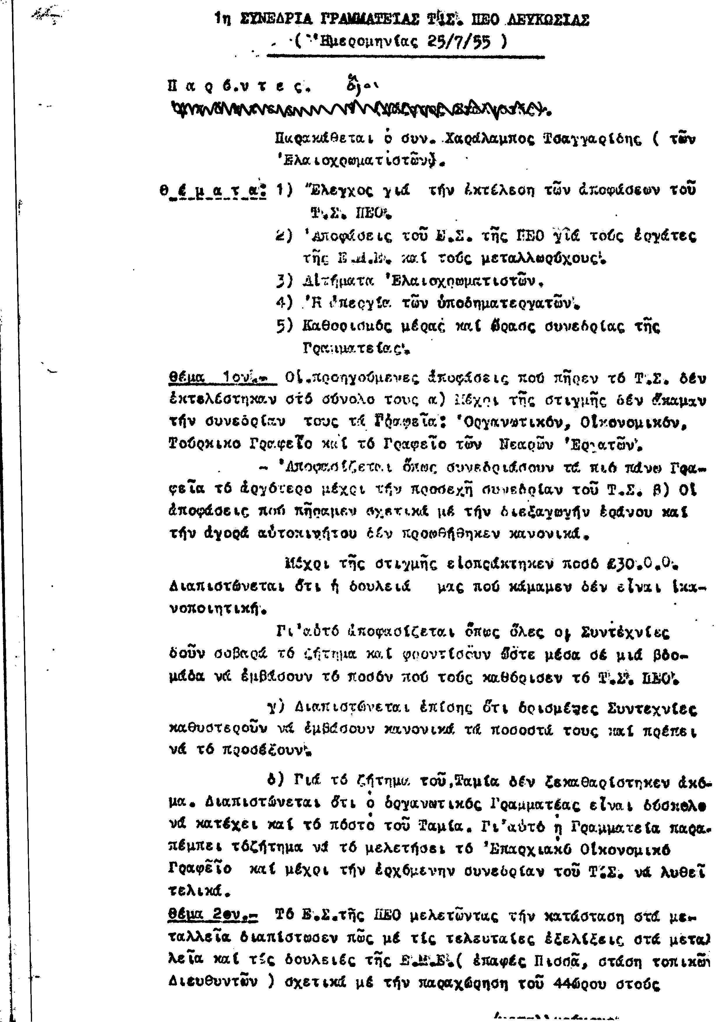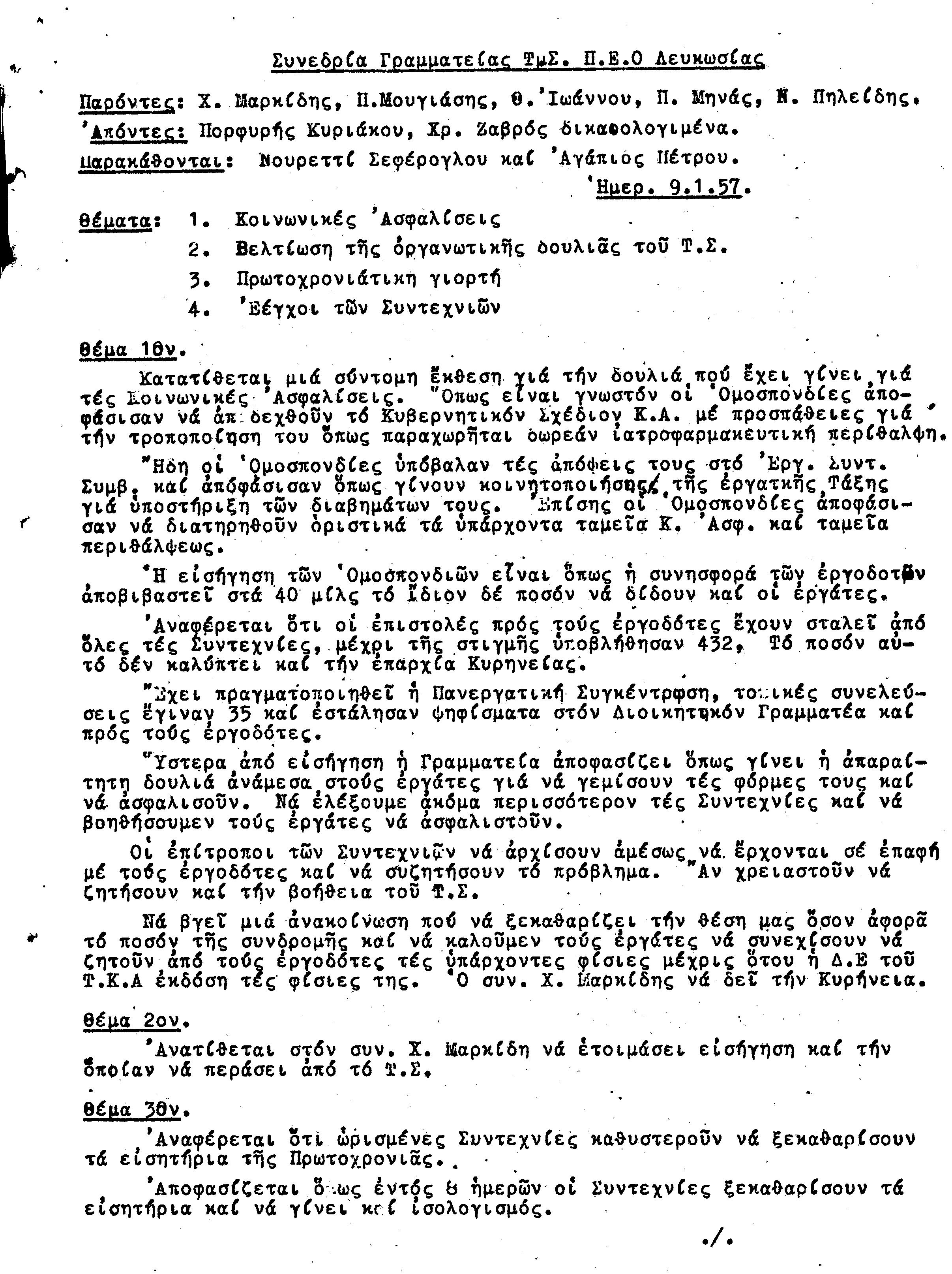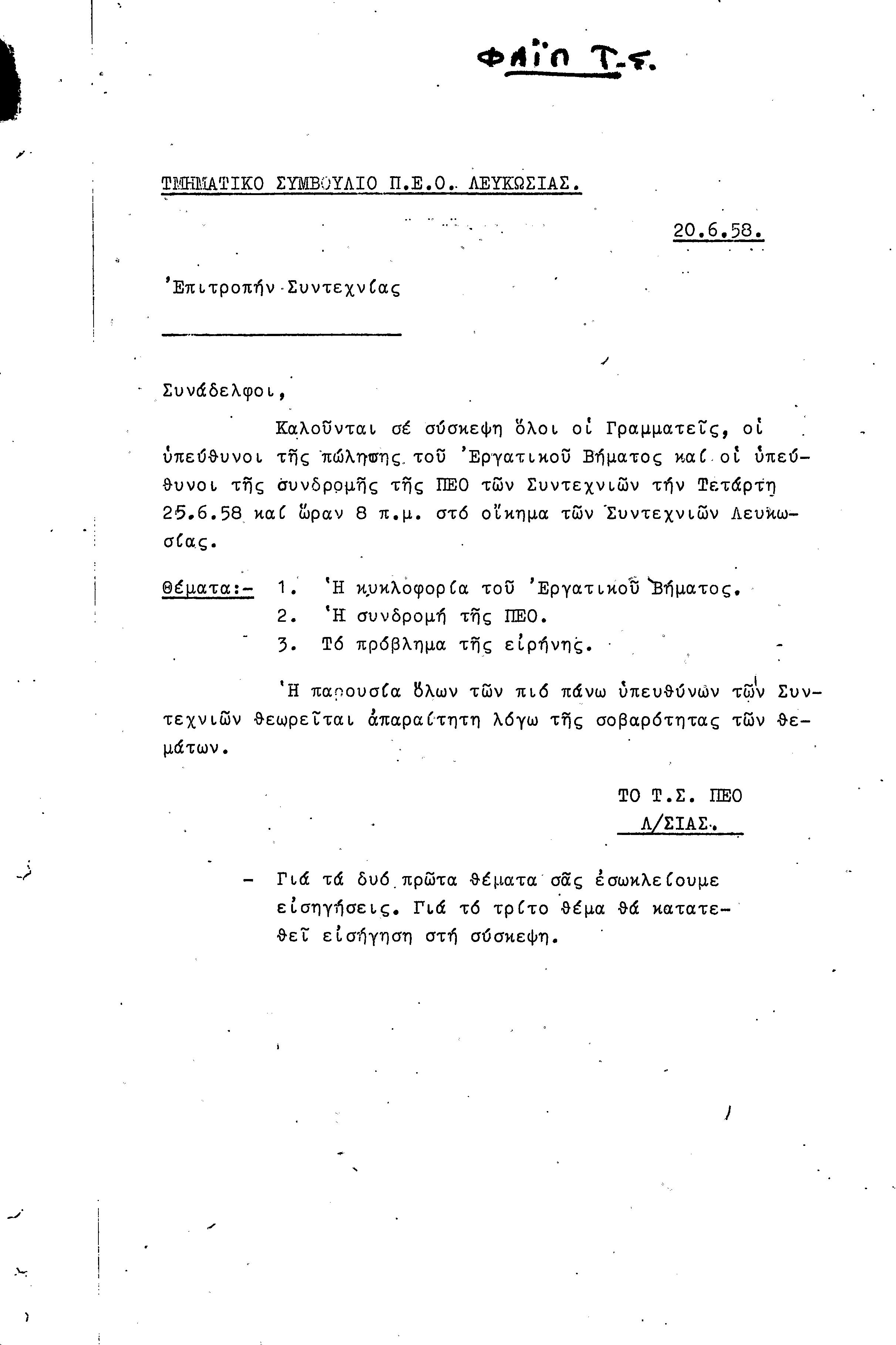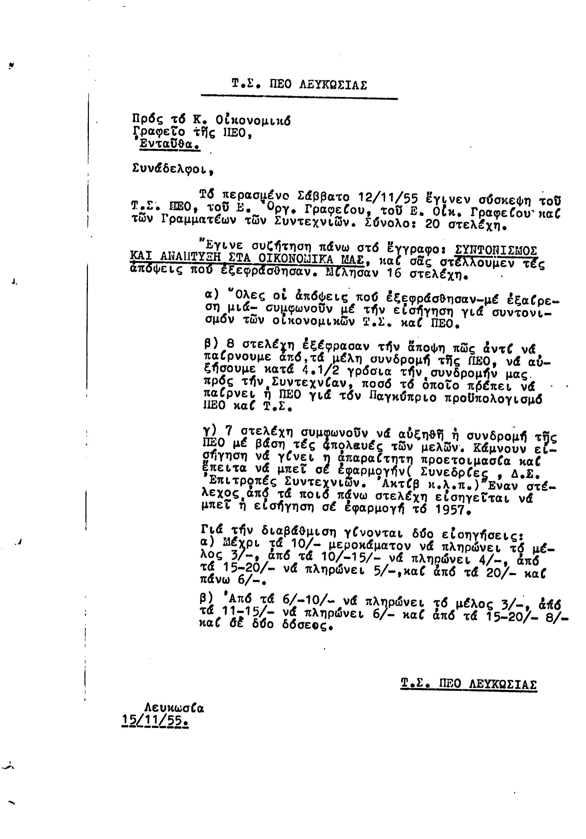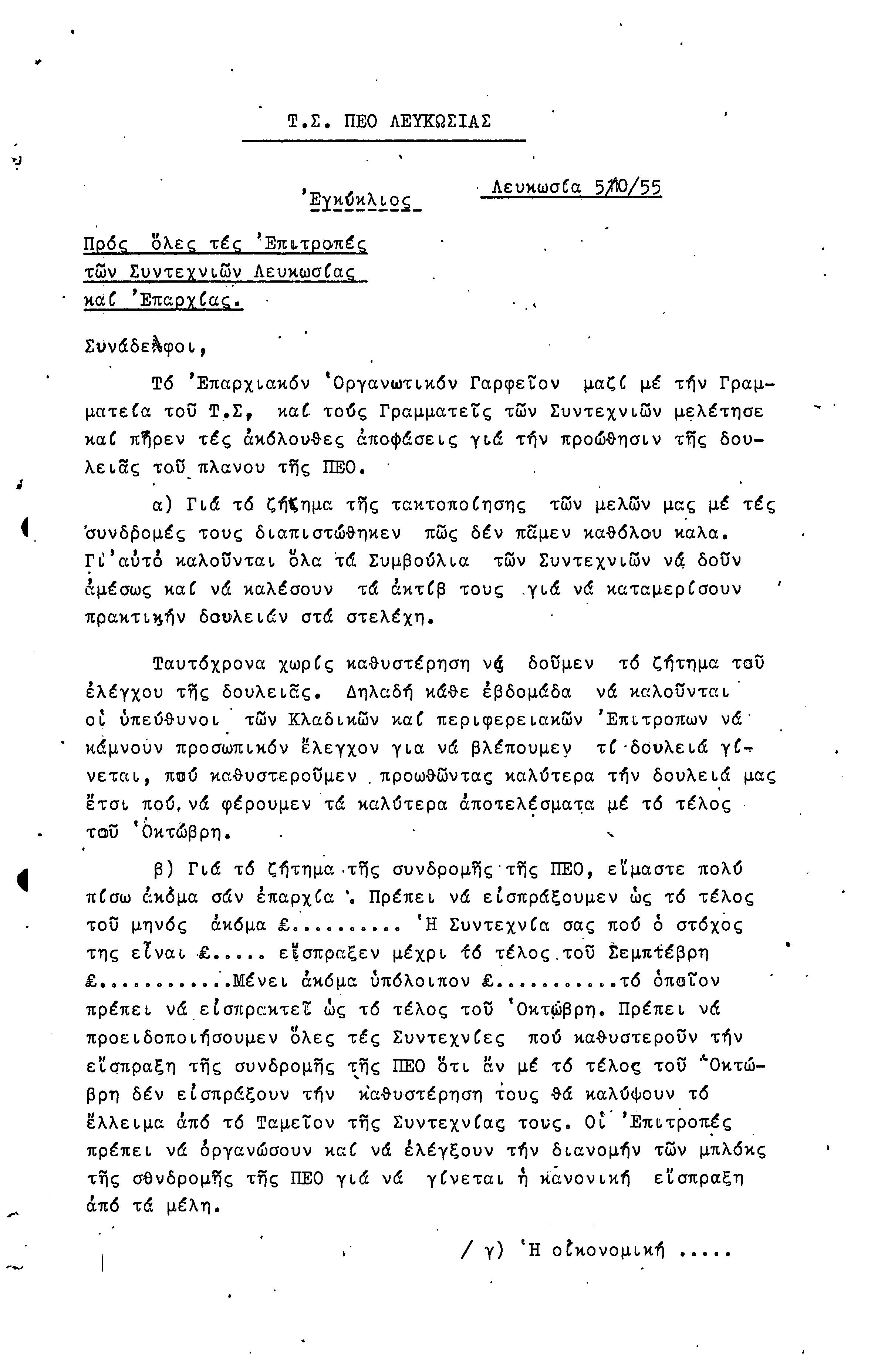 ΕΓΓΡΑΦΑ Τ.Σ. ΠΕΟ ΛΕΥΚΩΣΙΑΣ-ΚΕΡΥΝΕΙΑΣ 1953-1958