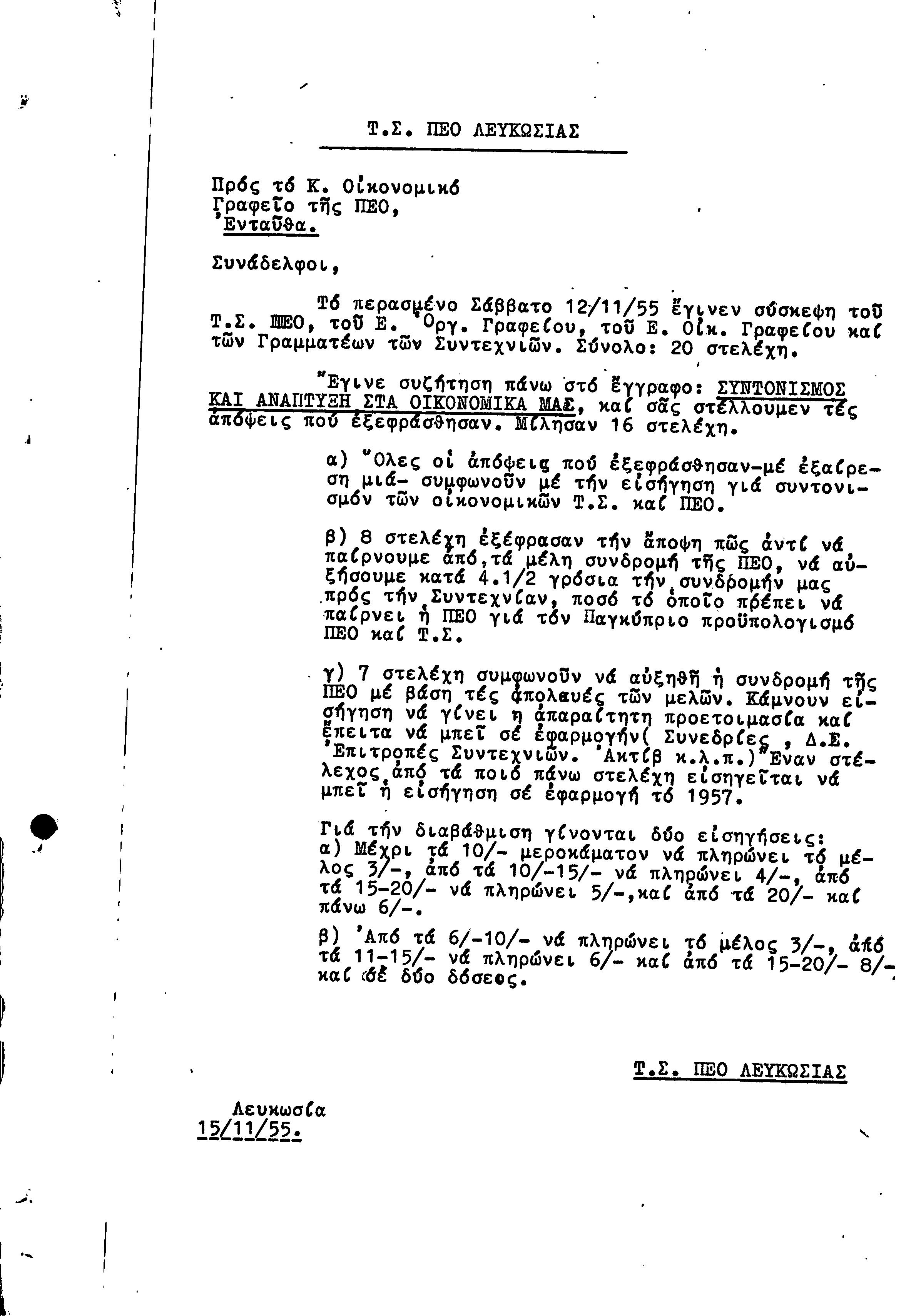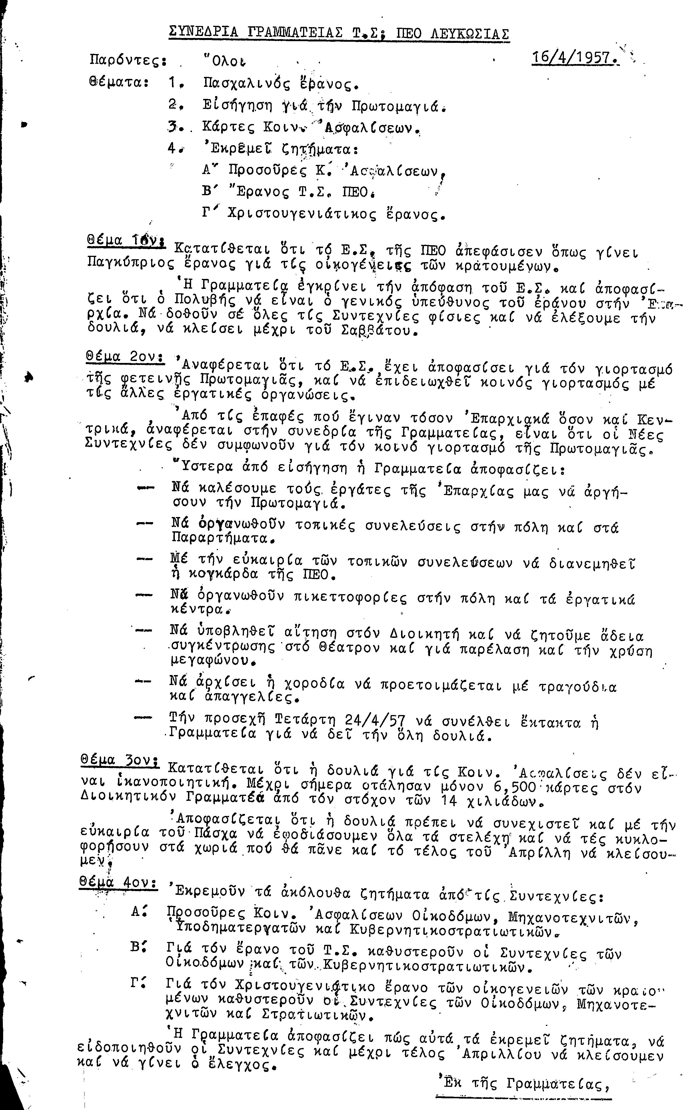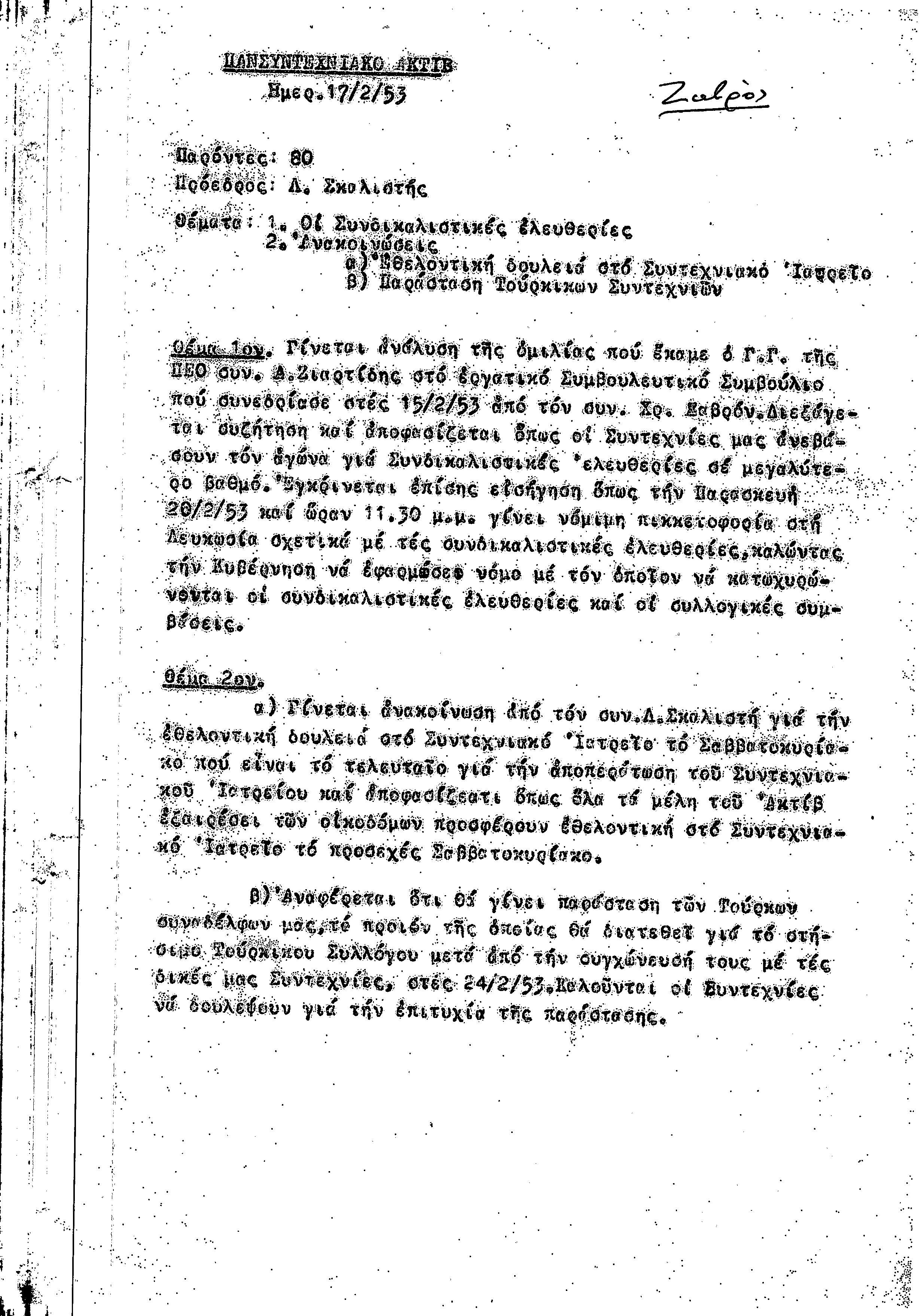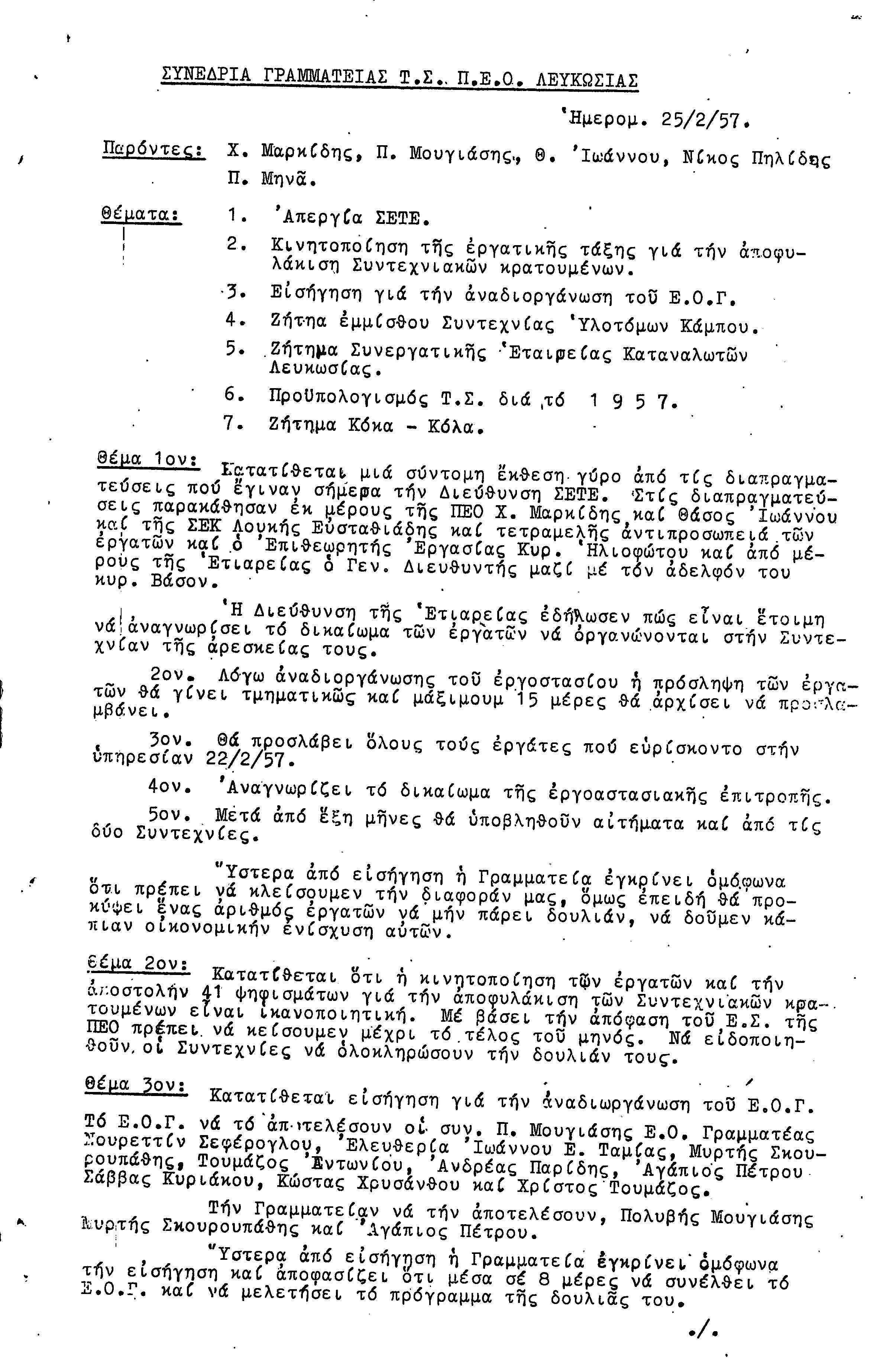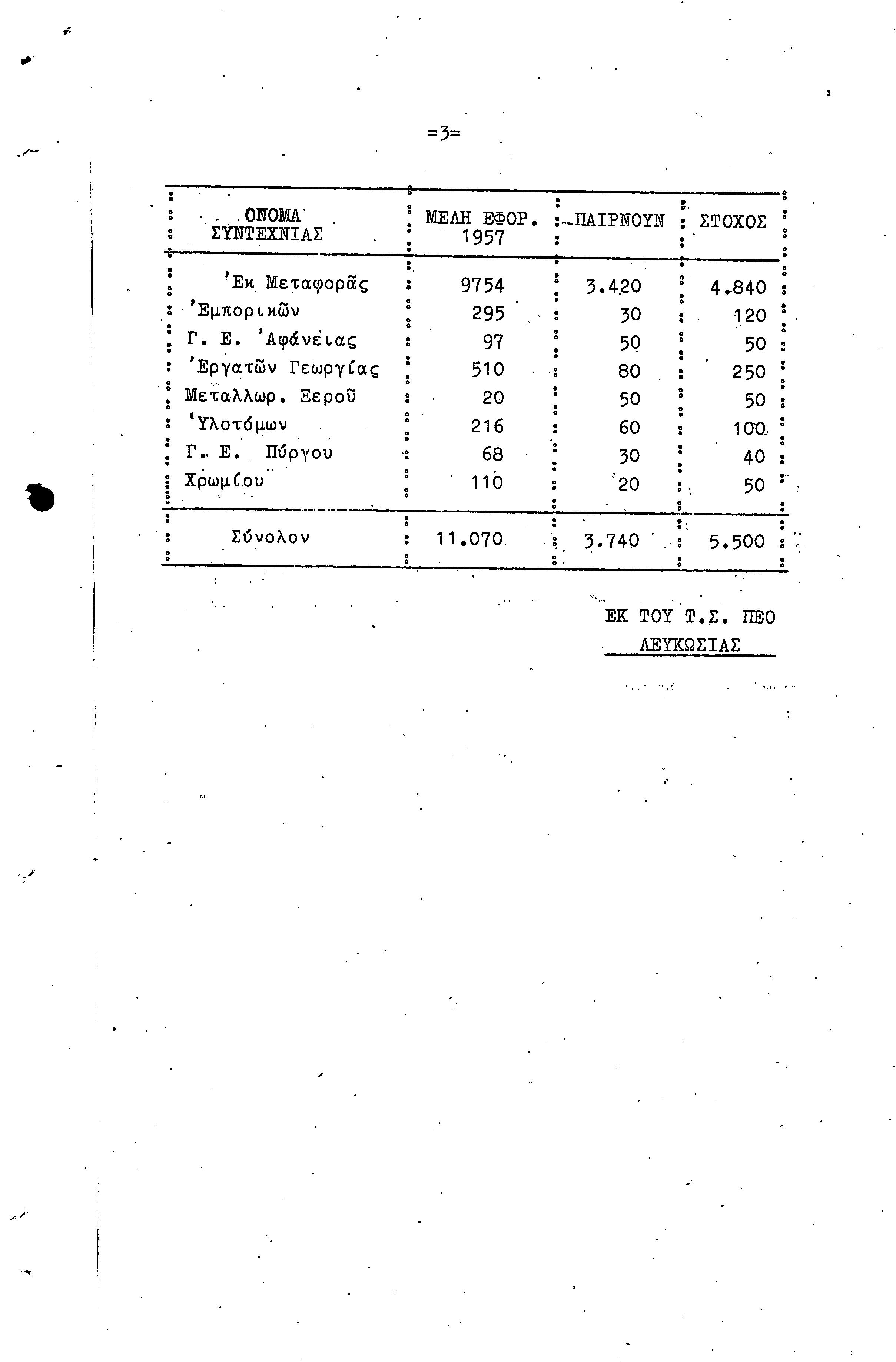 ΕΓΓΡΑΦΑ Τ.Σ. ΠΕΟ ΛΕΥΚΩΣΙΑΣ-ΚΕΡΥΝΕΙΑΣ 1953-1958