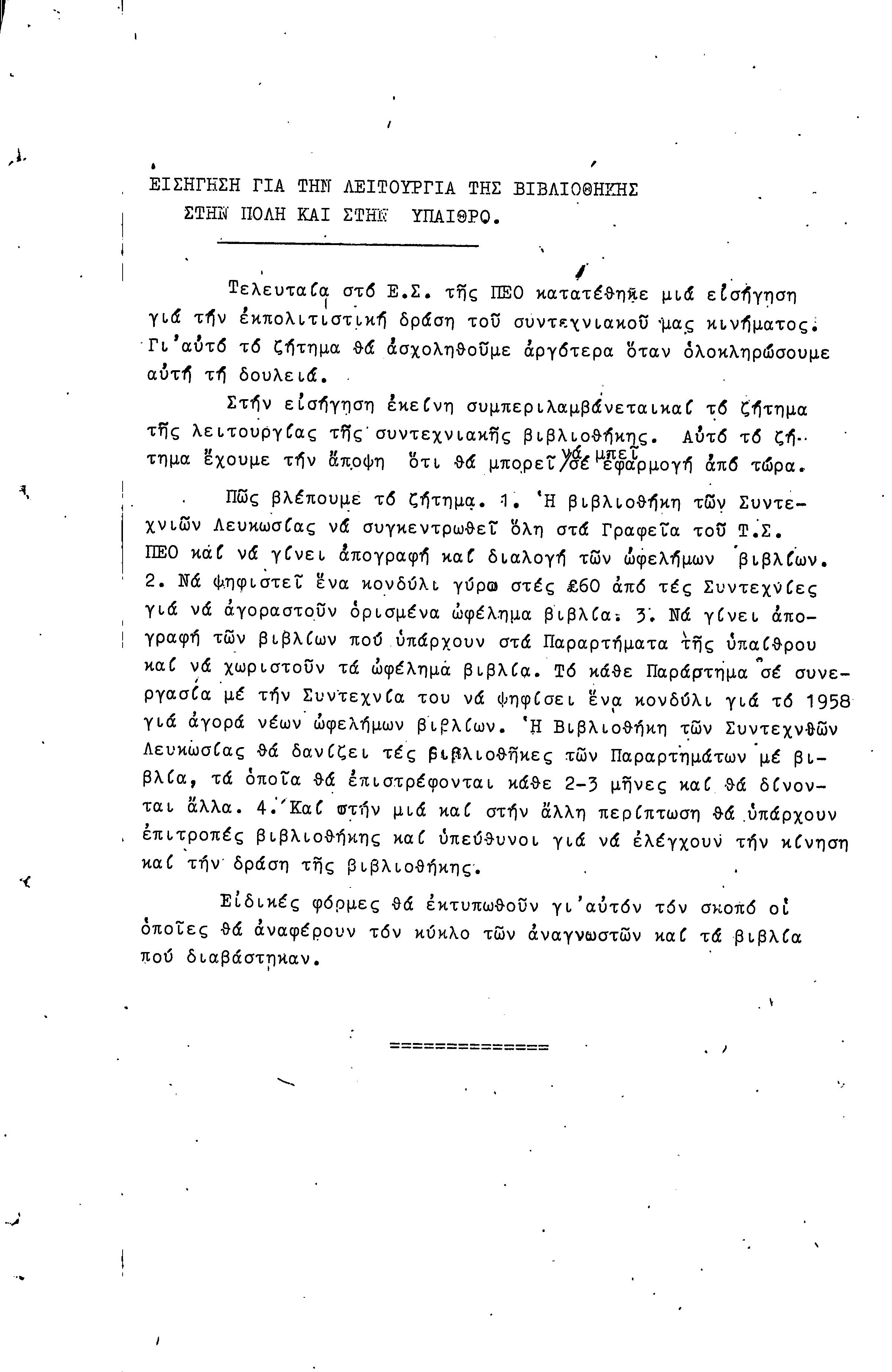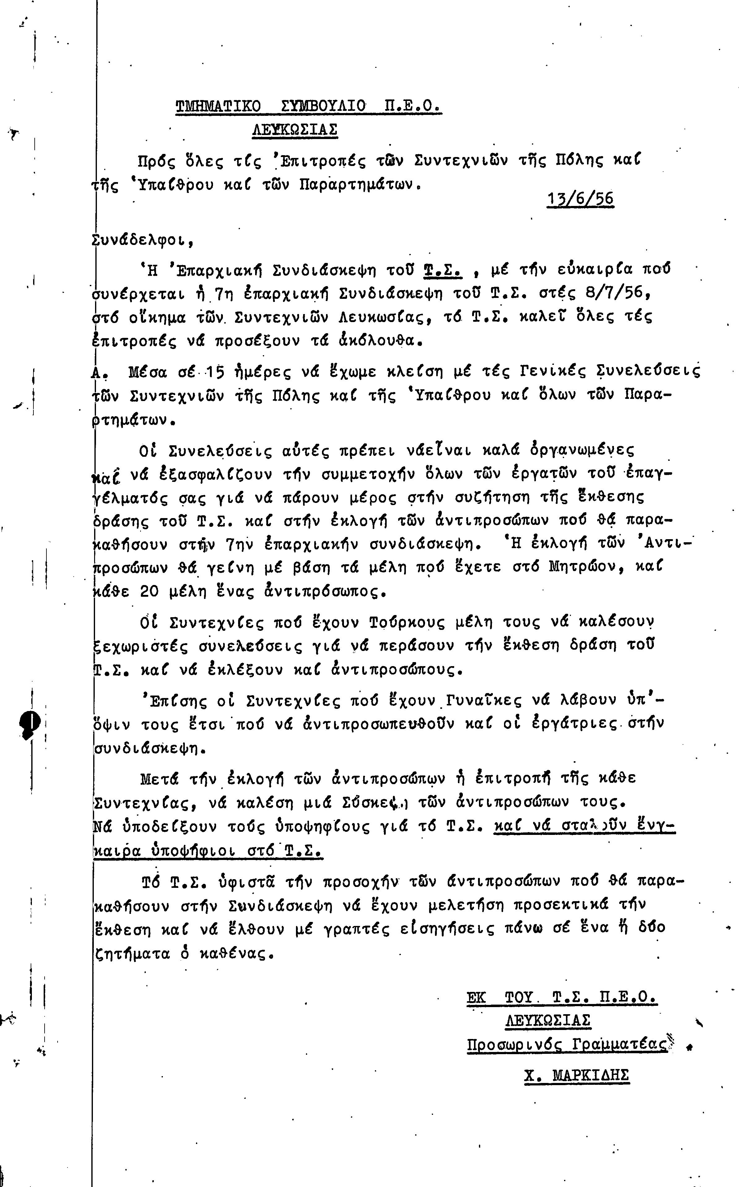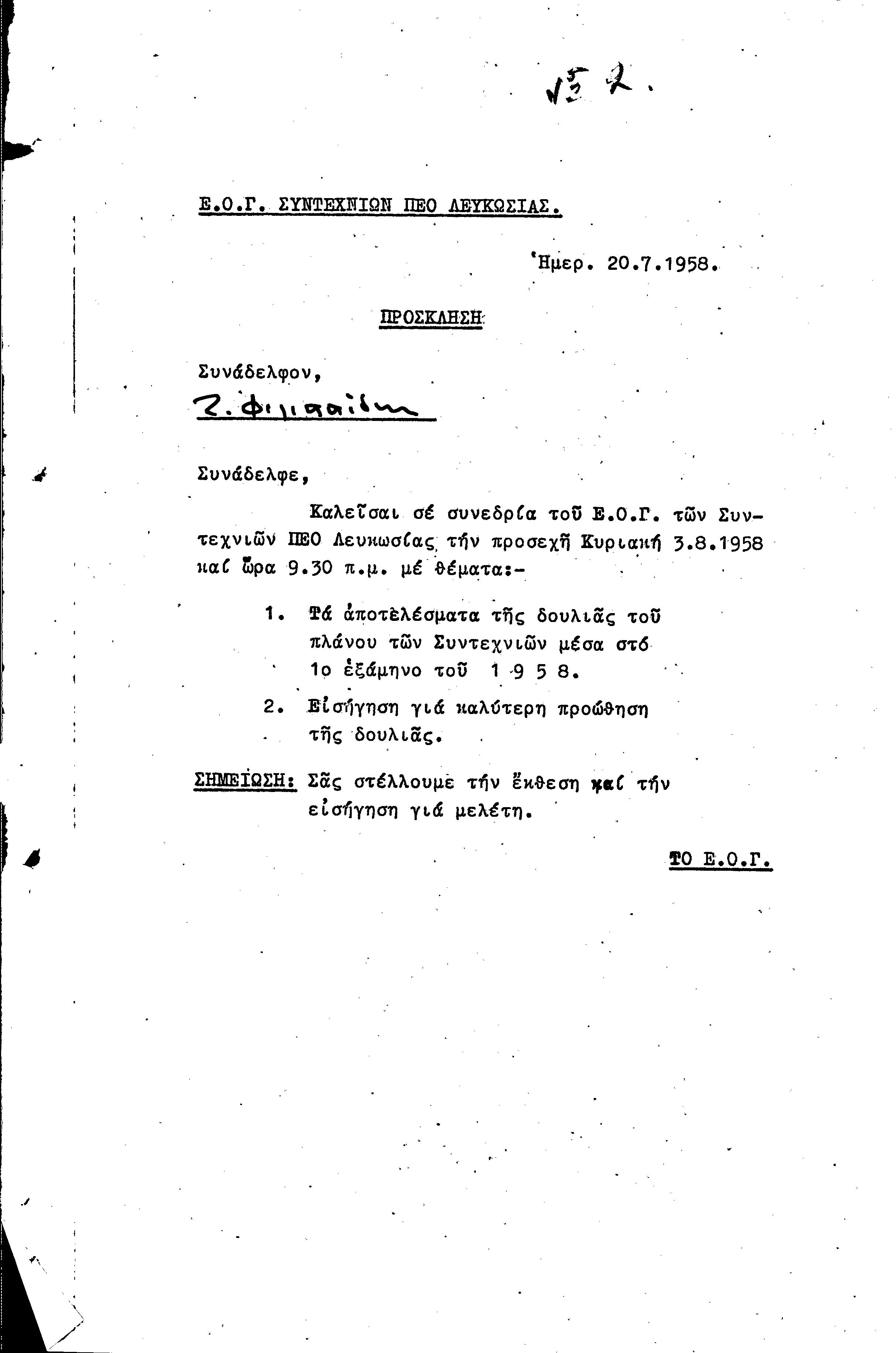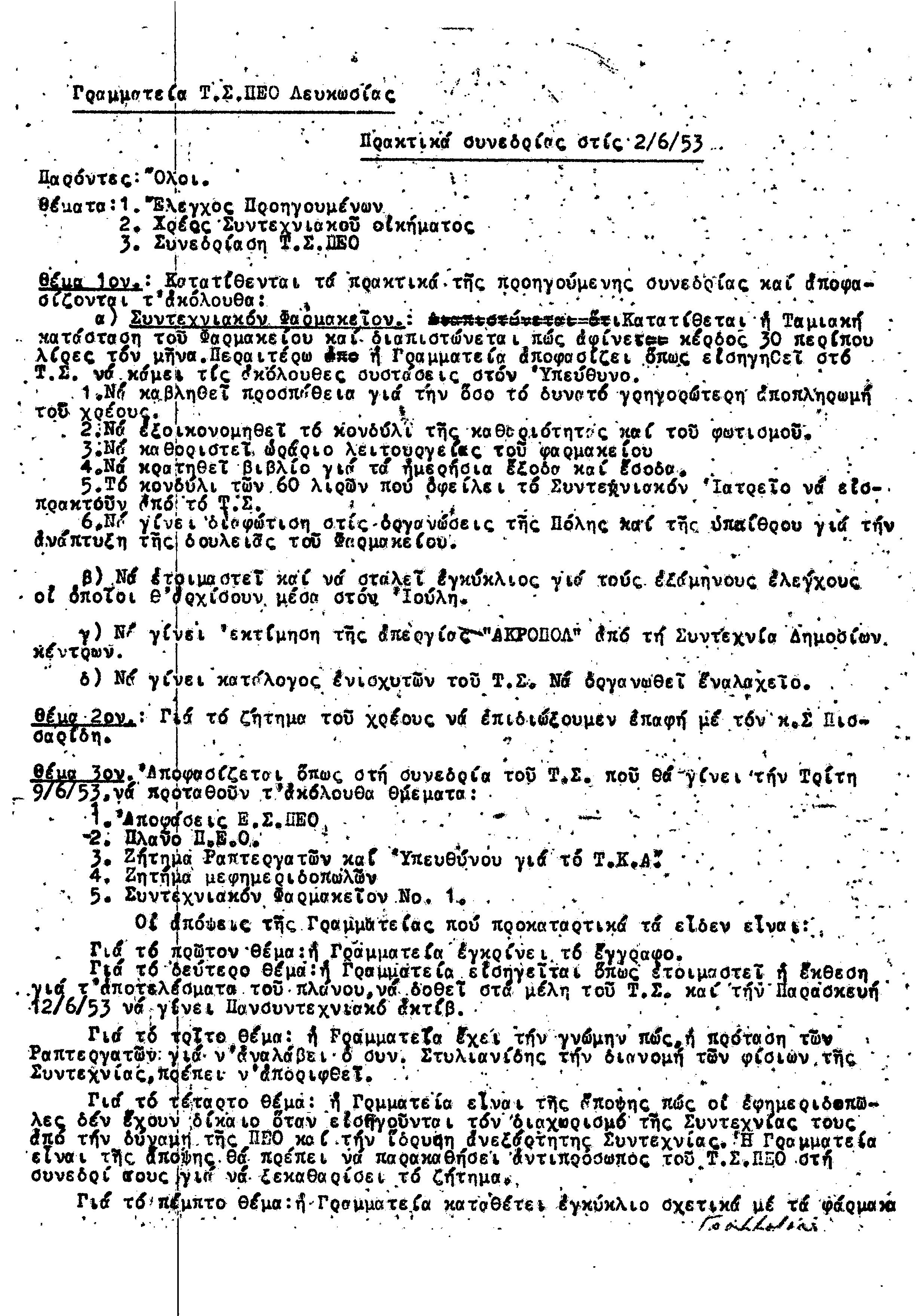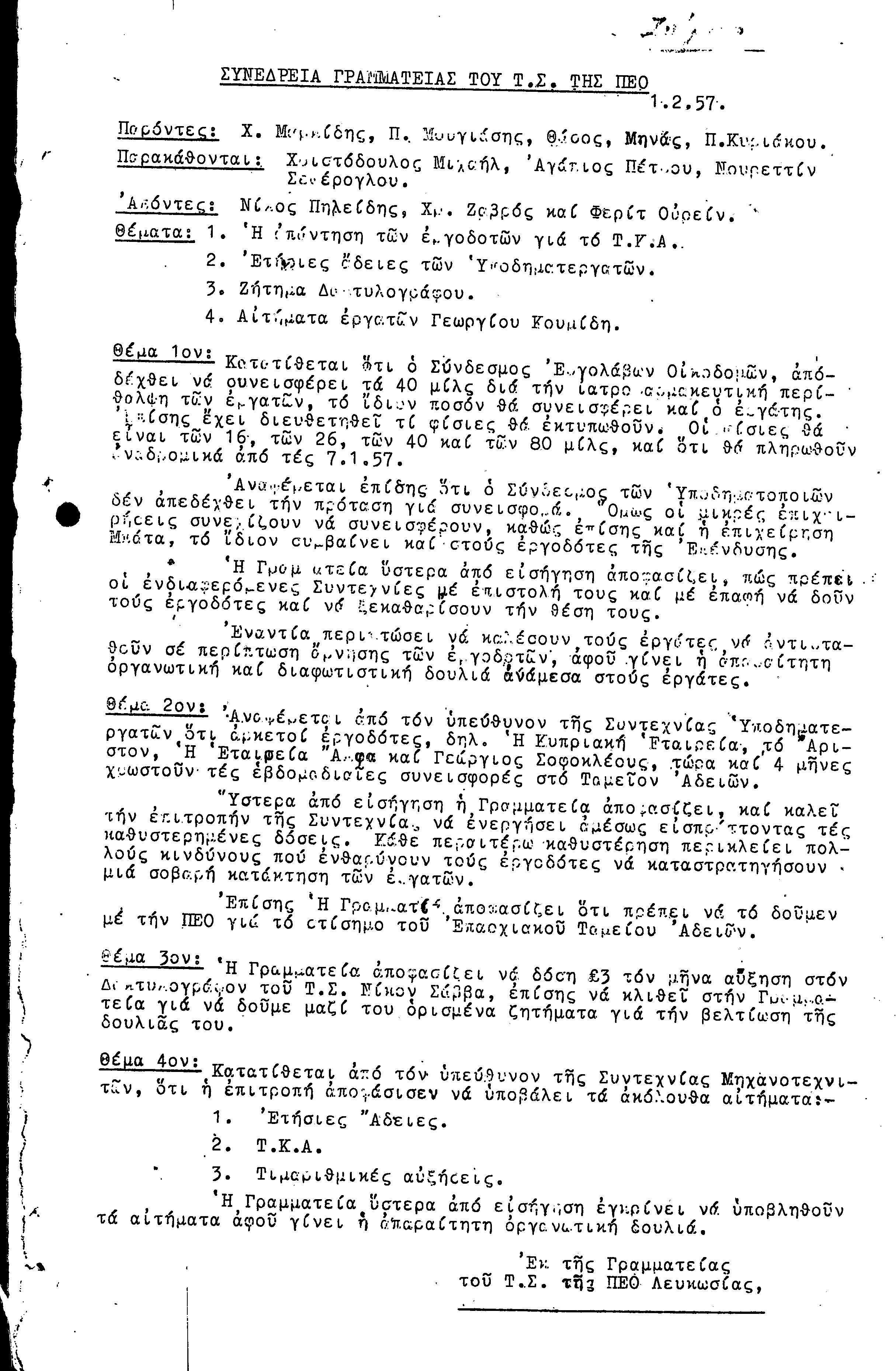 ΕΓΓΡΑΦΑ Τ.Σ. ΠΕΟ ΛΕΥΚΩΣΙΑΣ-ΚΕΡΥΝΕΙΑΣ 1953-1958