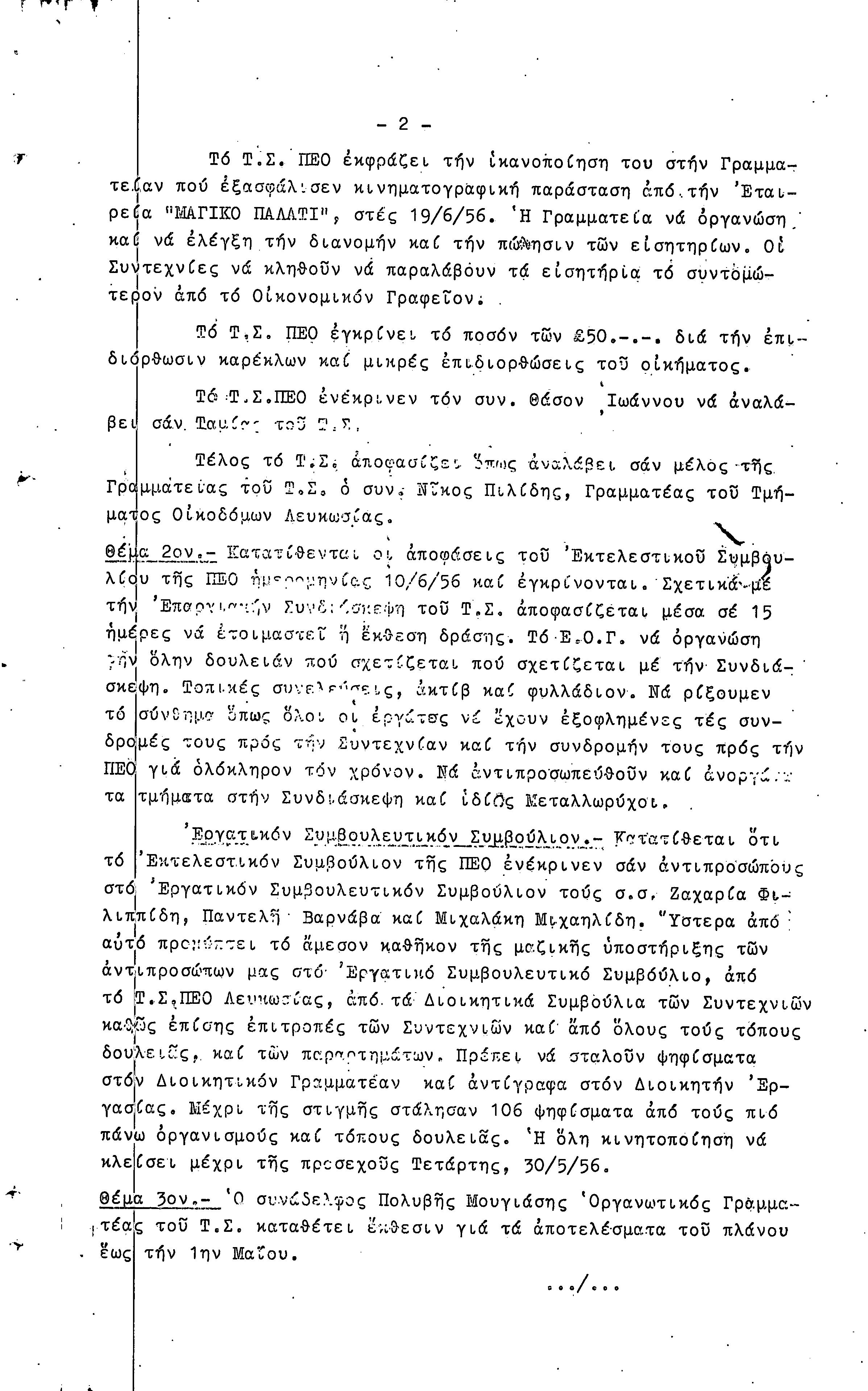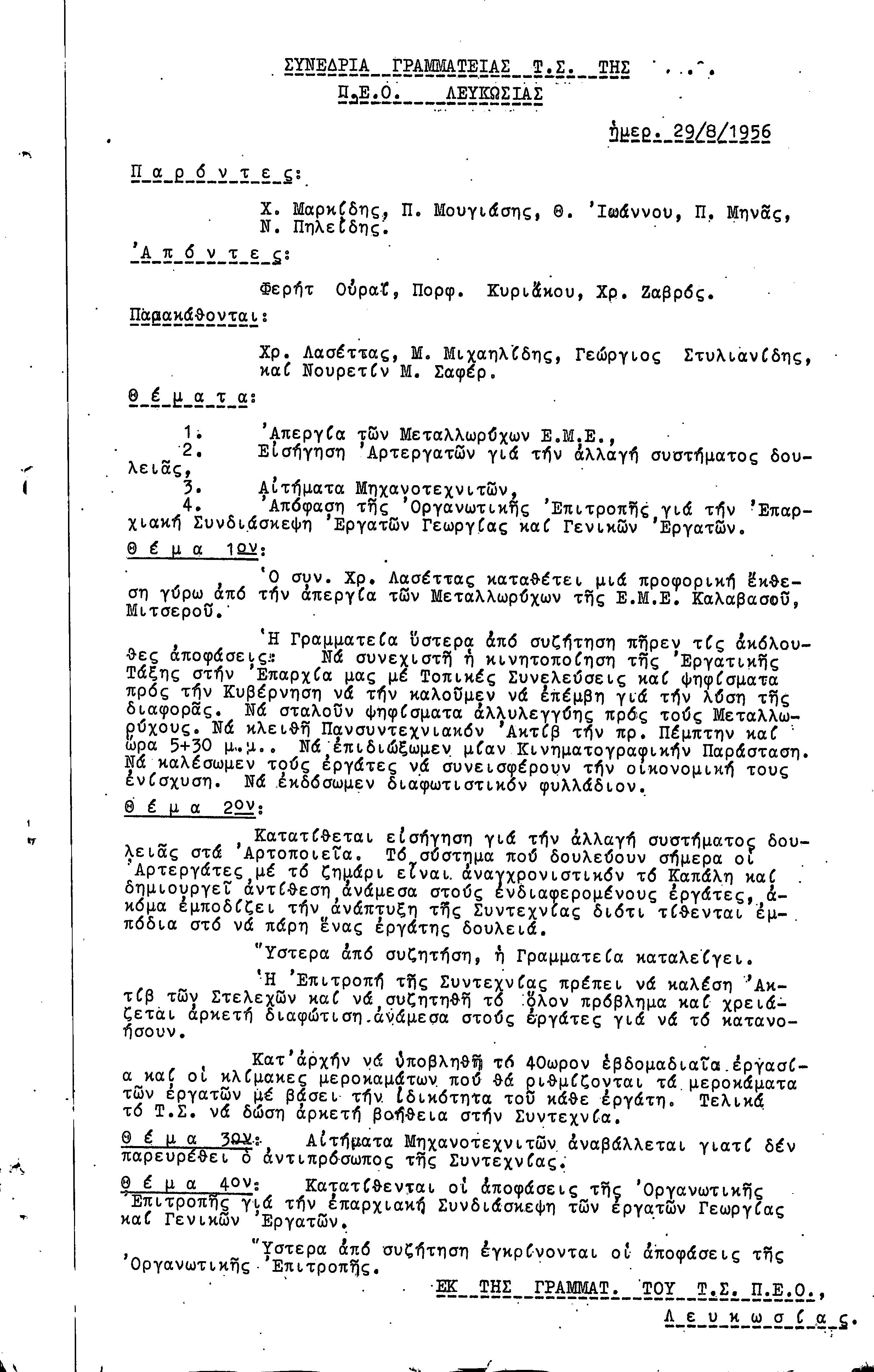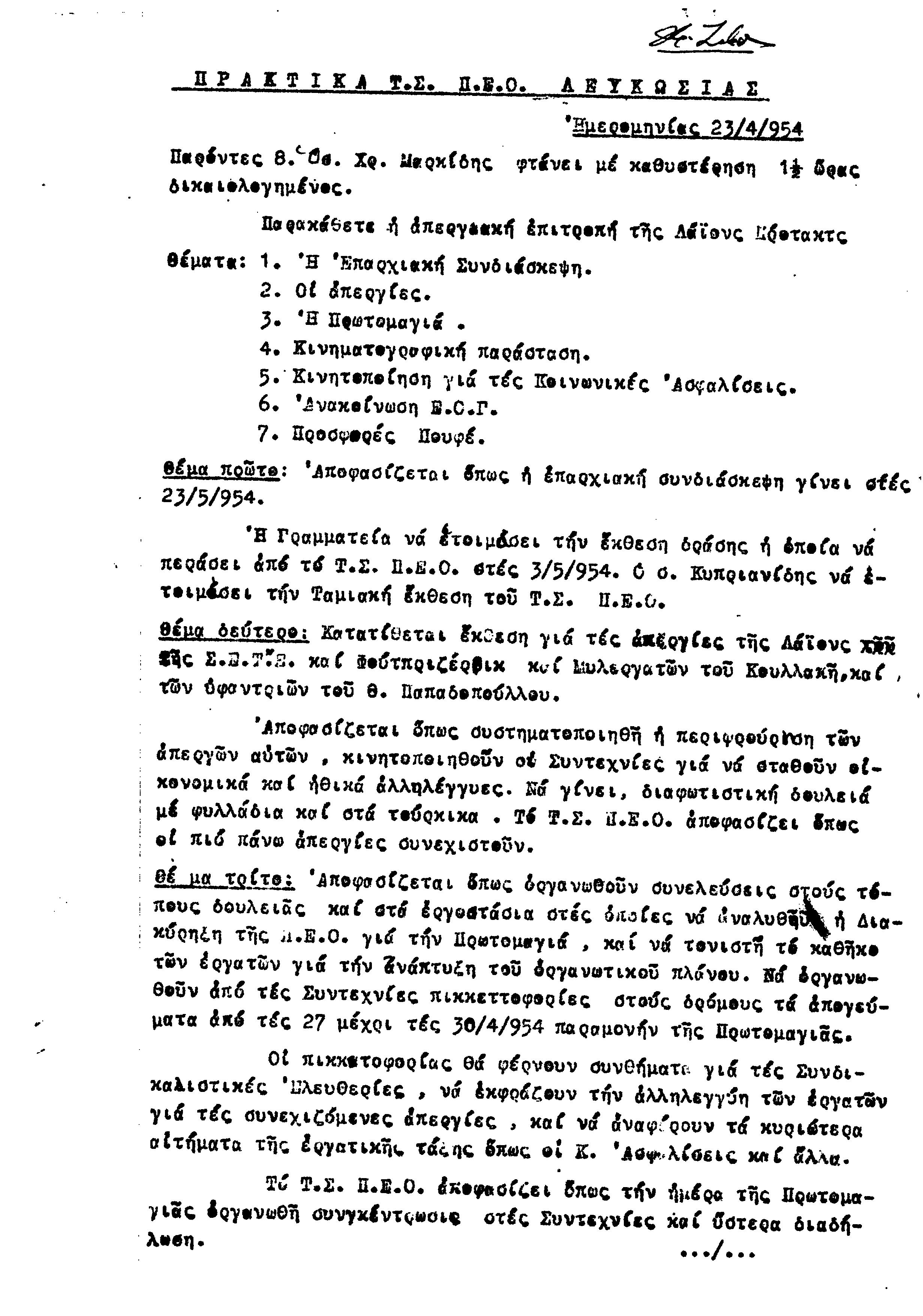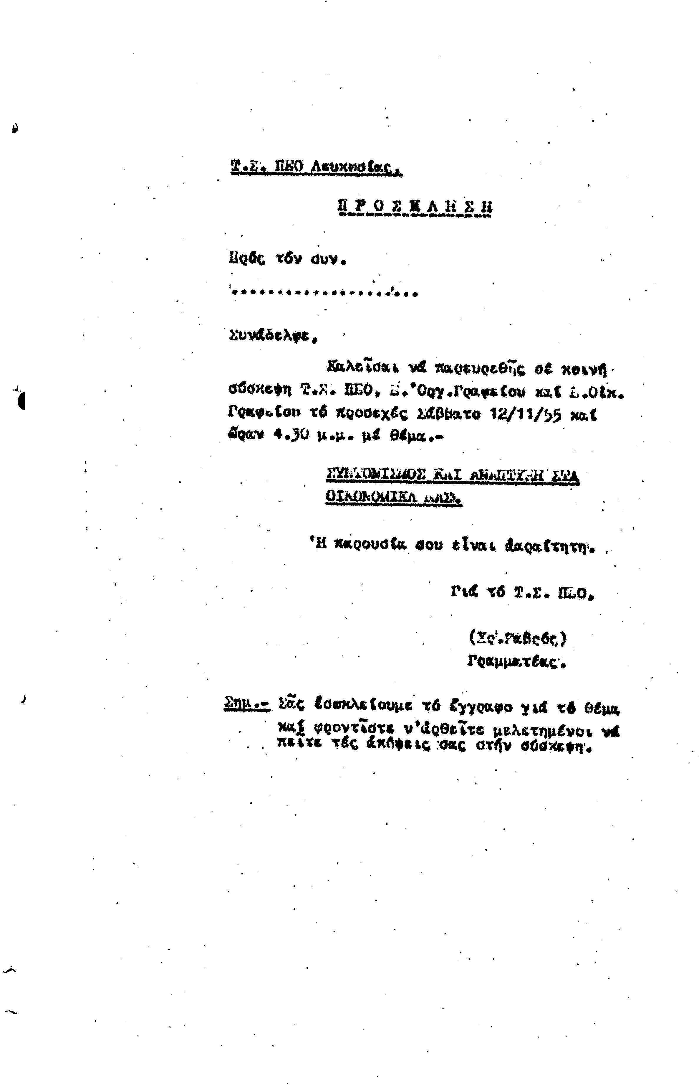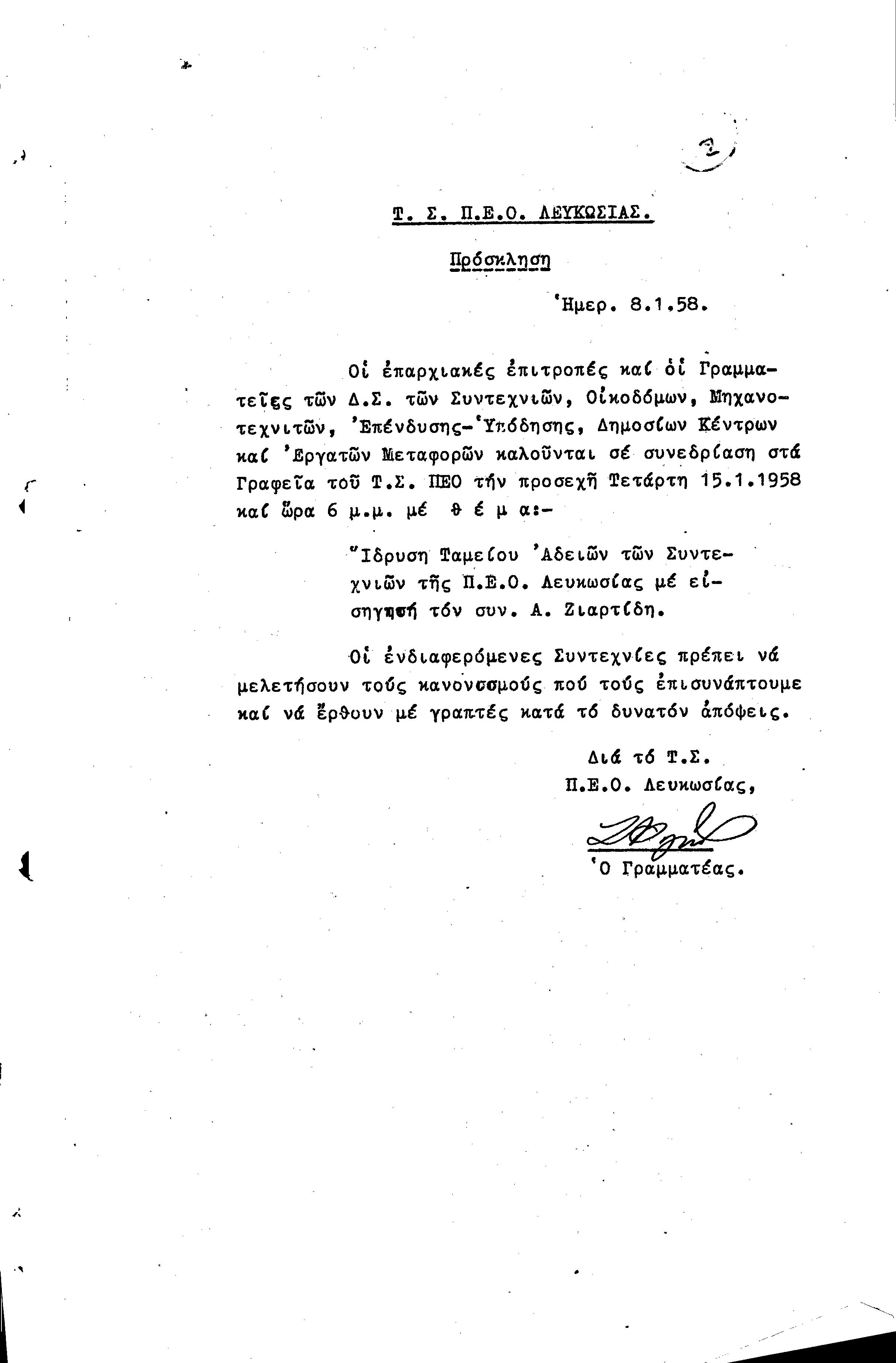 ΕΓΓΡΑΦΑ Τ.Σ. ΠΕΟ ΛΕΥΚΩΣΙΑΣ-ΚΕΡΥΝΕΙΑΣ 1953-1958