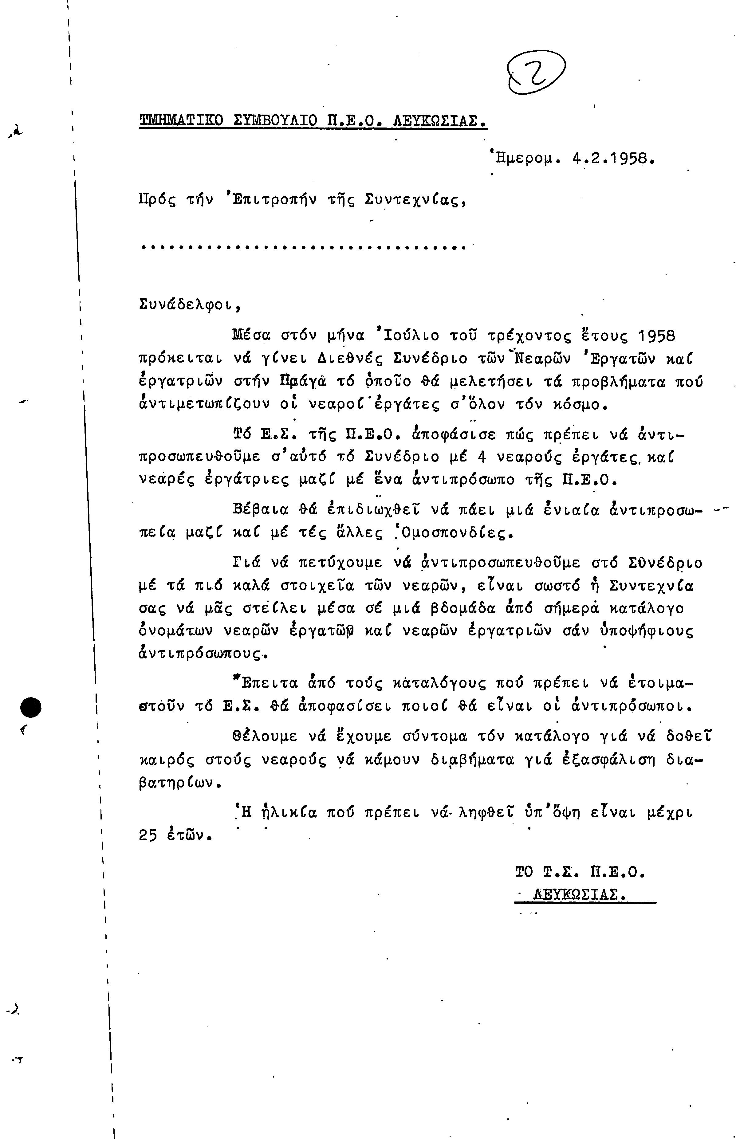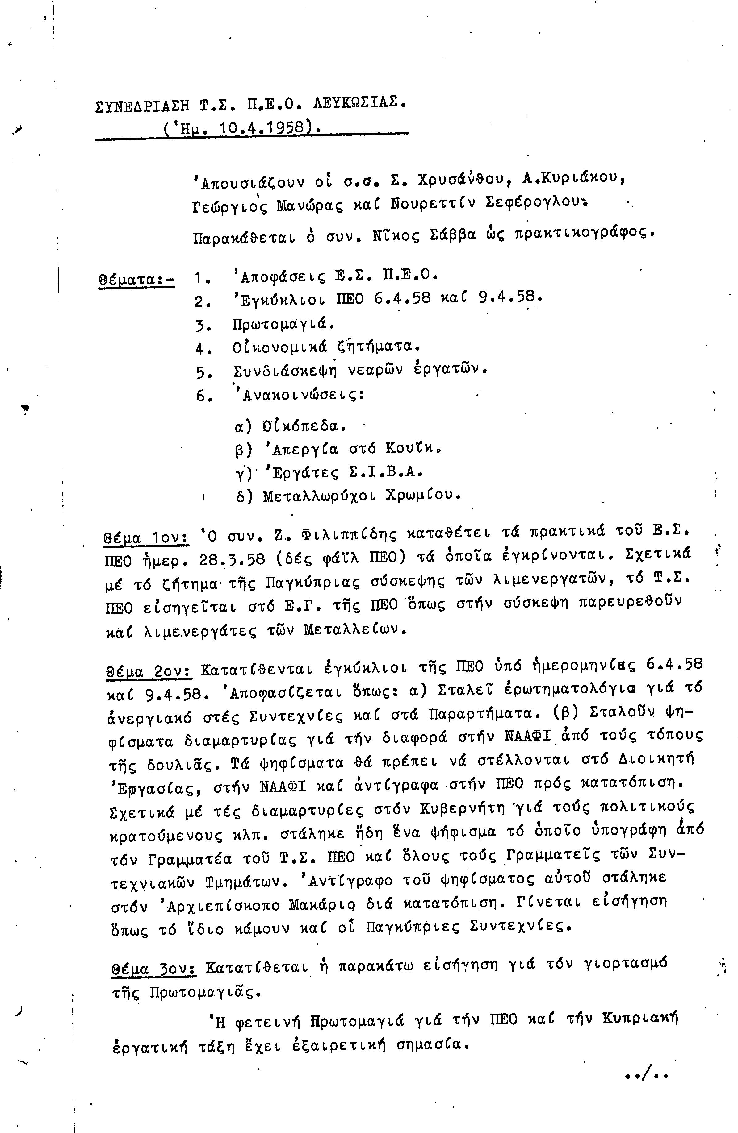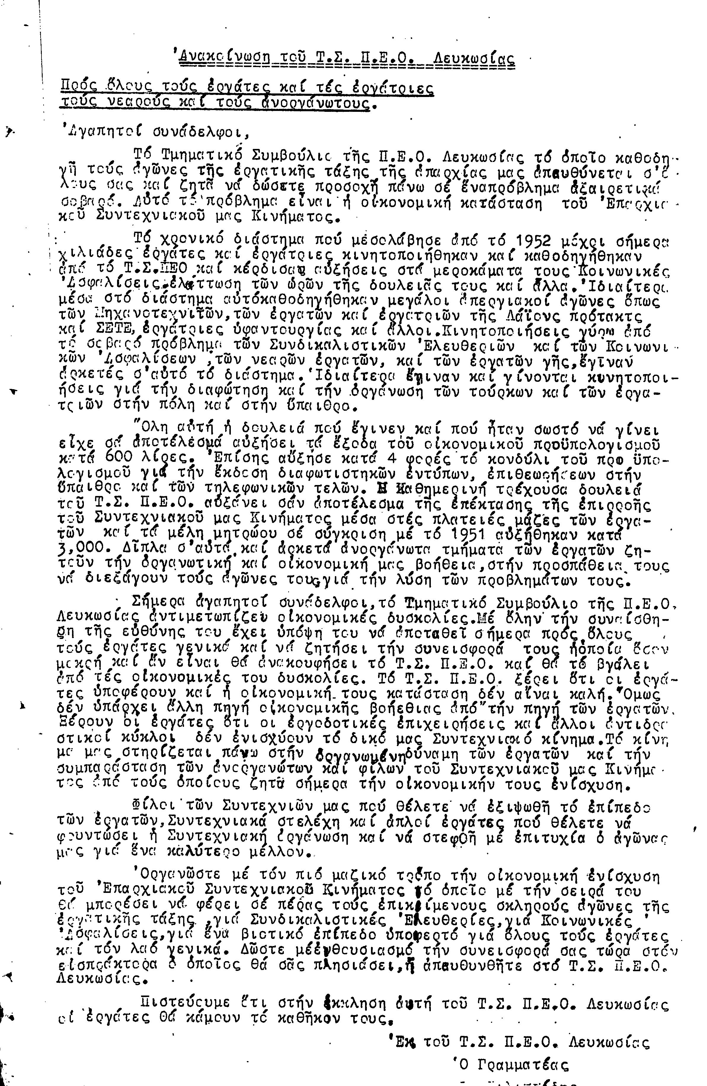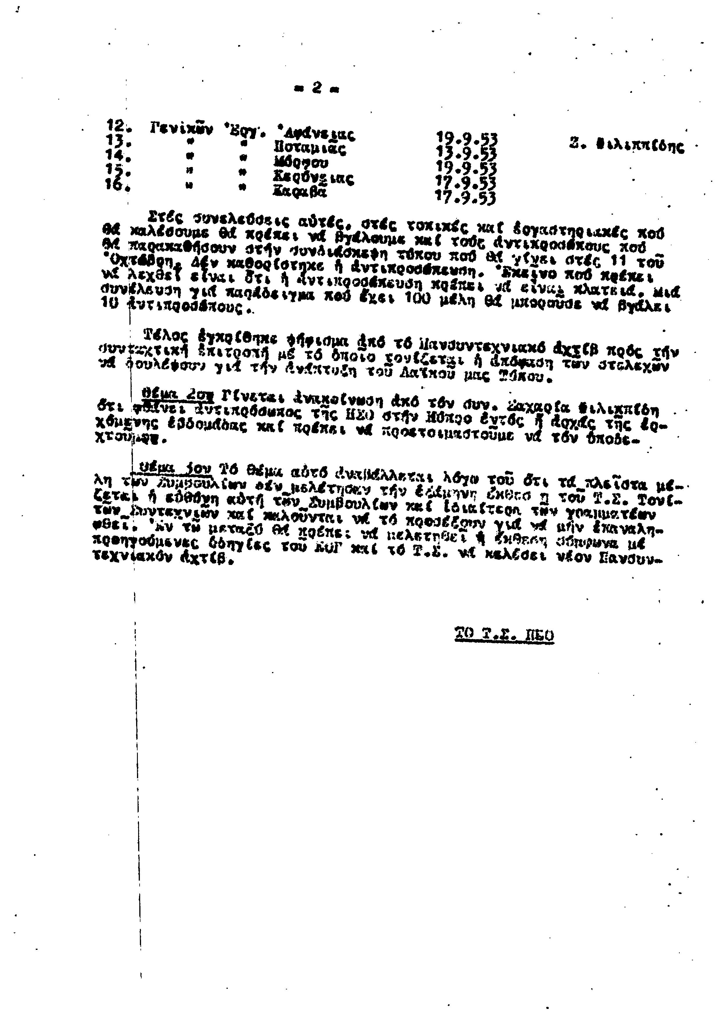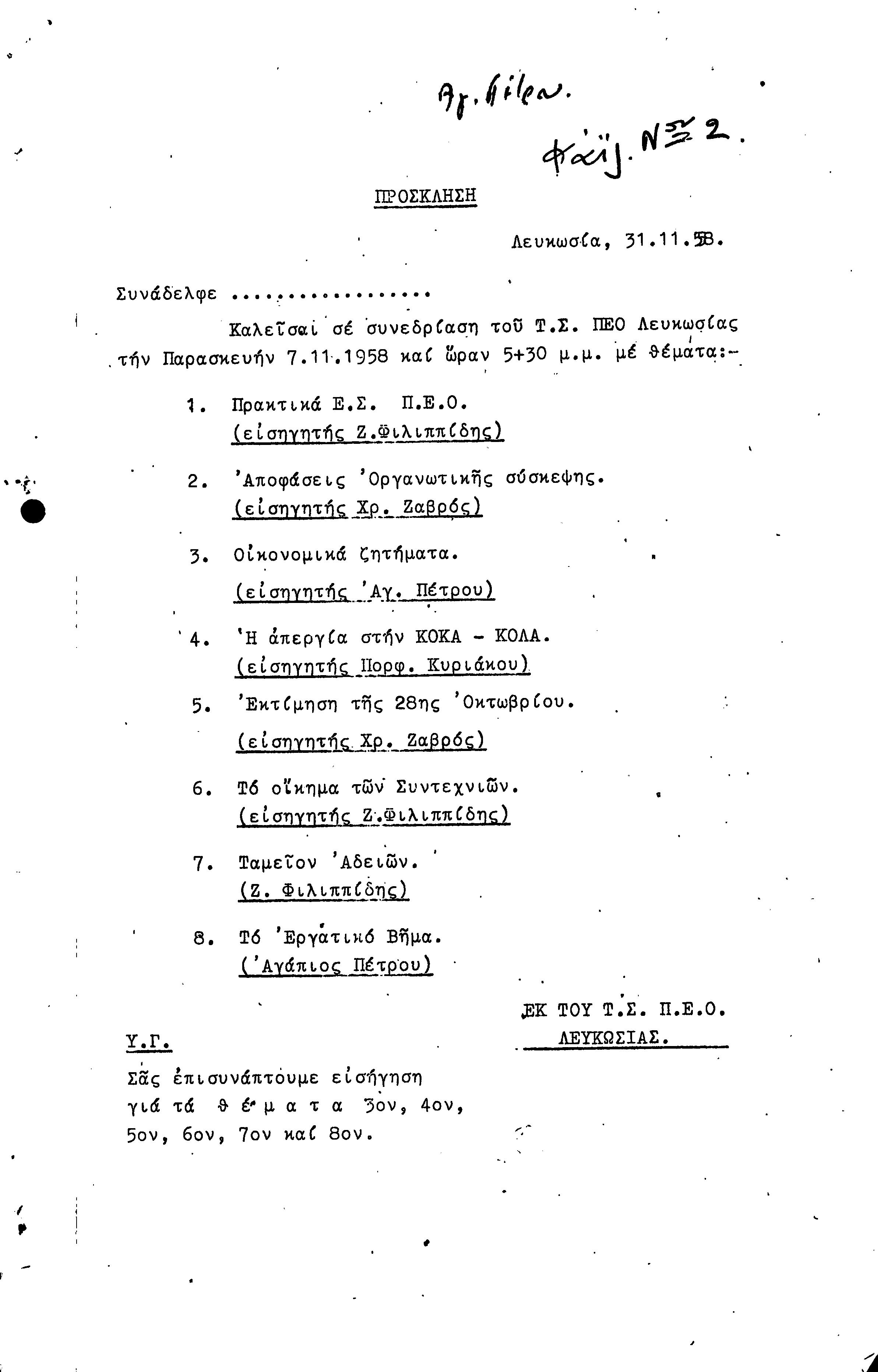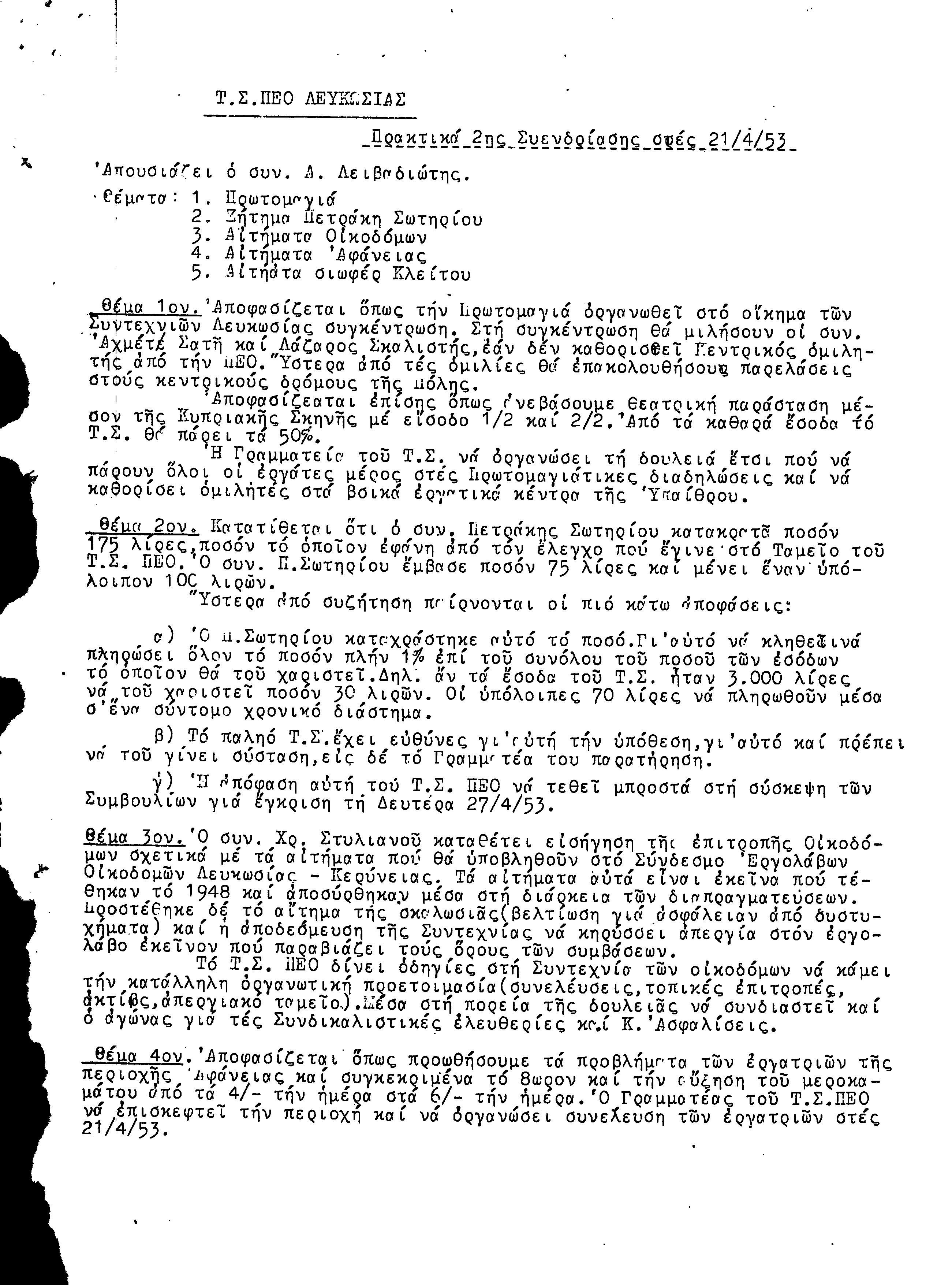ΕΓΓΡΑΦΑ Τ.Σ. ΠΕΟ ΛΕΥΚΩΣΙΑΣ-ΚΕΡΥΝΕΙΑΣ 1953-1958