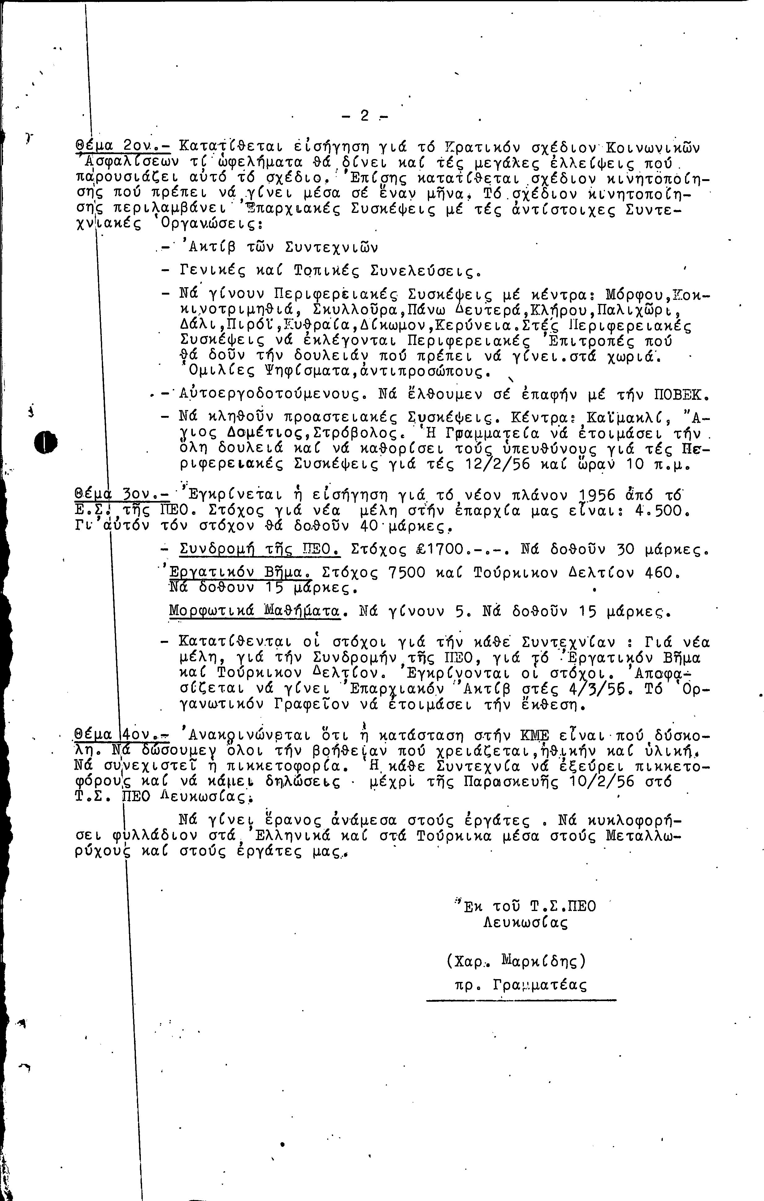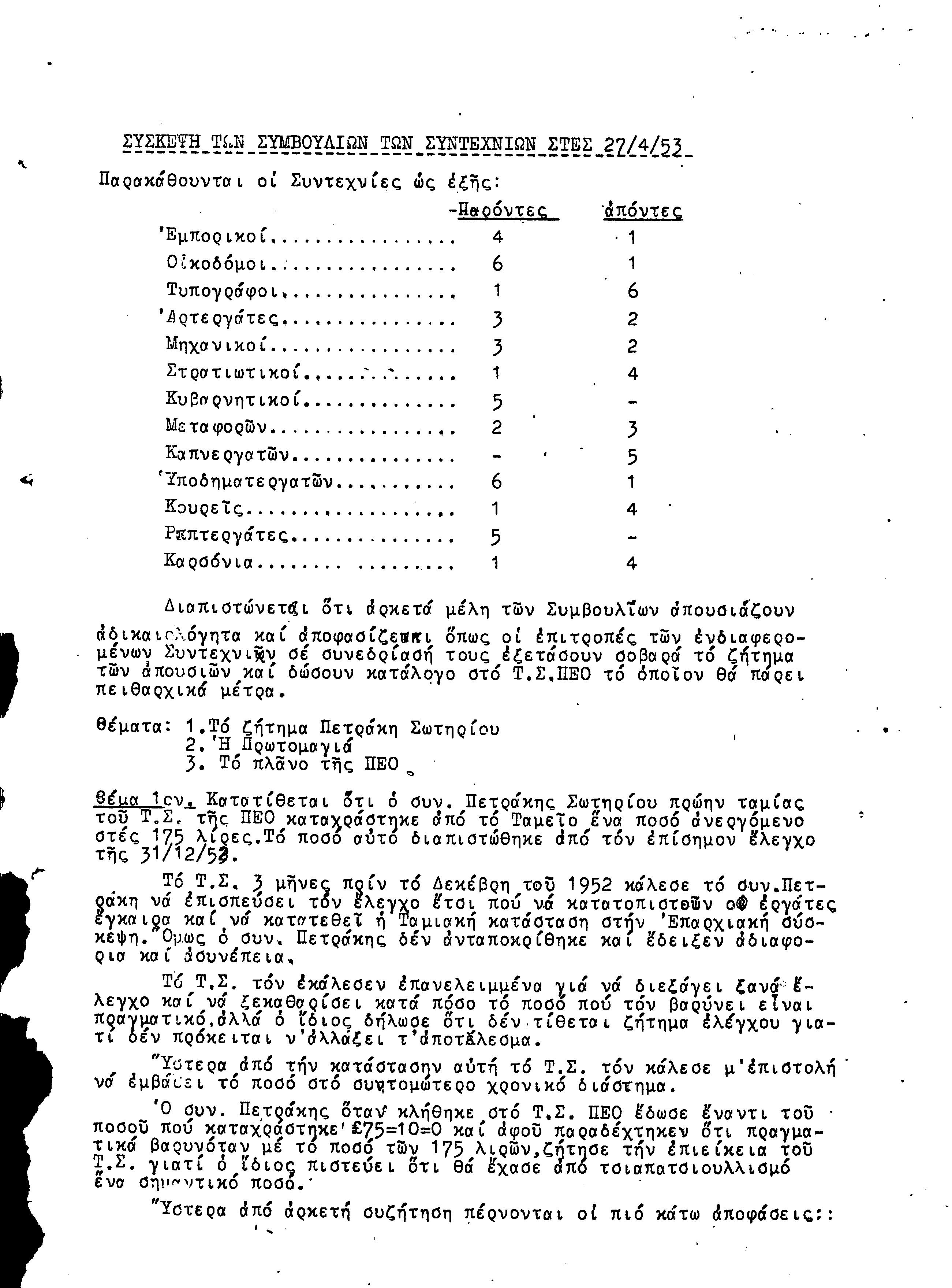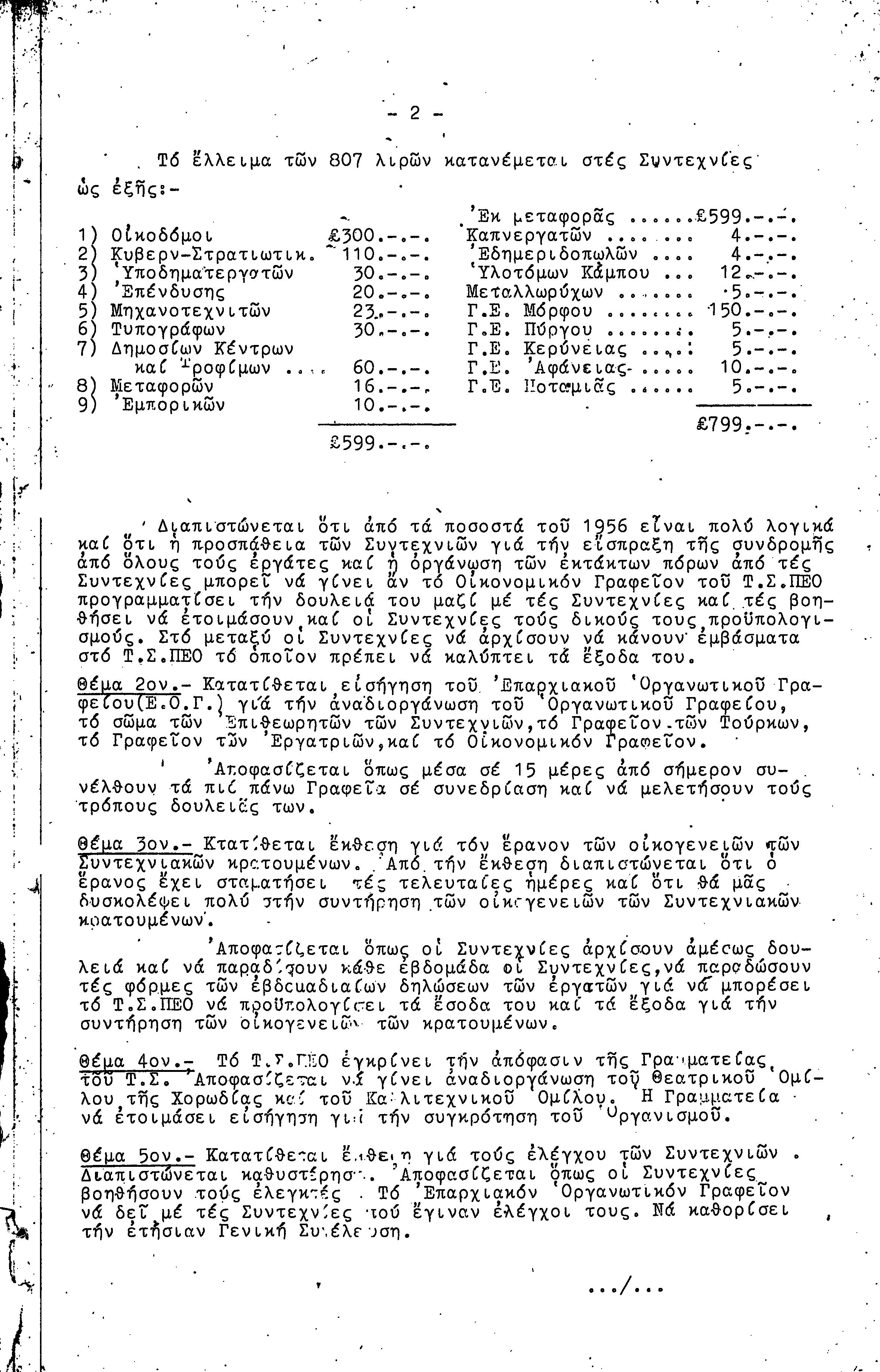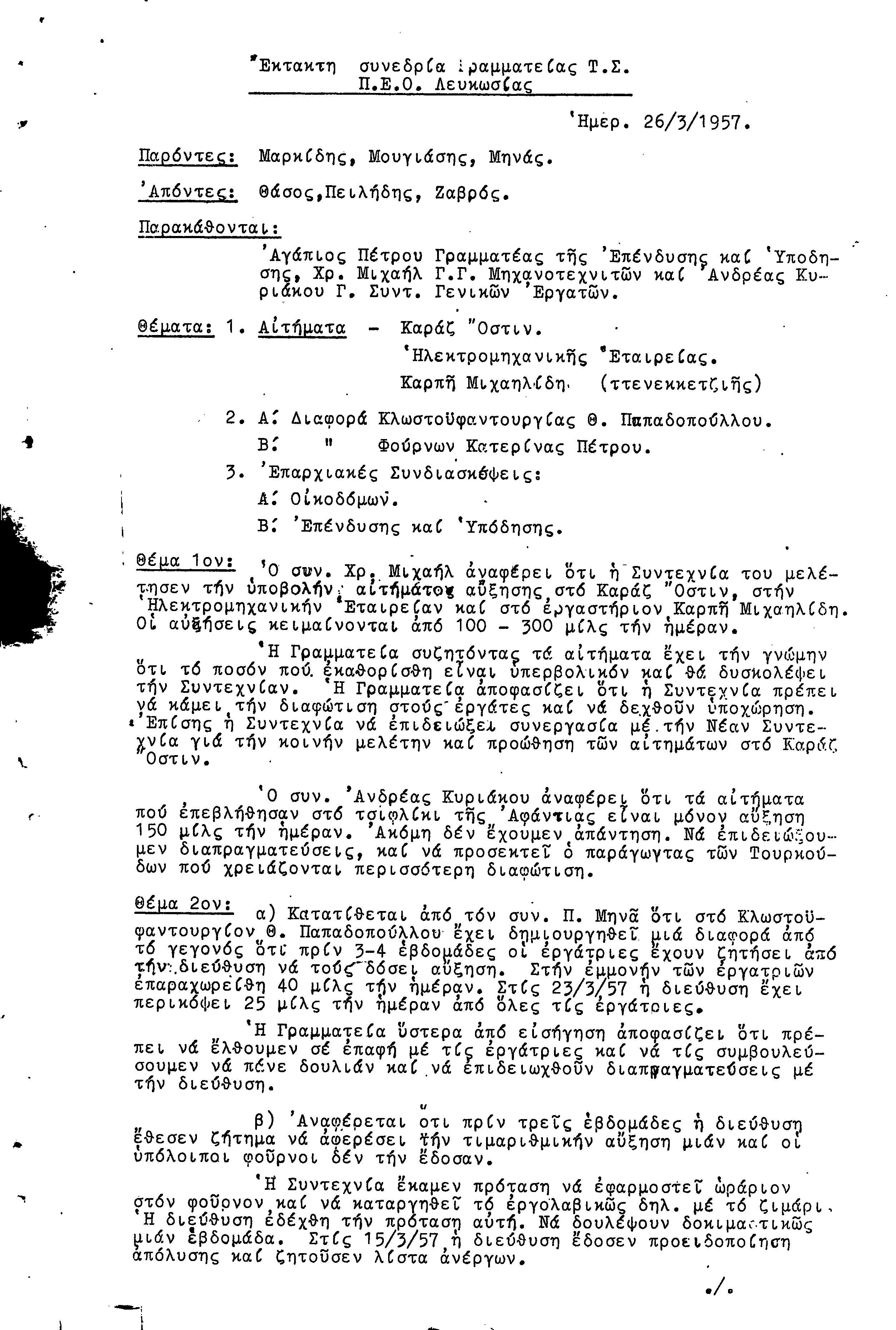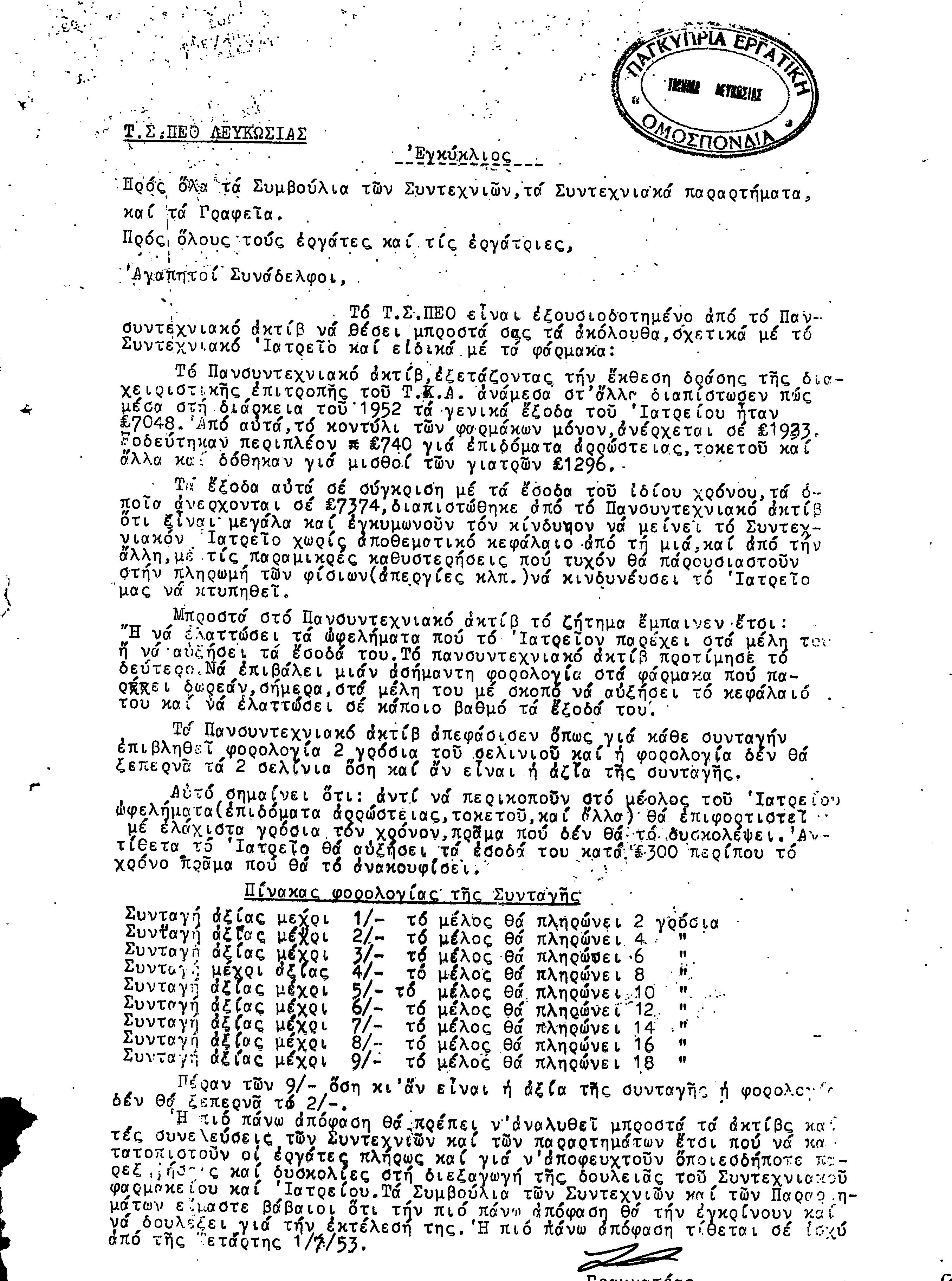 ΕΓΓΡΑΦΑ Τ.Σ. ΠΕΟ ΛΕΥΚΩΣΙΑΣ-ΚΕΡΥΝΕΙΑΣ 1953-1958