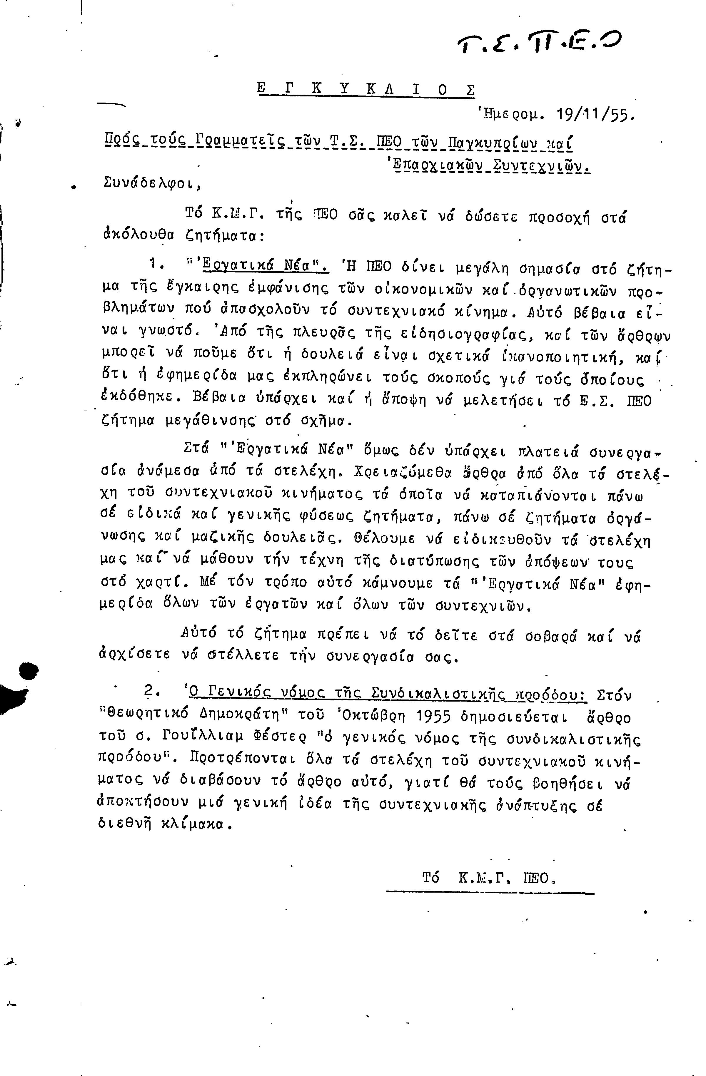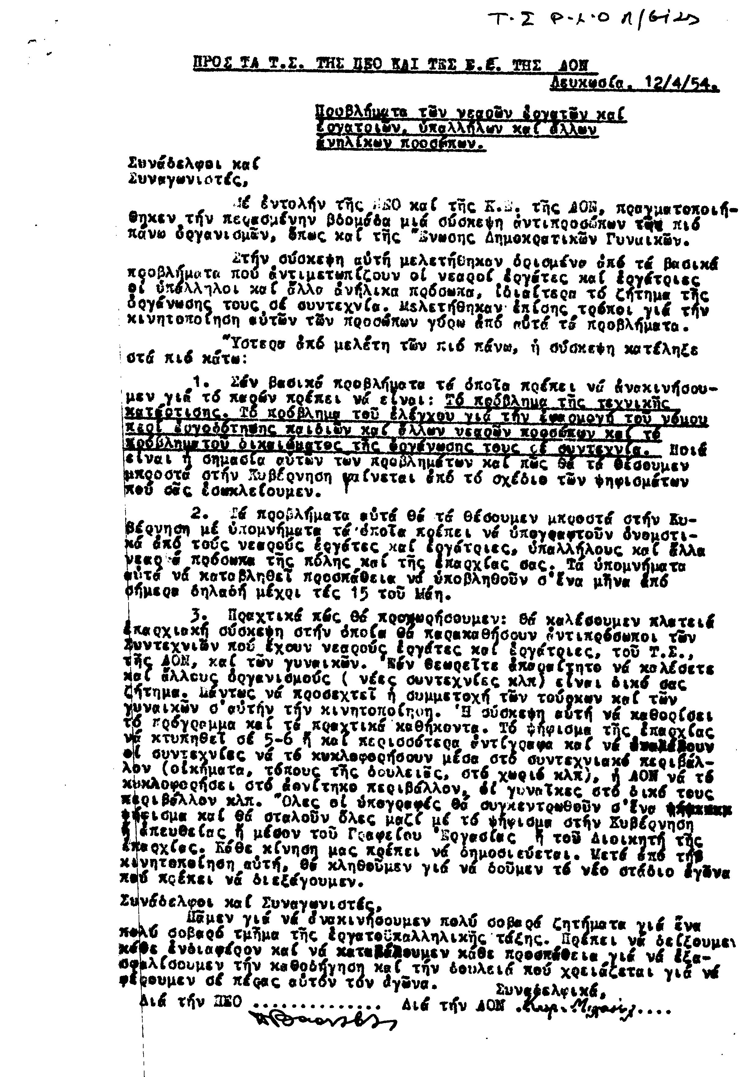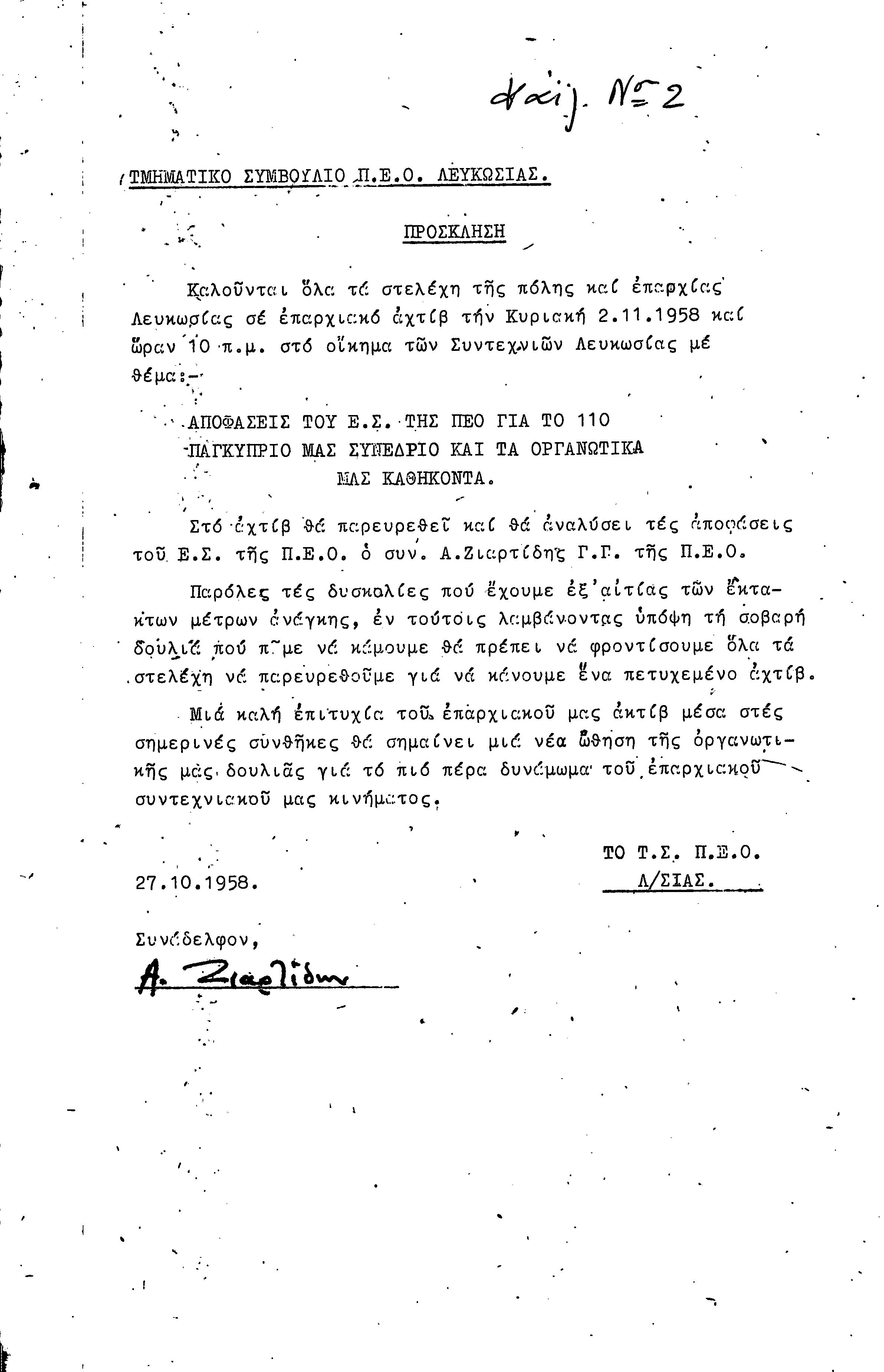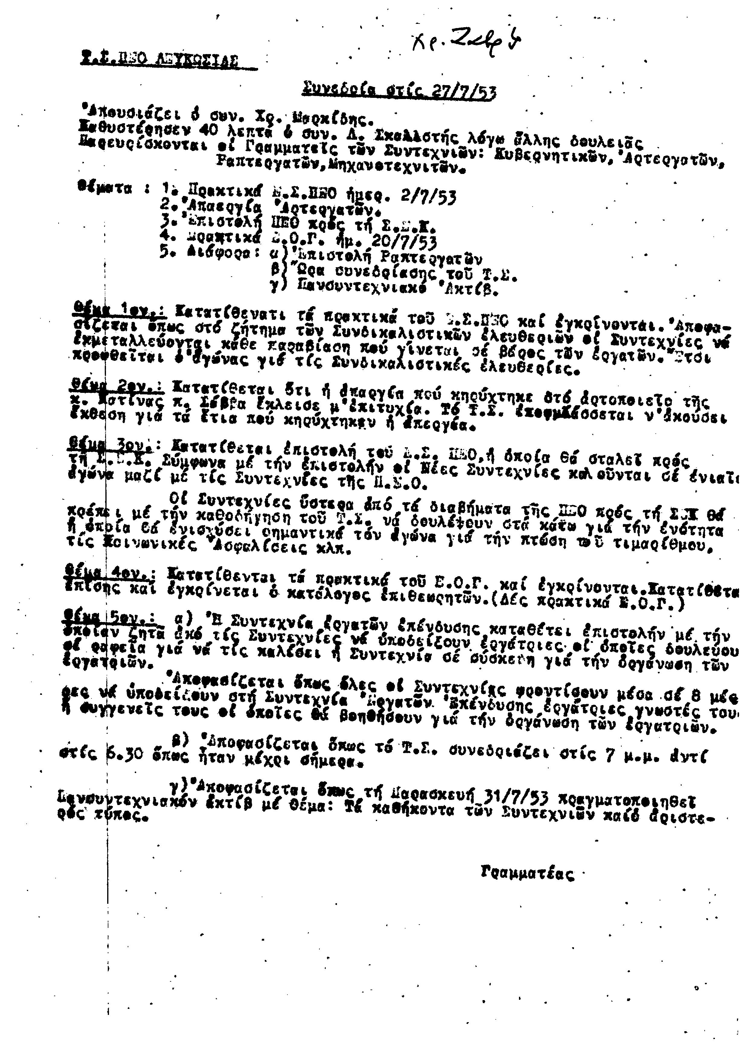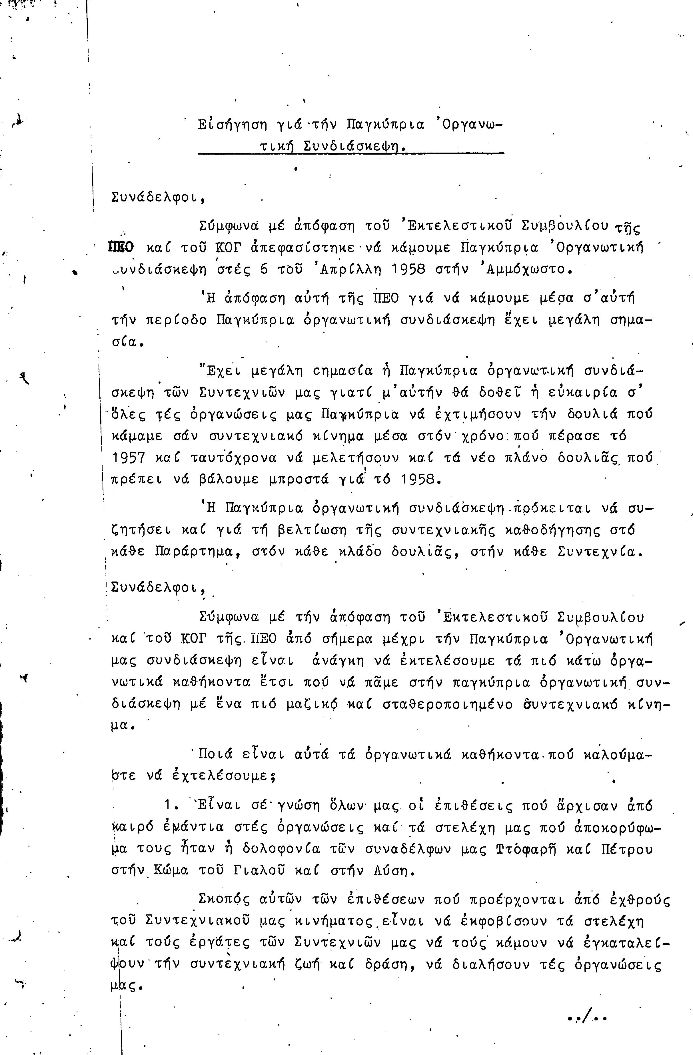 ΕΓΓΡΑΦΑ Τ.Σ. ΠΕΟ ΛΕΥΚΩΣΙΑΣ-ΚΕΡΥΝΕΙΑΣ 1953-1958