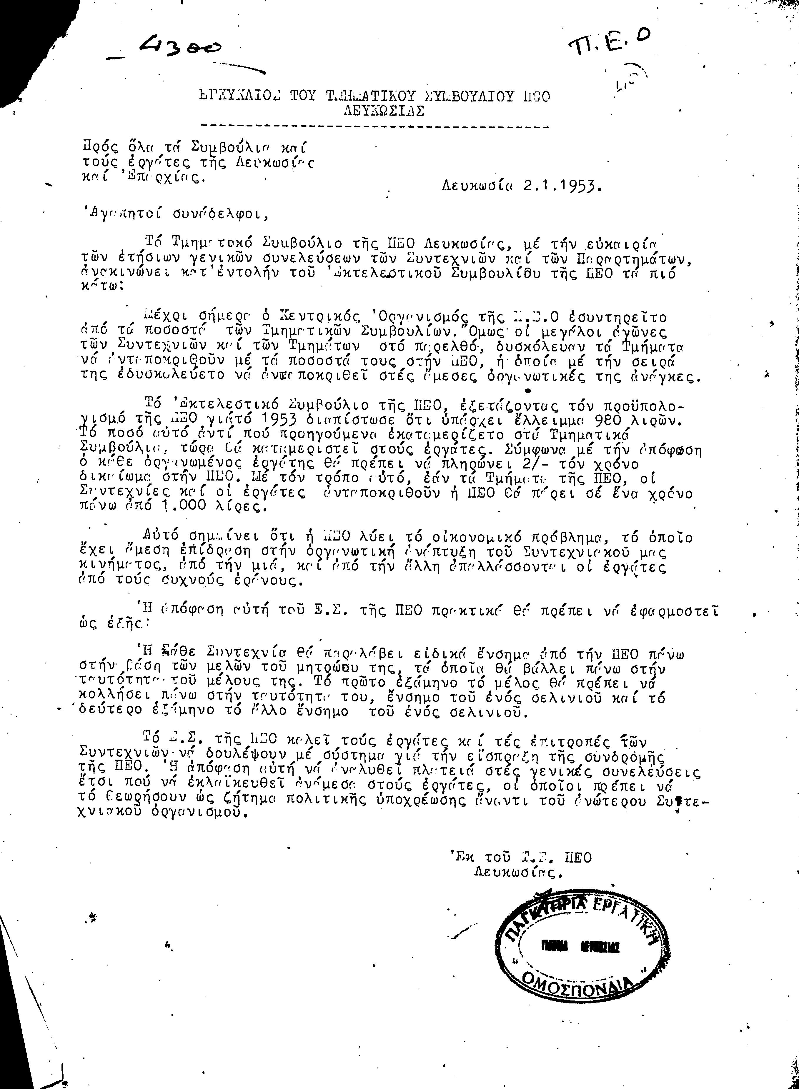 ΕΓΓΡΑΦΑ Τ.Σ. ΠΕΟ ΛΕΥΚΩΣΙΑΣ-ΚΕΡΥΝΕΙΑΣ, 1953-1961 by Παγκύπρια Εργατική Ομοσπονδία - Issuu