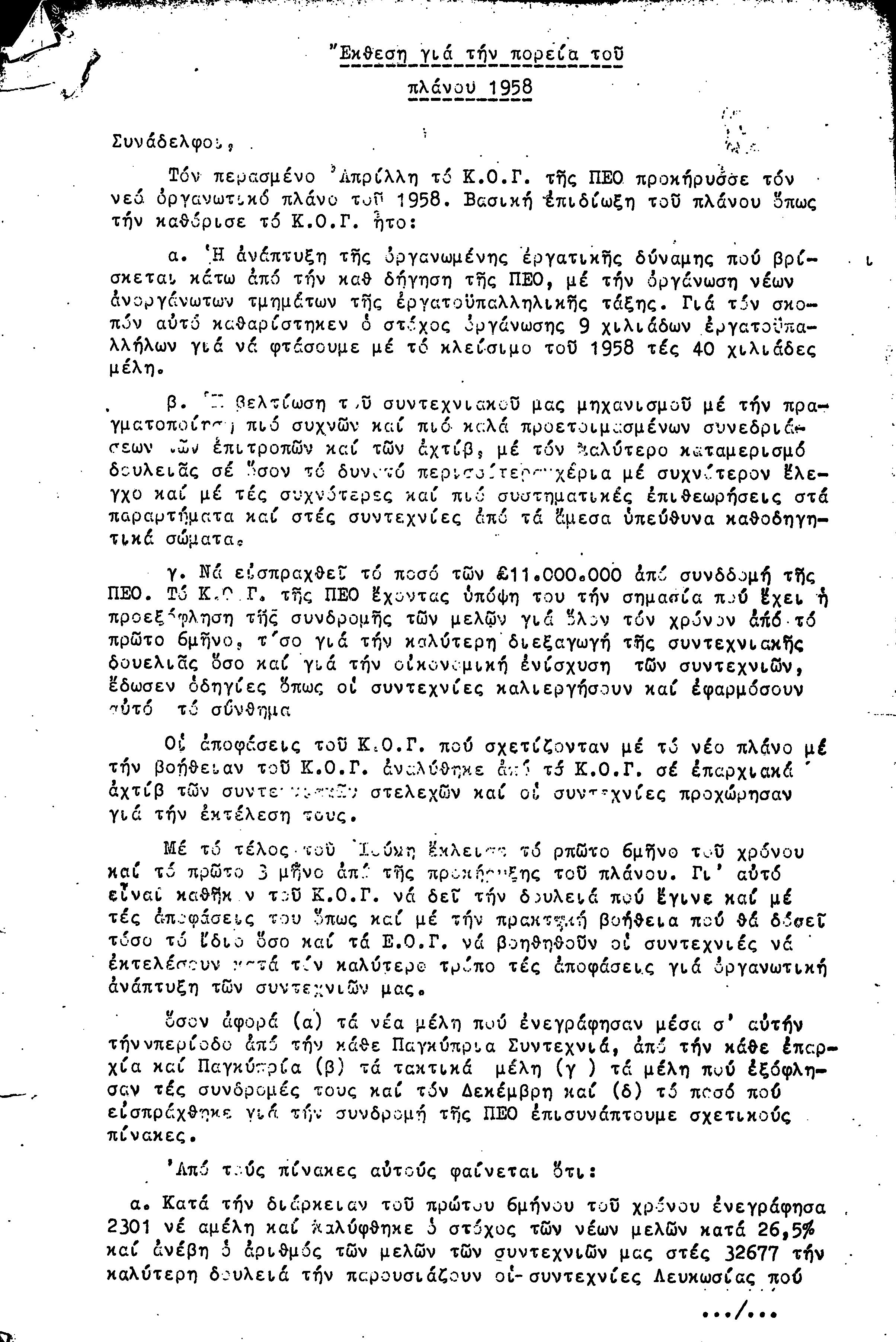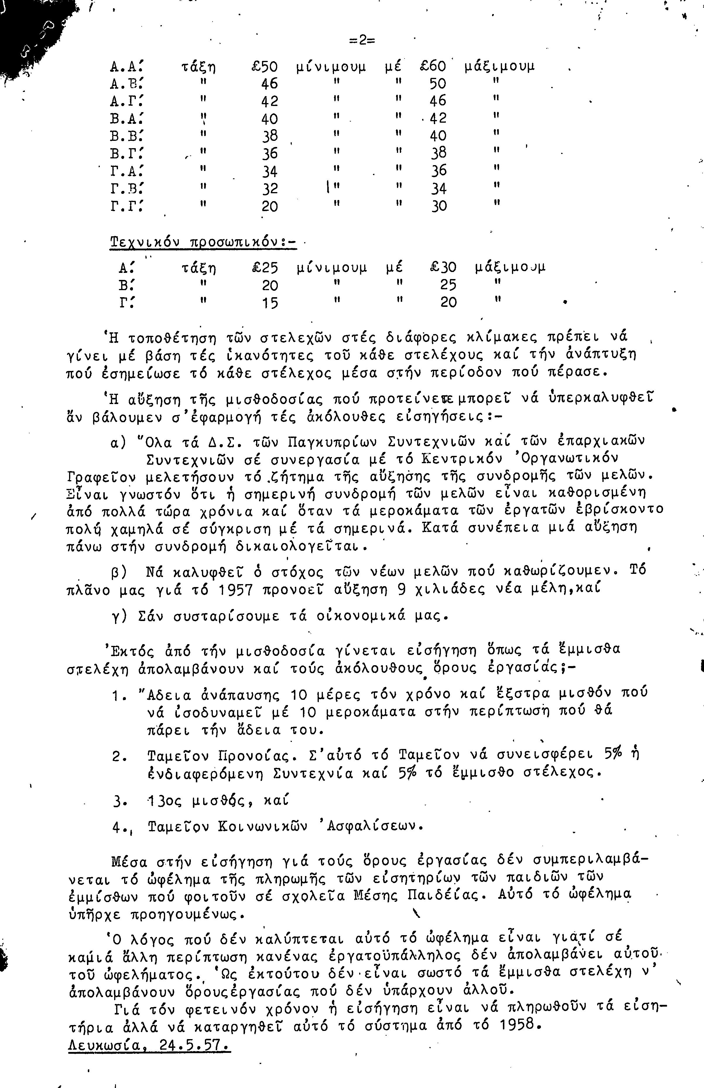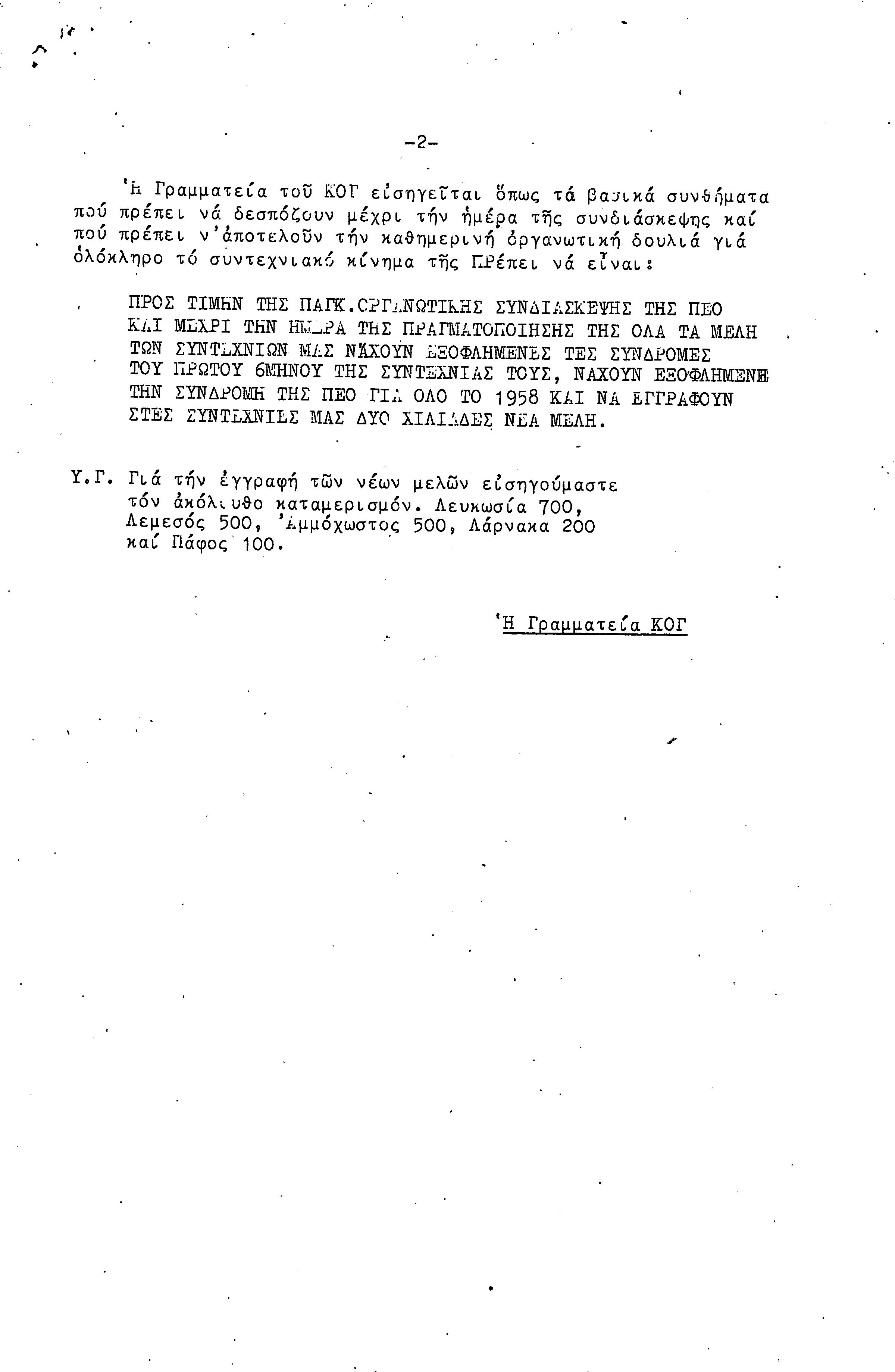 ΕΓΓΡΑΦΑ Τ.Σ. ΠΕΟ ΛΕΥΚΩΣΙΑΣ-ΚΕΡΥΝΕΙΑΣ 1957-1959