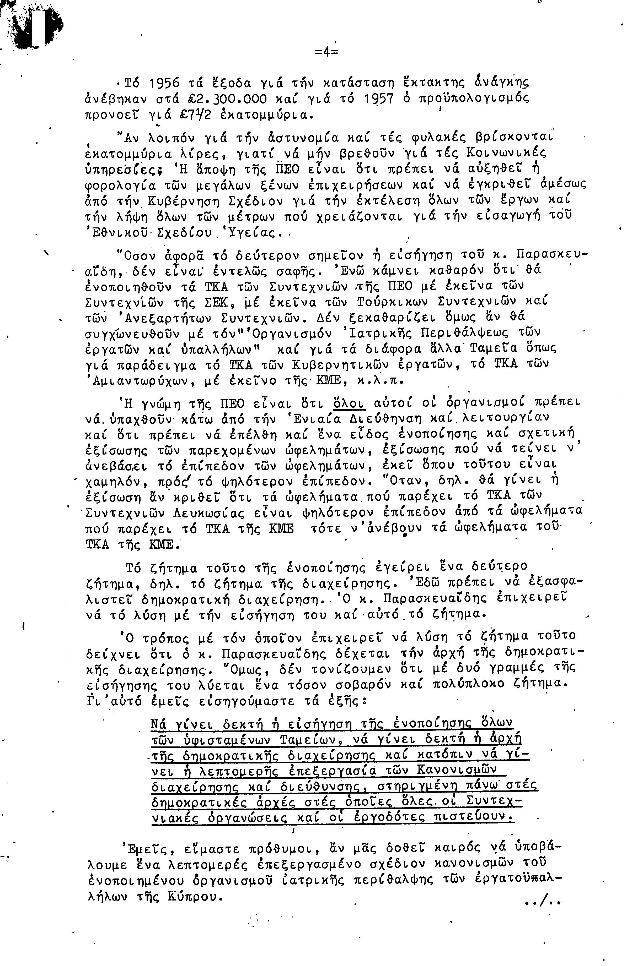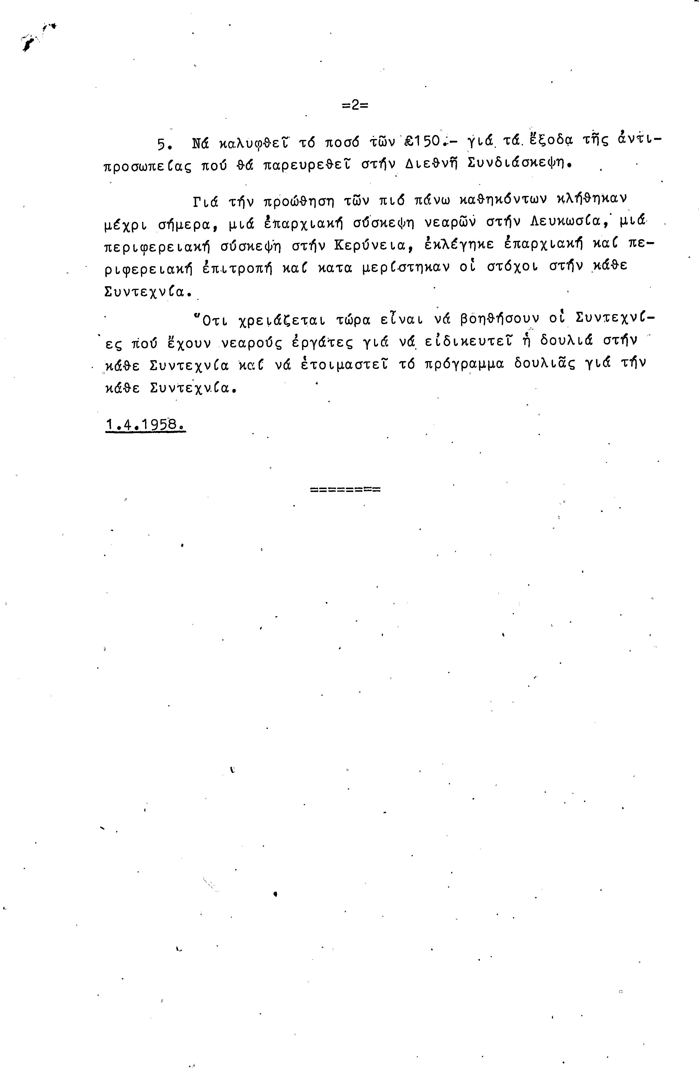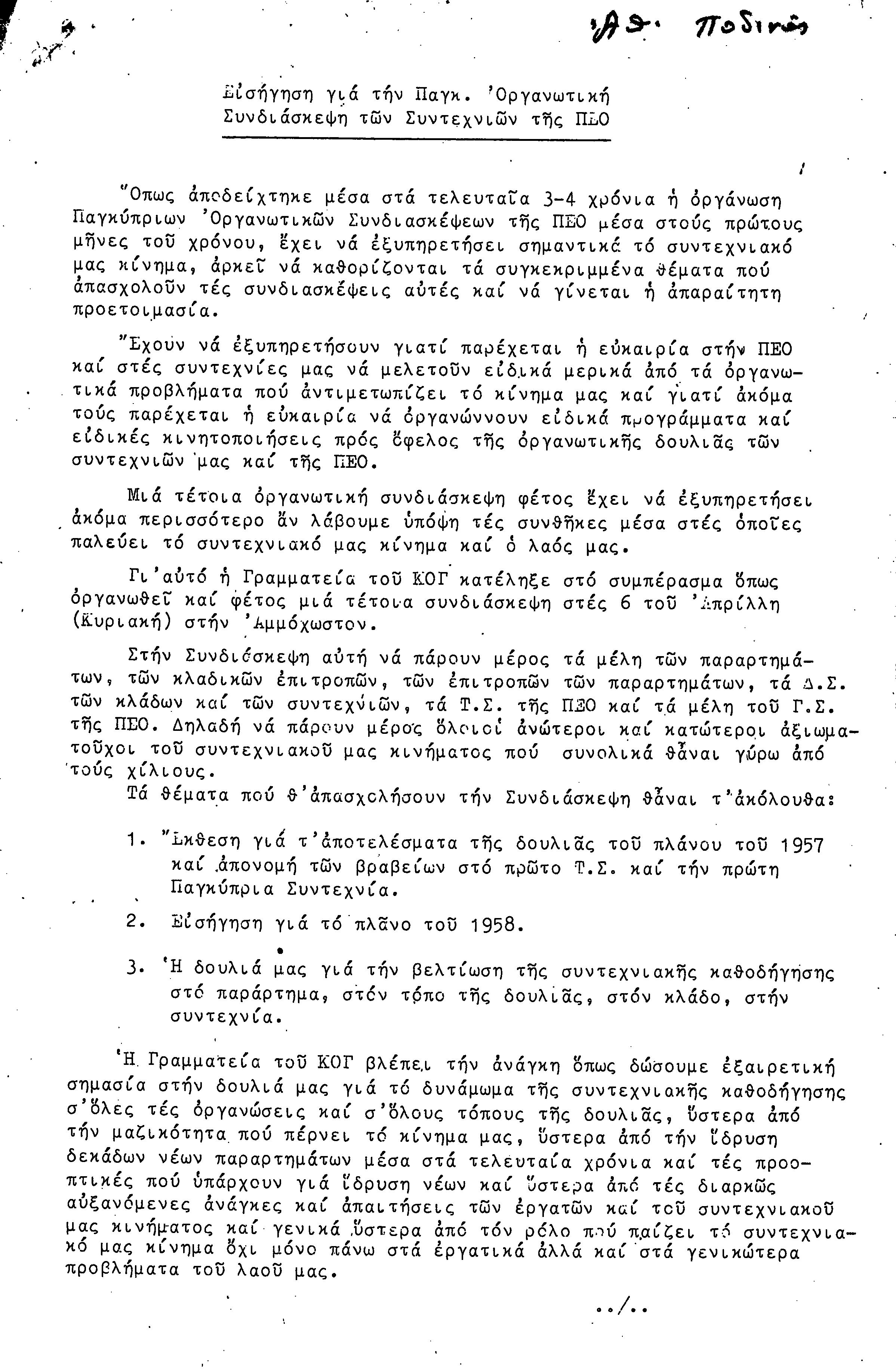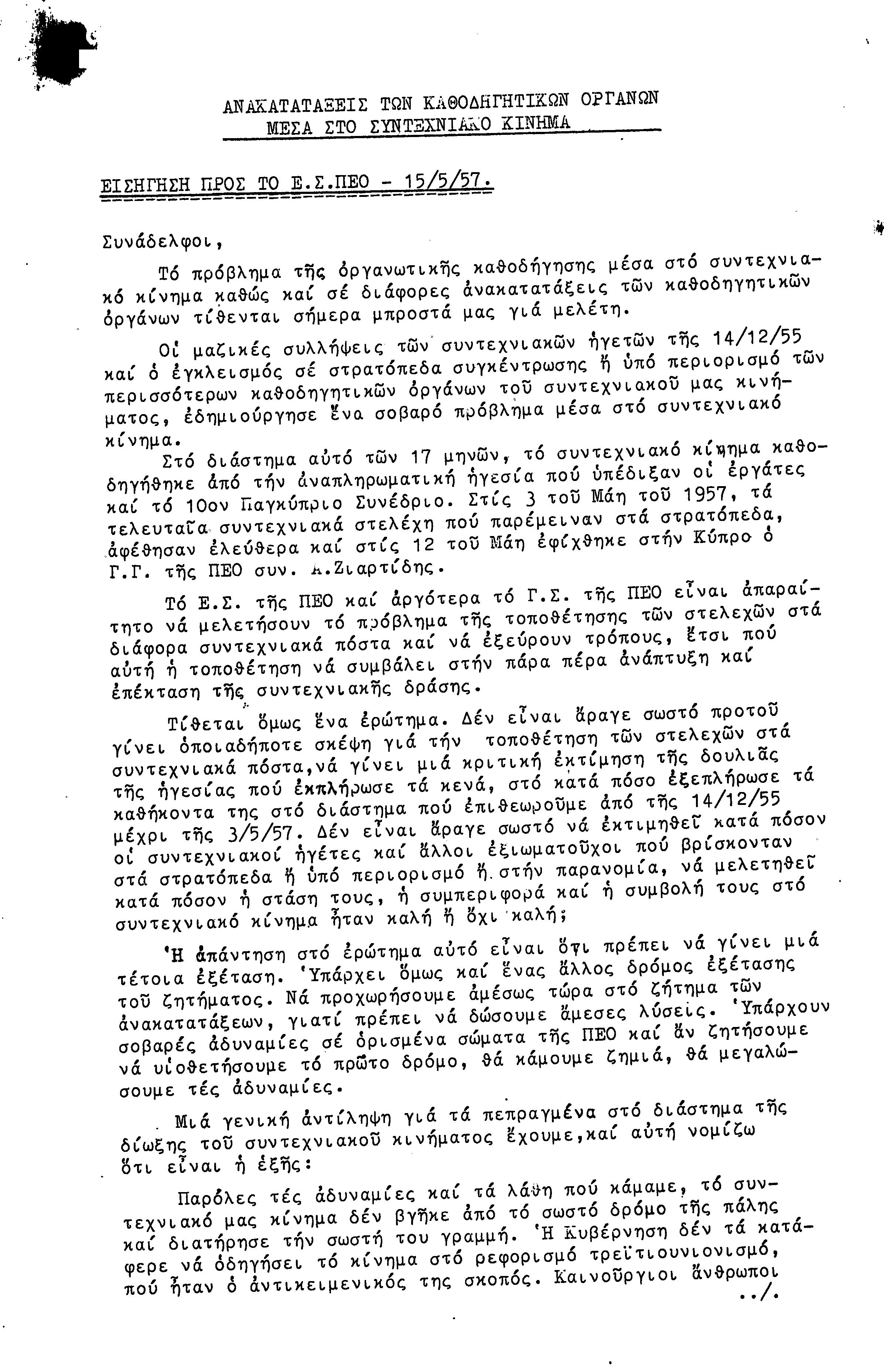 ΕΓΓΡΑΦΑ Τ.Σ. ΠΕΟ ΛΕΥΚΩΣΙΑΣ-ΚΕΡΥΝΕΙΑΣ 1957-1959