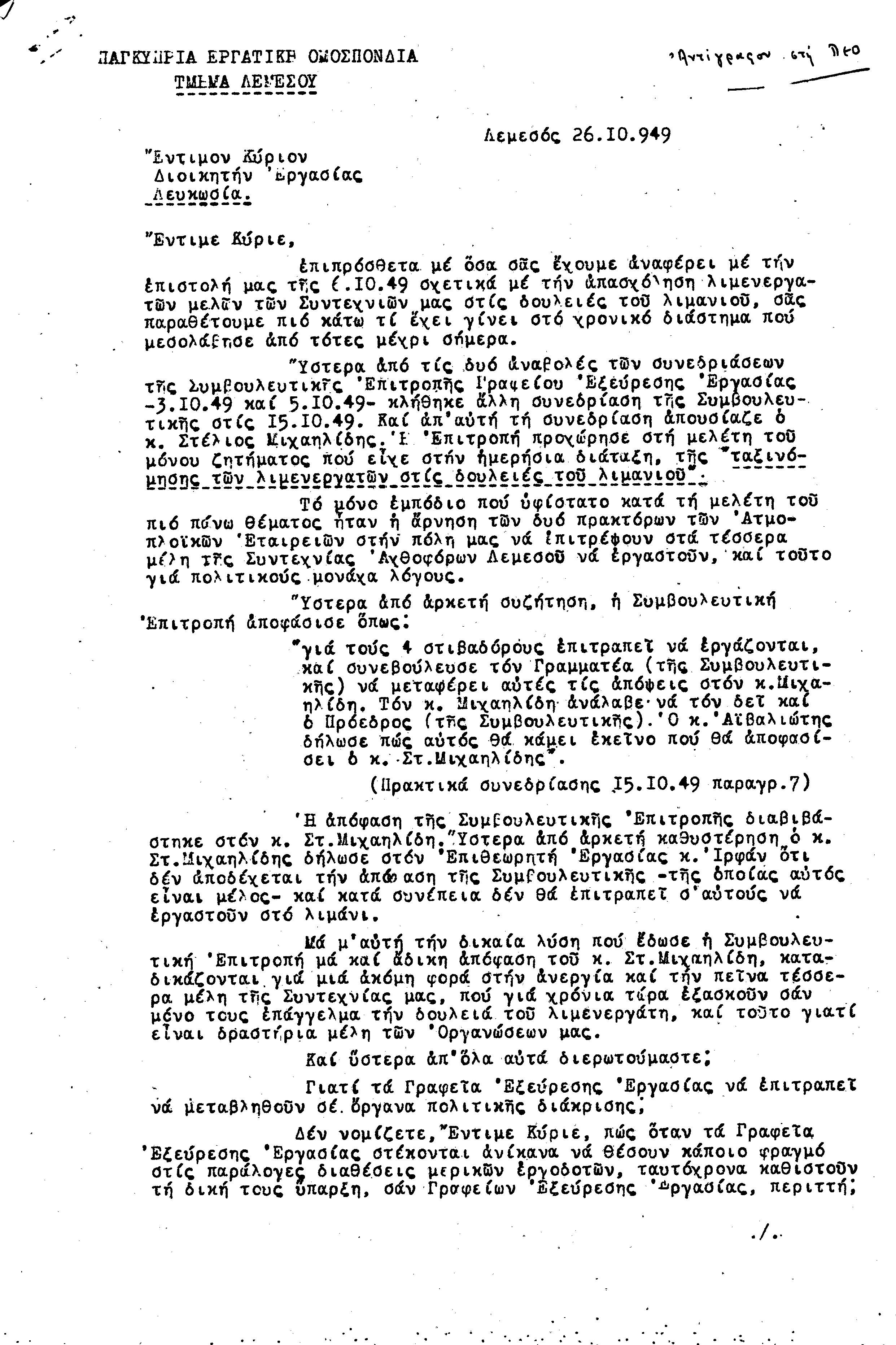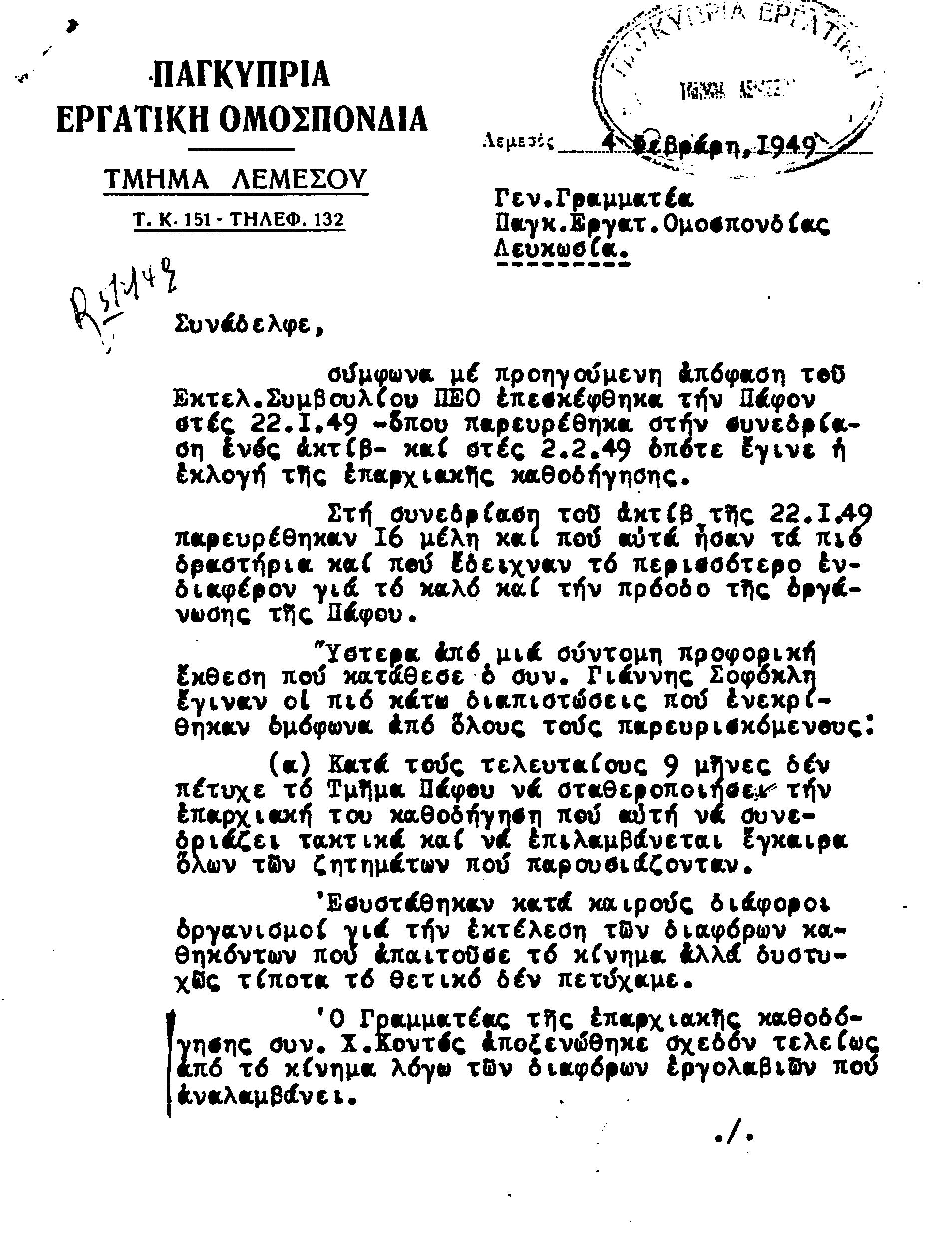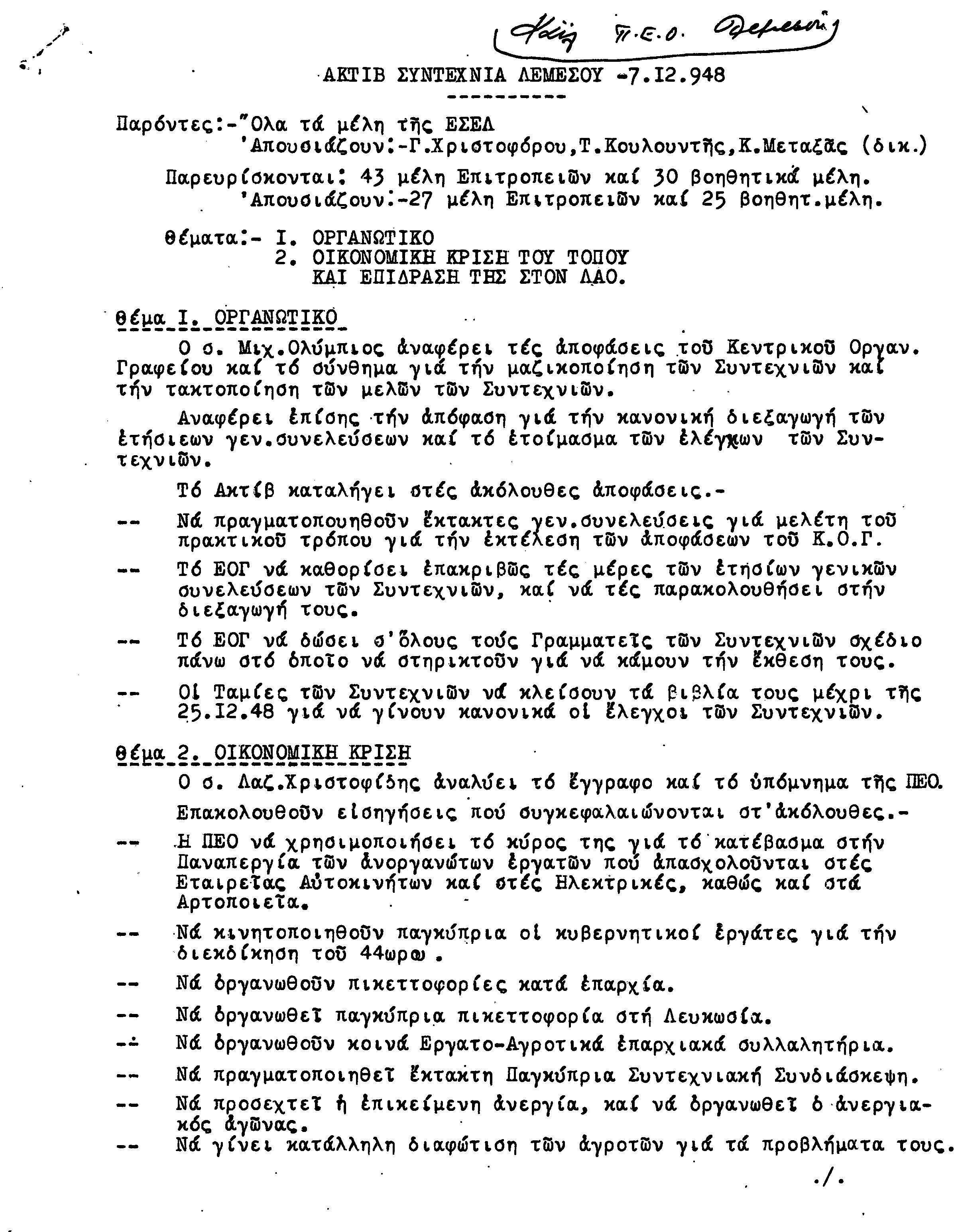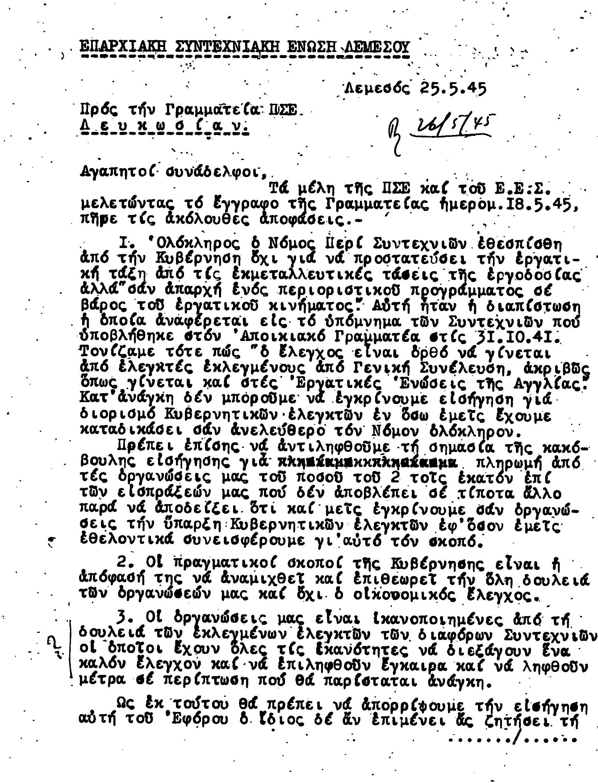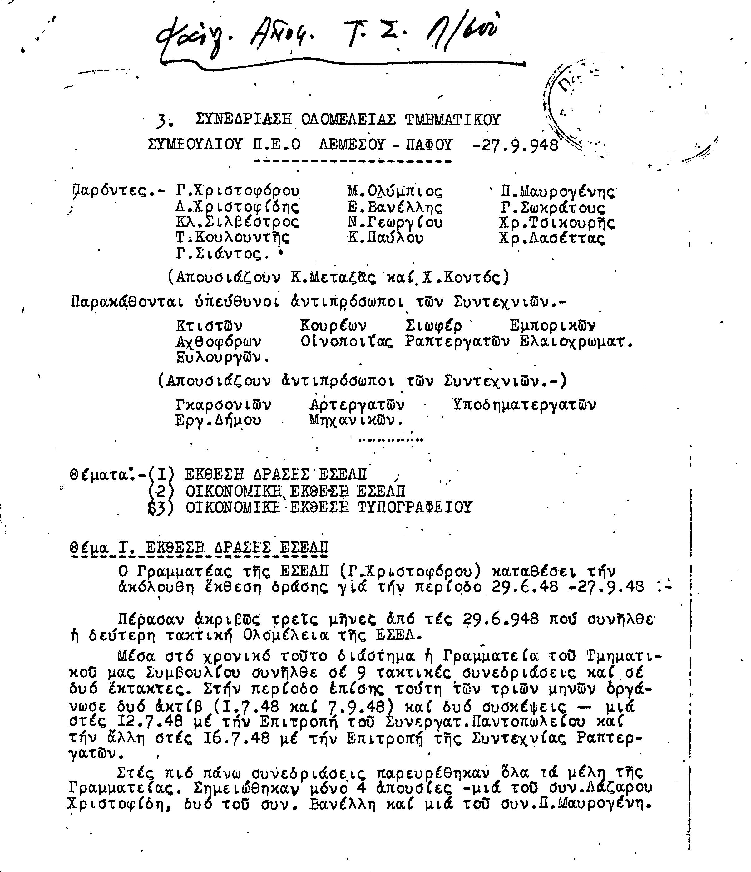 ΕΓΓΡΑΦΑ Τ.Σ. ΛΕΜΕΣΟΥ ΚΑΙ ΠΑΦΟΥ 1941-1955 ΜΕΡΟΣ 1