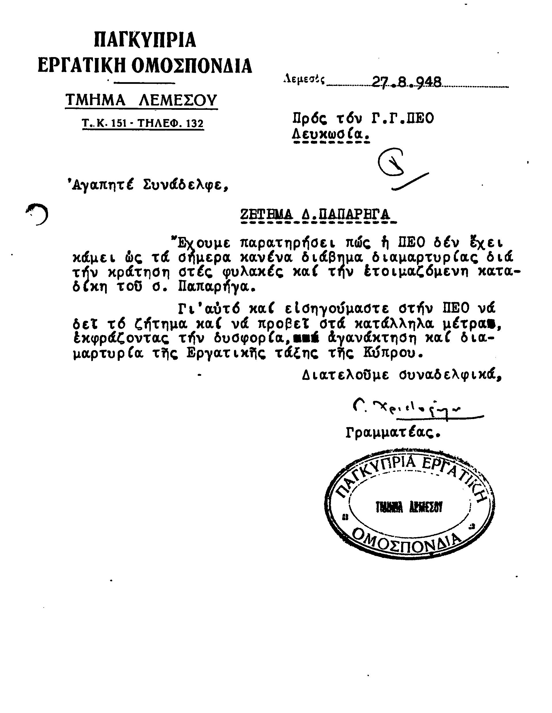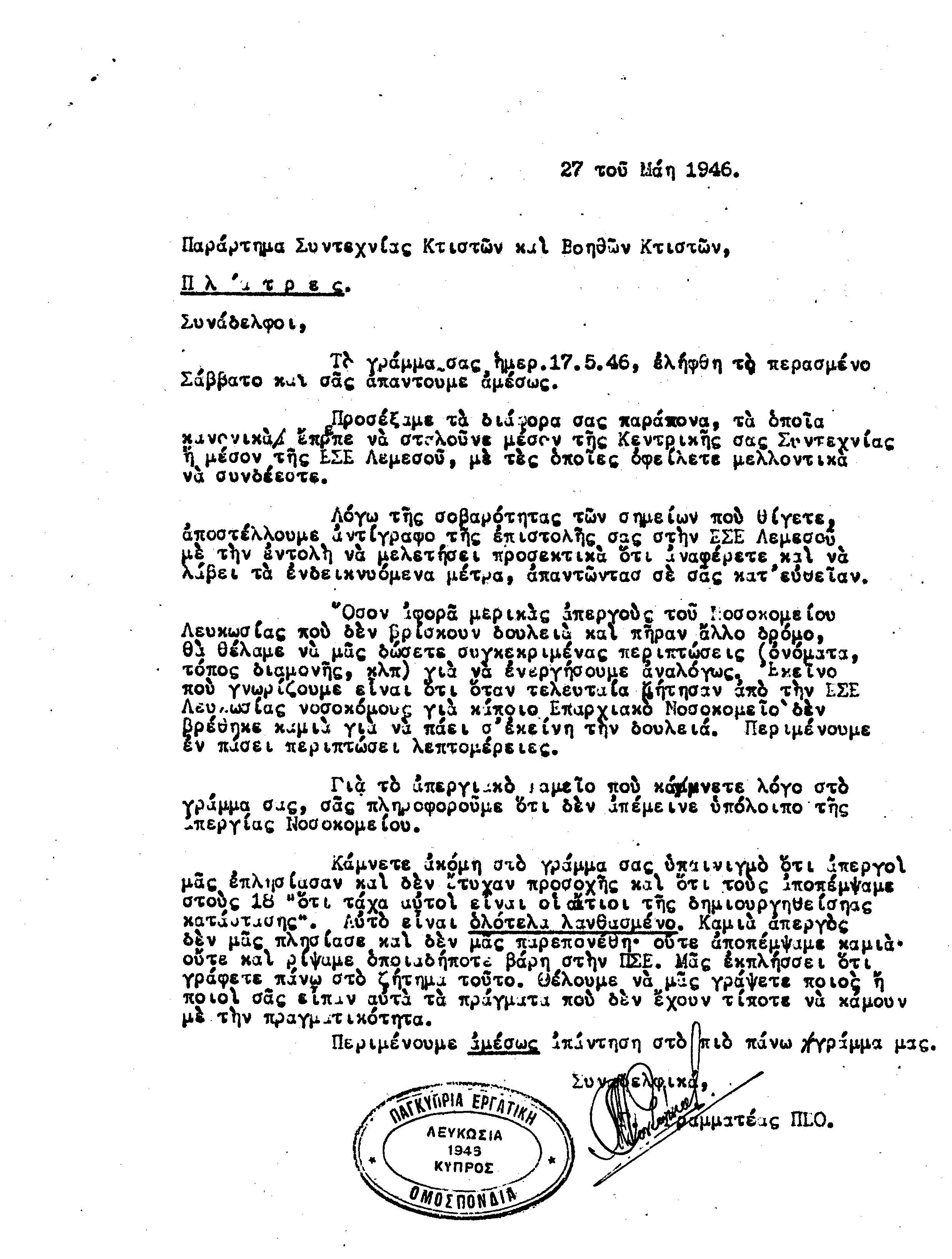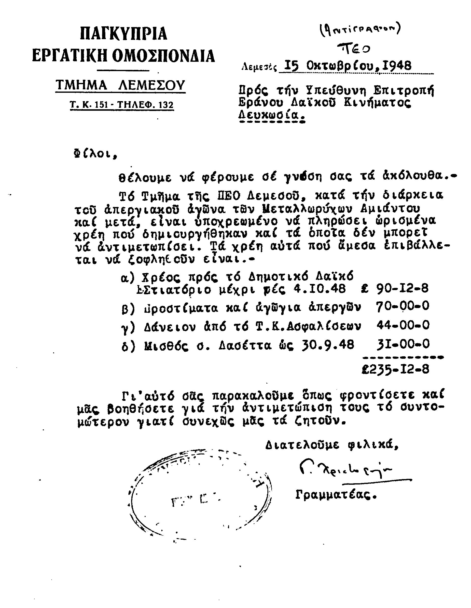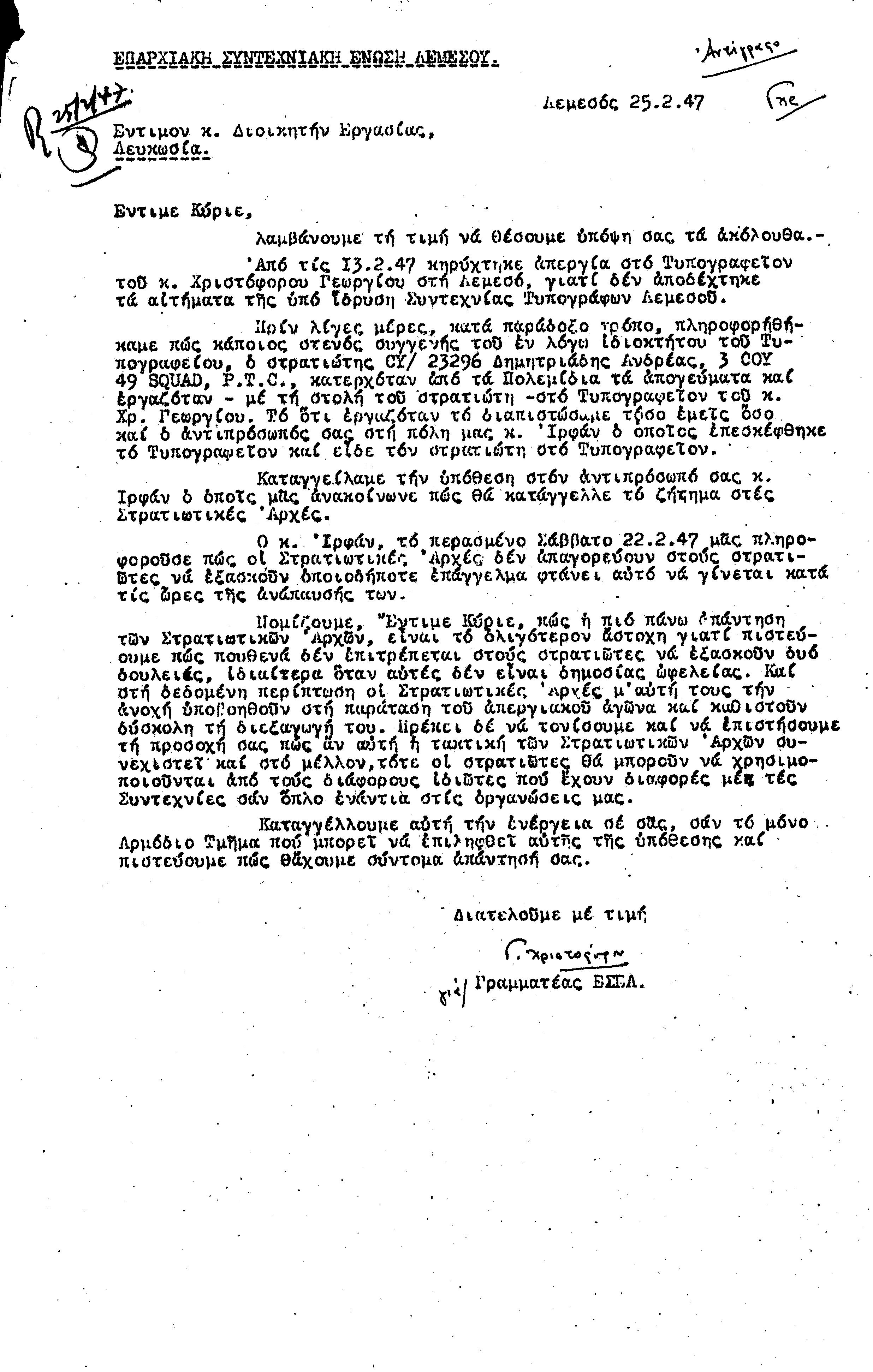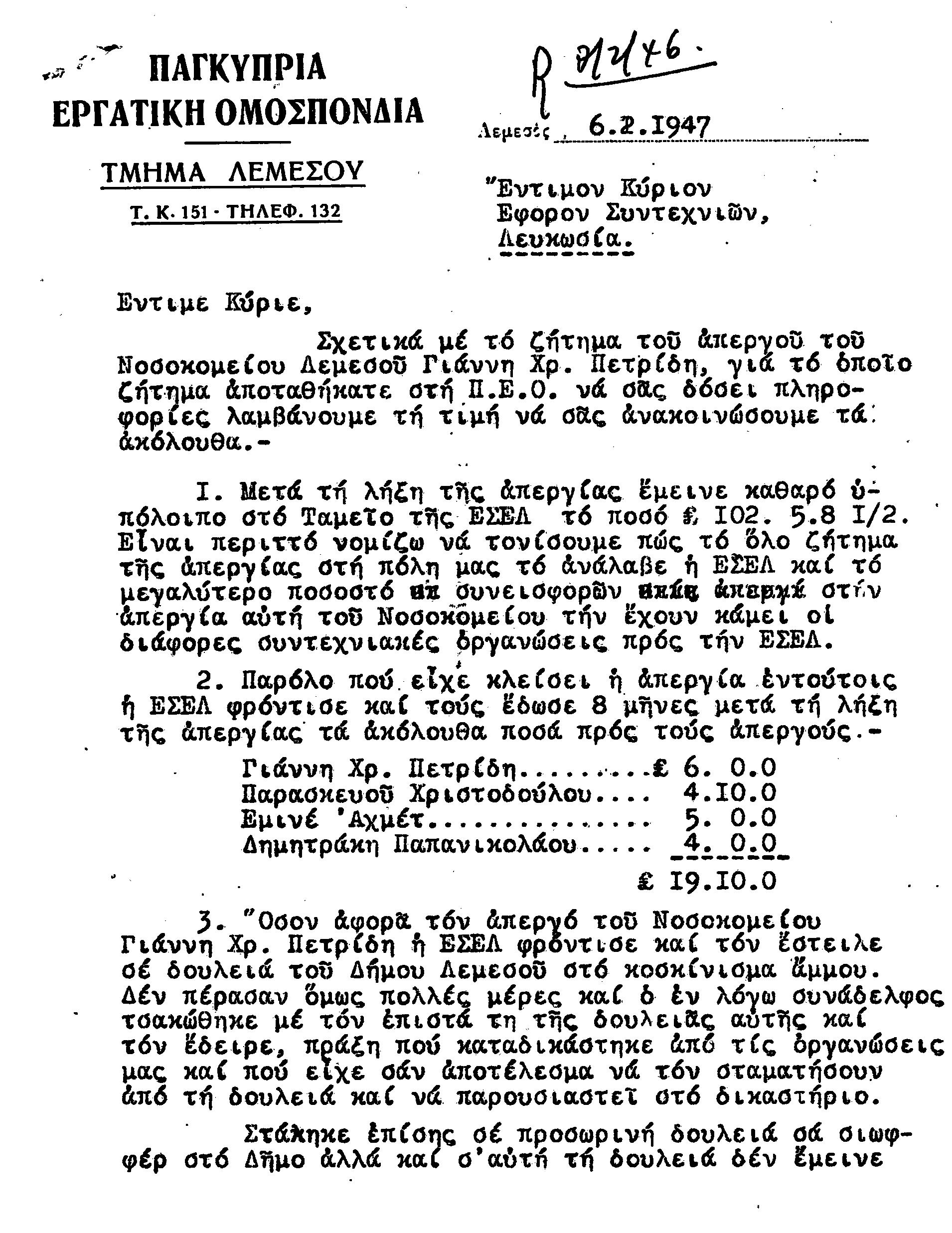 ΕΓΓΡΑΦΑ Τ.Σ. ΛΕΜΕΣΟΥ ΚΑΙ ΠΑΦΟΥ 1941-1955 ΜΕΡΟΣ 1