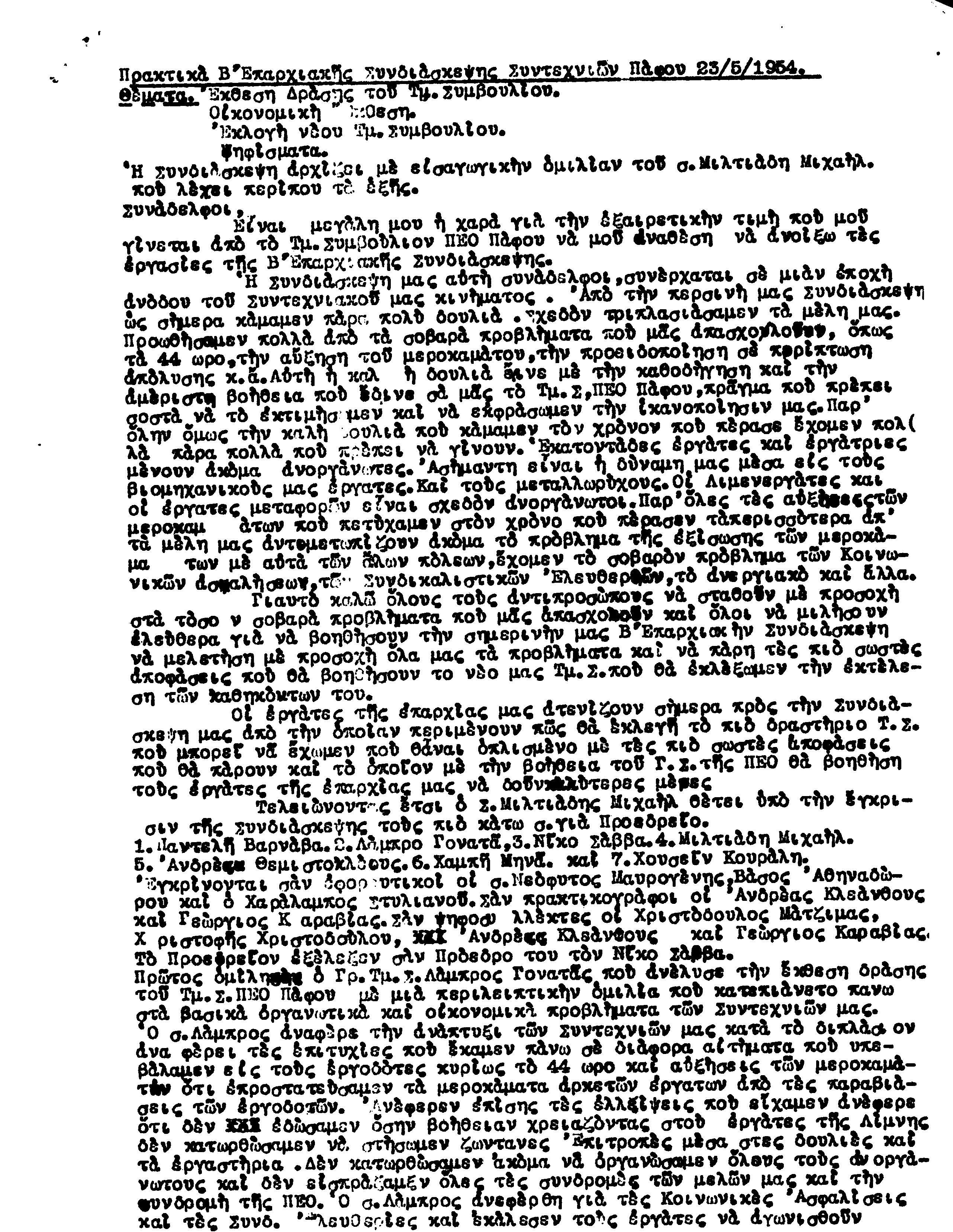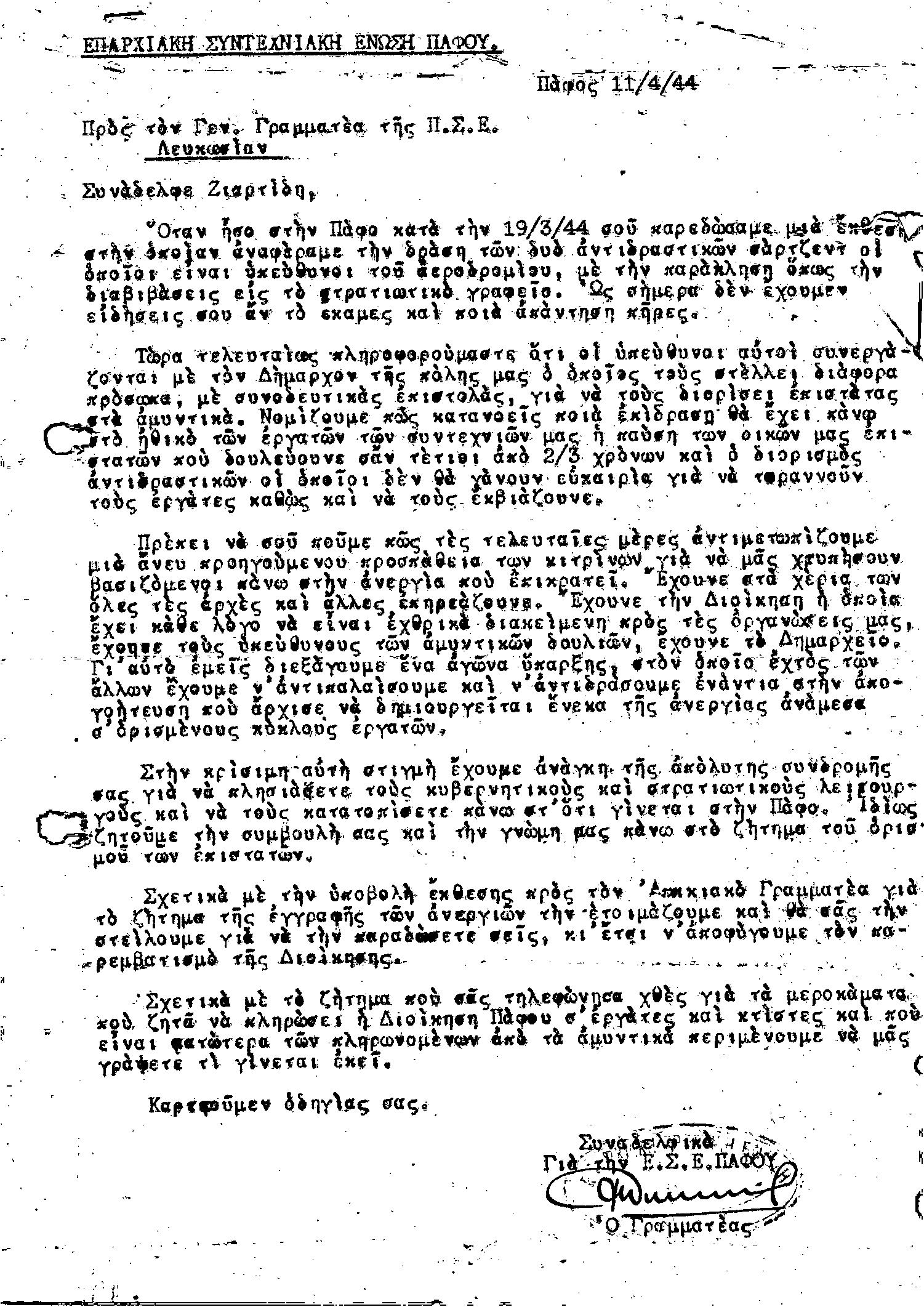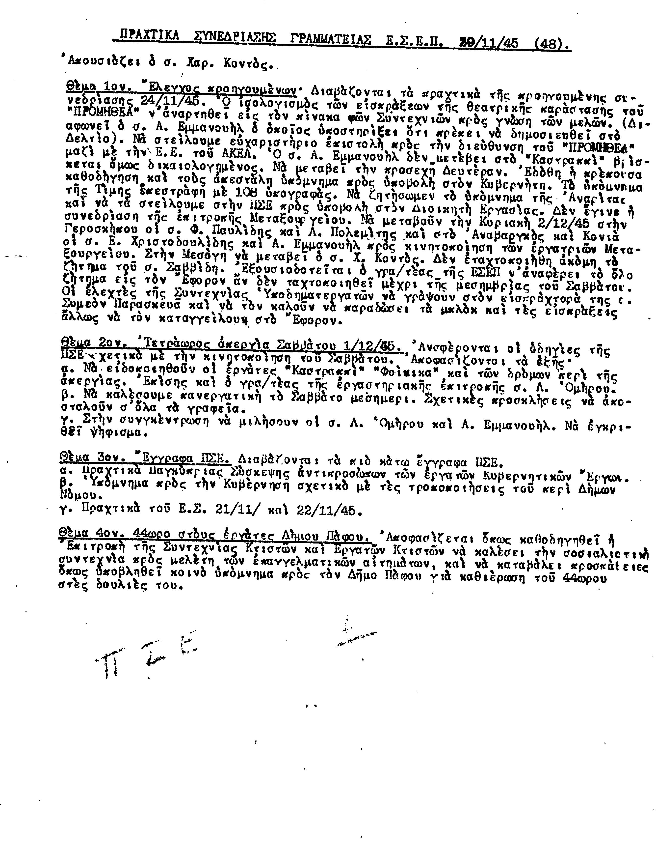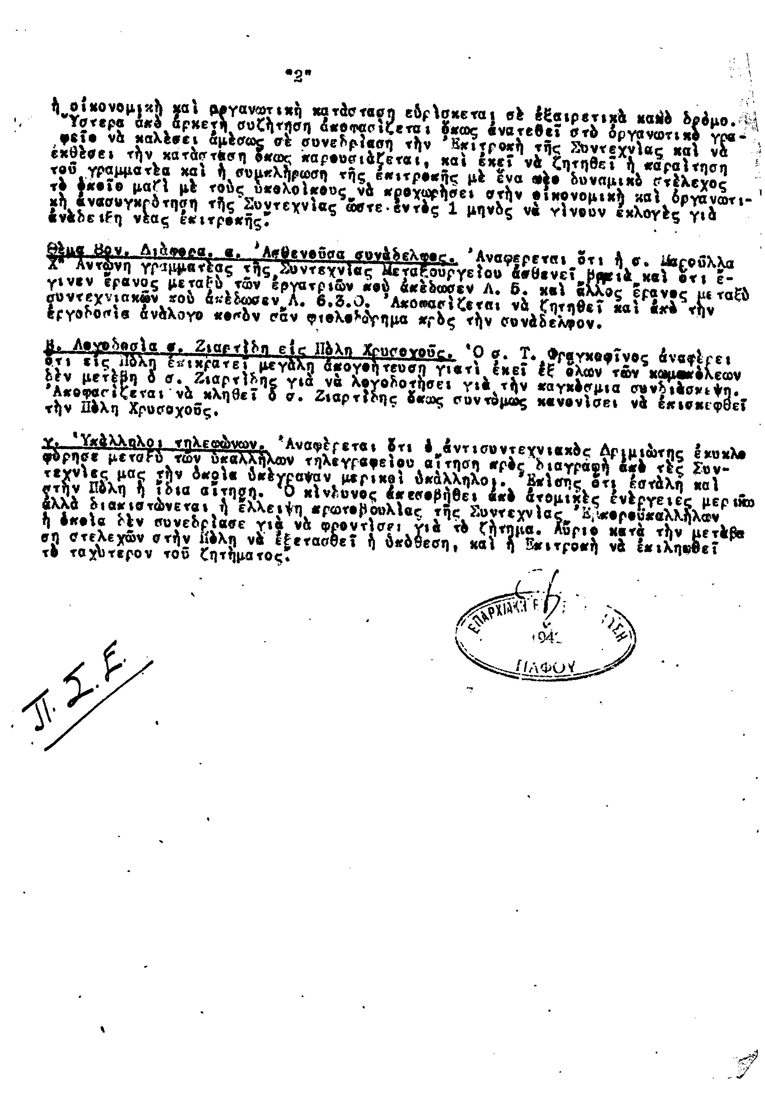 ΕΓΓΡΑΦΑ Τ.Σ. ΠΕΟ ΠΑΦΟΥ 1944-1954