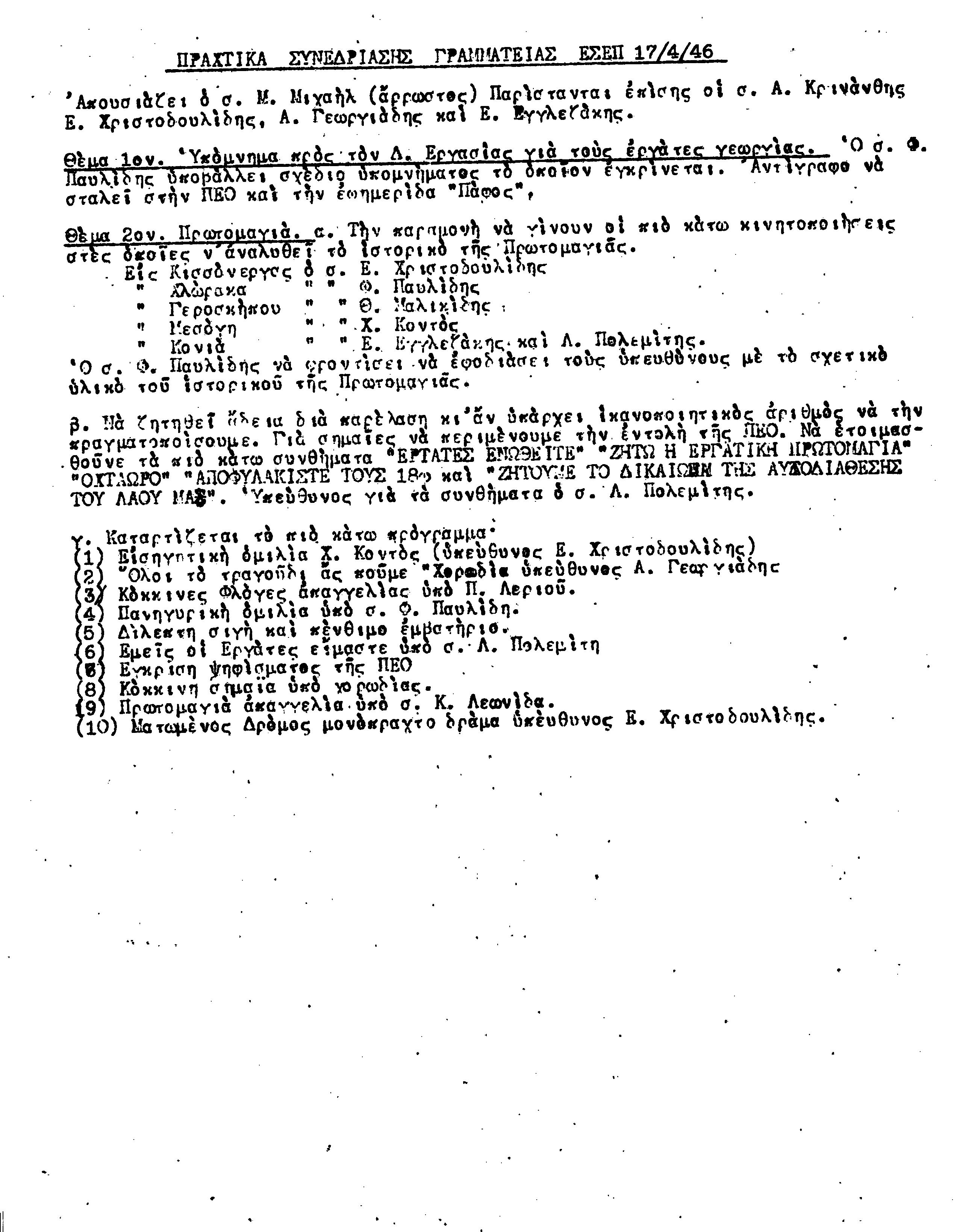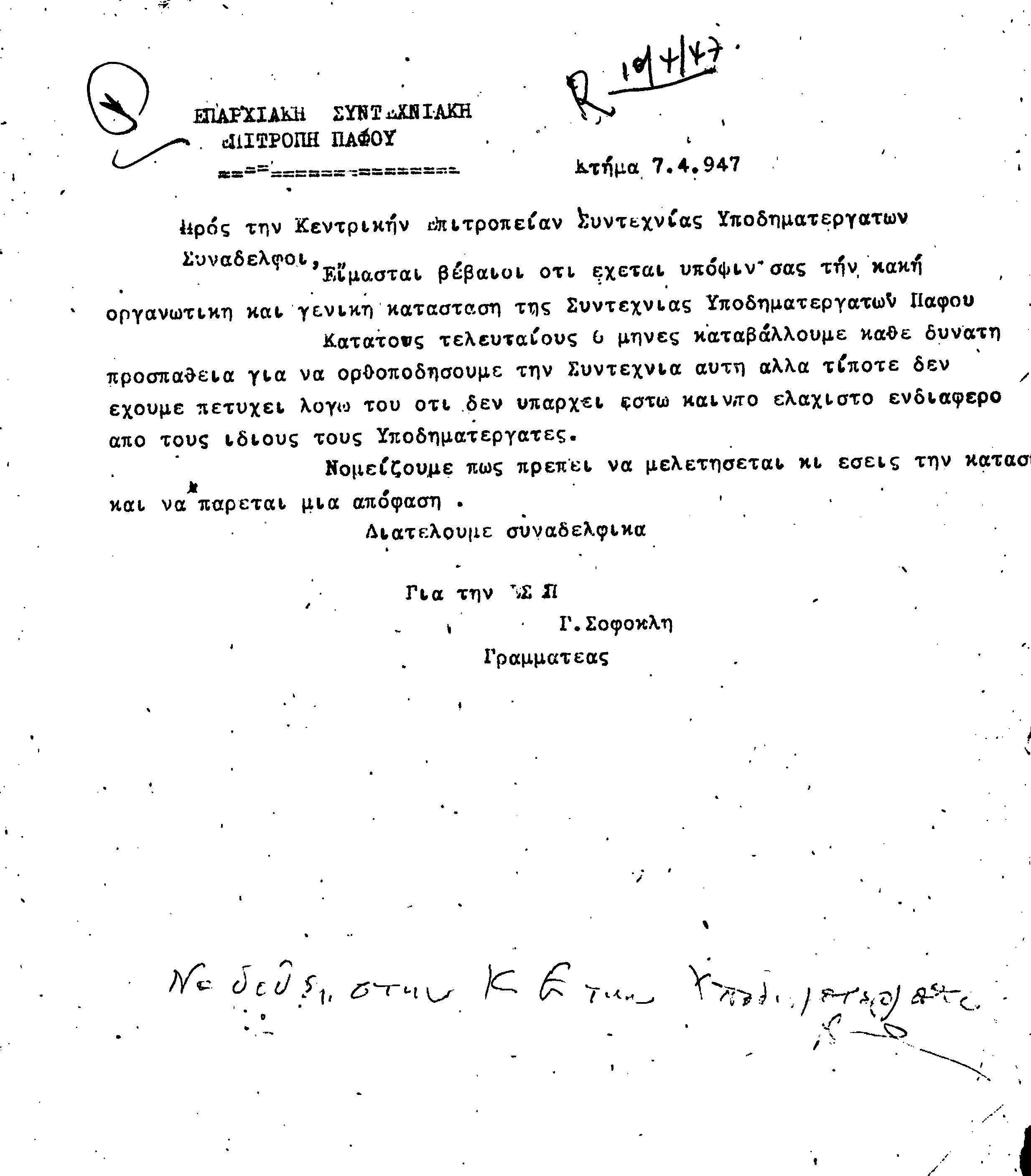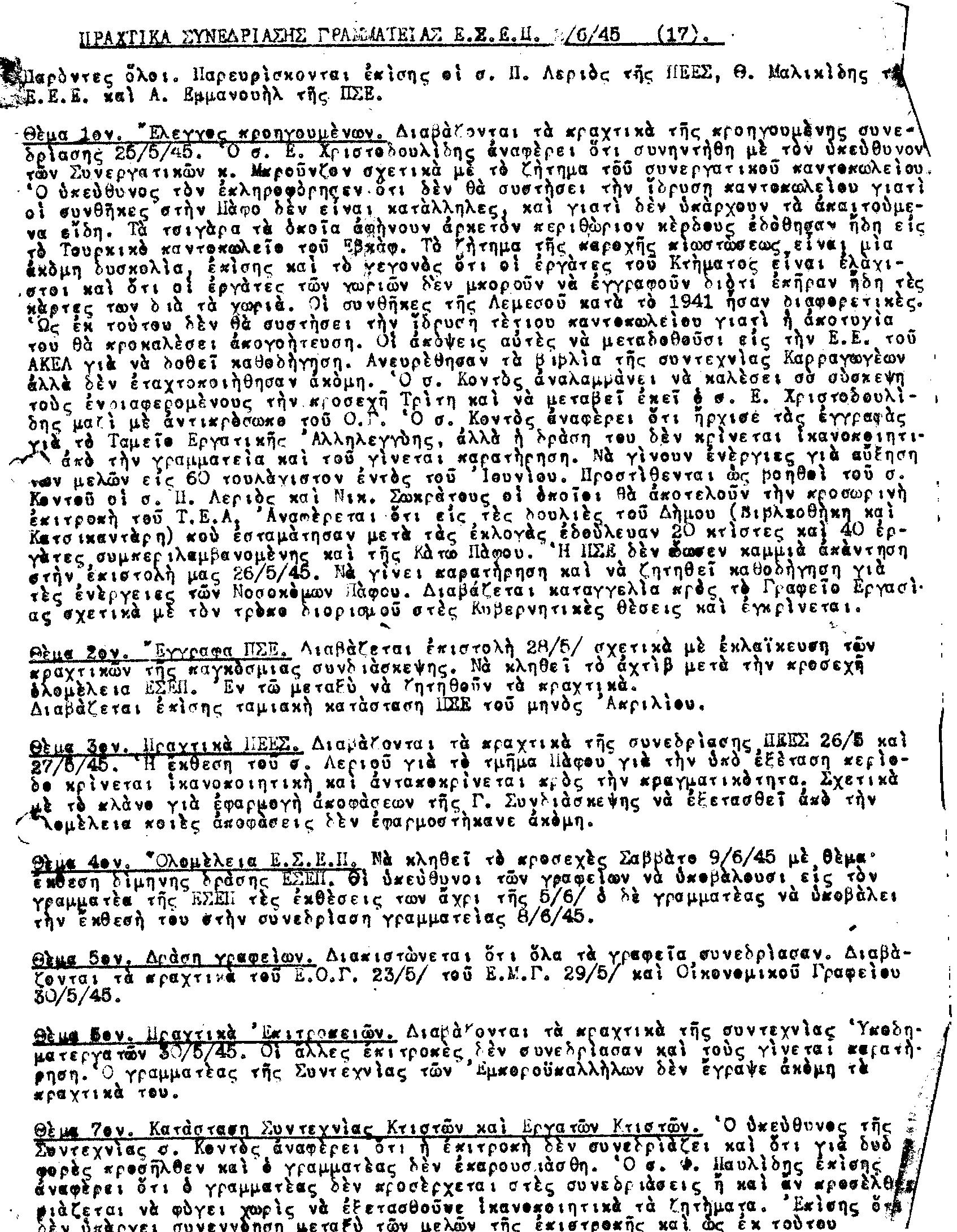 ΕΓΓΡΑΦΑ Τ.Σ. ΠΕΟ ΠΑΦΟΥ 1944-1954