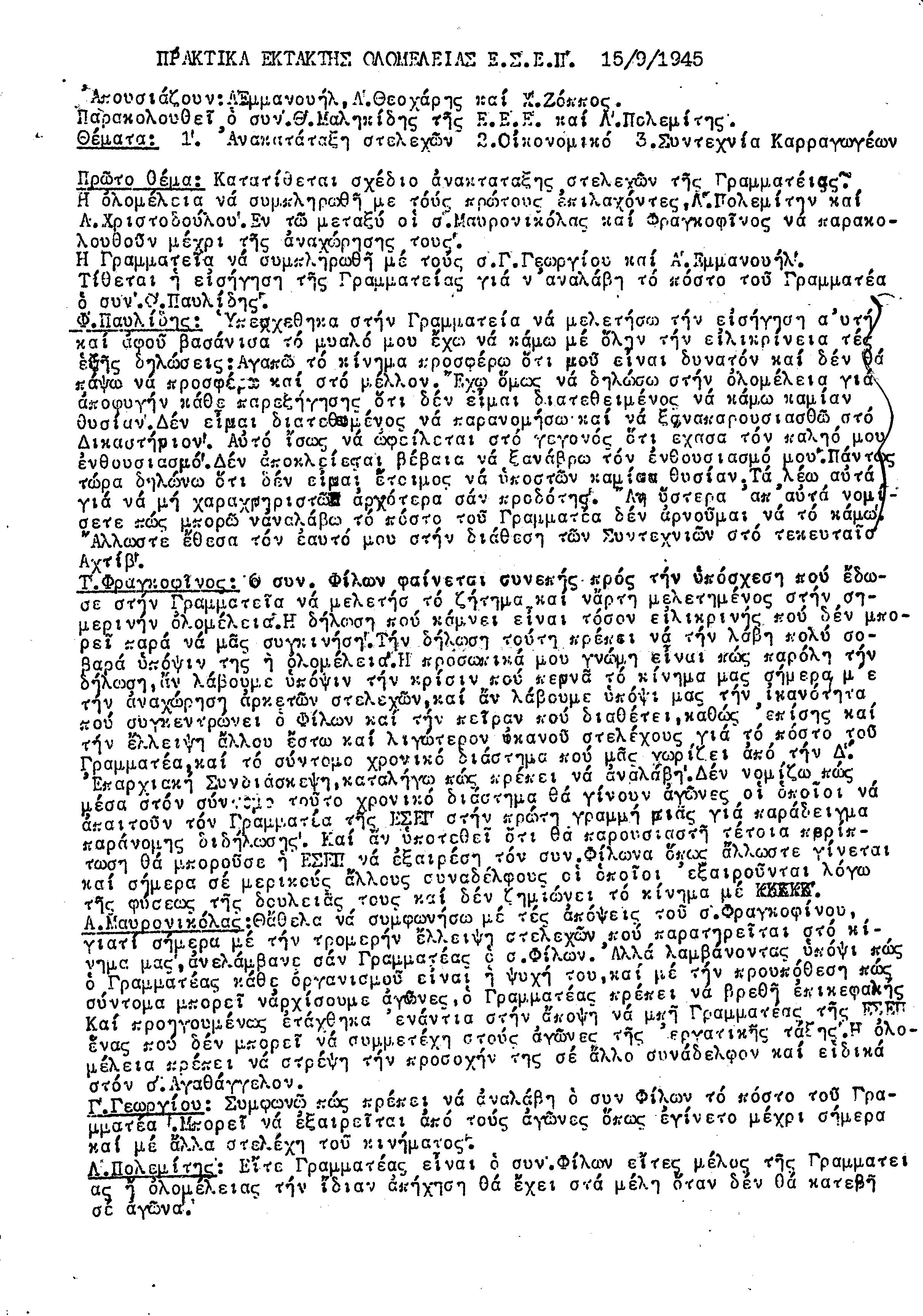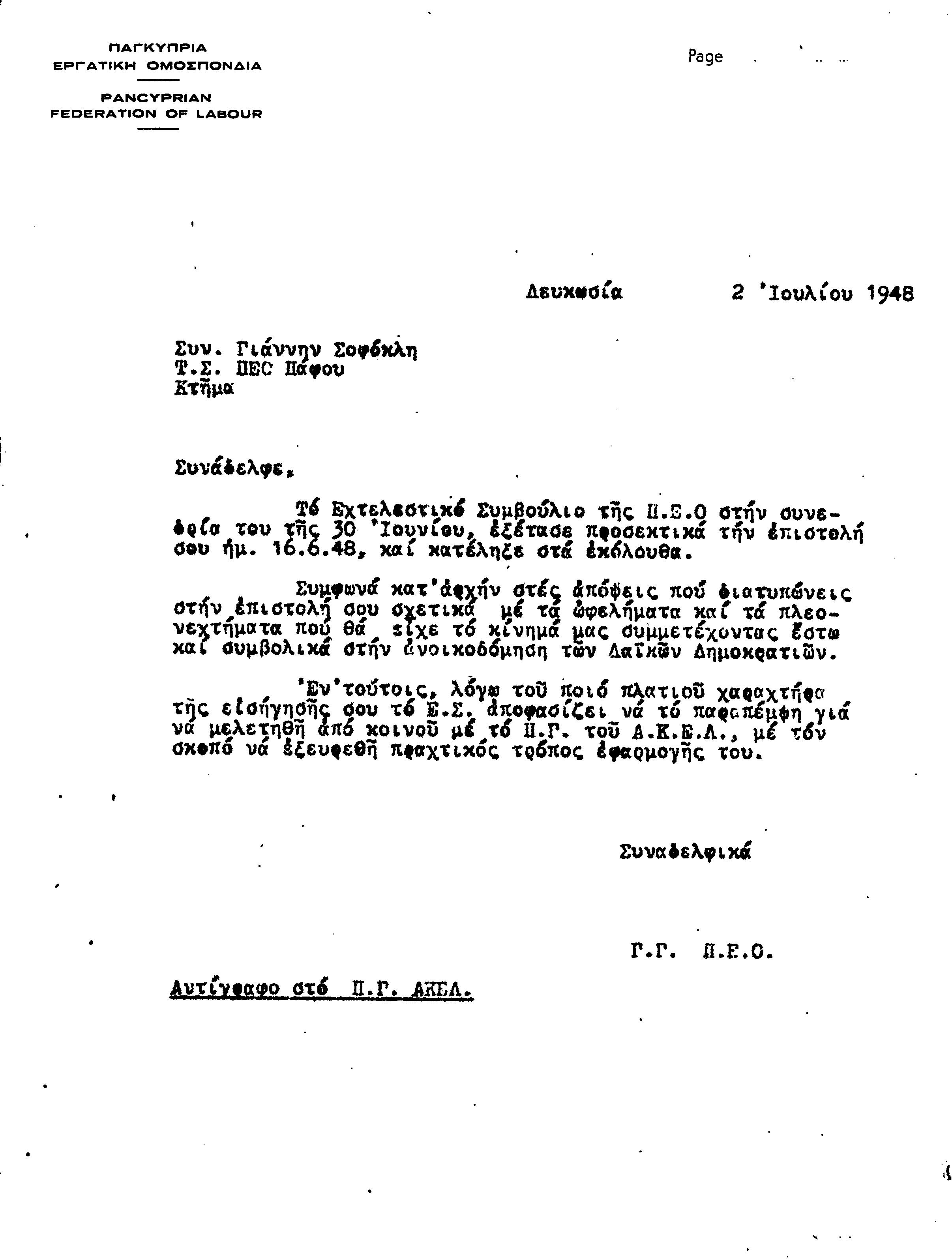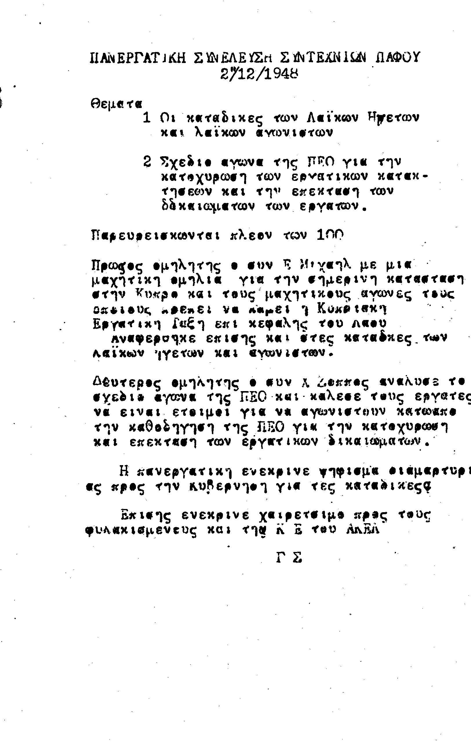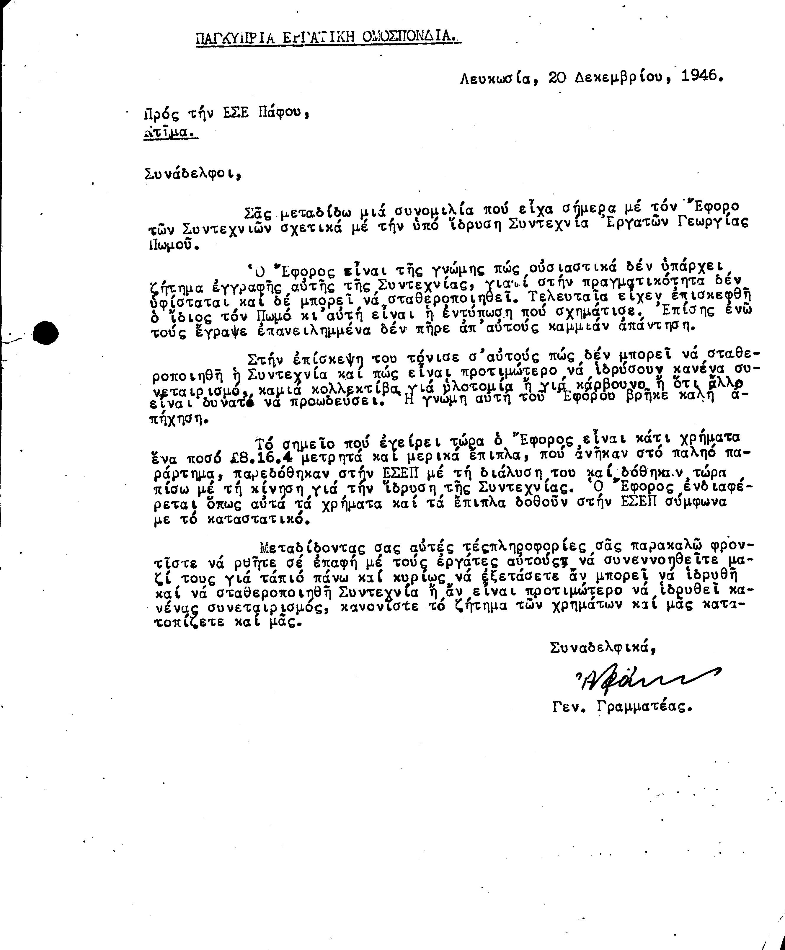 ΕΓΓΡΑΦΑ Τ.Σ. ΠΕΟ ΠΑΦΟΥ 1944-1954