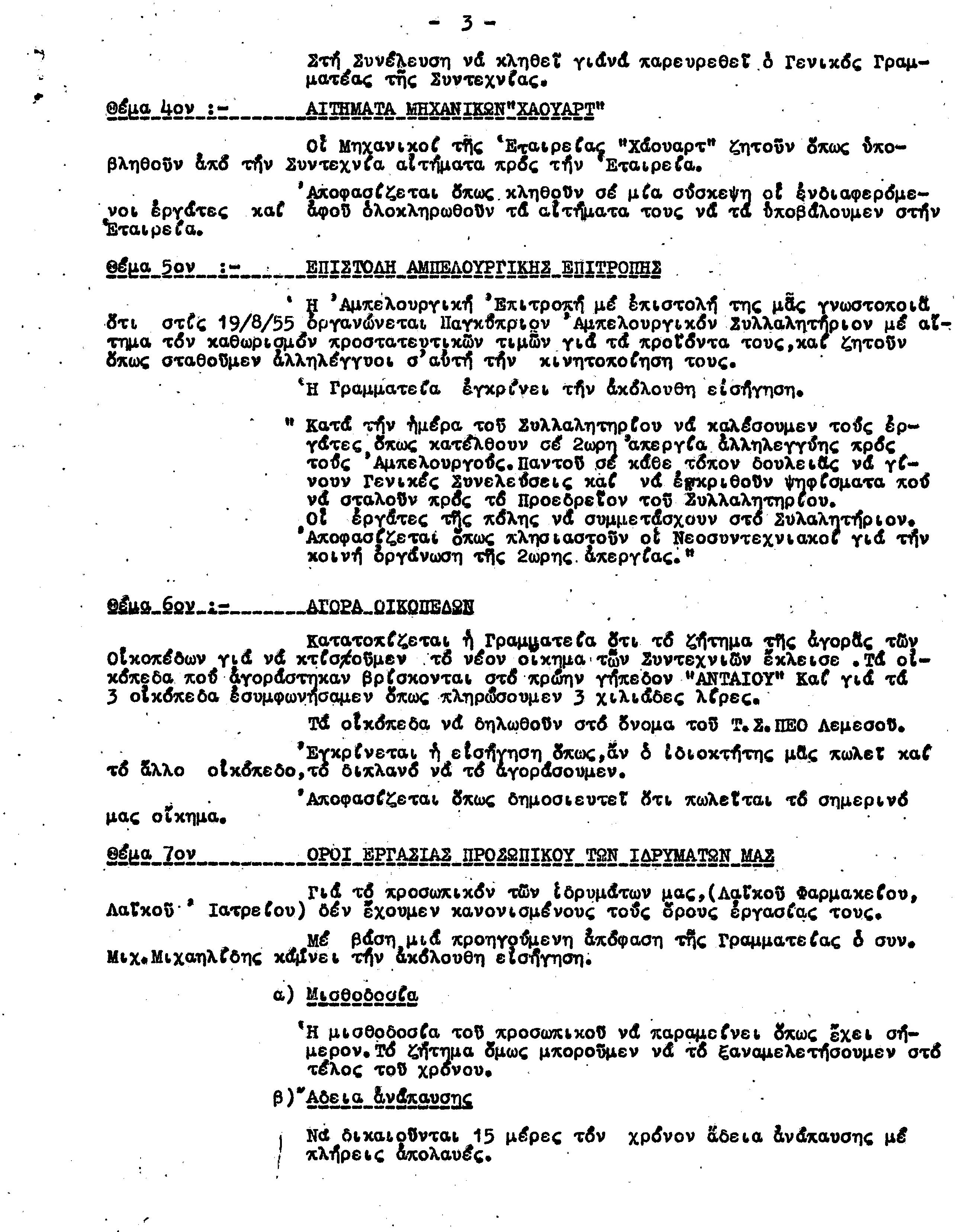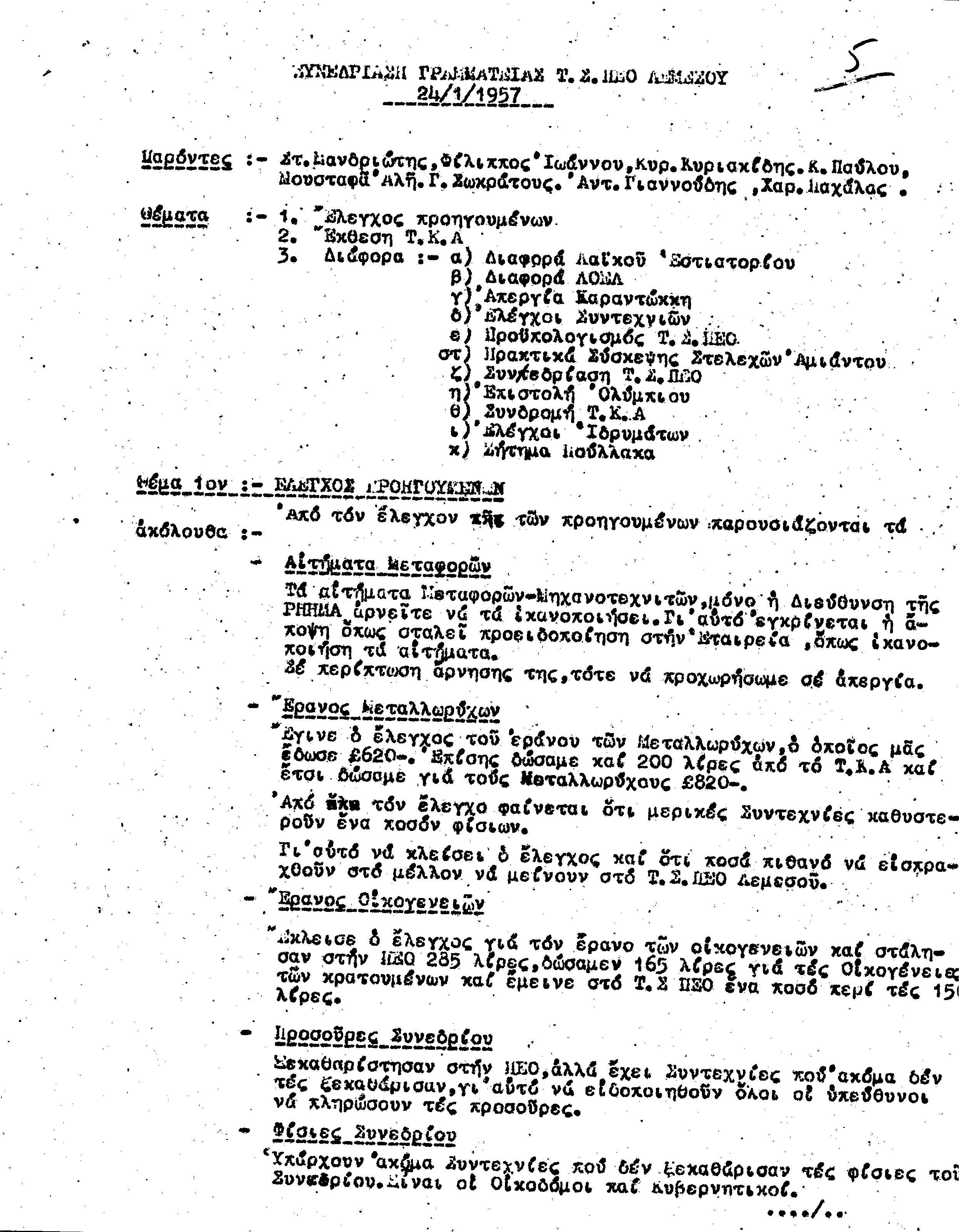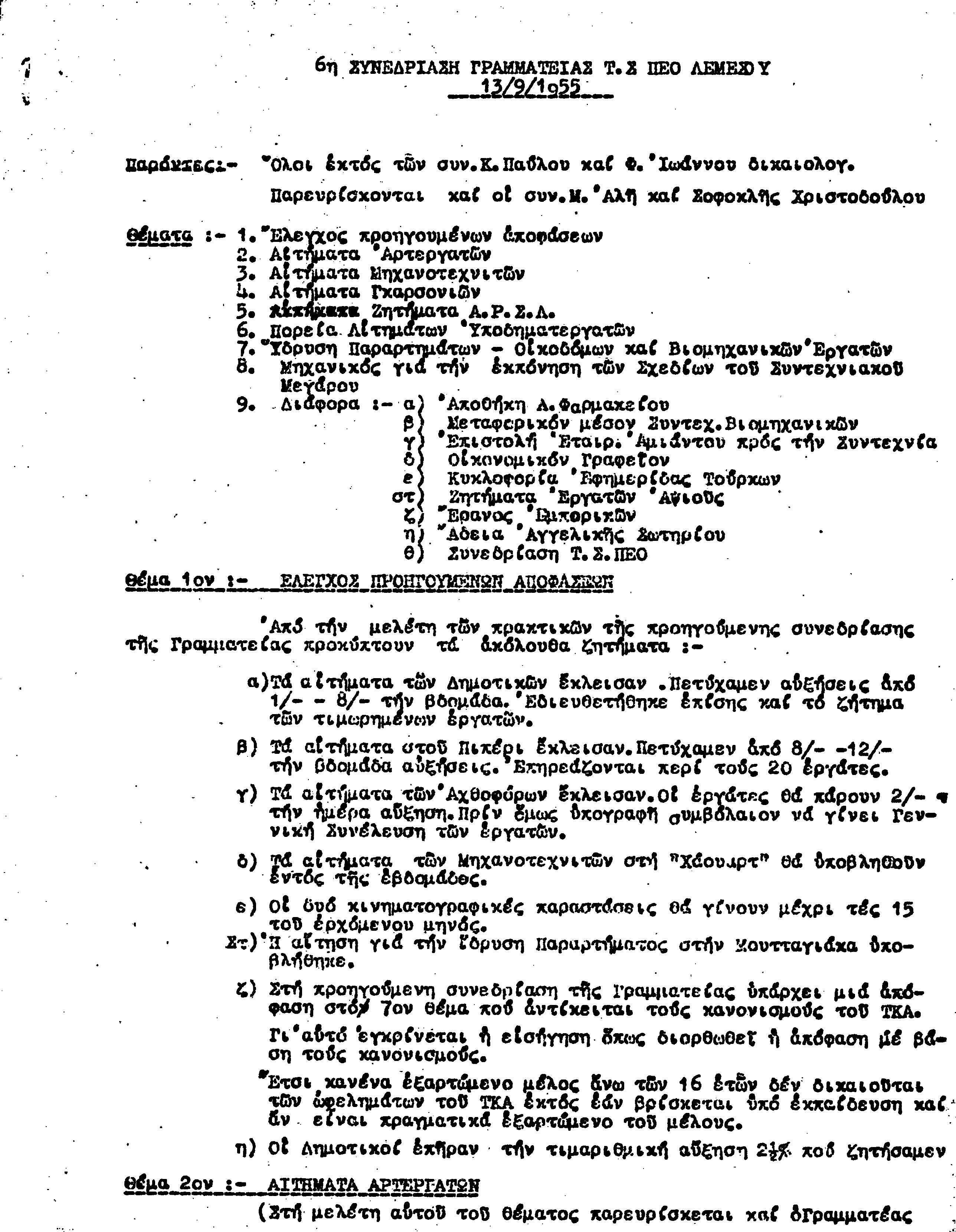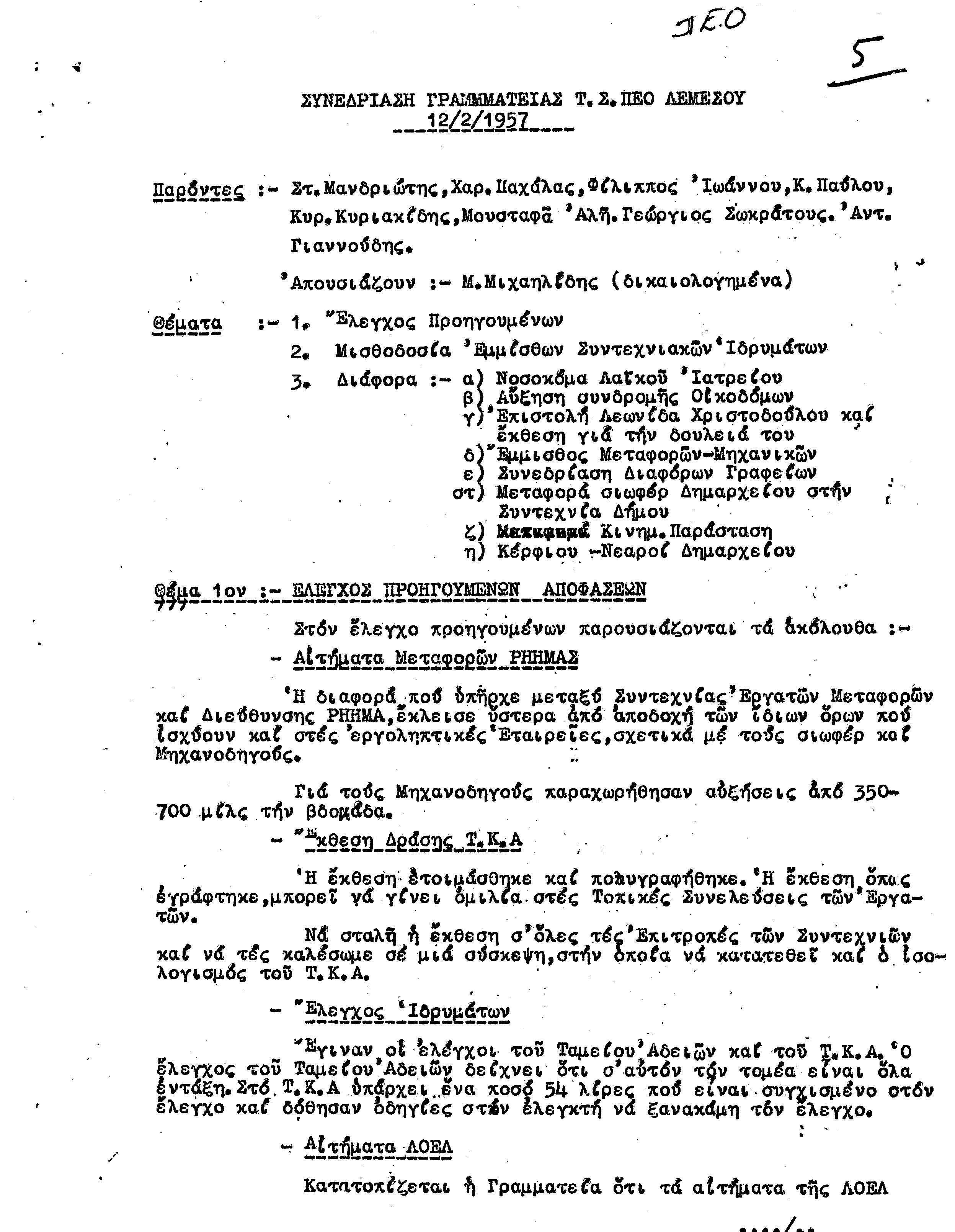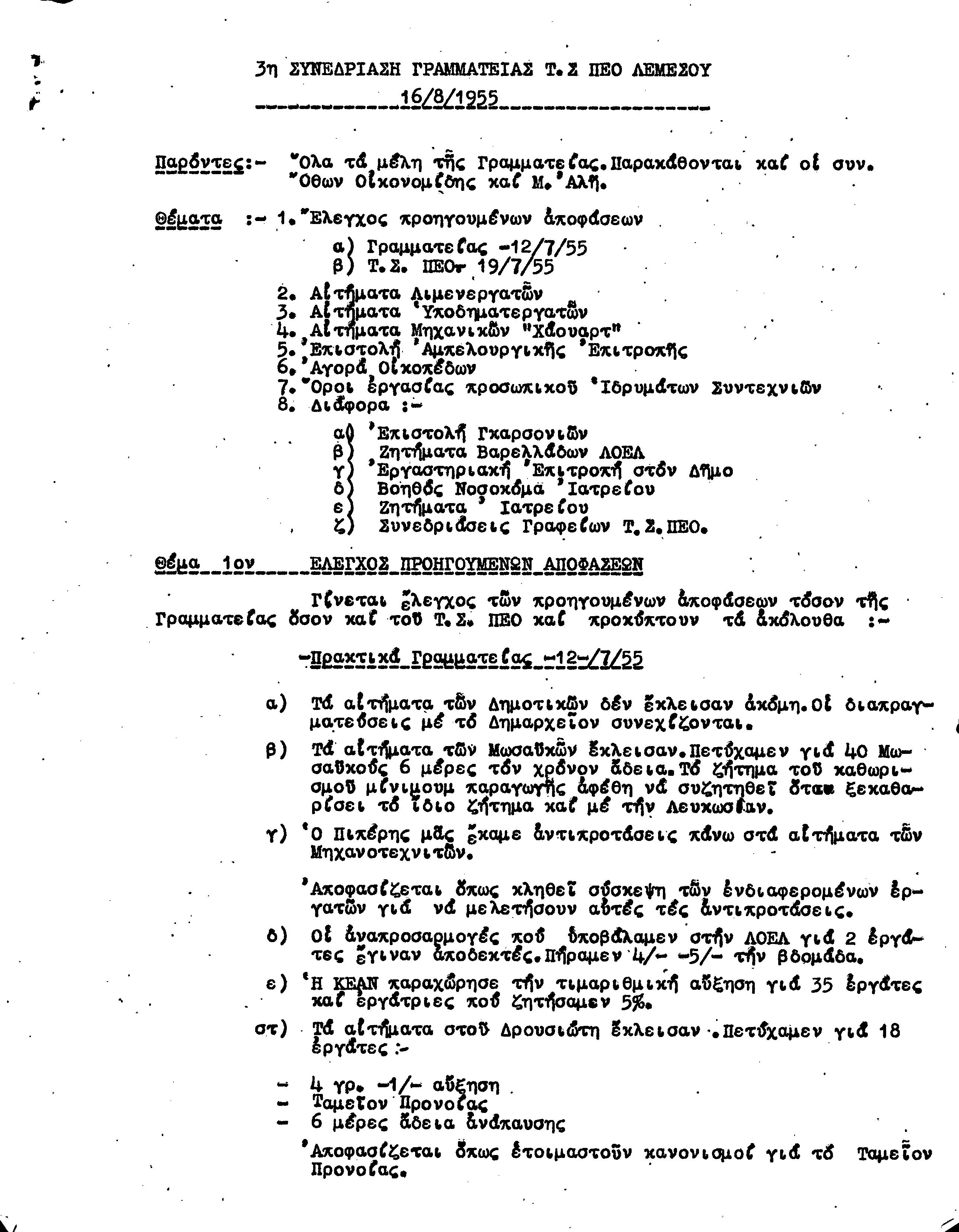 ΕΓΓΡΑΦΑ Τ.Σ. ΠΕΟ ΛΕΜΕΣΟΥ 1955-1962