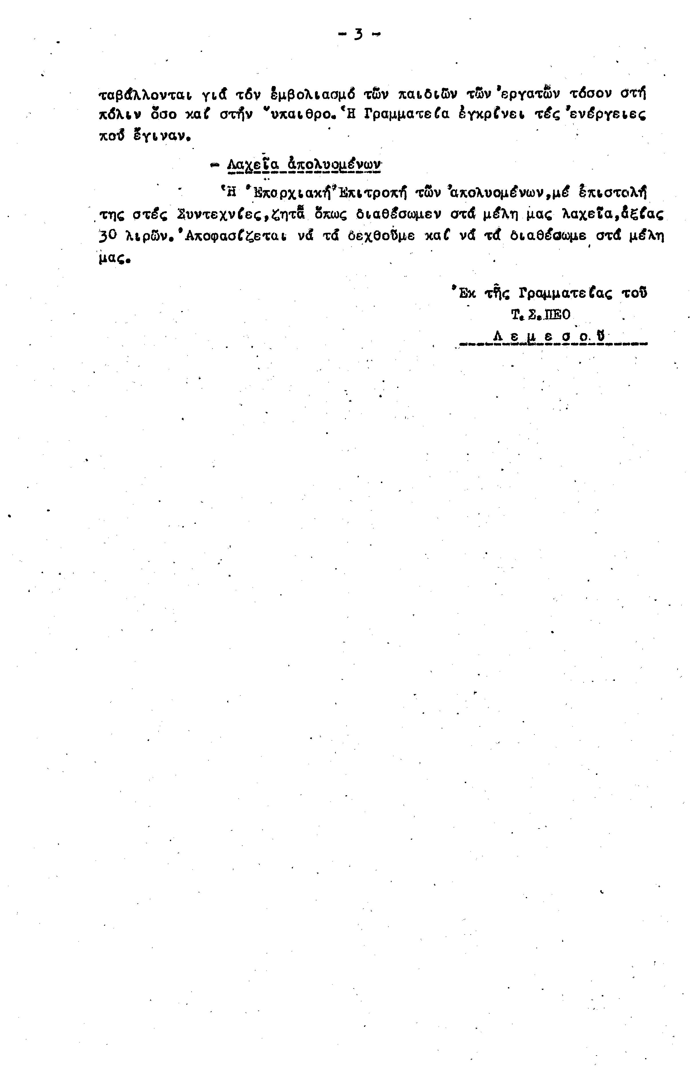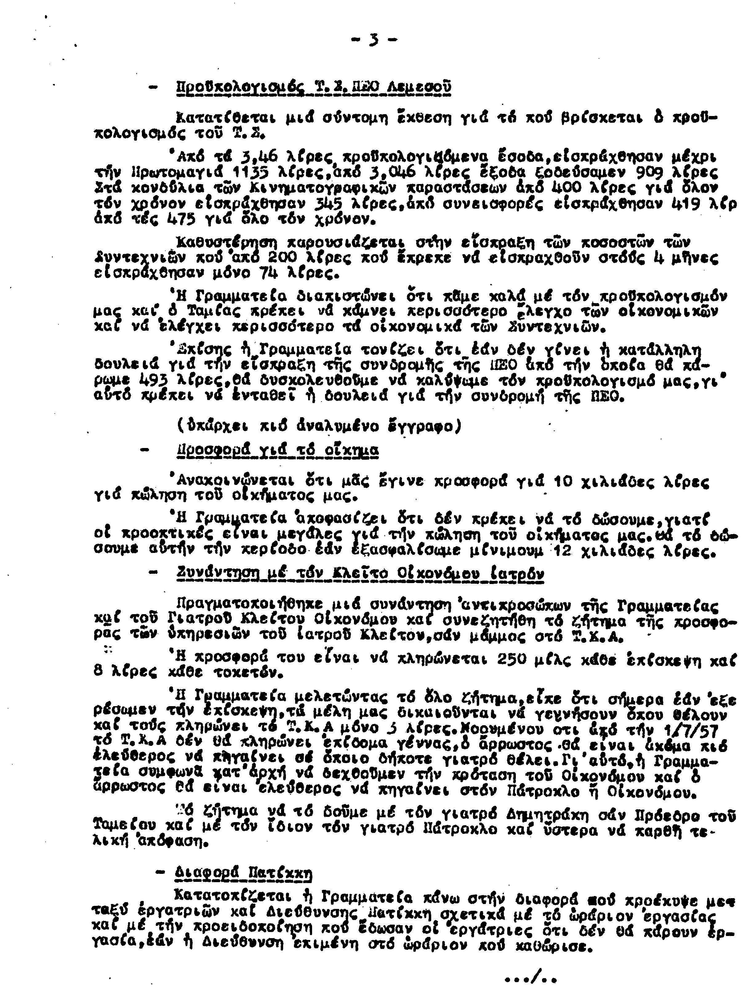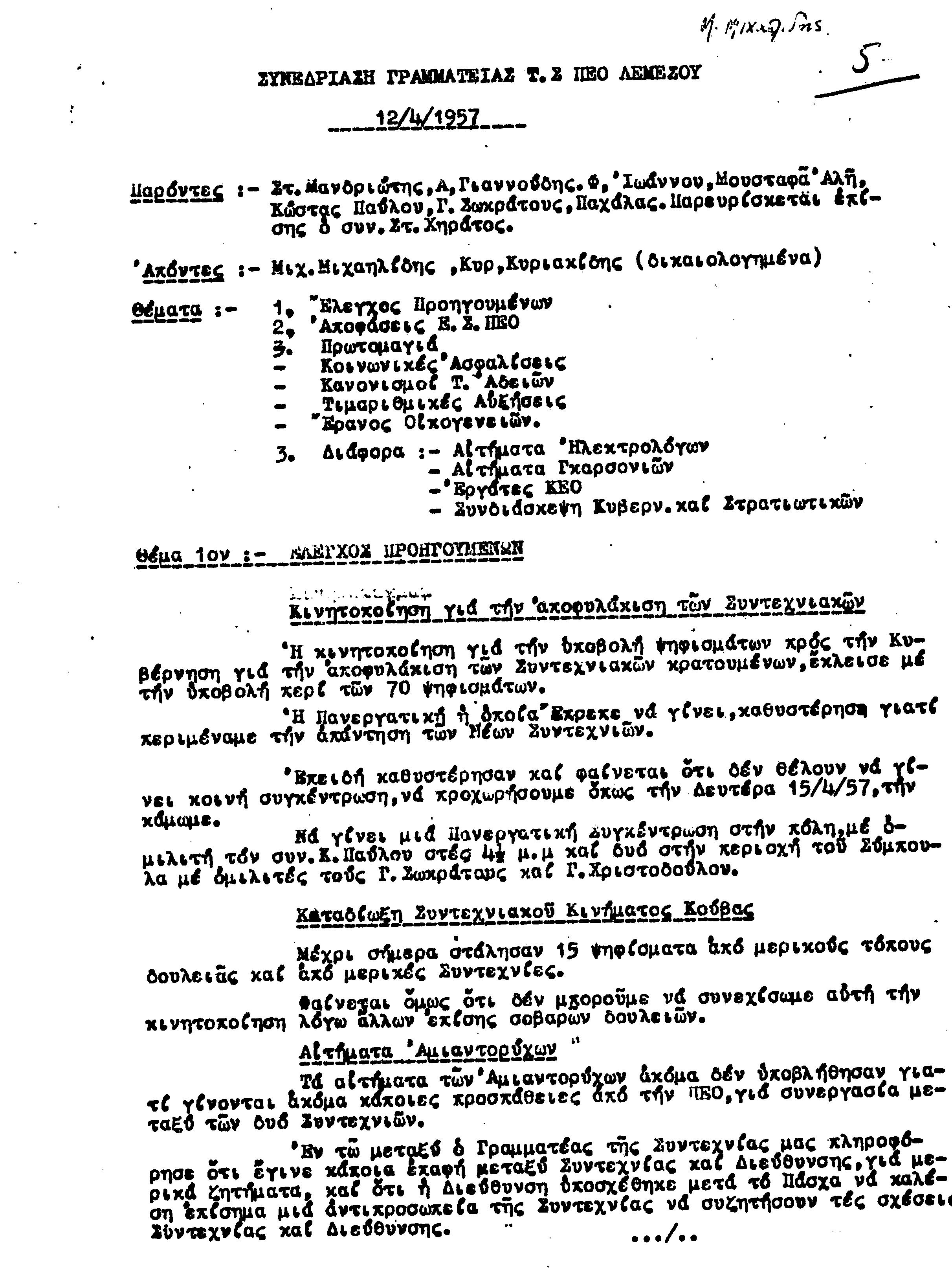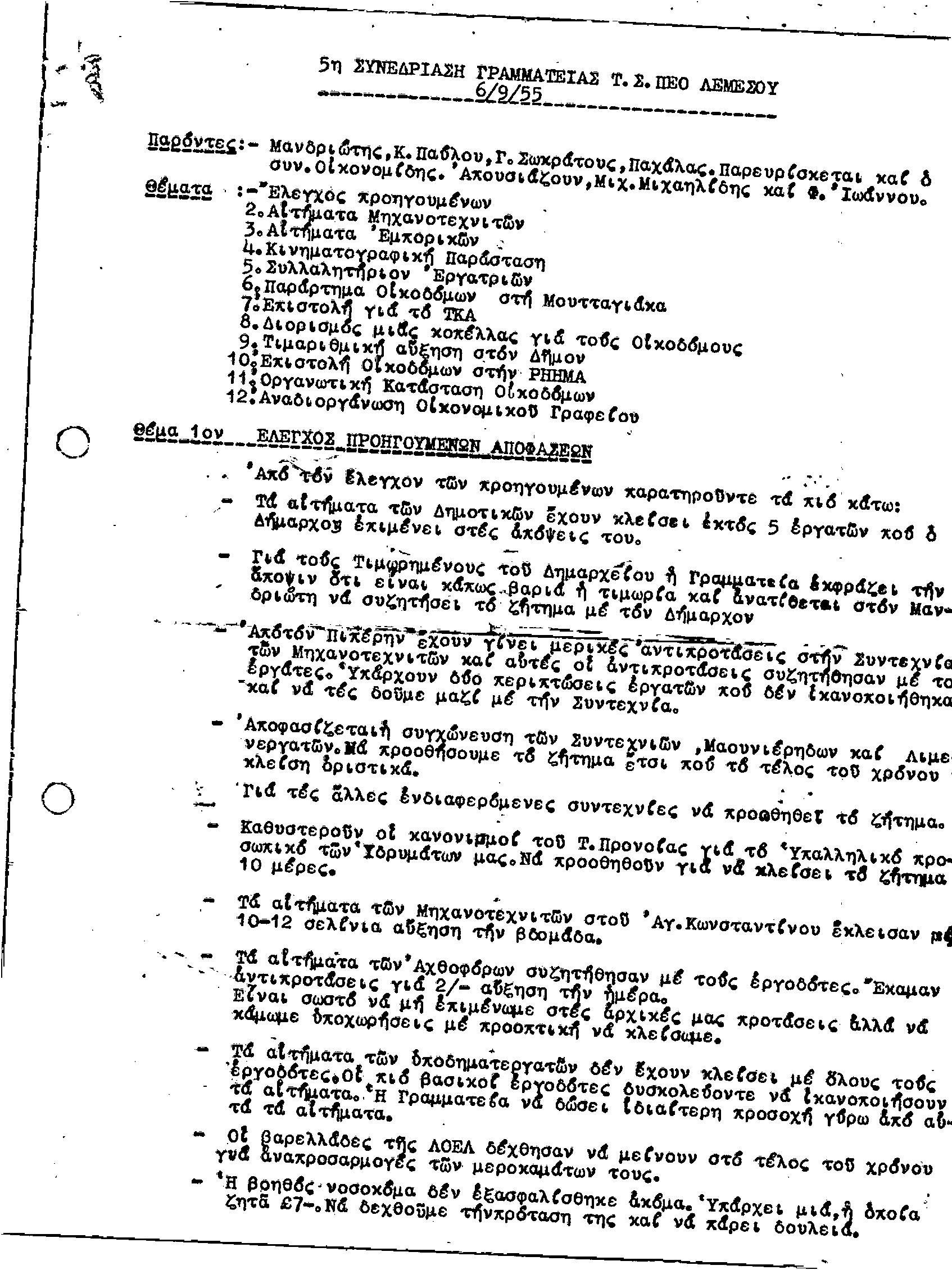 ΕΓΓΡΑΦΑ Τ.Σ. ΠΕΟ ΛΕΜΕΣΟΥ 1955-1962
