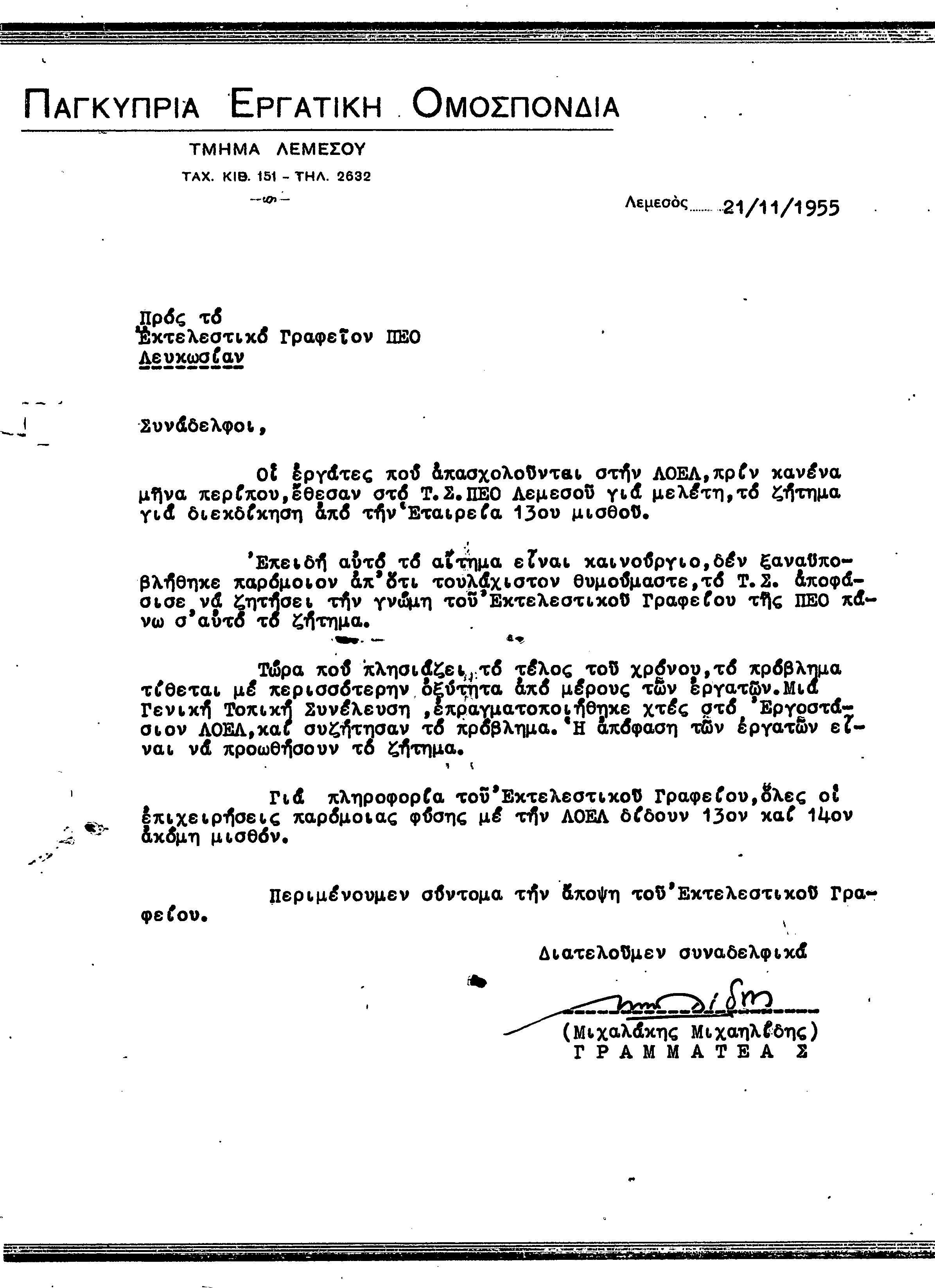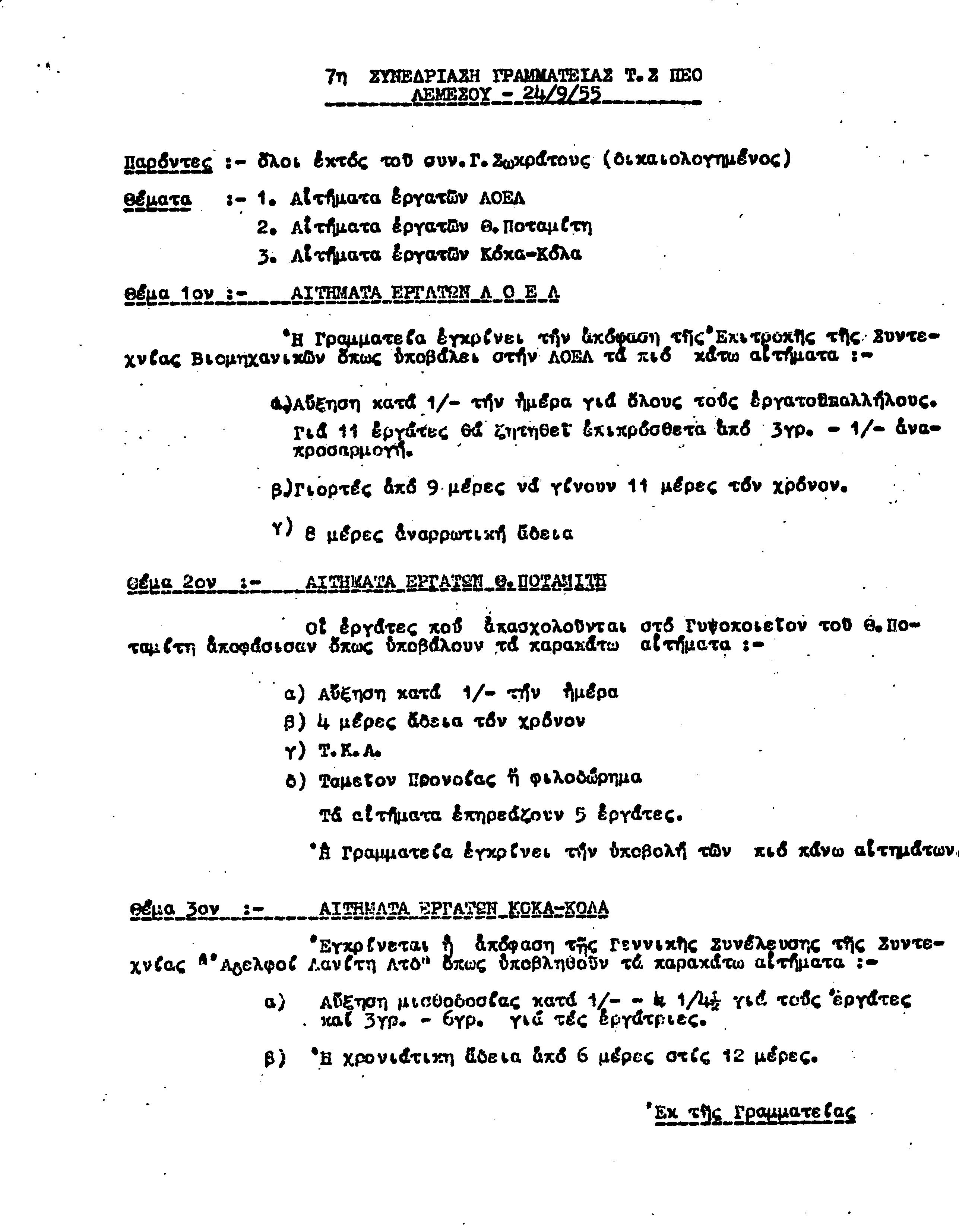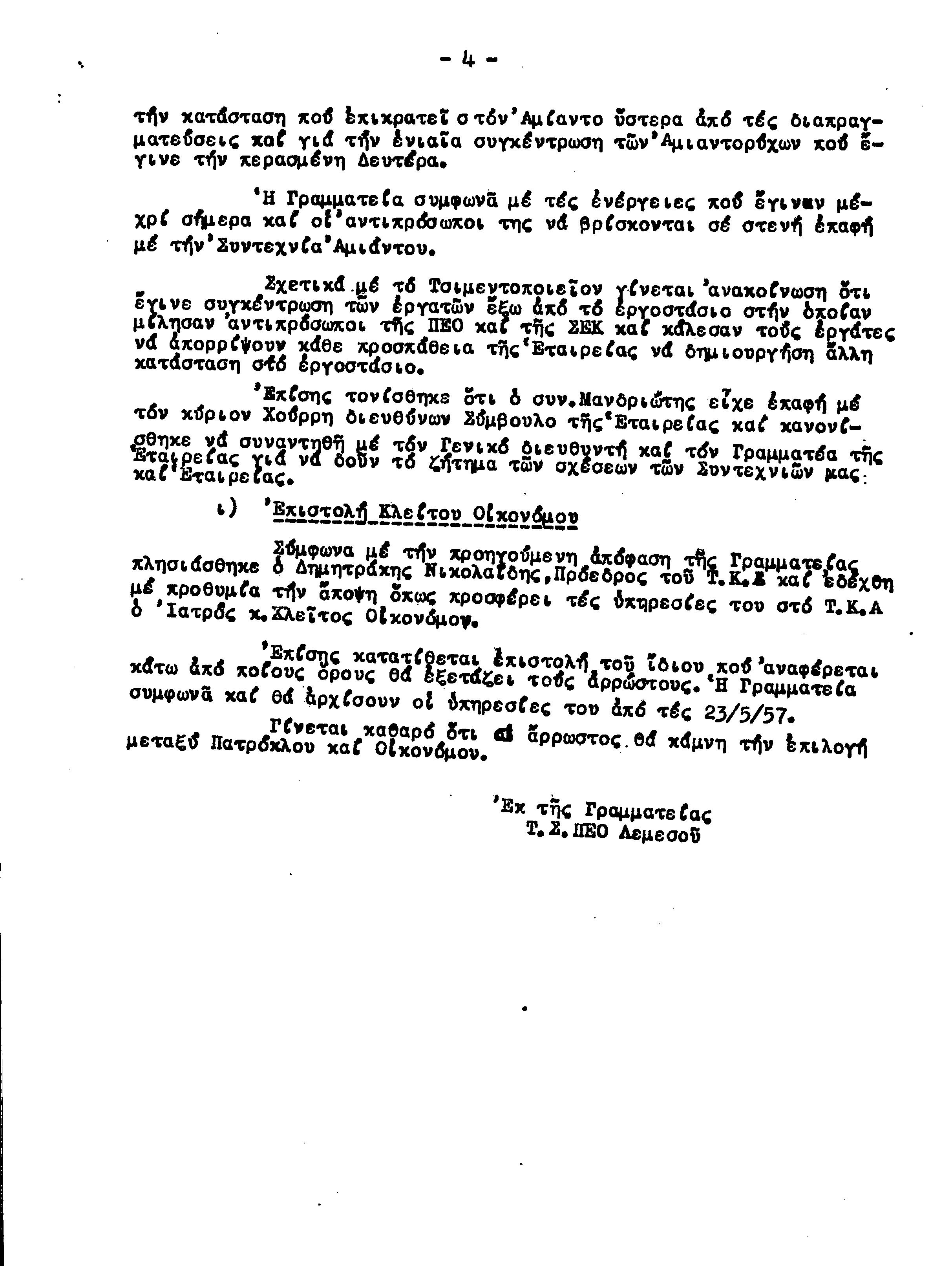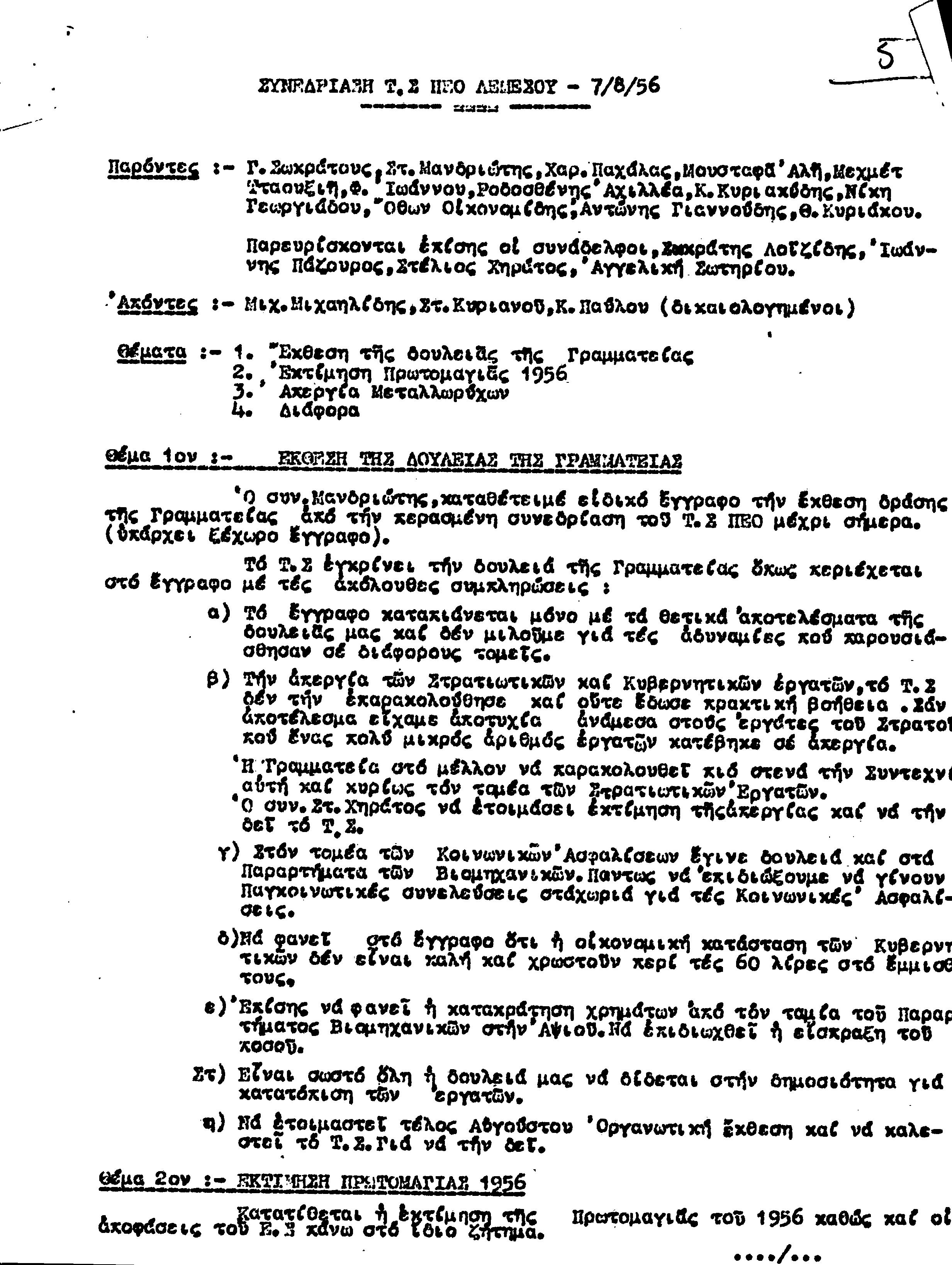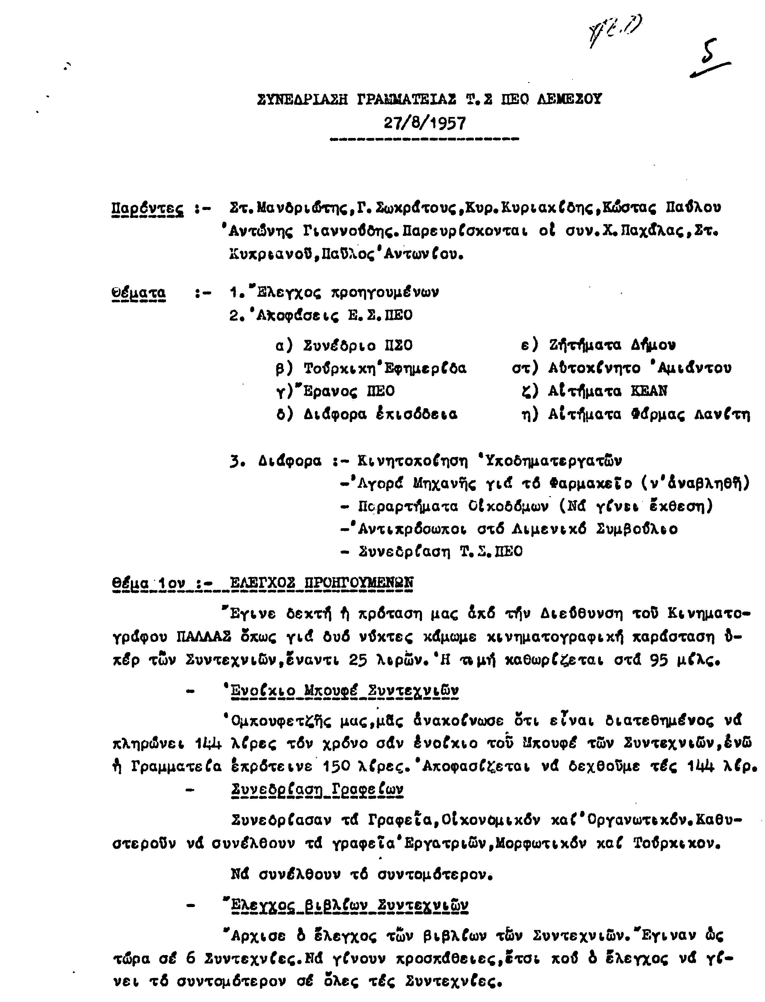 ΕΓΓΡΑΦΑ Τ.Σ. ΠΕΟ ΛΕΜΕΣΟΥ 1955-1962