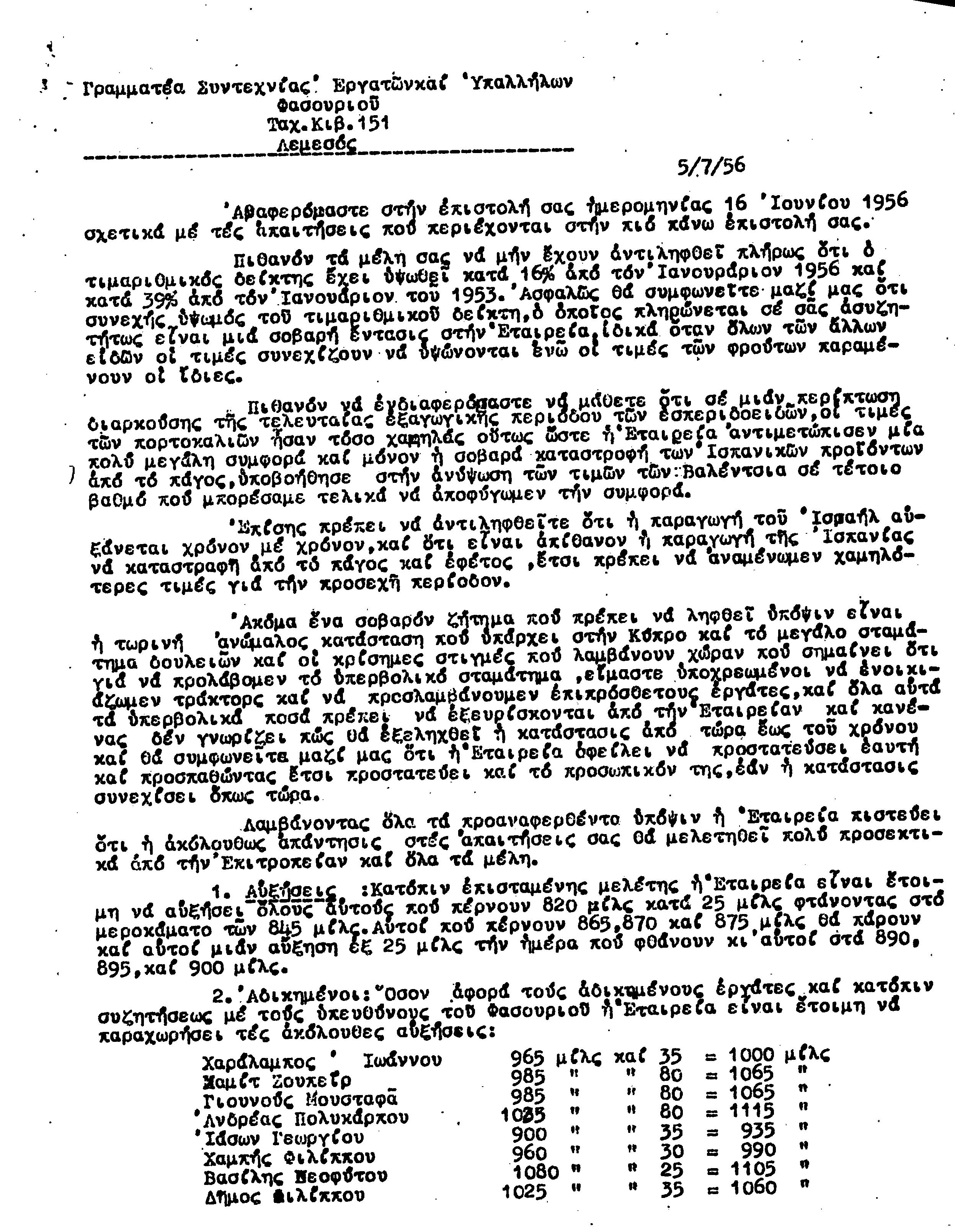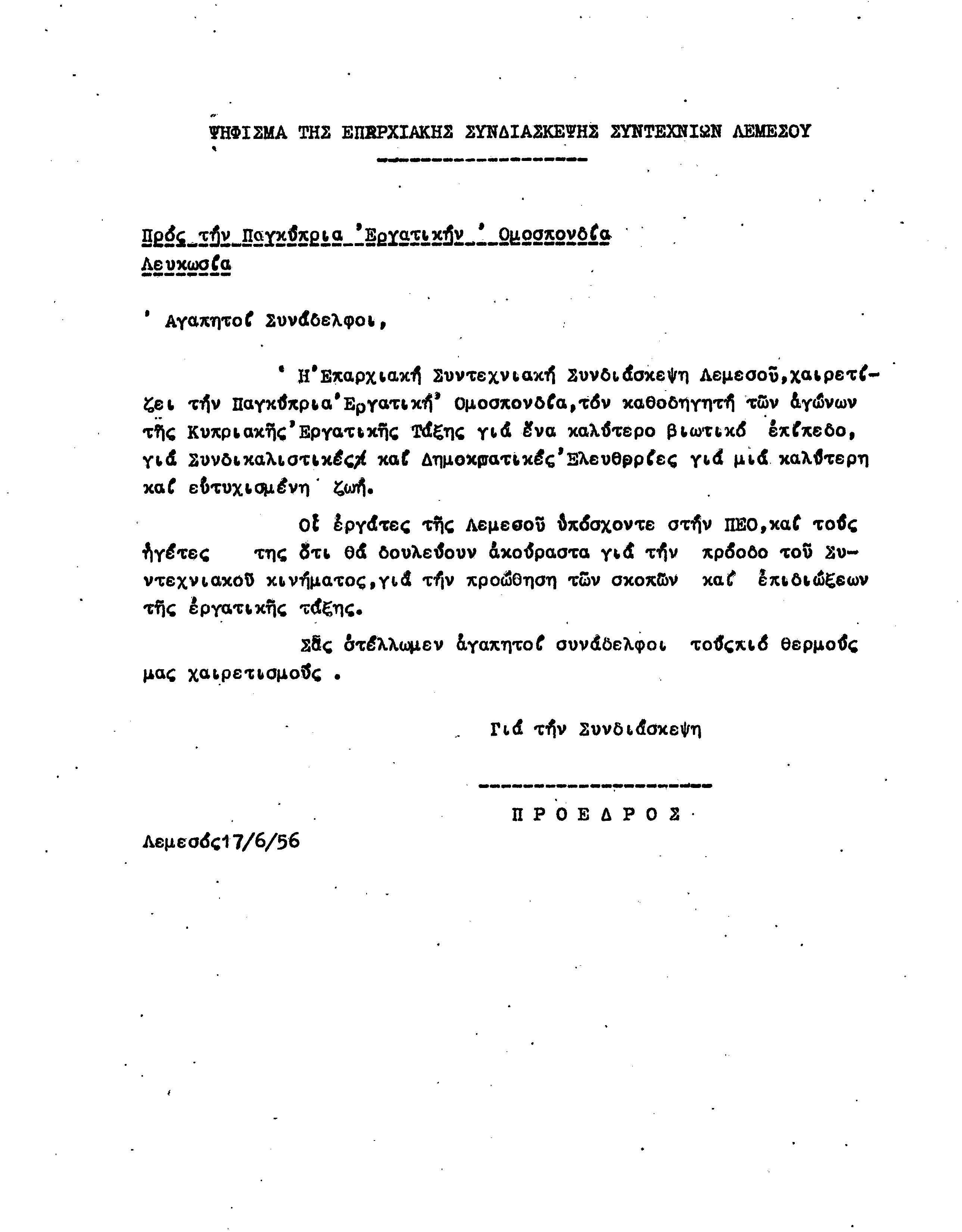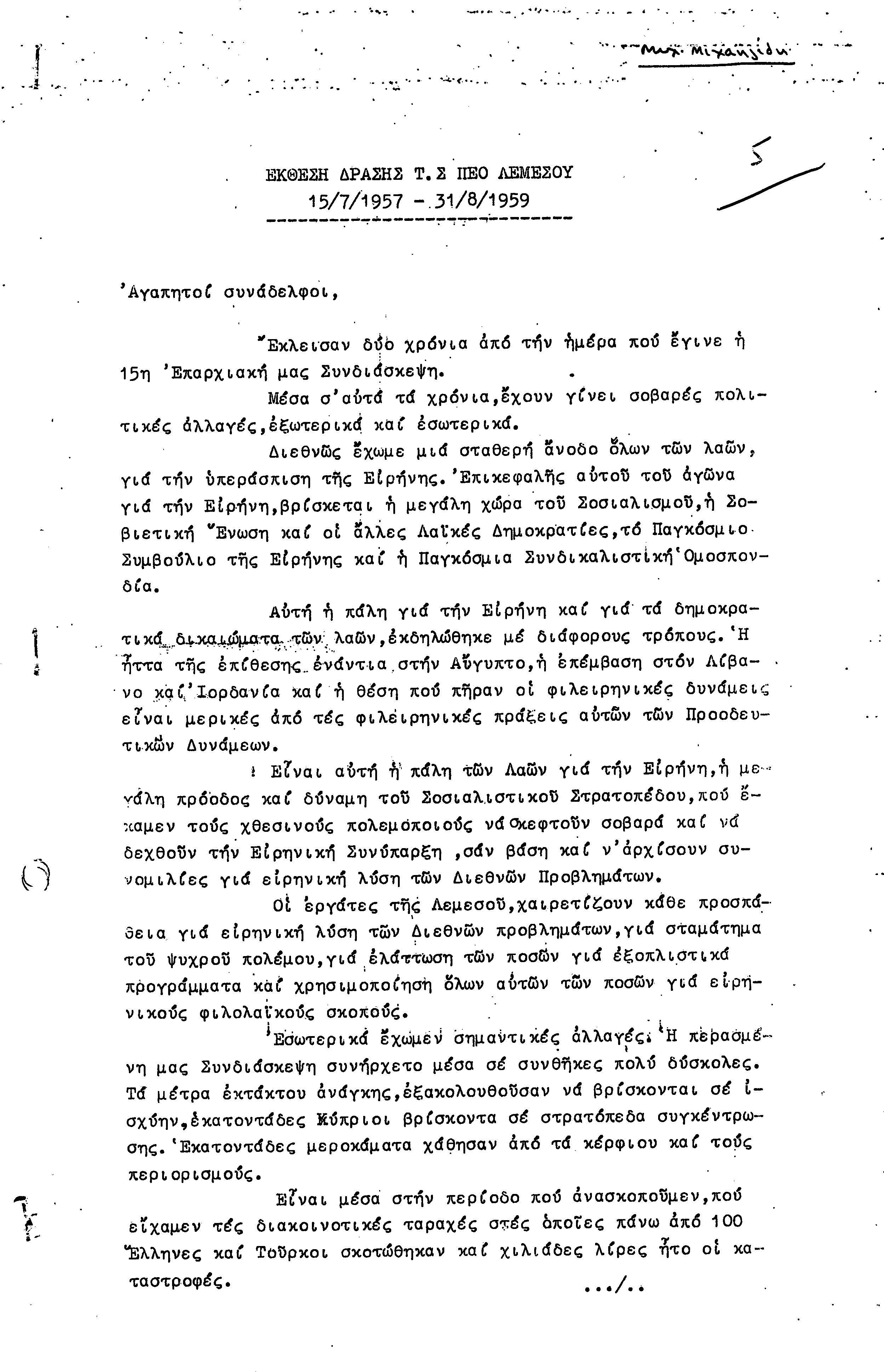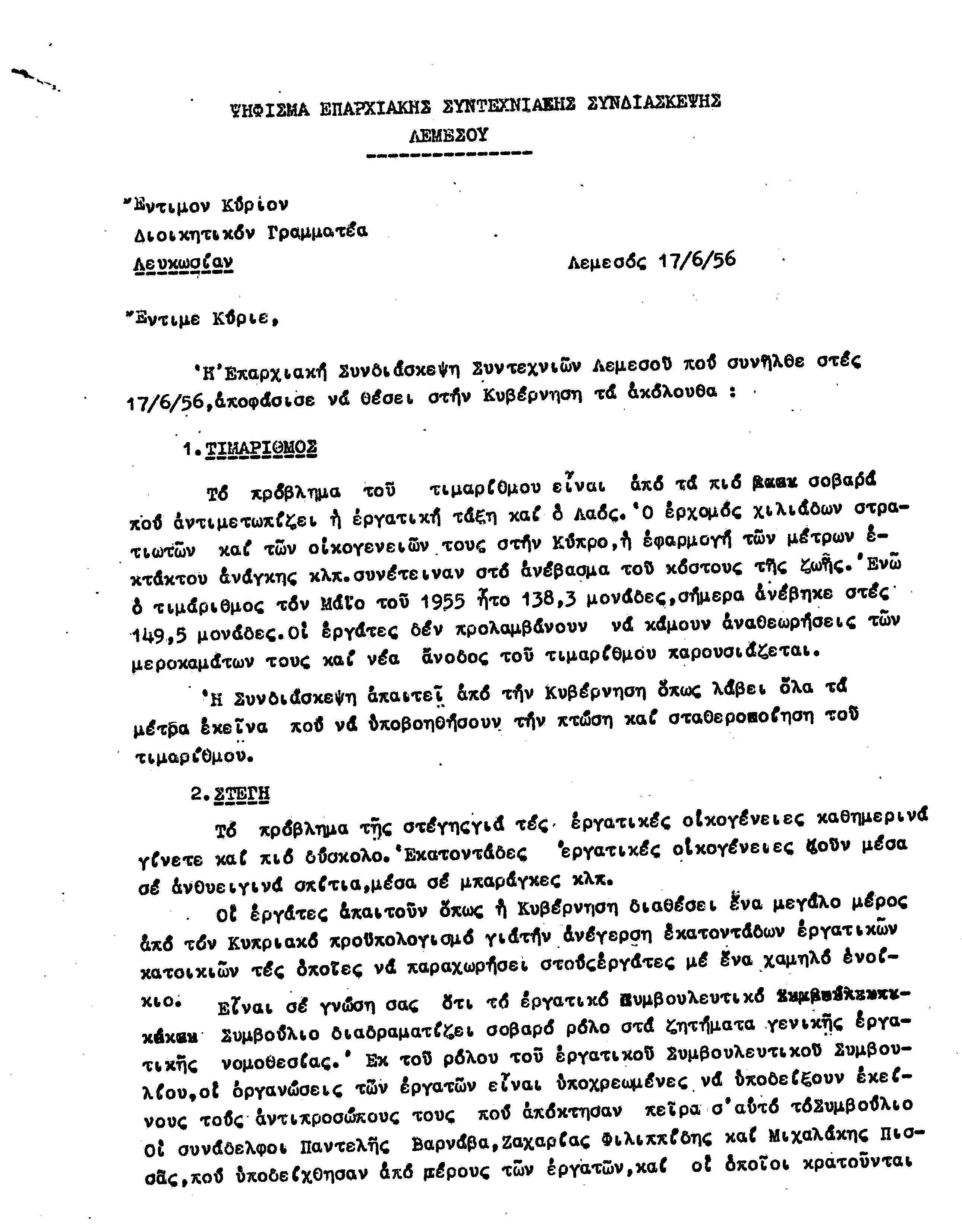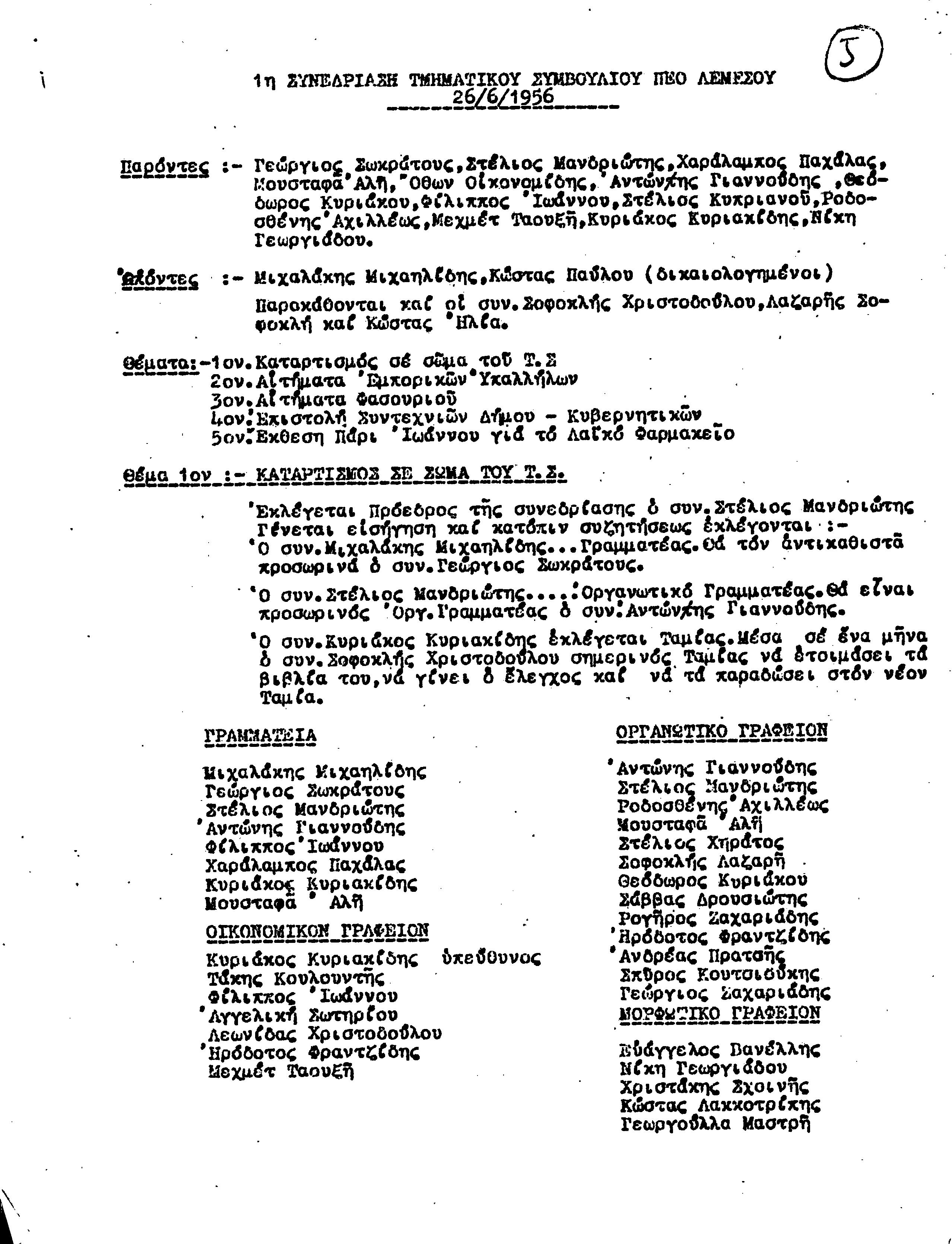 ΕΓΓΡΑΦΑ Τ.Σ. ΠΕΟ ΛΕΜΕΣΟΥ 1955-1962