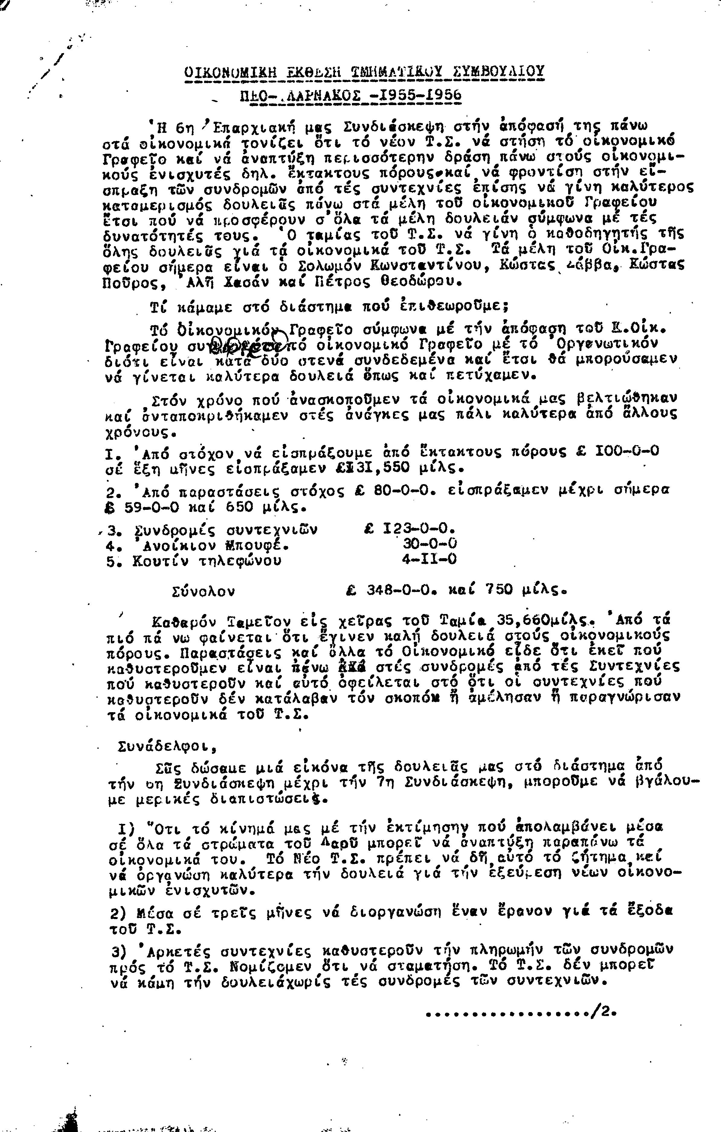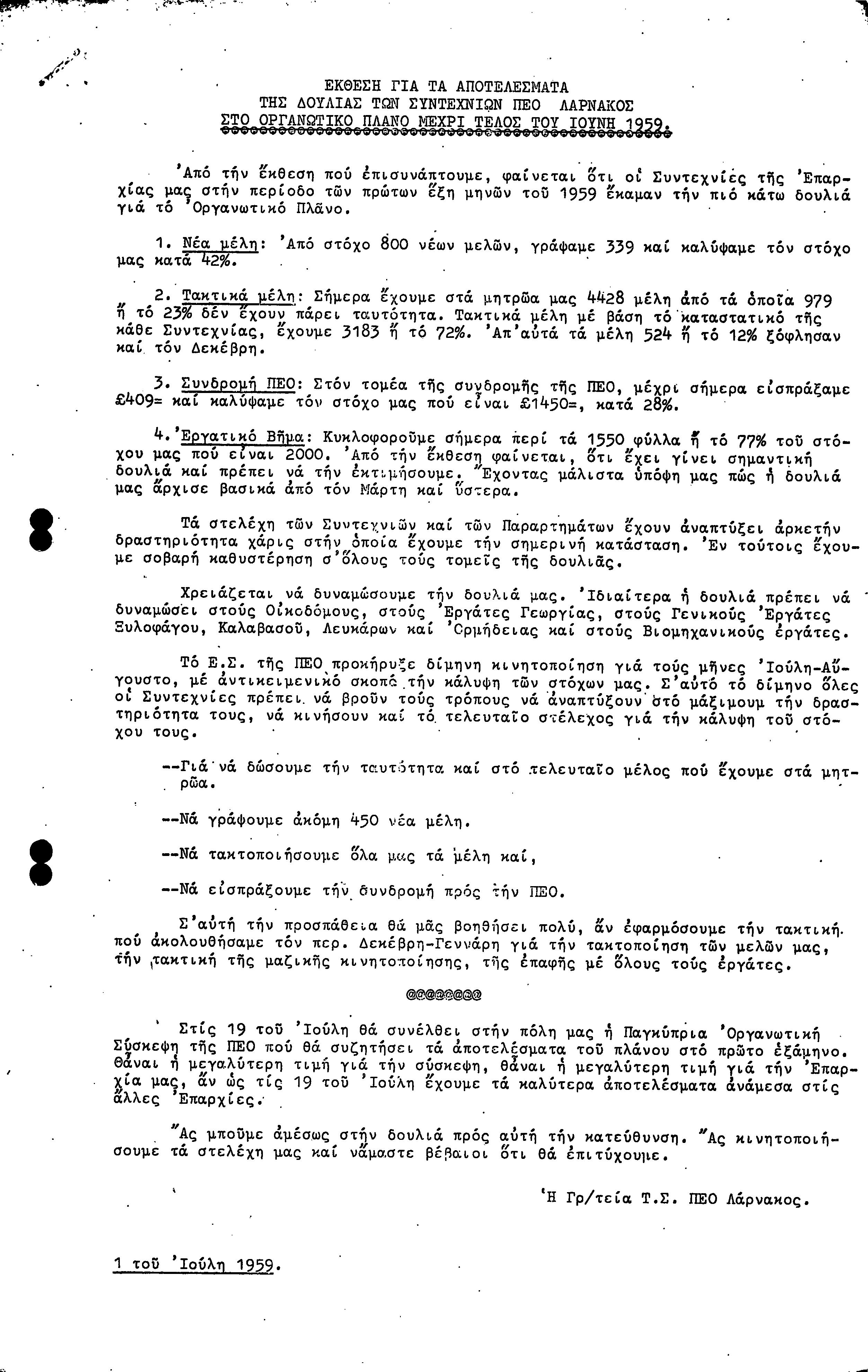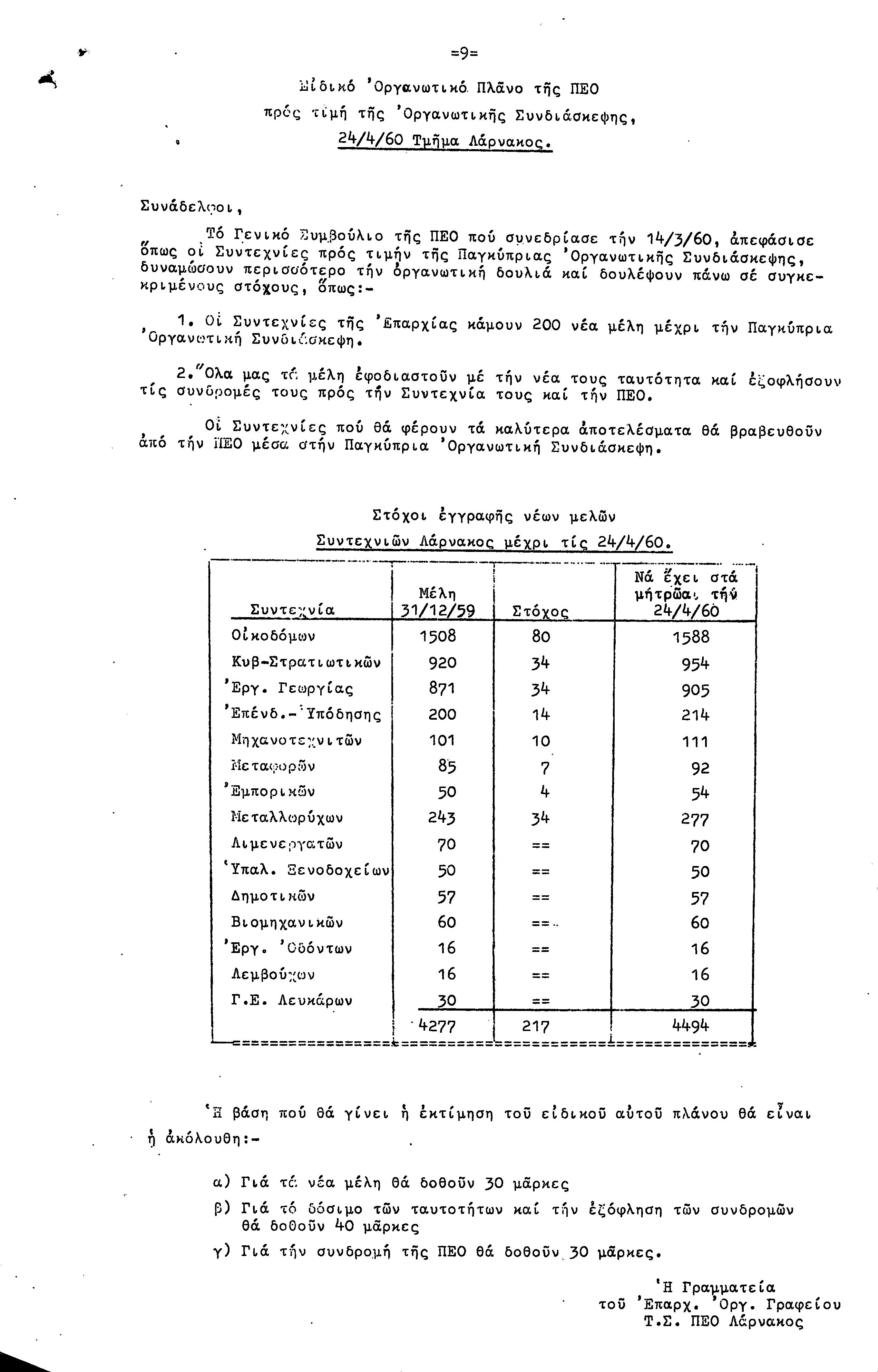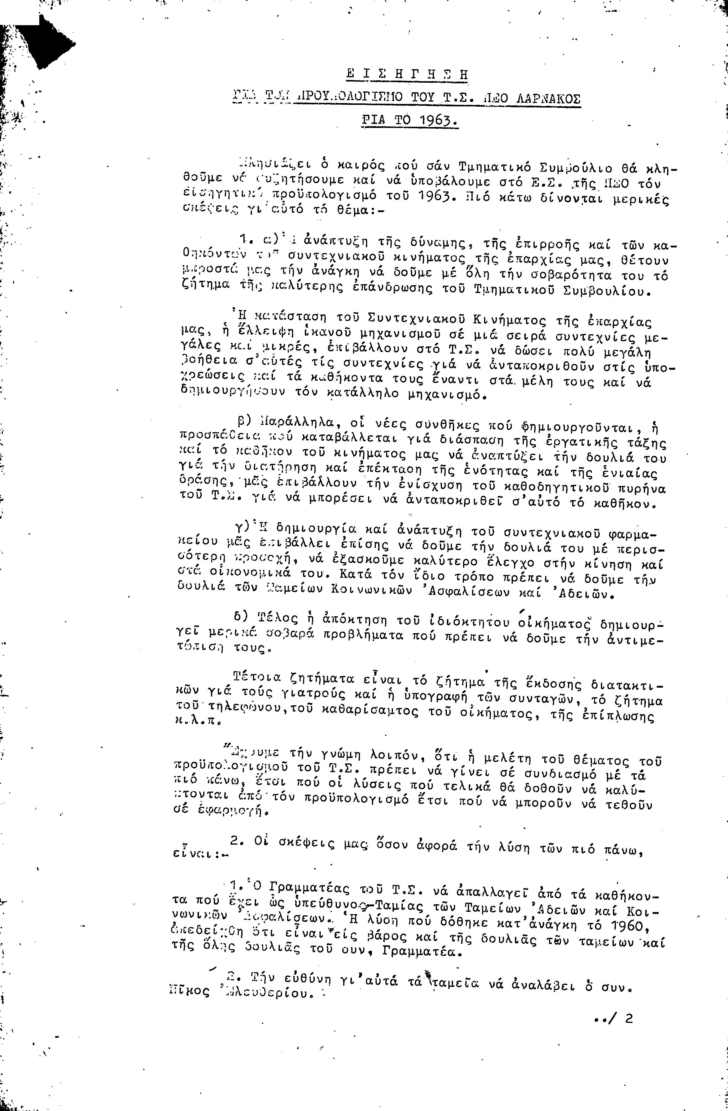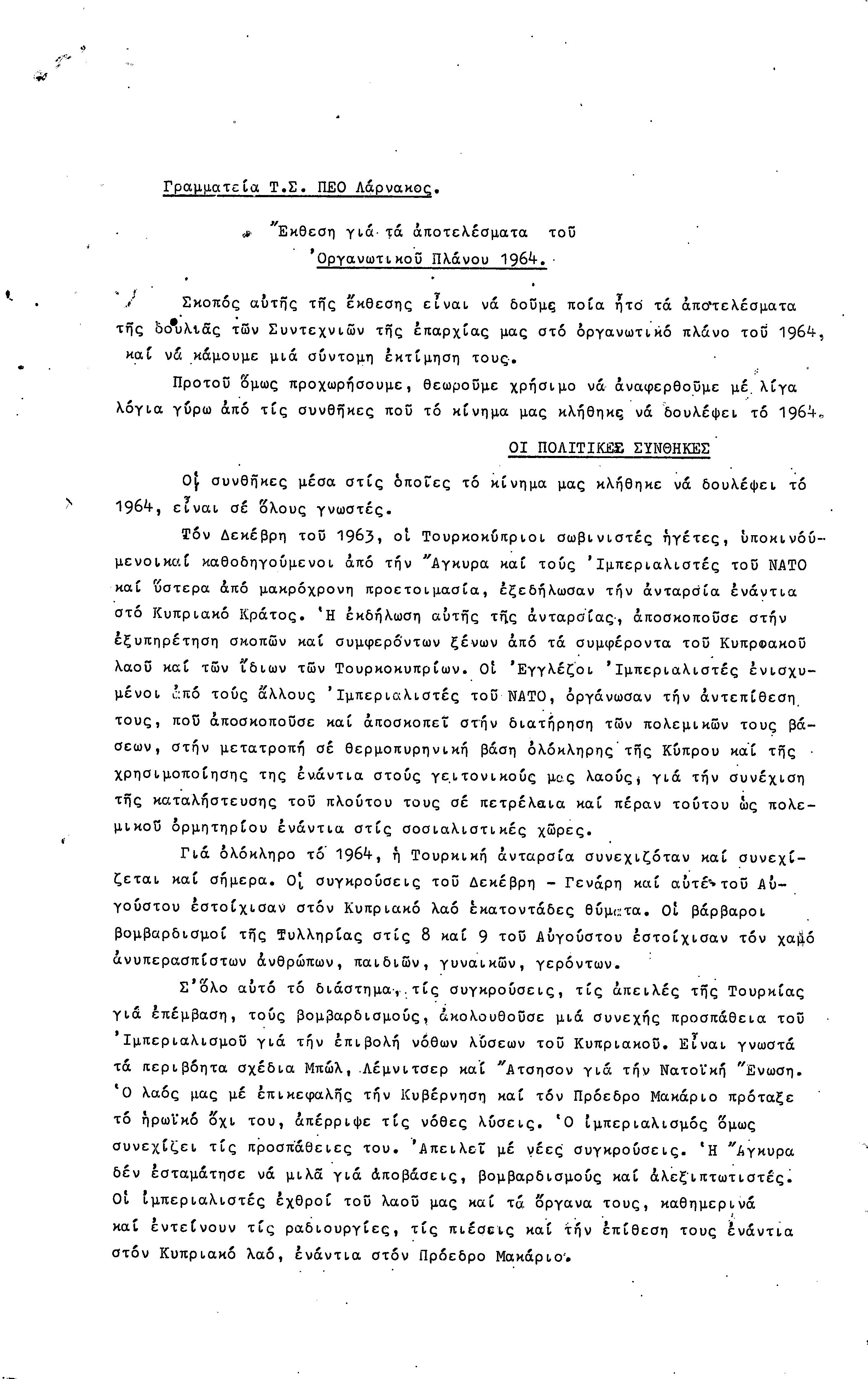 ΕΓΓΡΑΦΑ Τ.Σ. ΠΕΟ ΛΑΡΝΑΚΑΣ,1964 (ΟΡΓΑΝΩΤΙΚΟ ΠΛΑΝΟ)