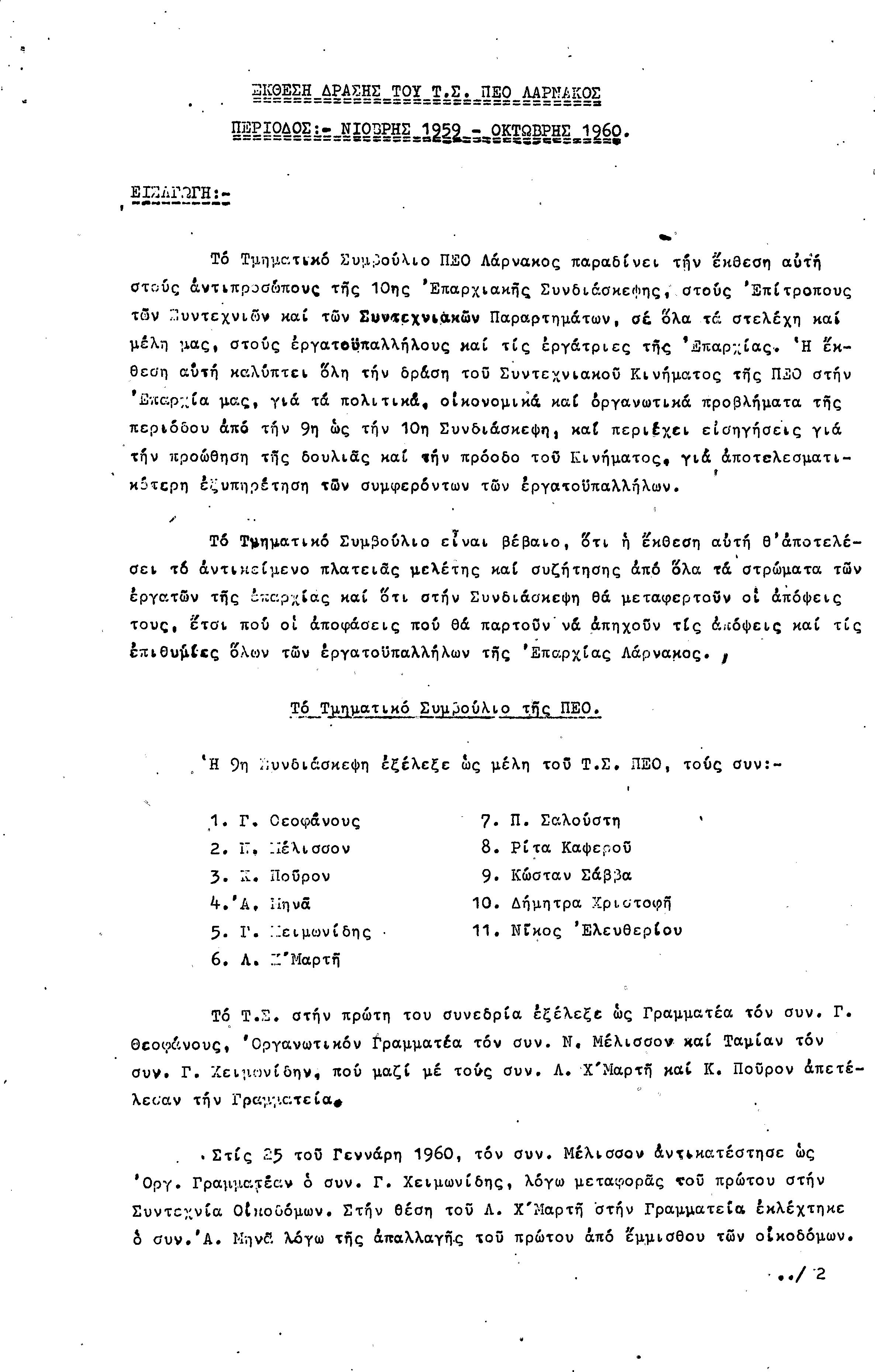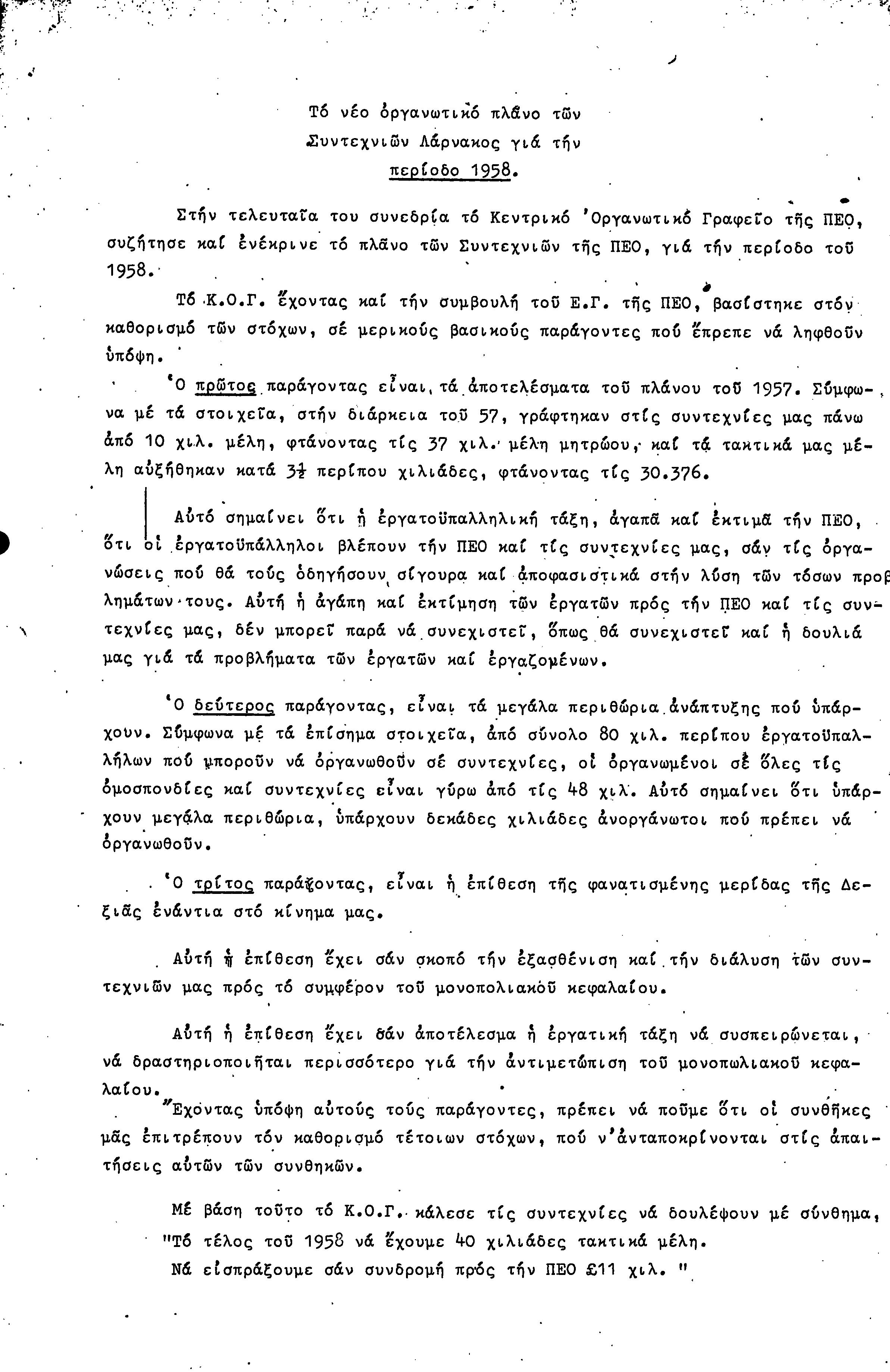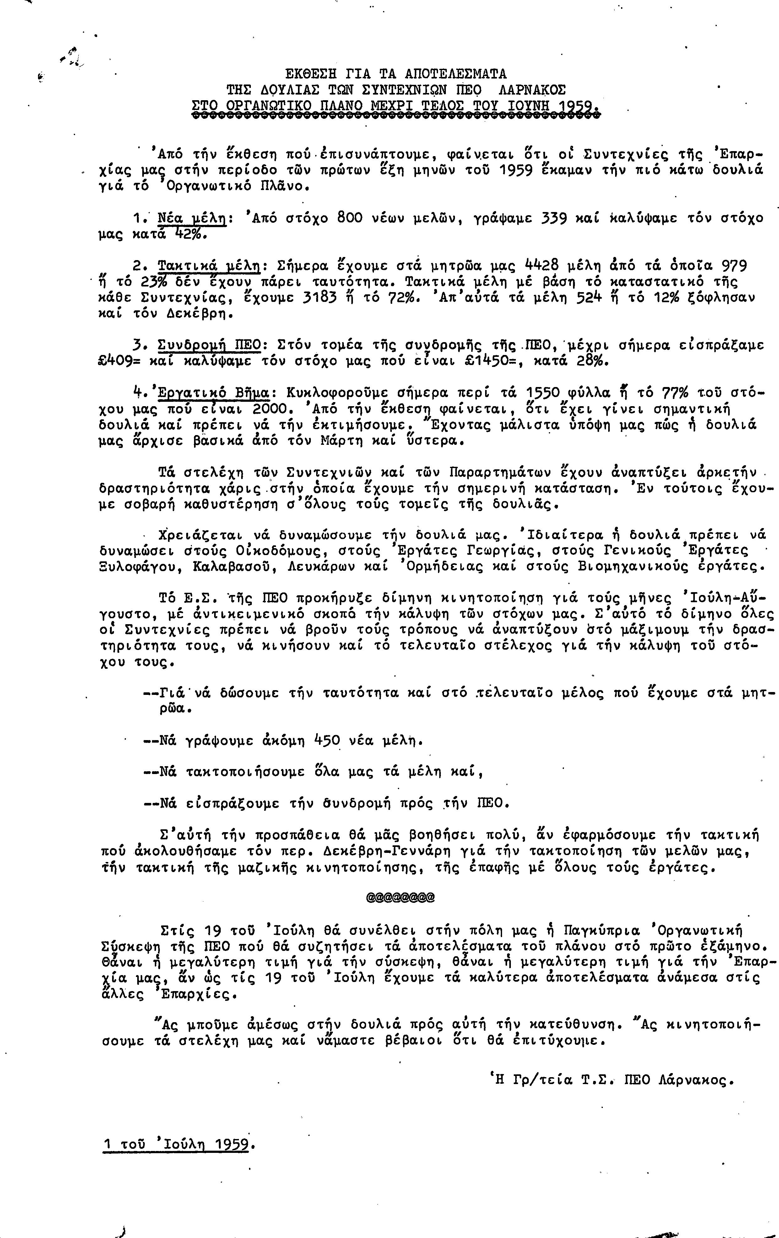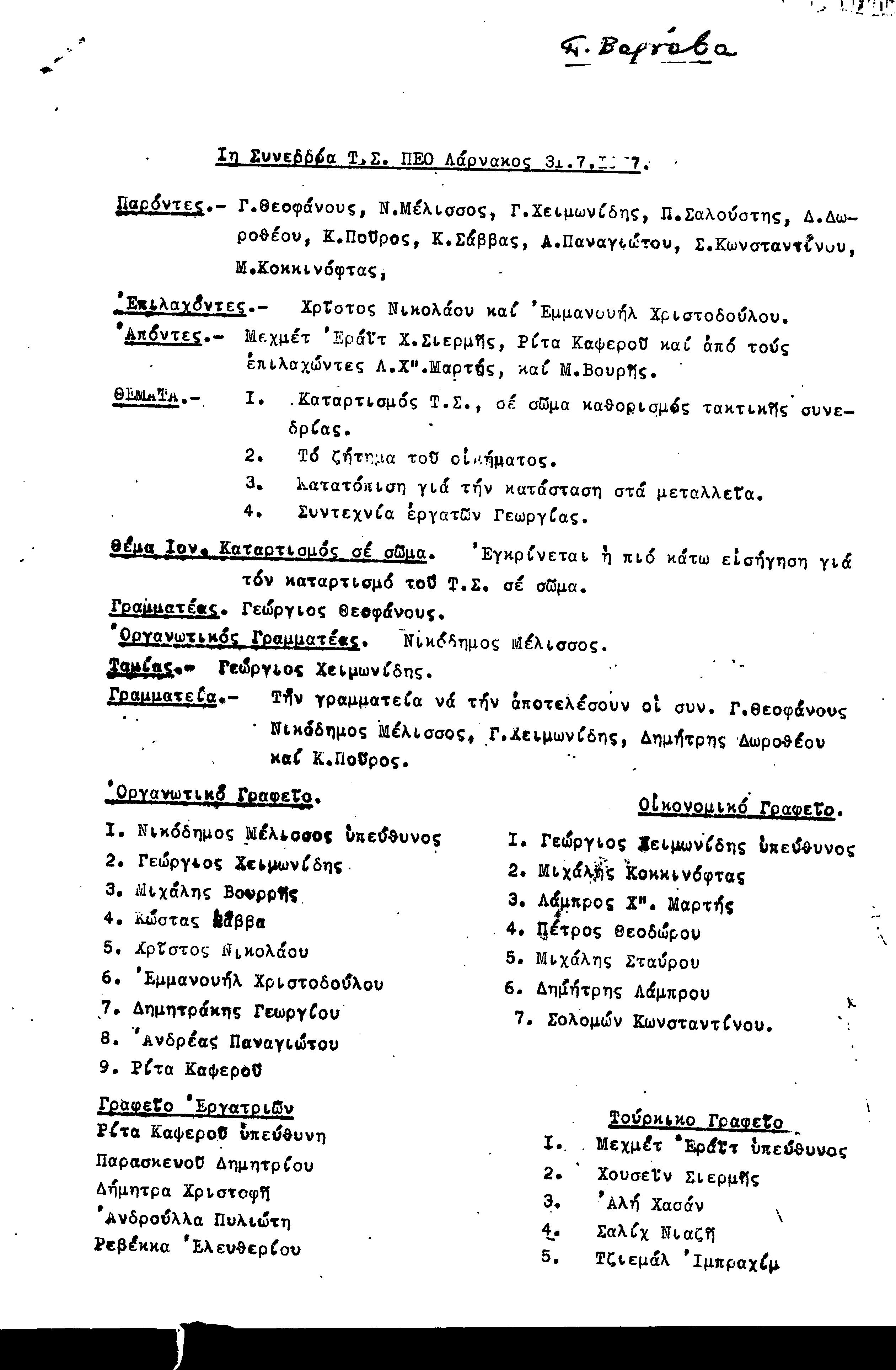 ΕΓΓΡΑΦΑ Τ.Σ. ΠΕΟ ΛΑΡΝΑΚΑΣ,1964 (ΟΡΓΑΝΩΤΙΚΟ ΠΛΑΝΟ)